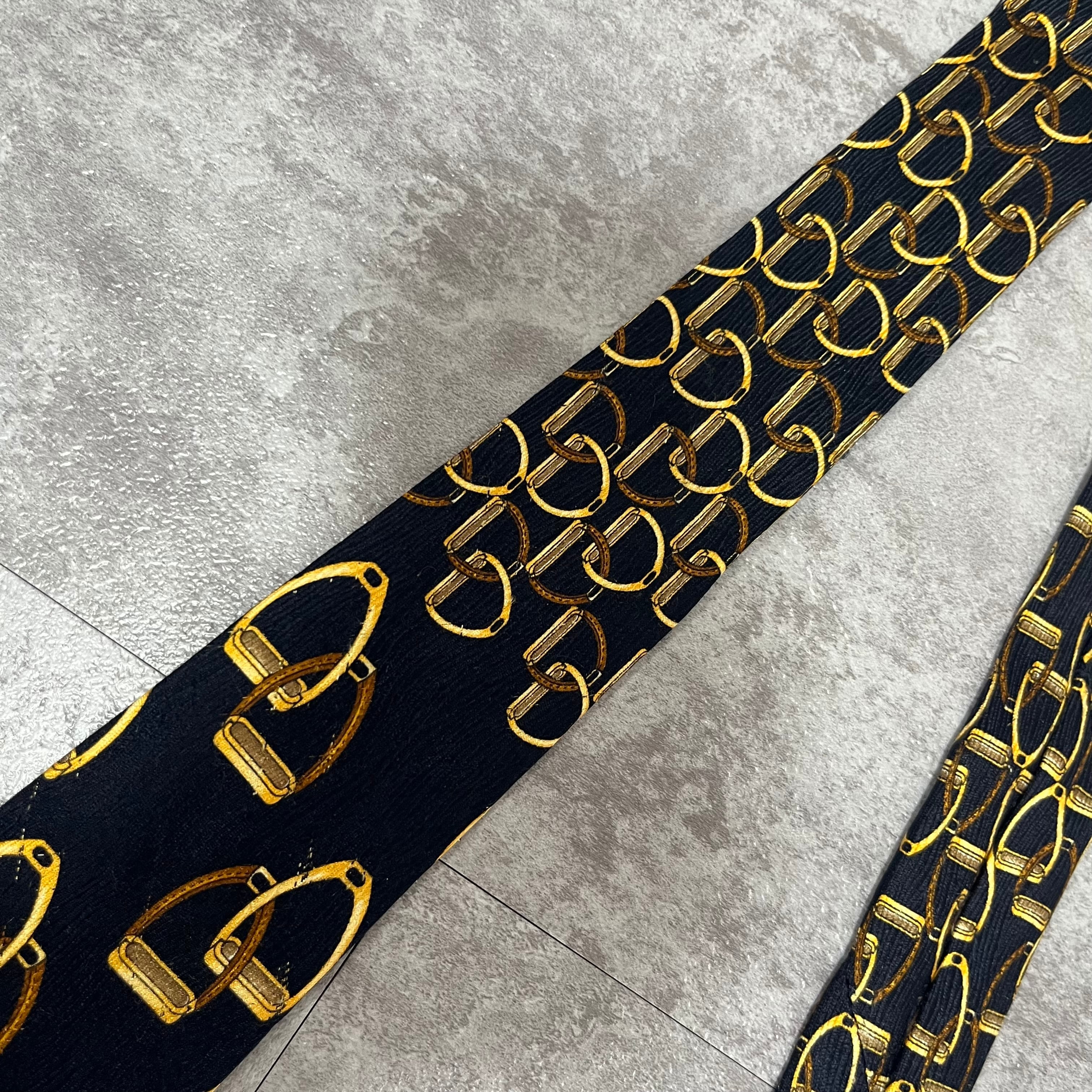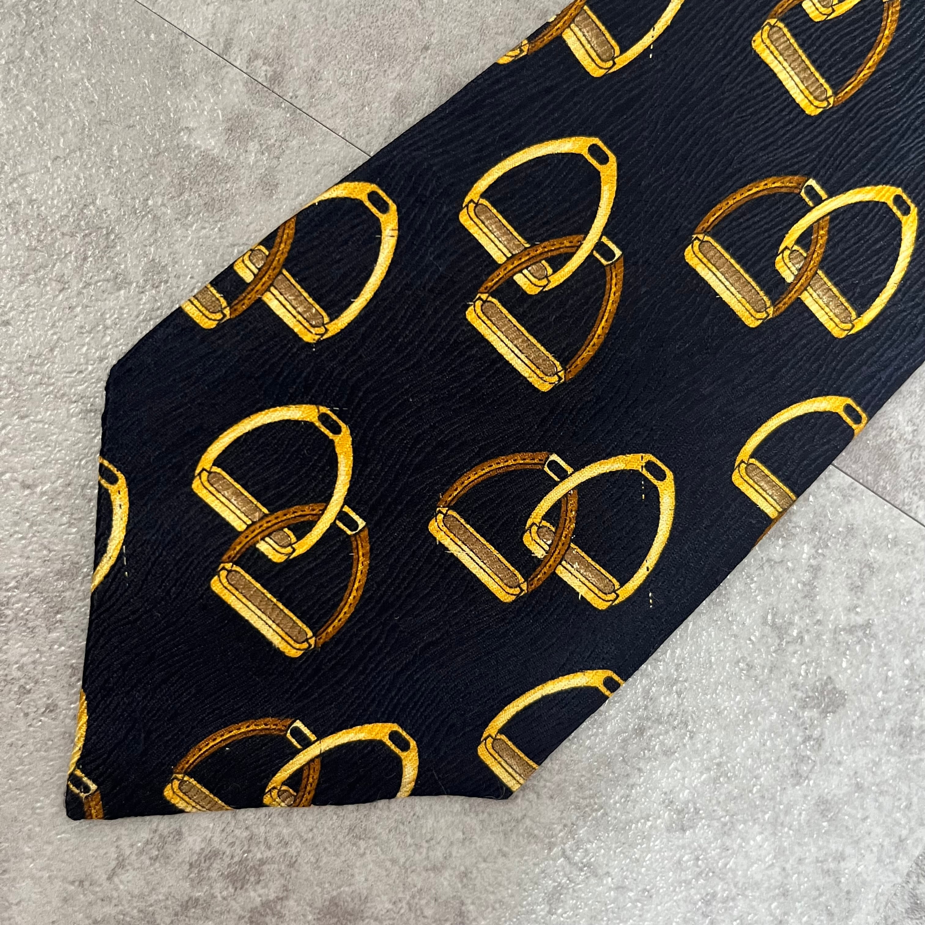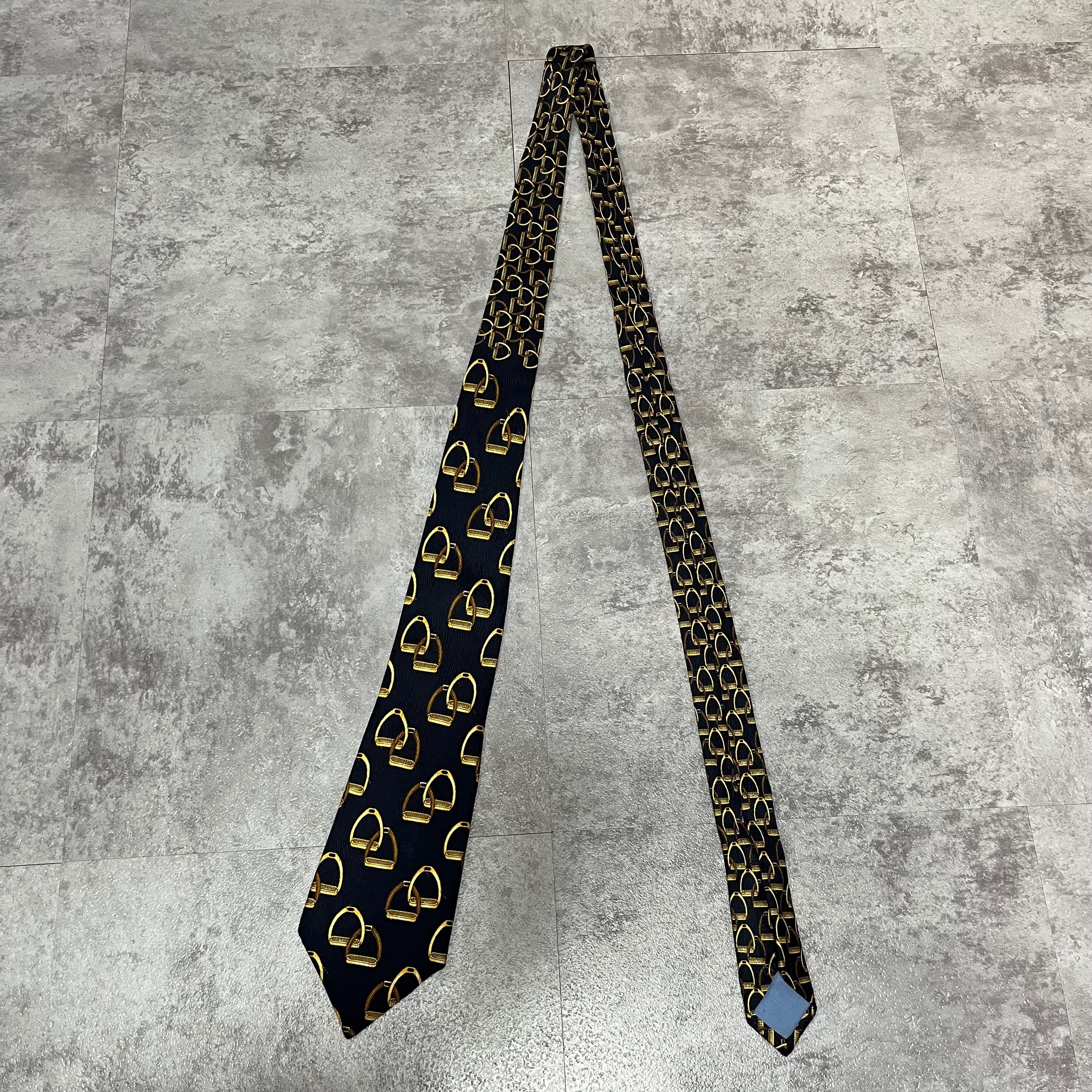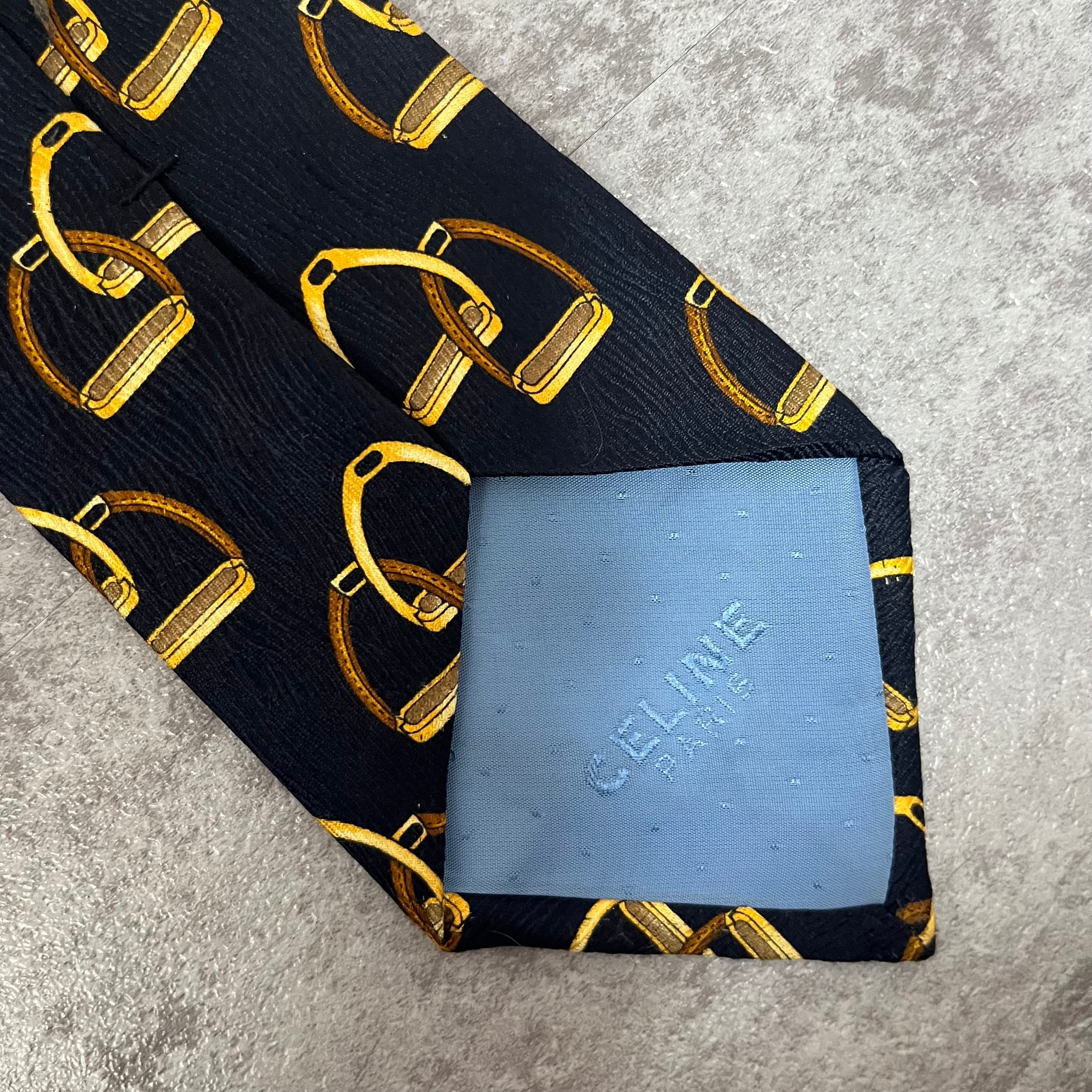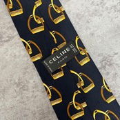【CELINE】ホースビットモチーフネクタイ 馬具 ネイビー 2連ホースビット