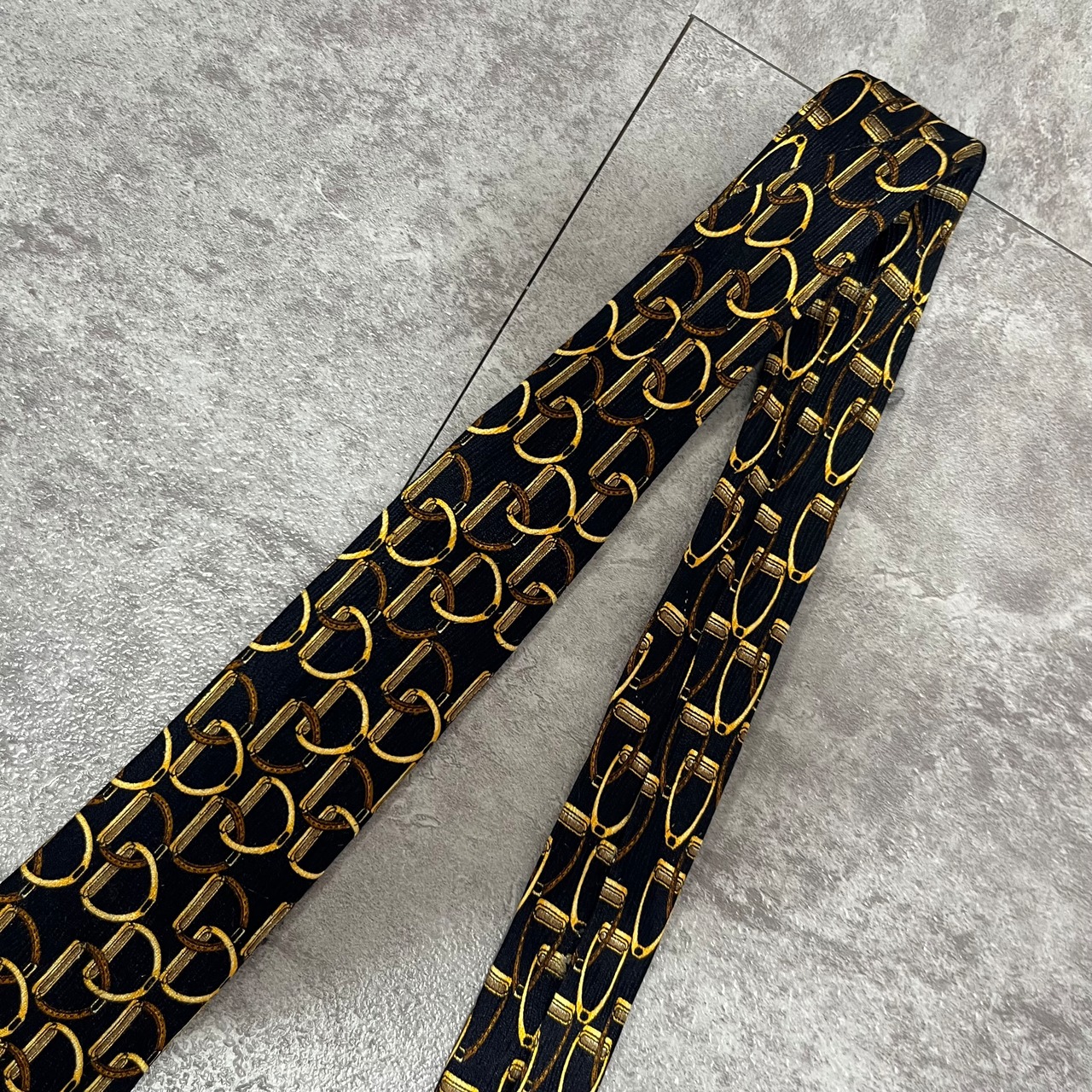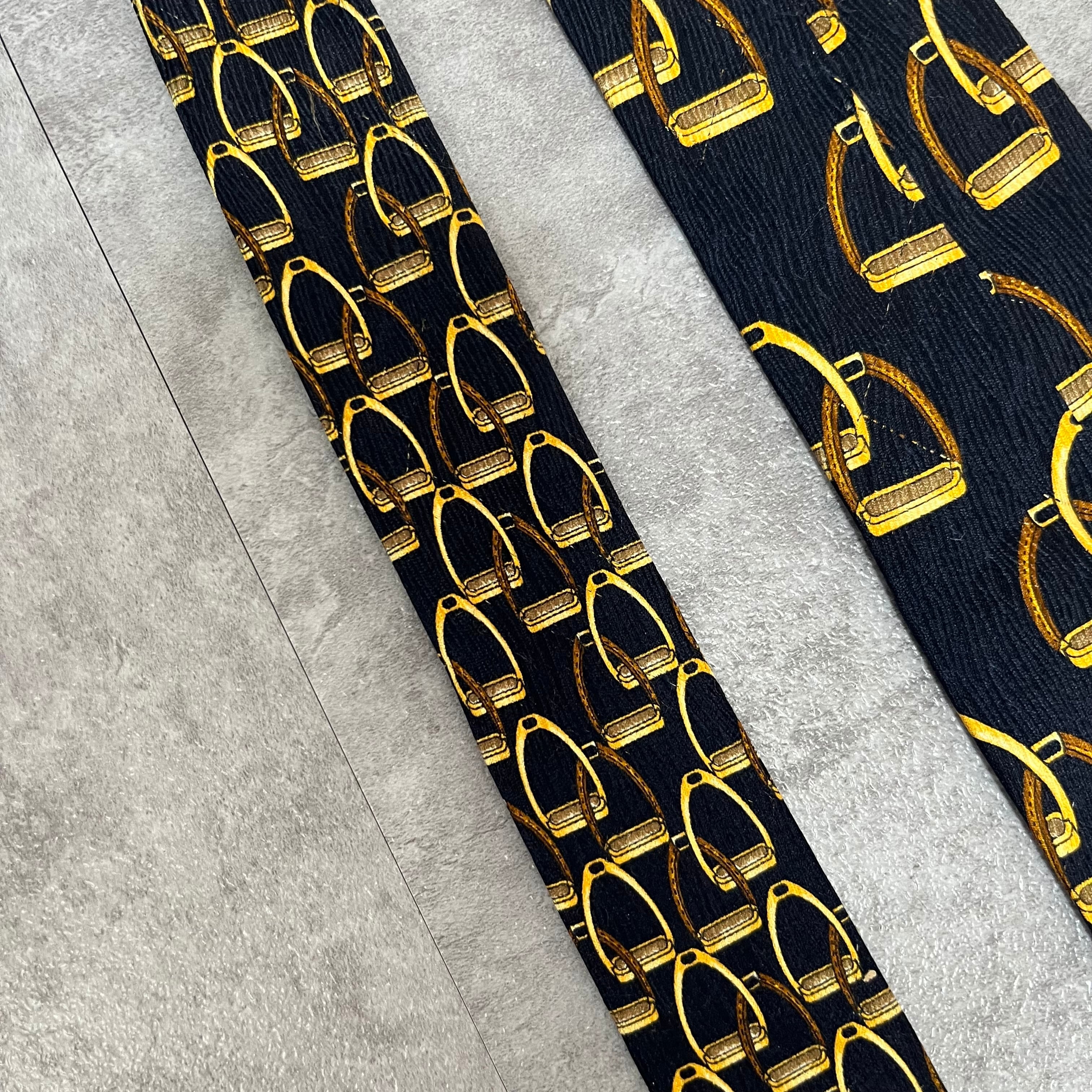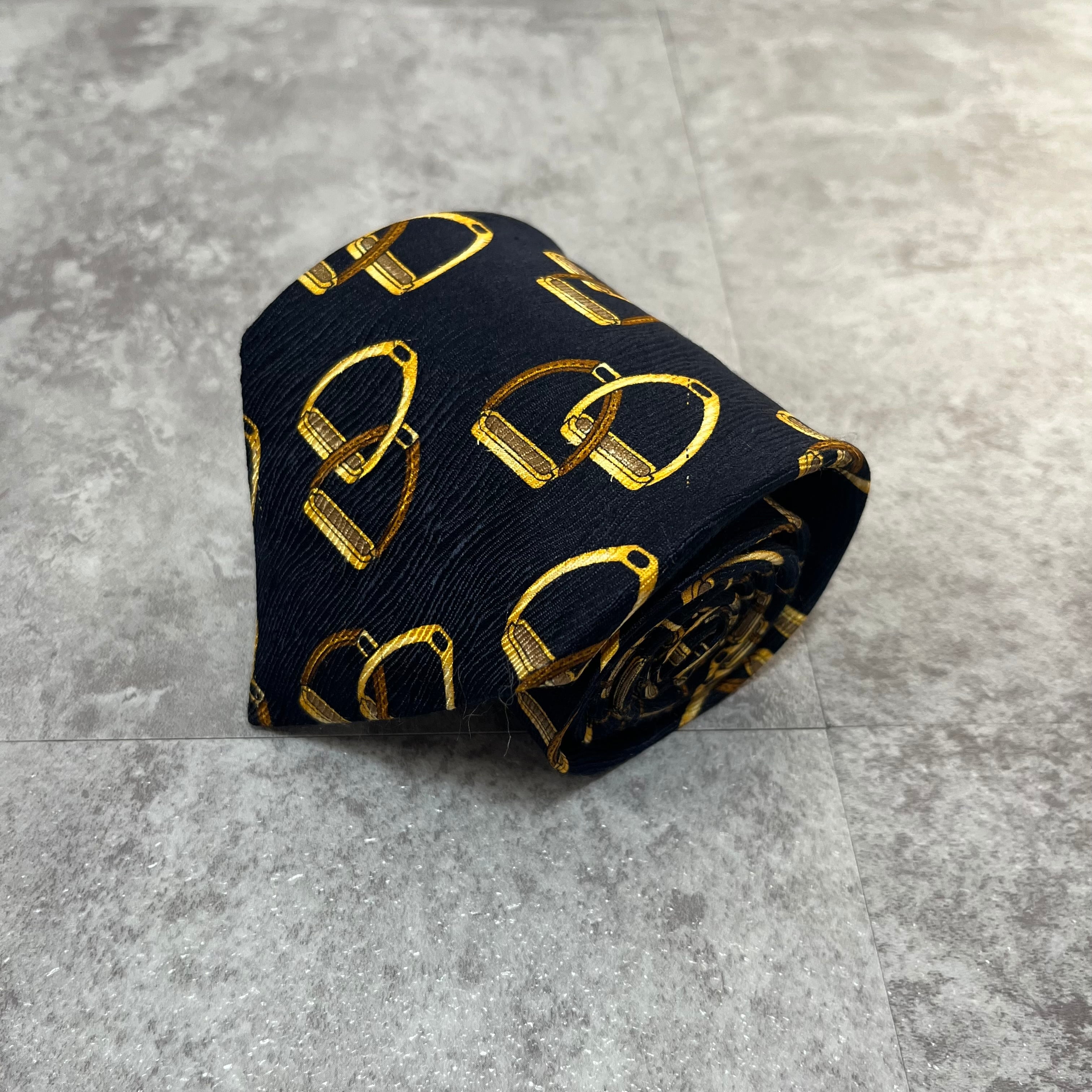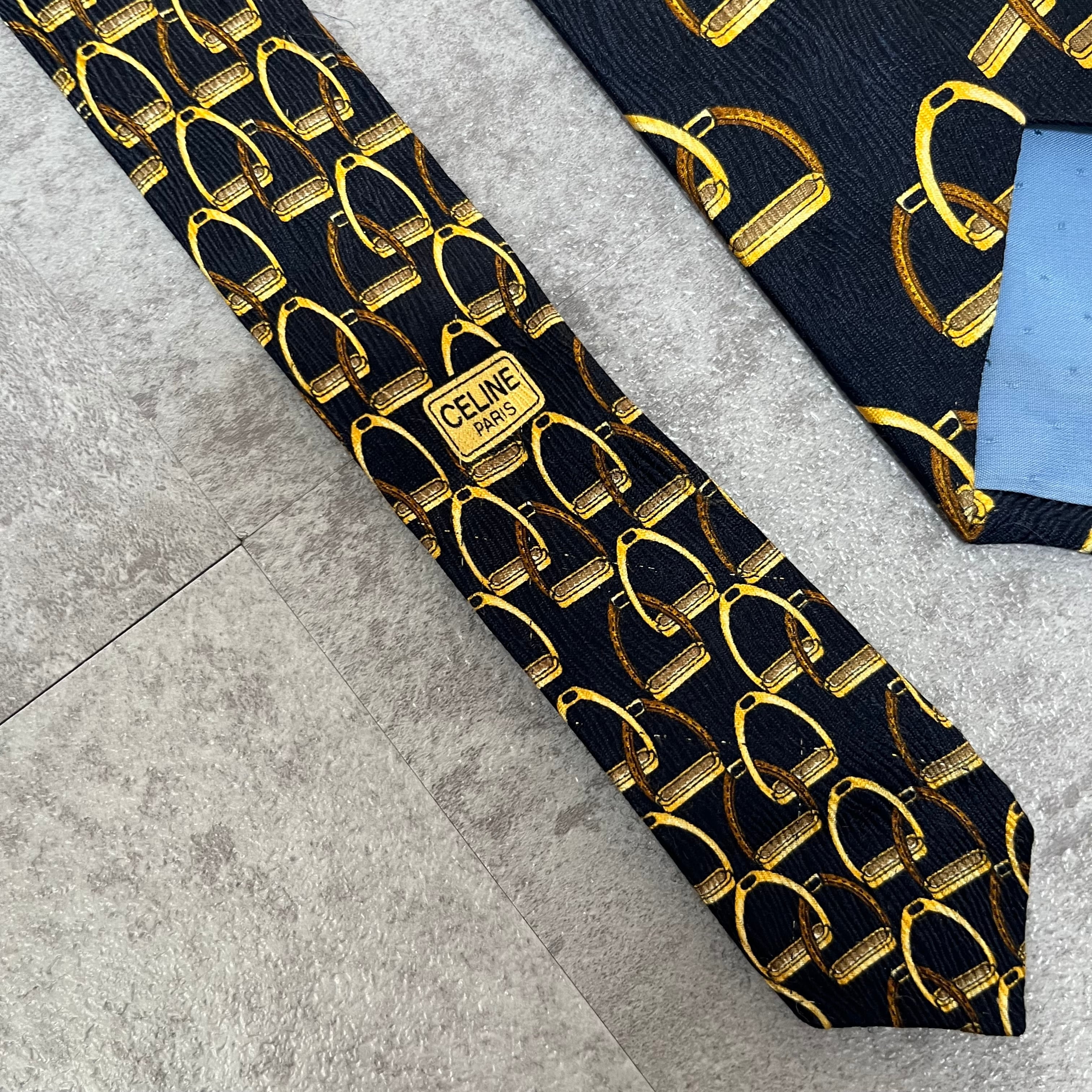 【CELINE】ホースビットモチーフネクタイ 馬具 ネイビー 2連ホースビット