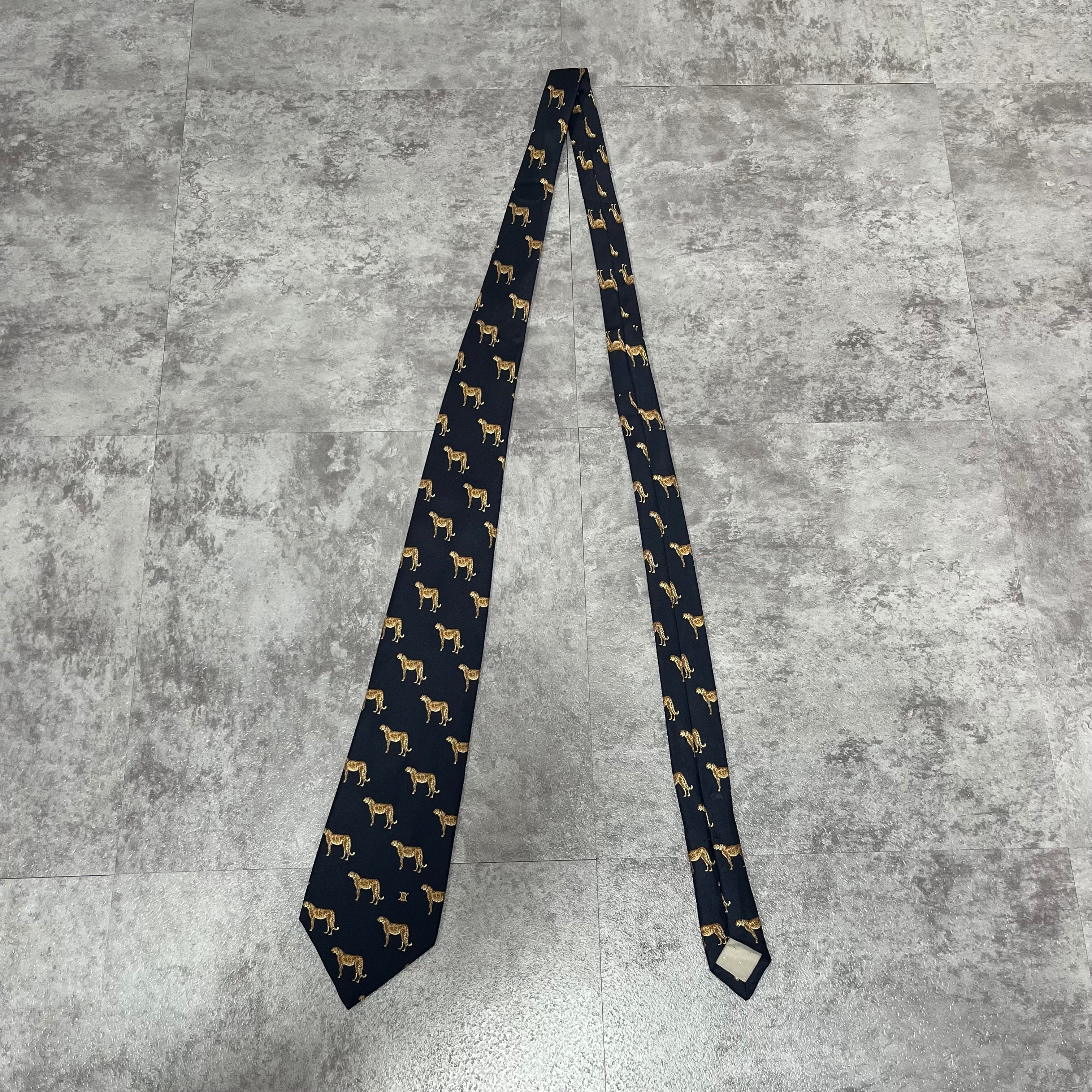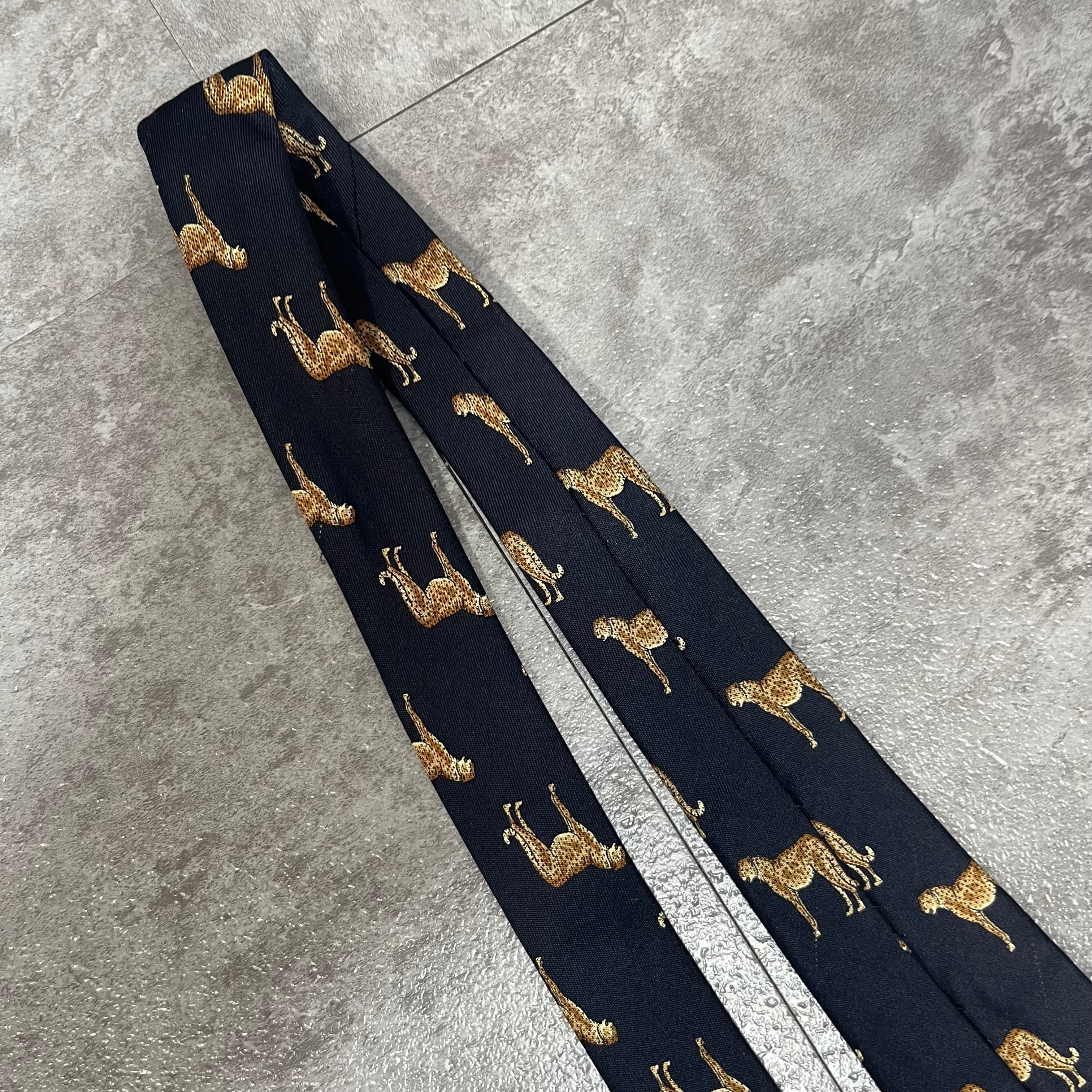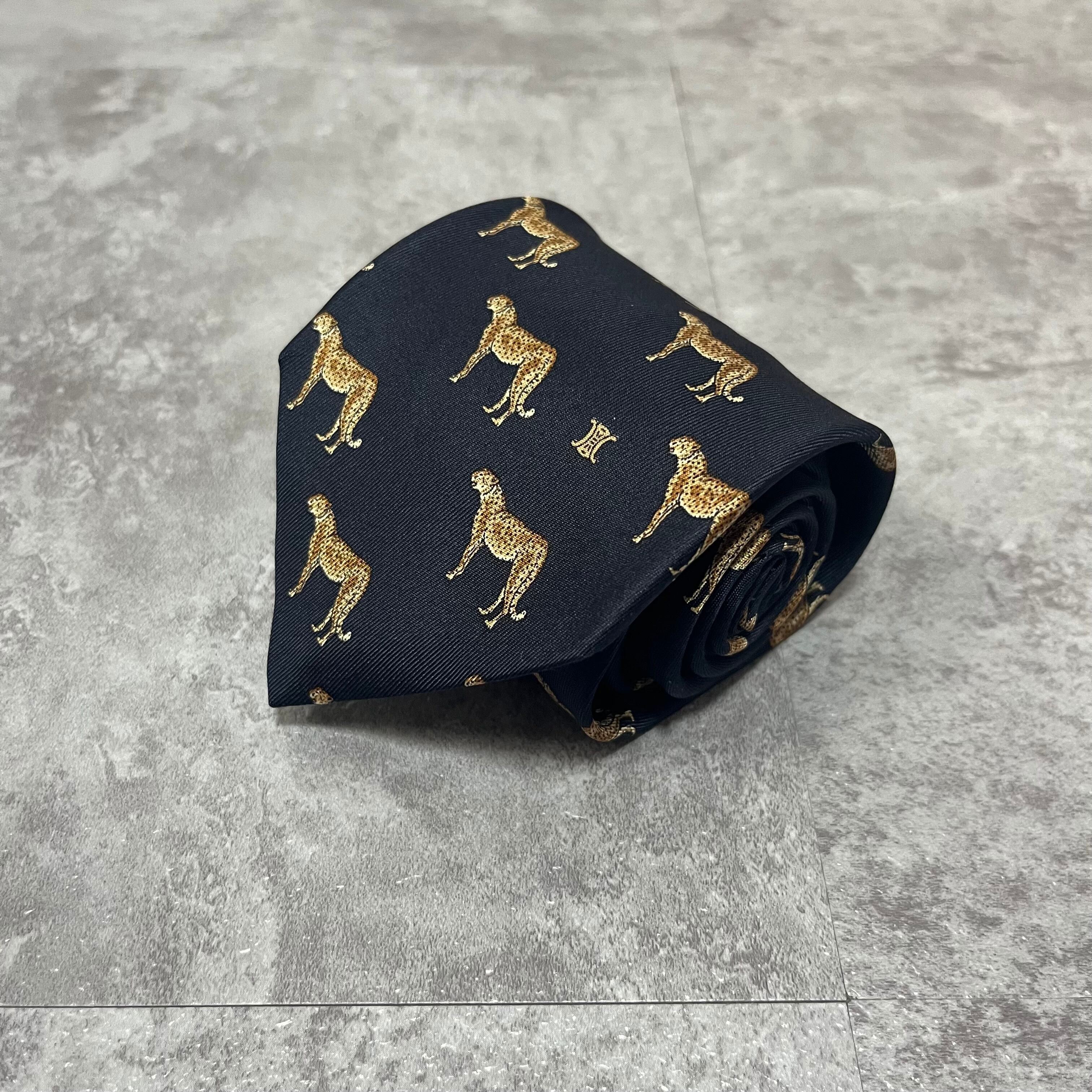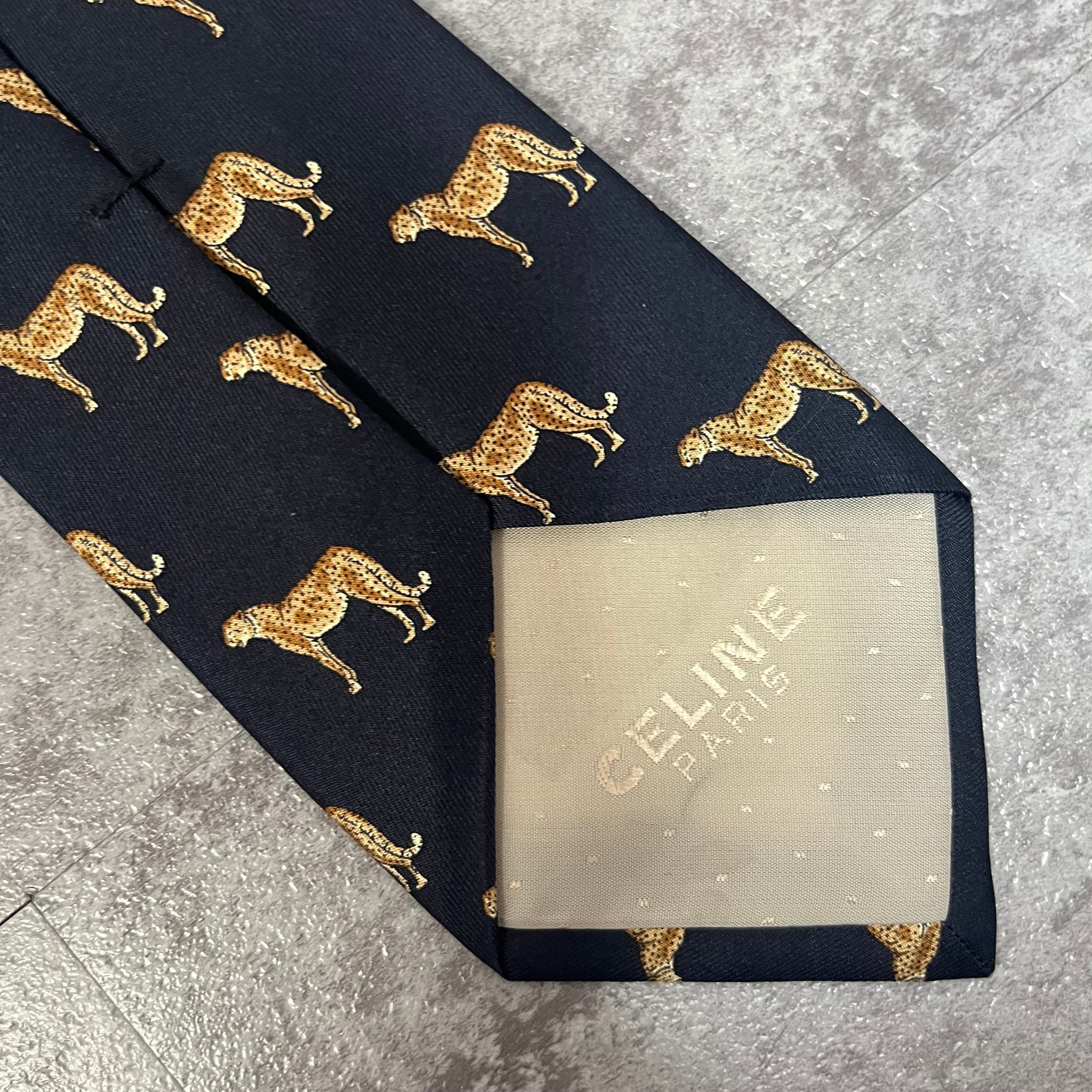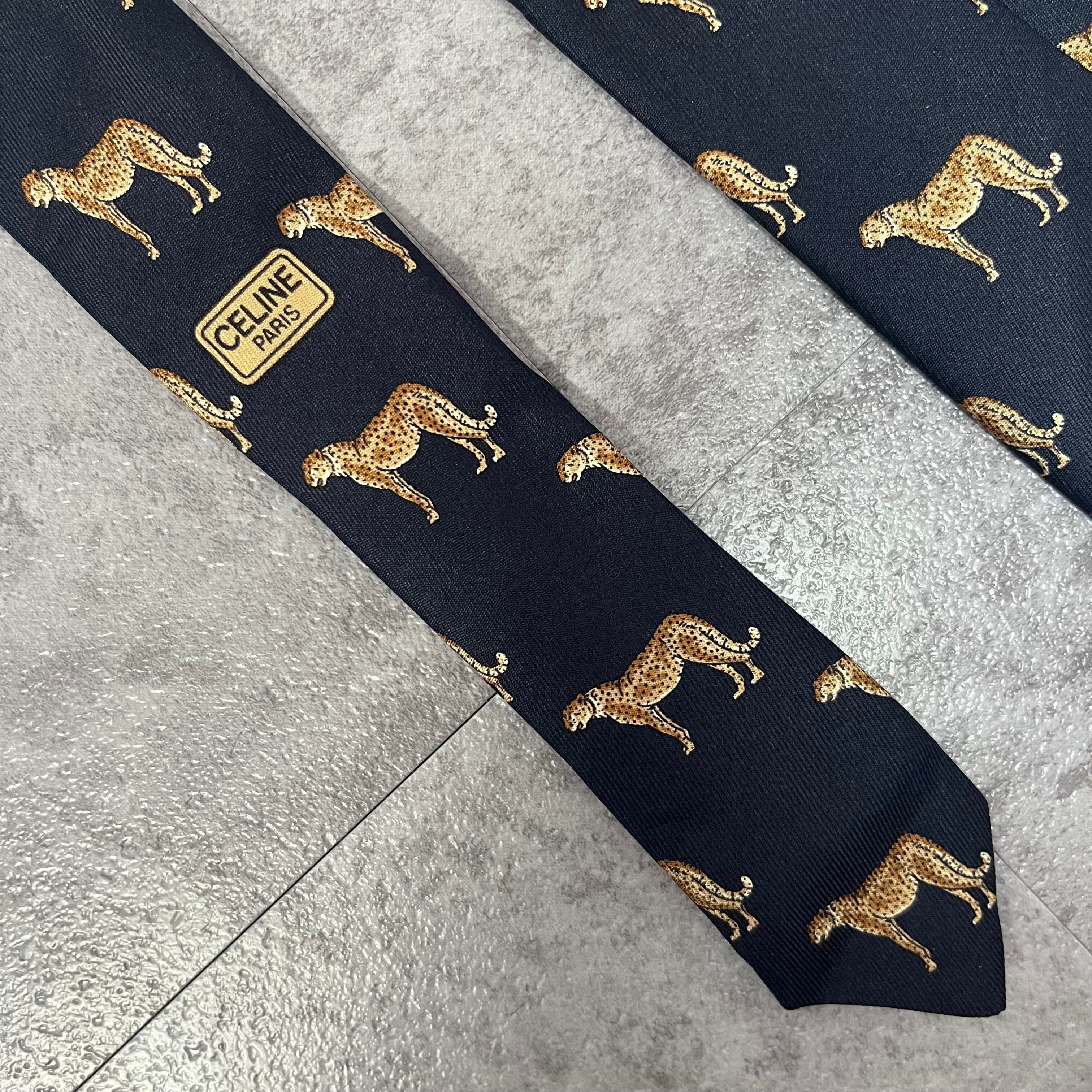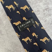 【CELINE】ロゴ入りアニマル柄ネクタイ 豹柄 ヒョウ チーター ジャガー トリオンフロゴ