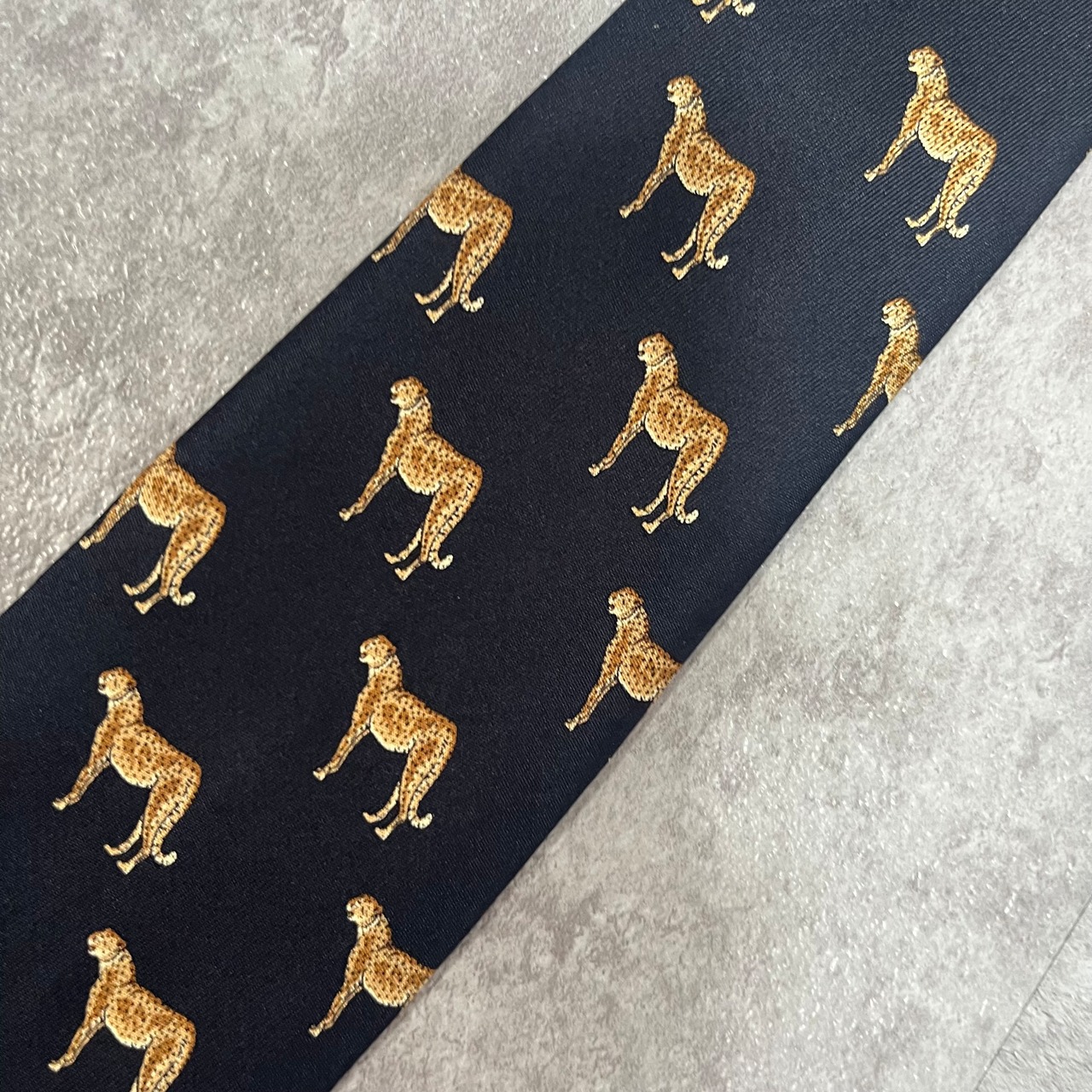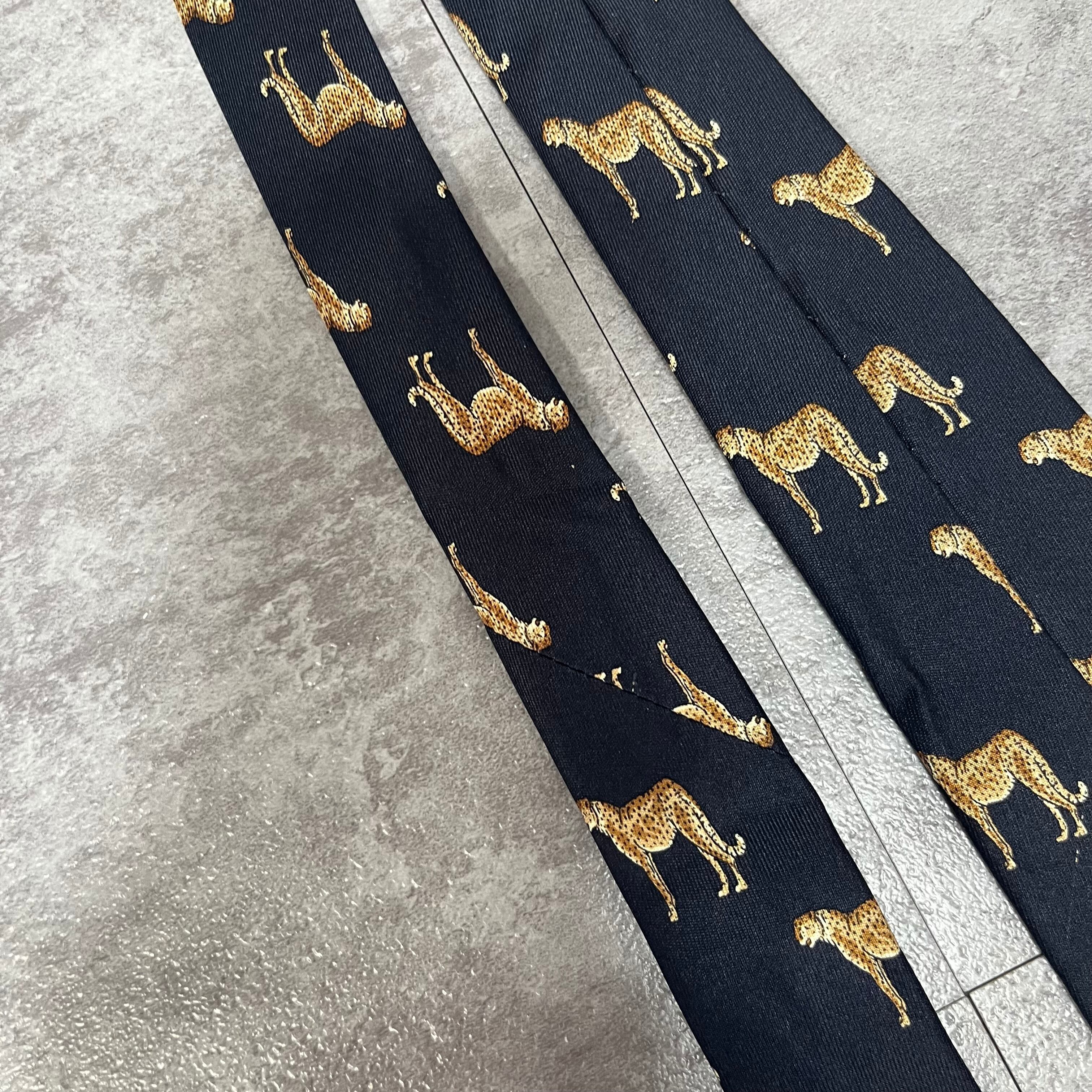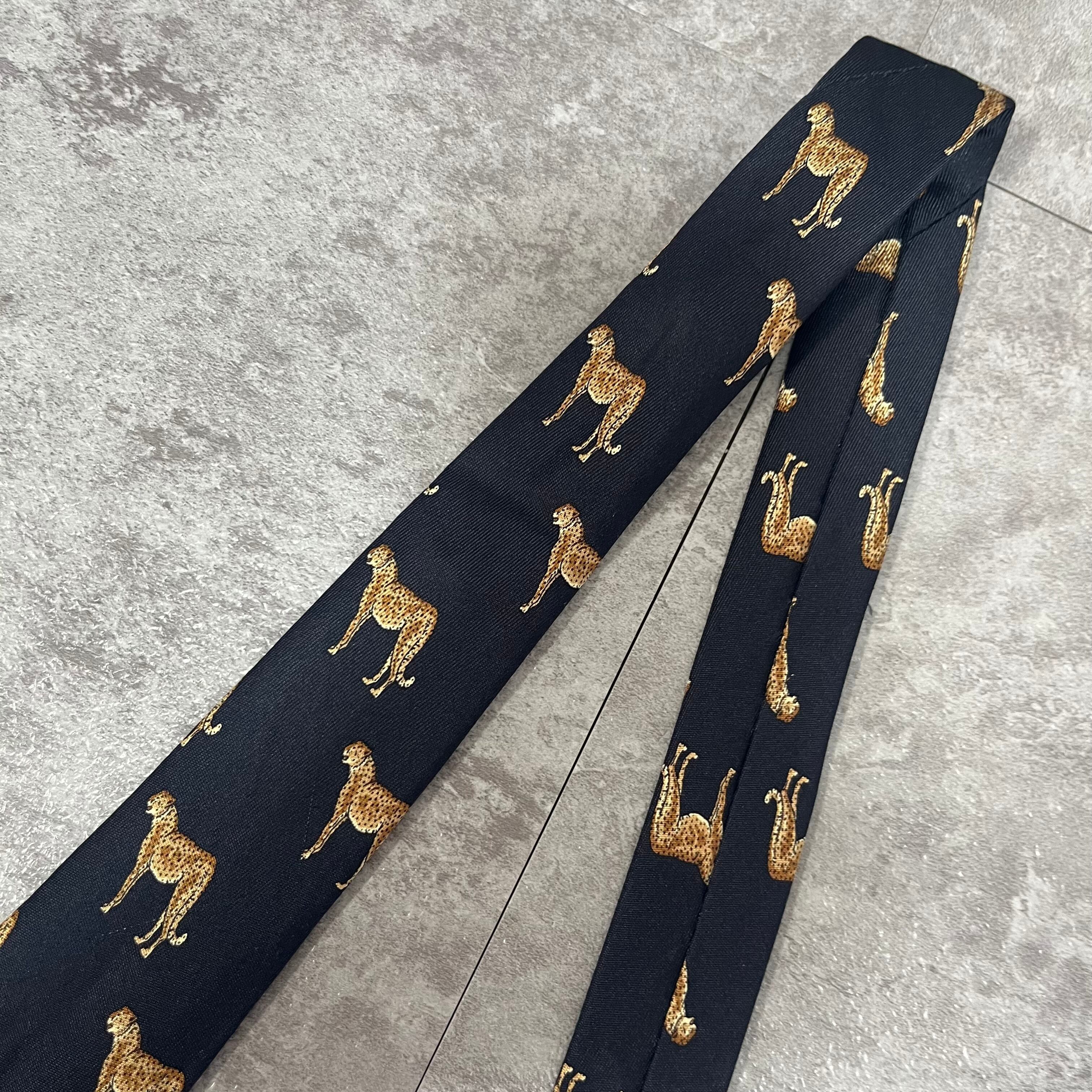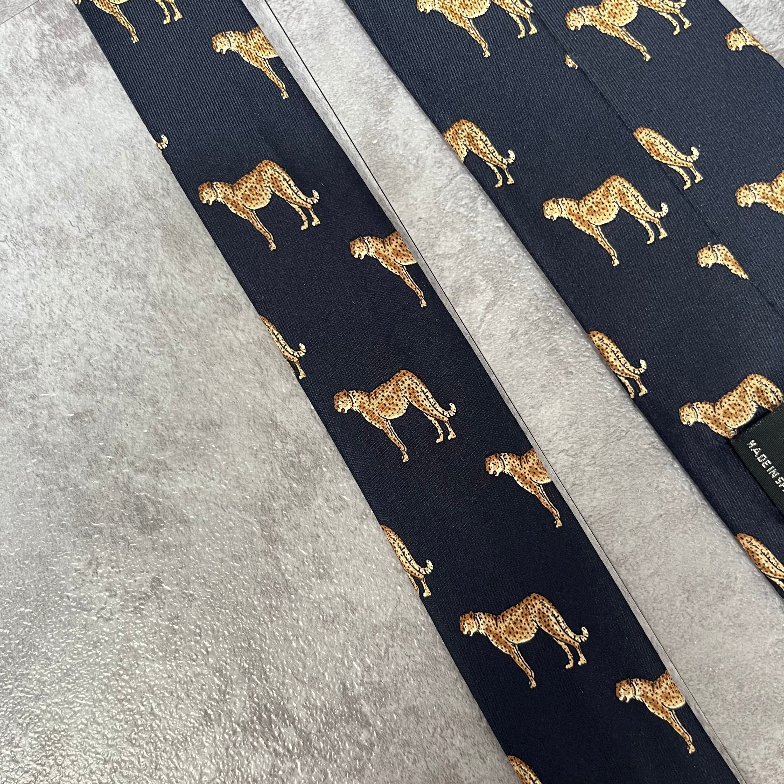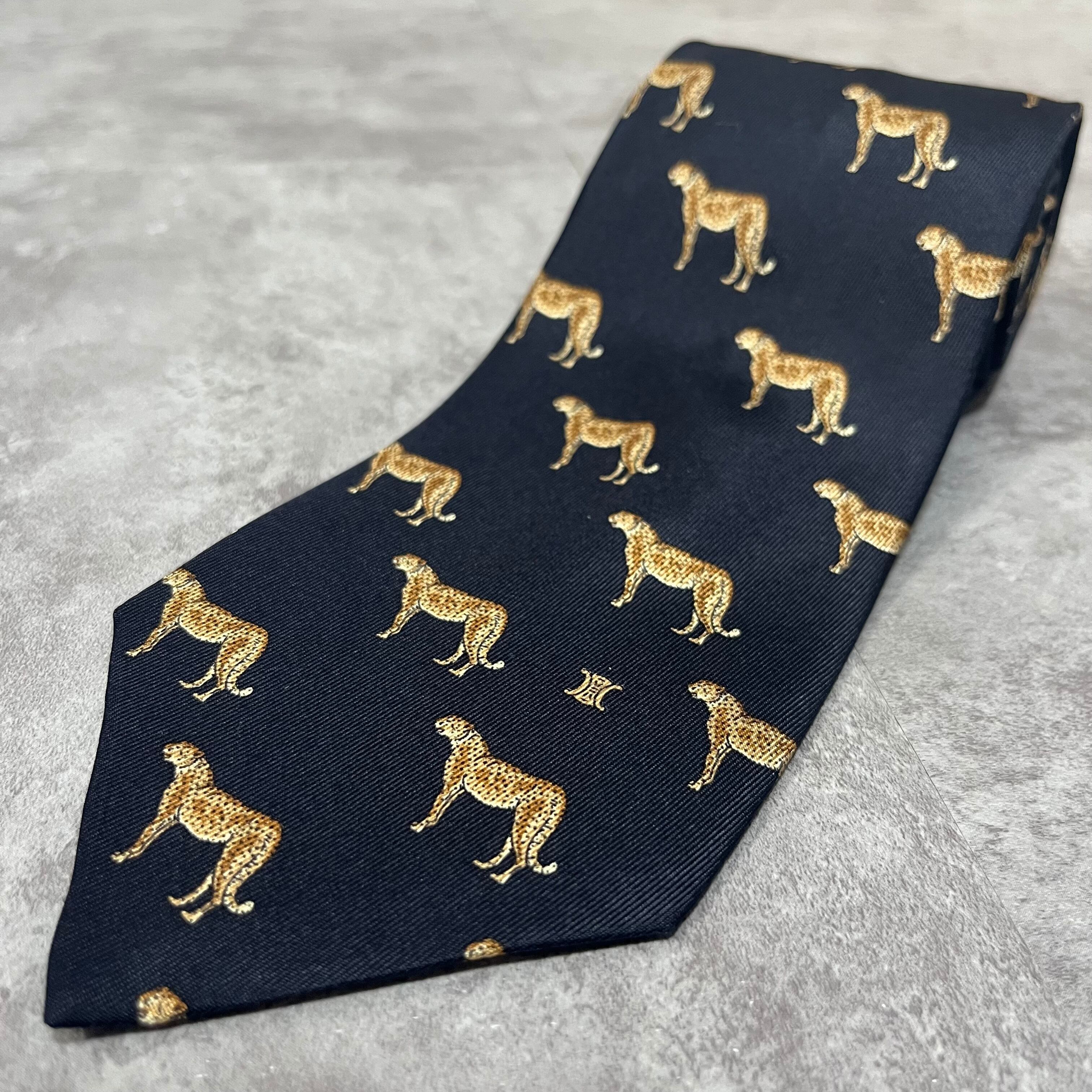 【CELINE】ロゴ入りアニマル柄ネクタイ 豹柄 ヒョウ チーター ジャガー トリオンフロゴ