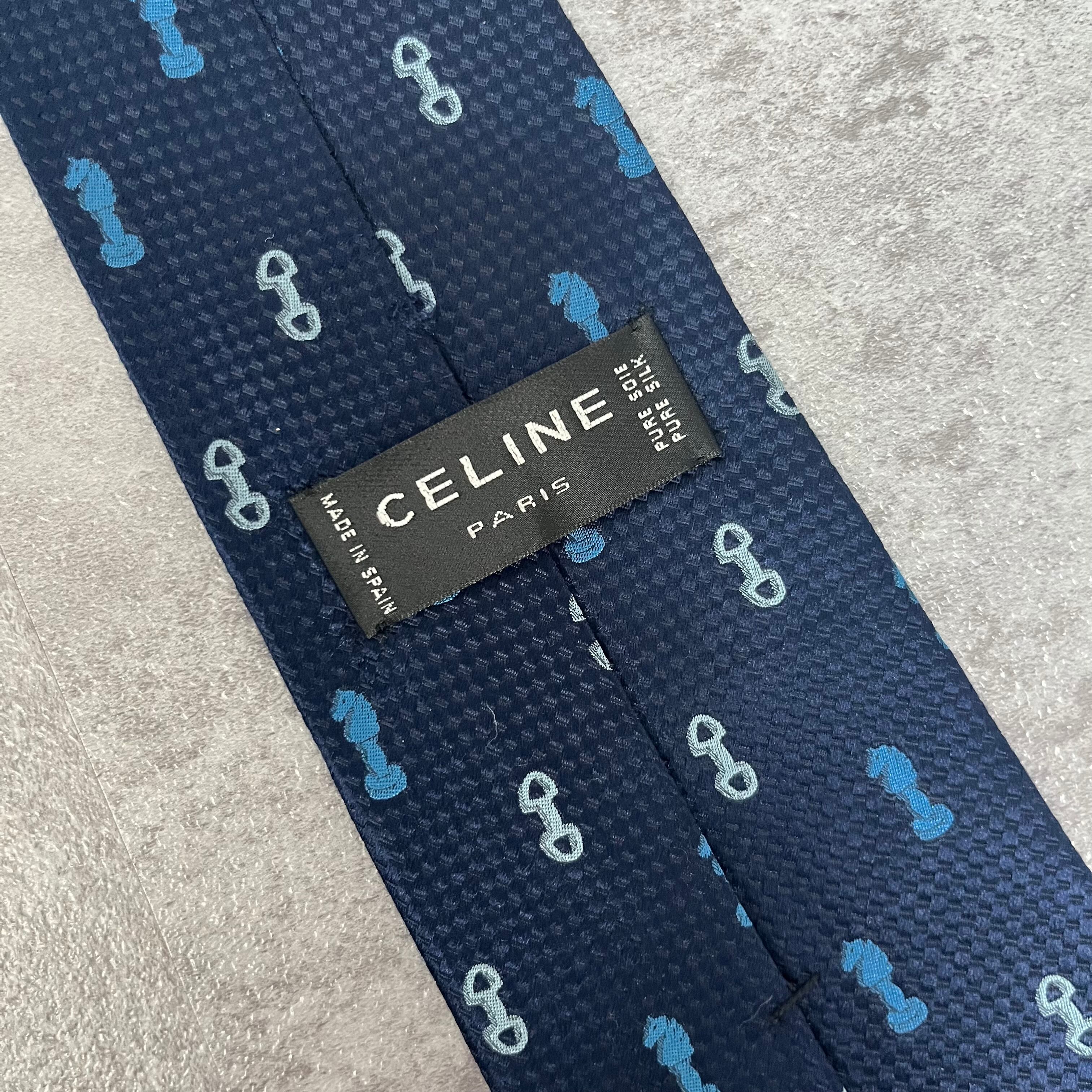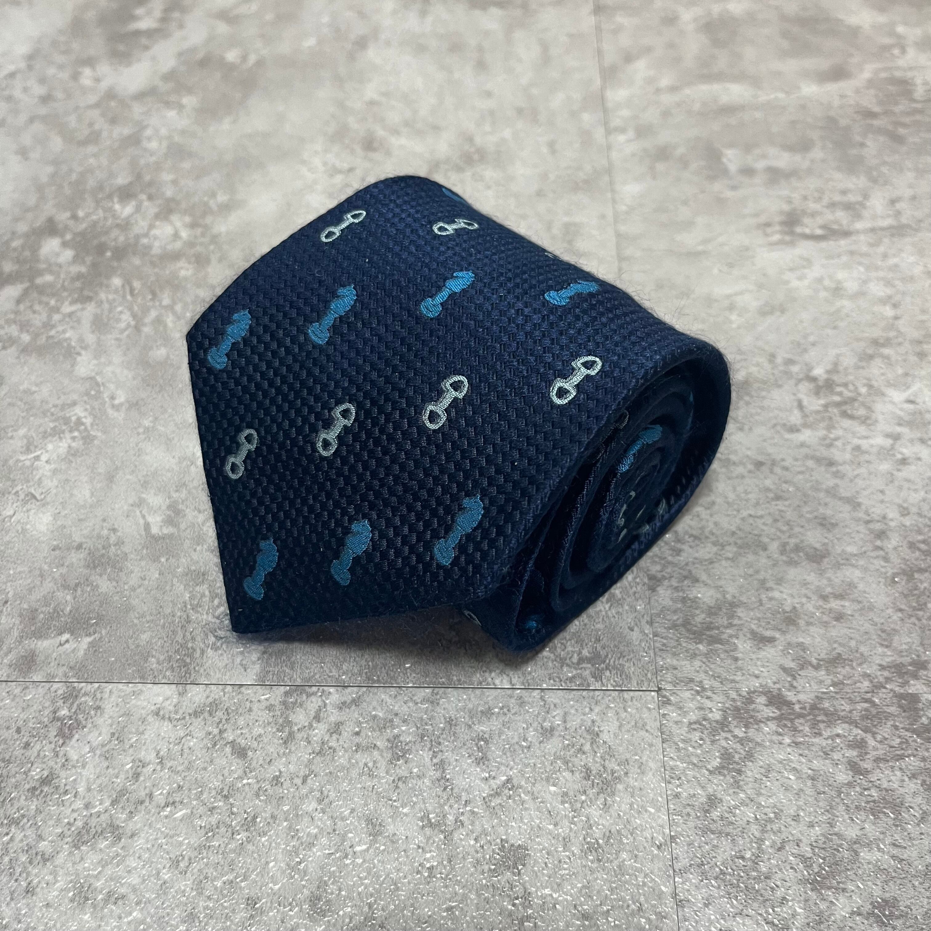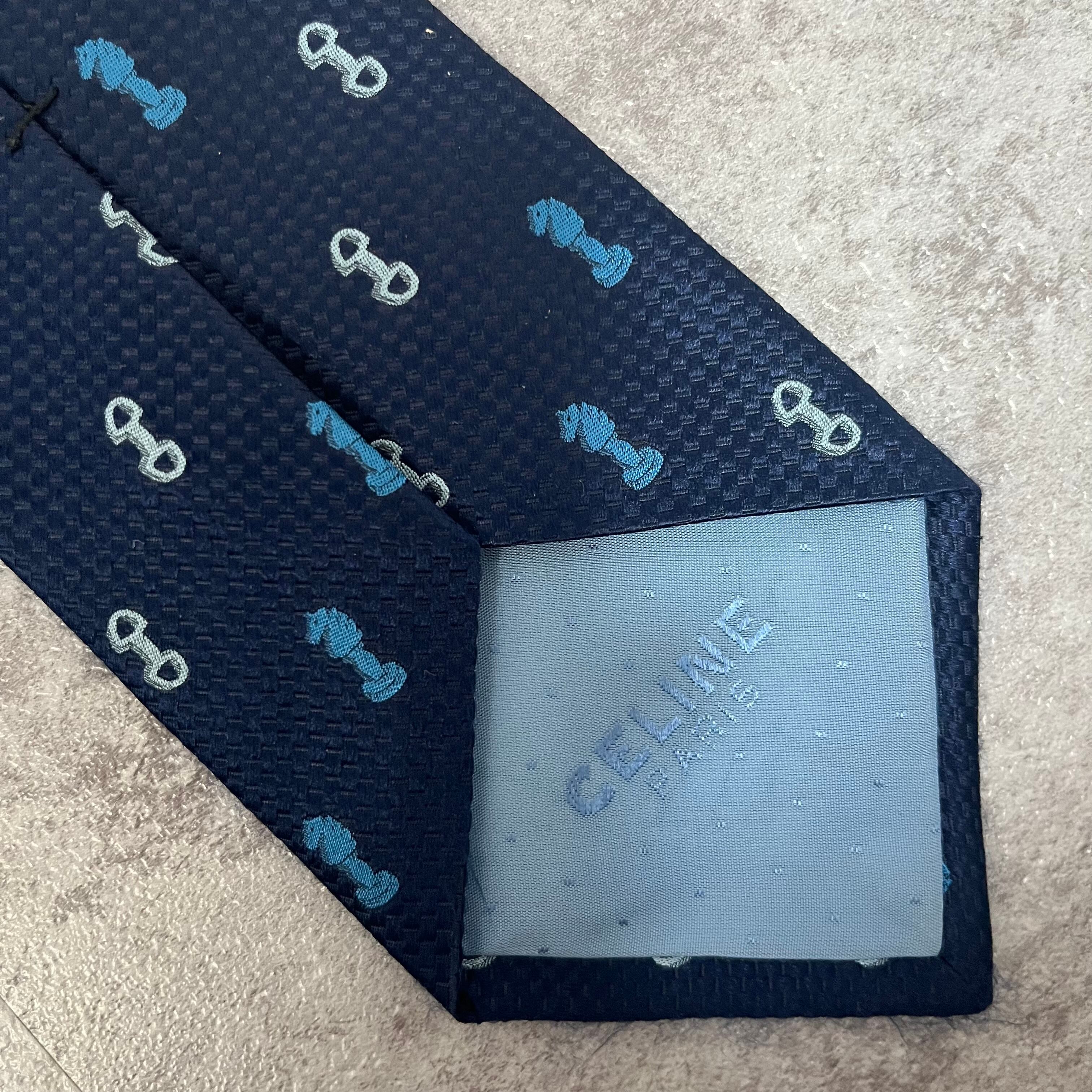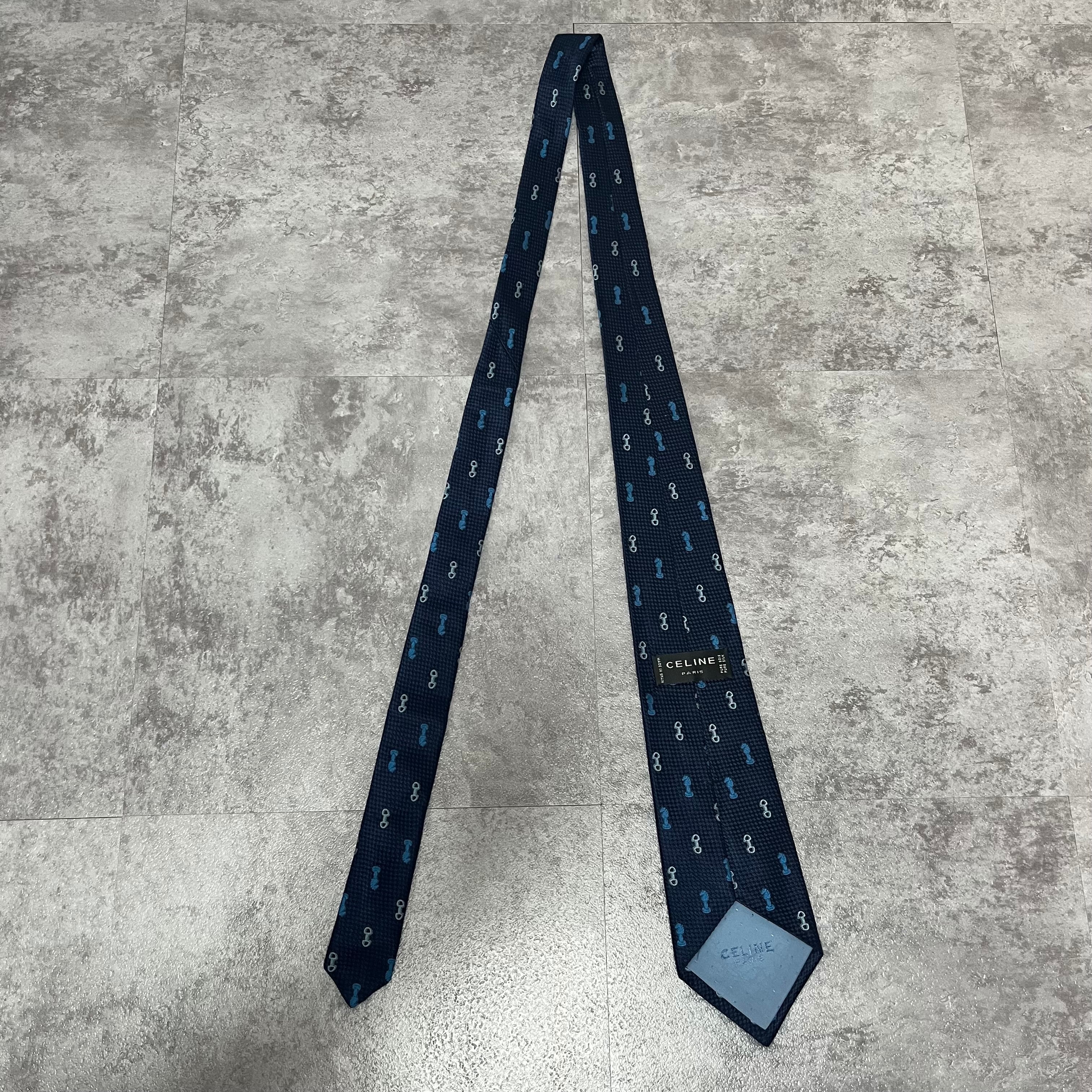 【CELINE】ホースビット柄ネクタイ ネイビー 小紋柄