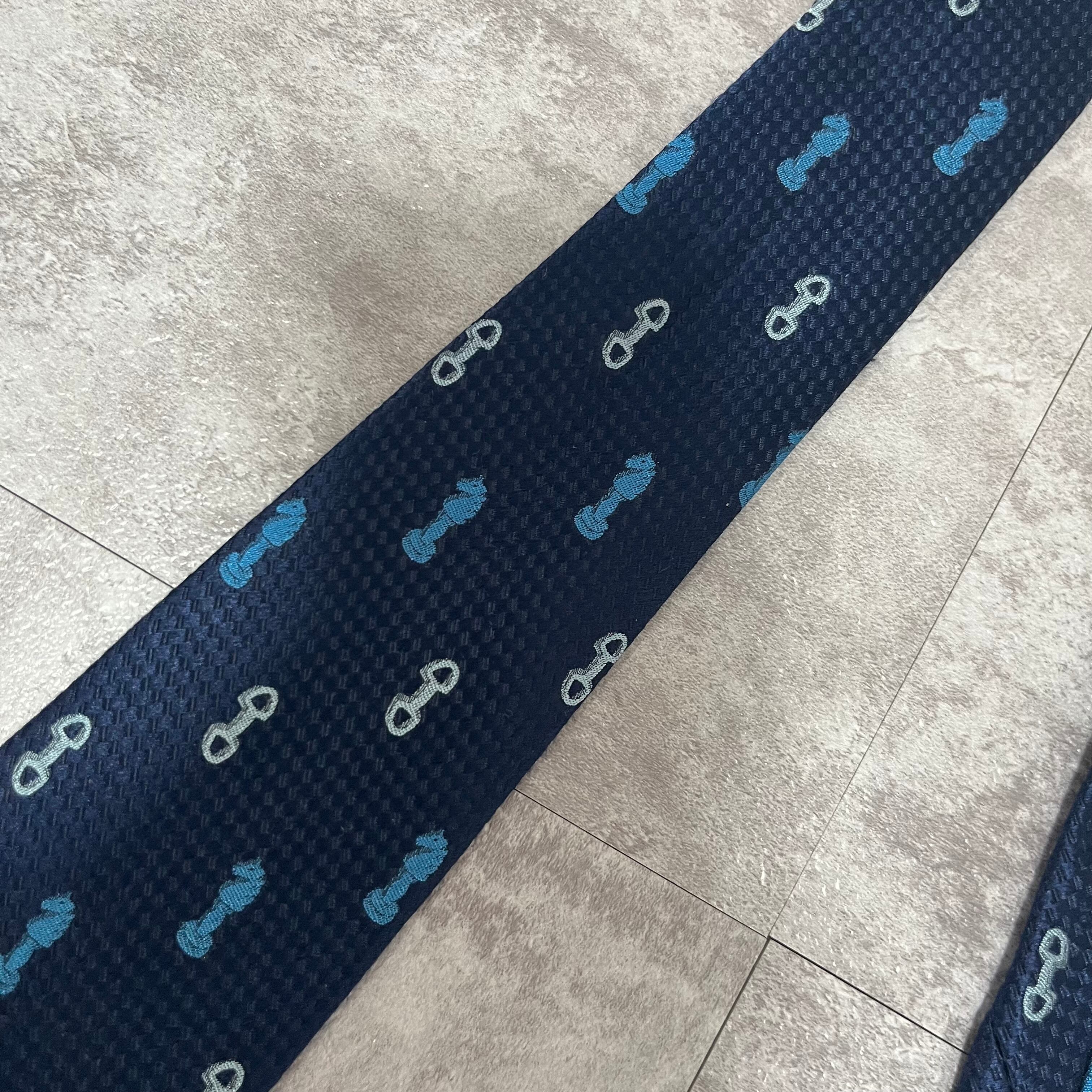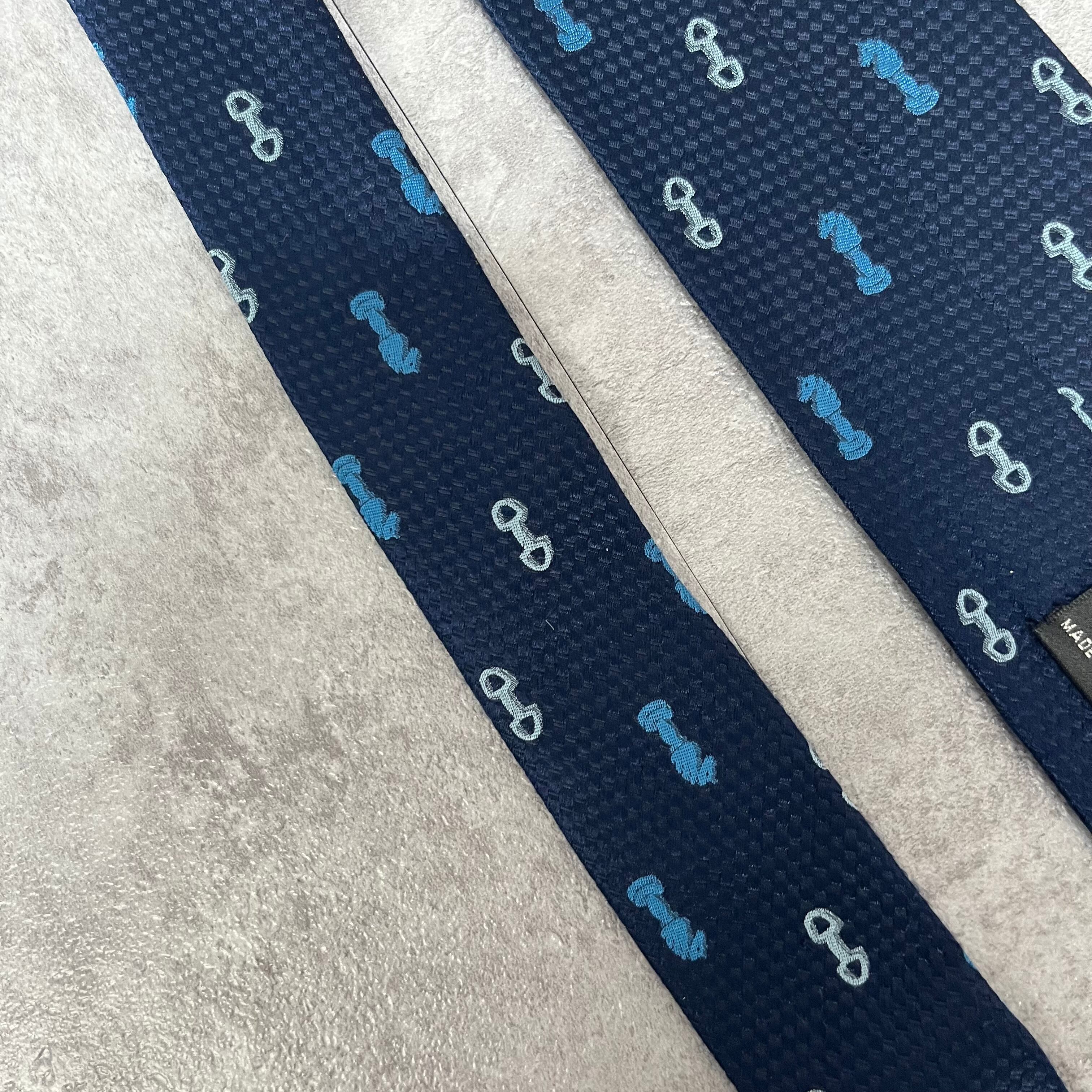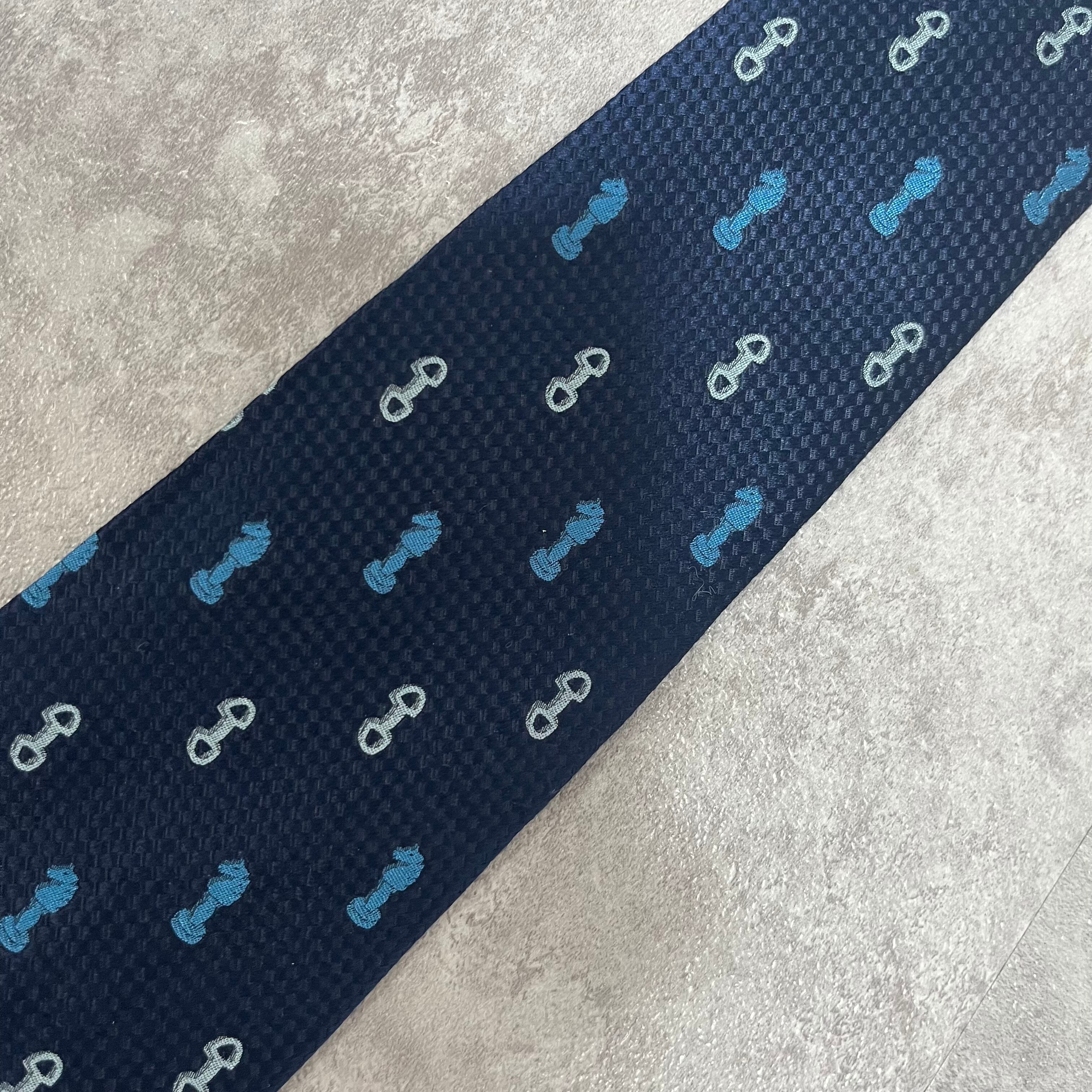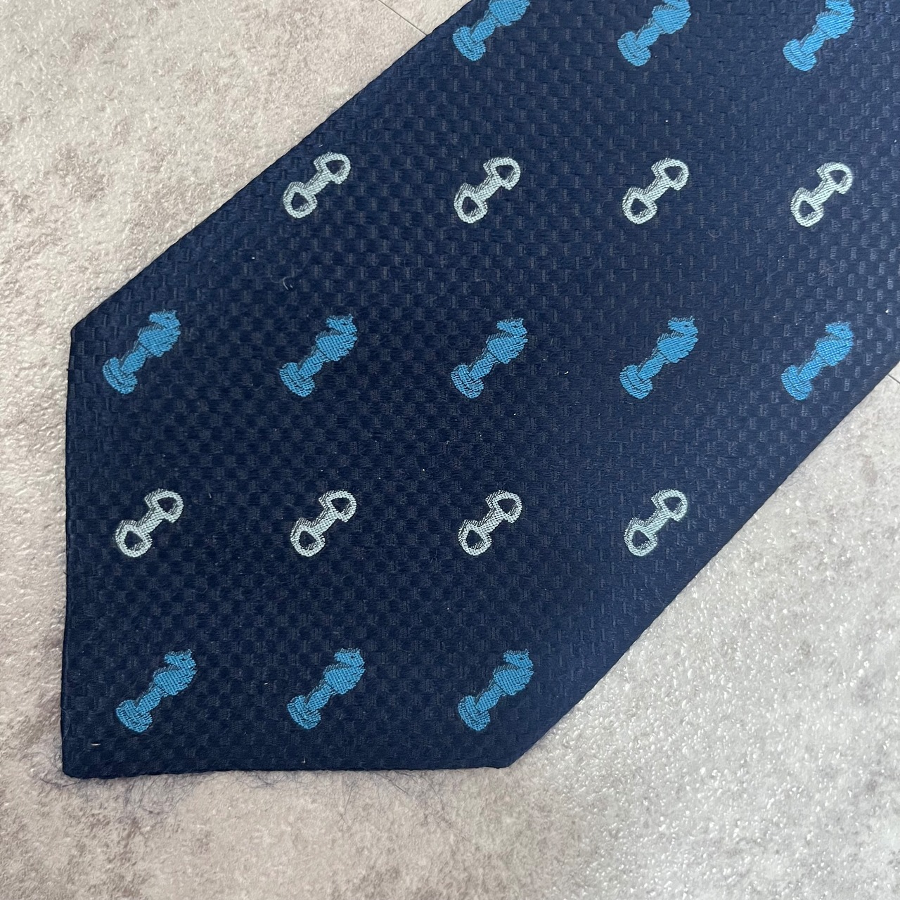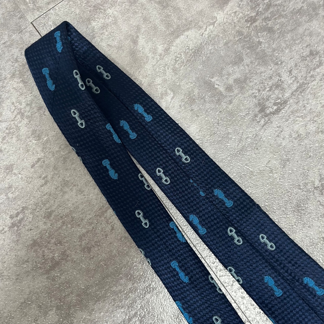 【CELINE】ホースビット柄ネクタイ ネイビー 小紋柄