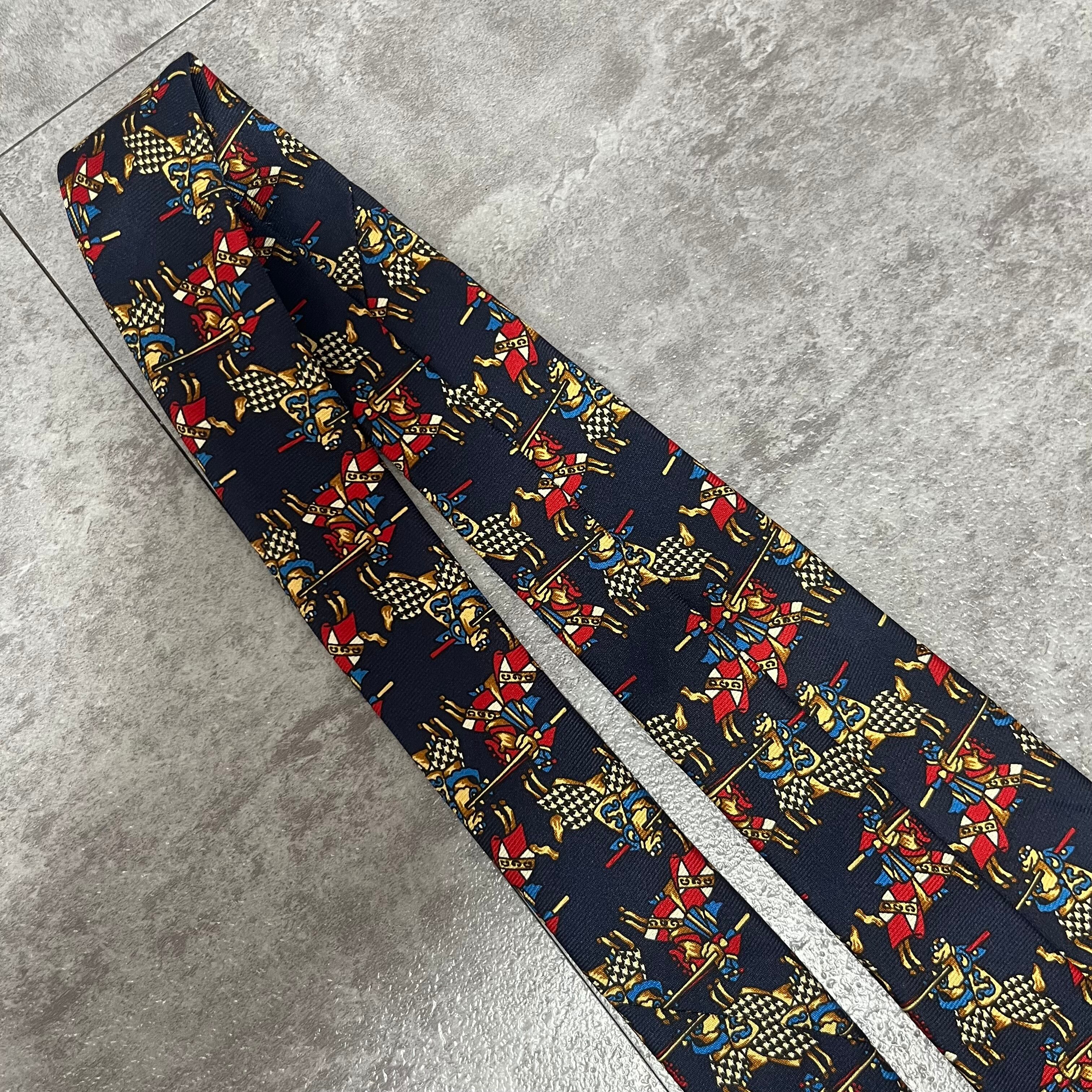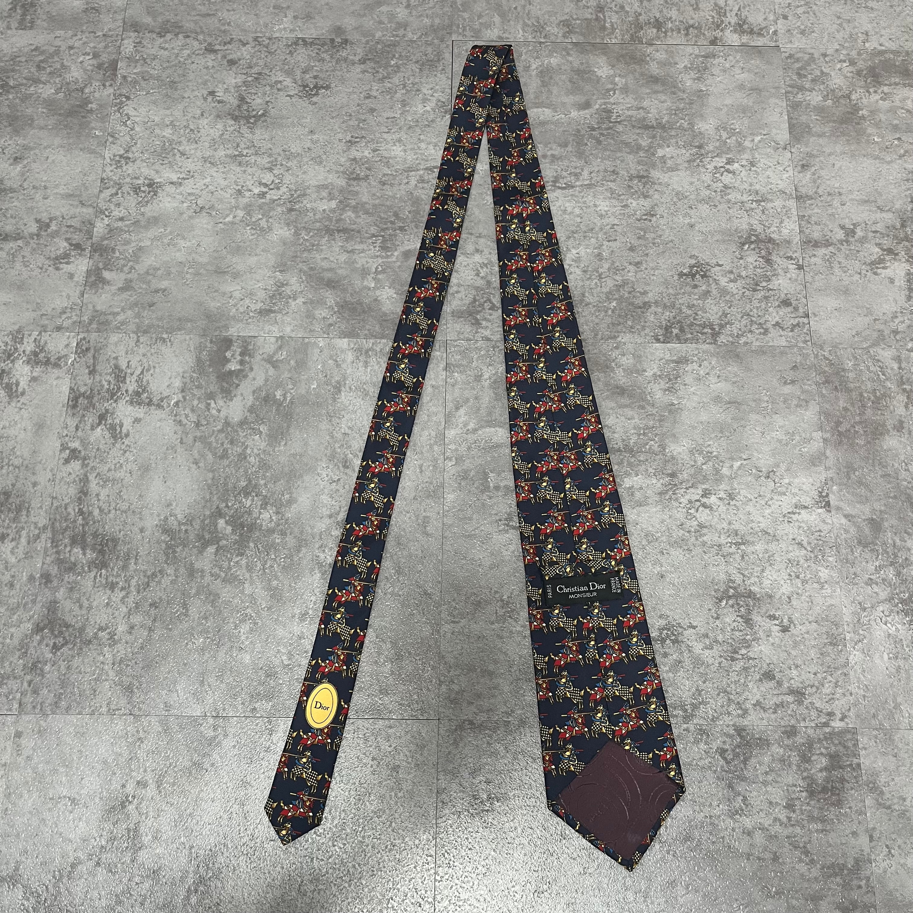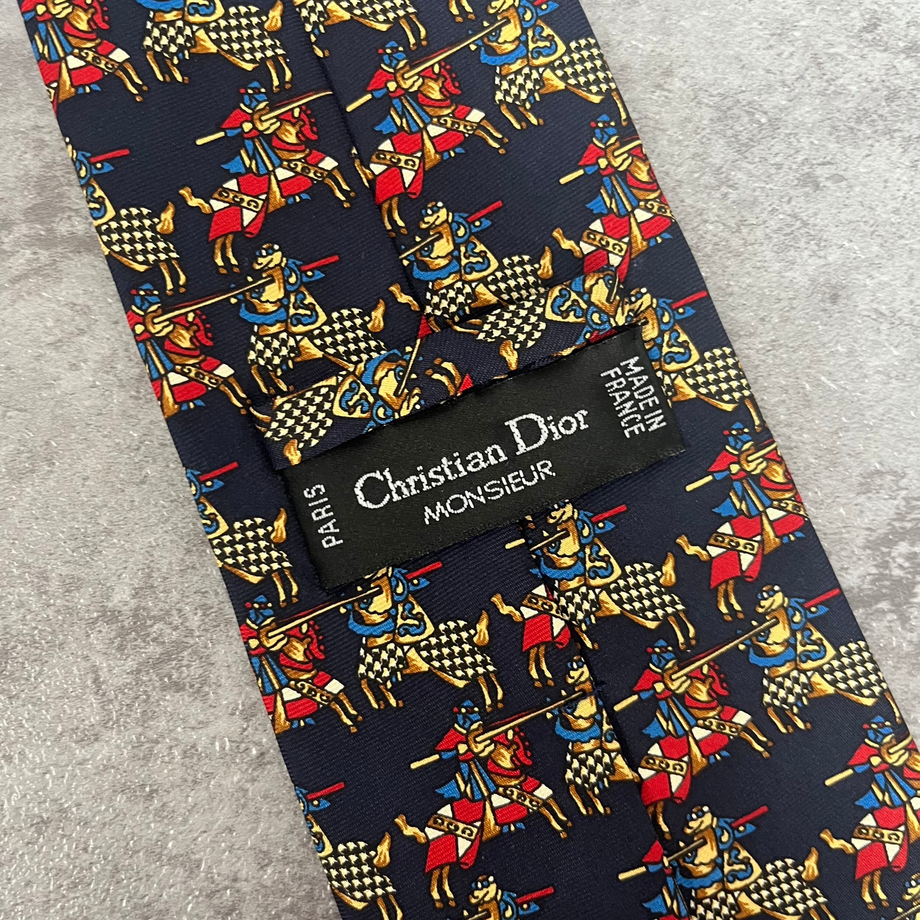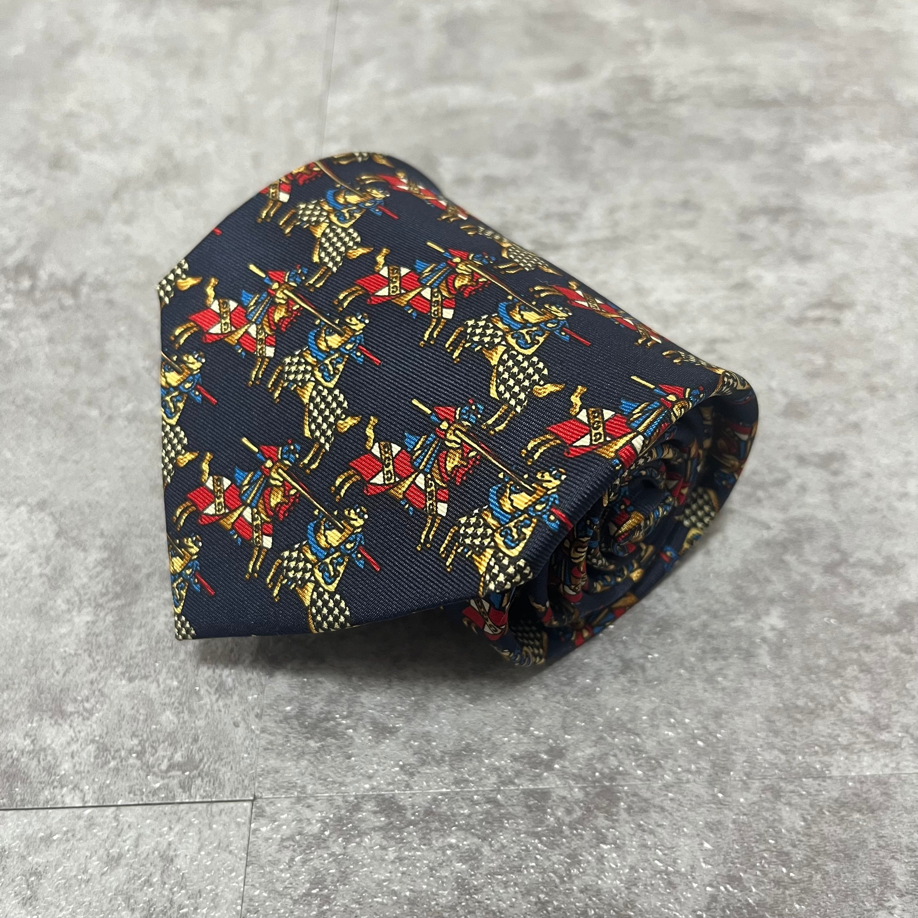 【Christian Dior】決闘ネクタイ ネイビー 馬柄 アニマル柄 人 一騎打ち
