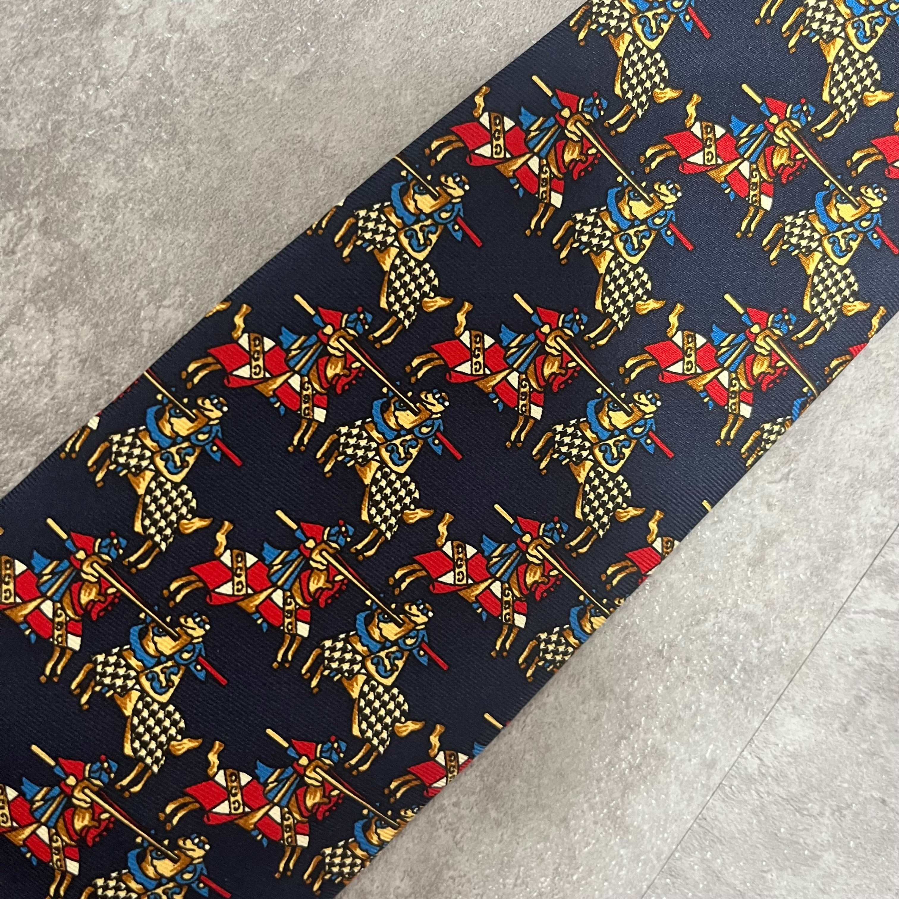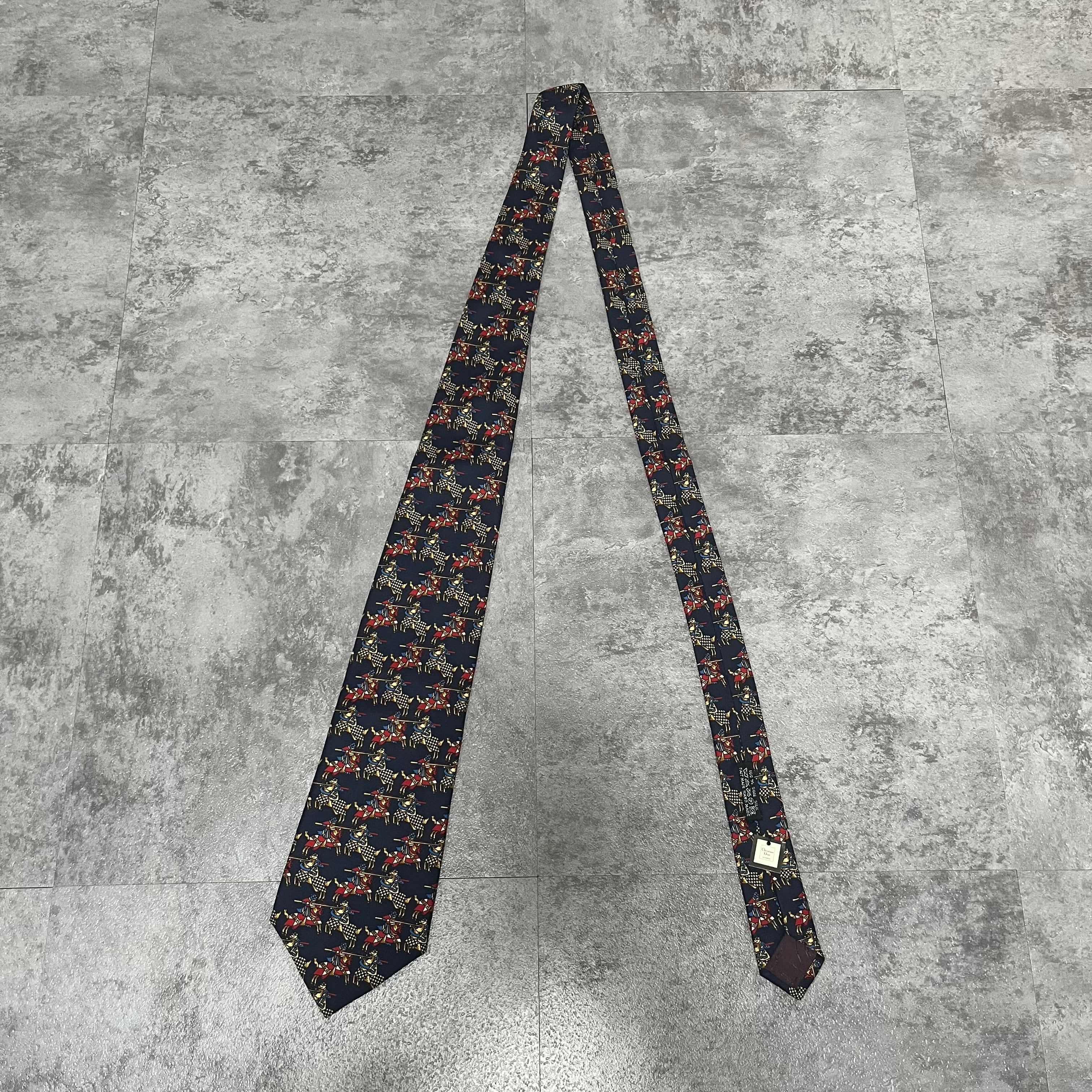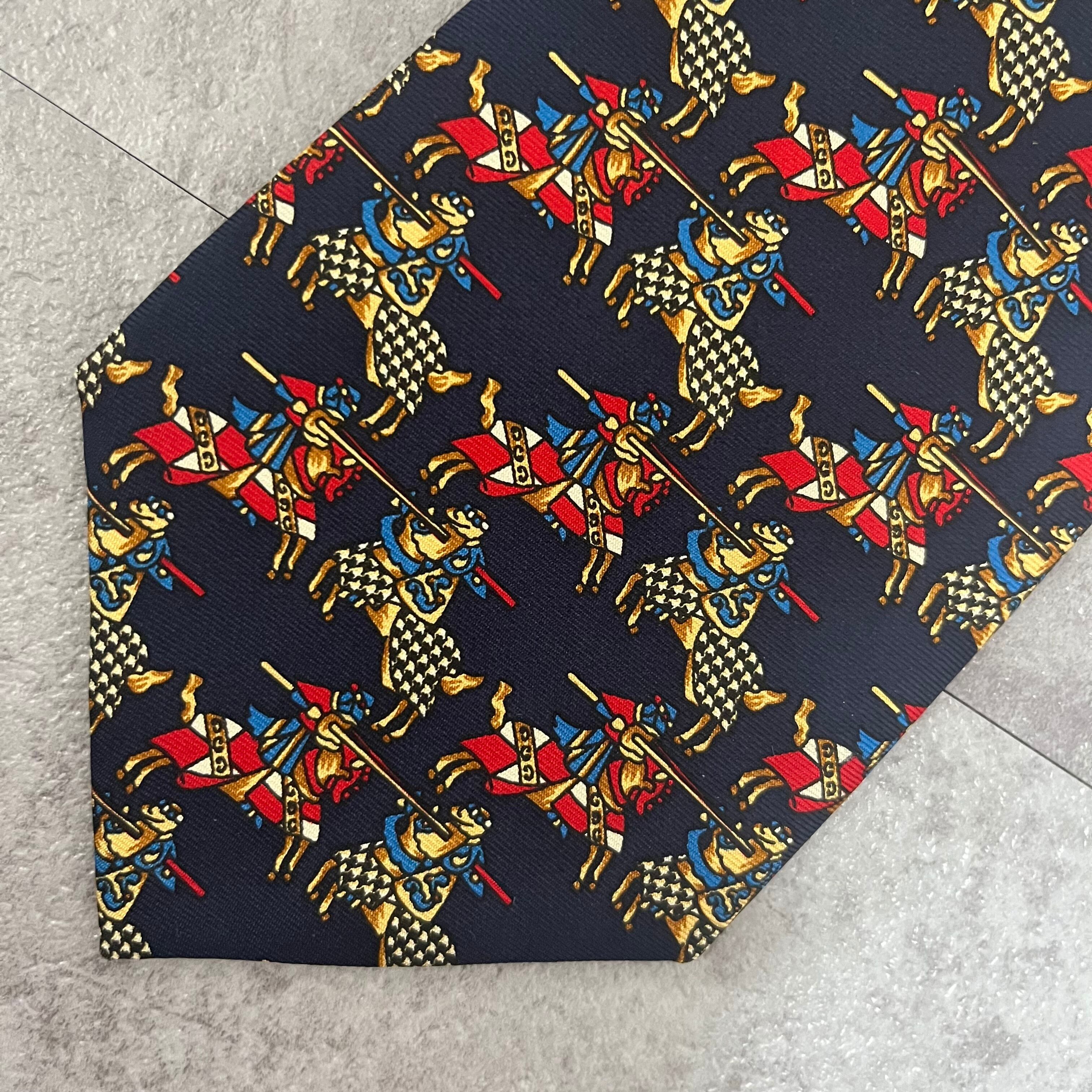 【Christian Dior】決闘ネクタイ ネイビー 馬柄 アニマル柄 人 一騎打ち