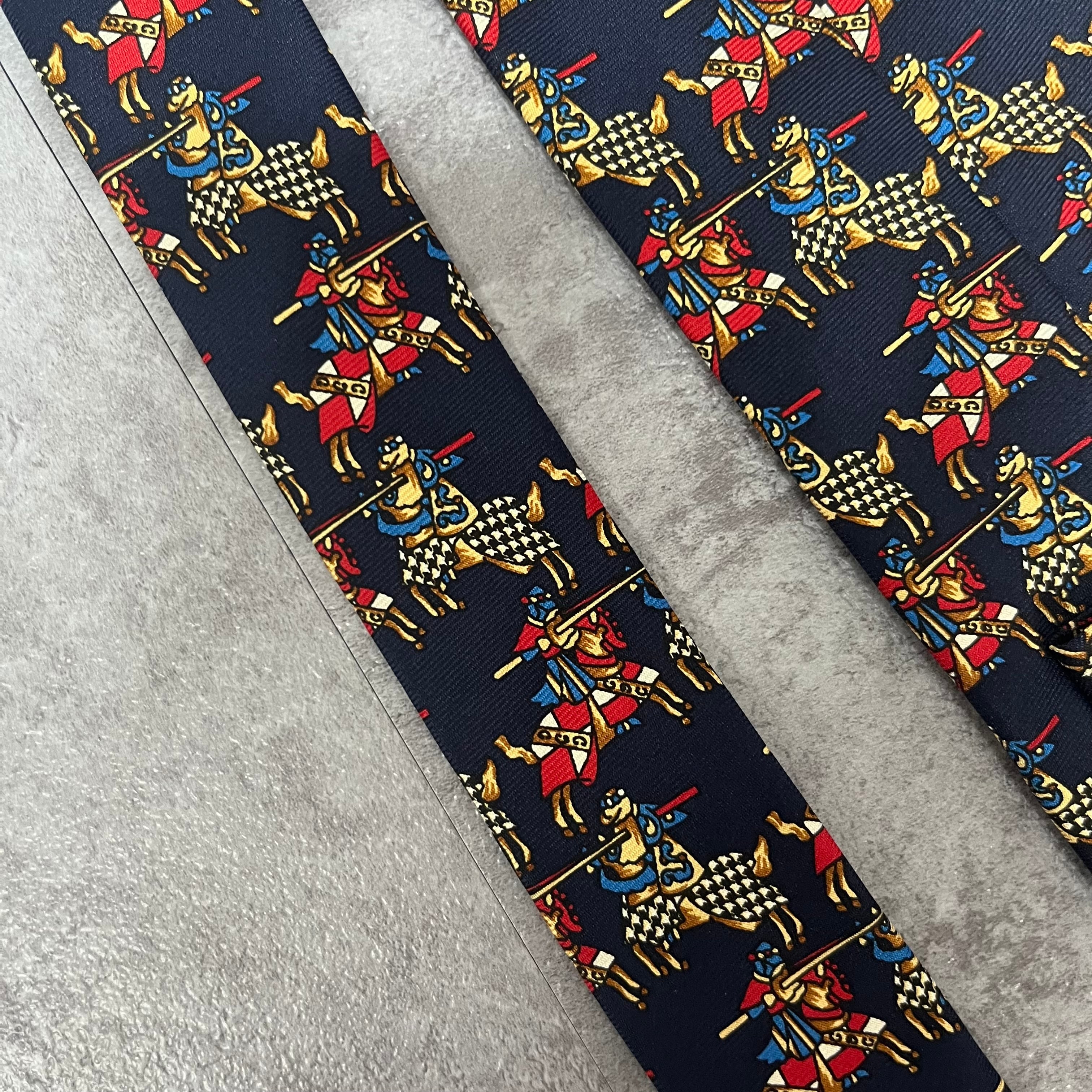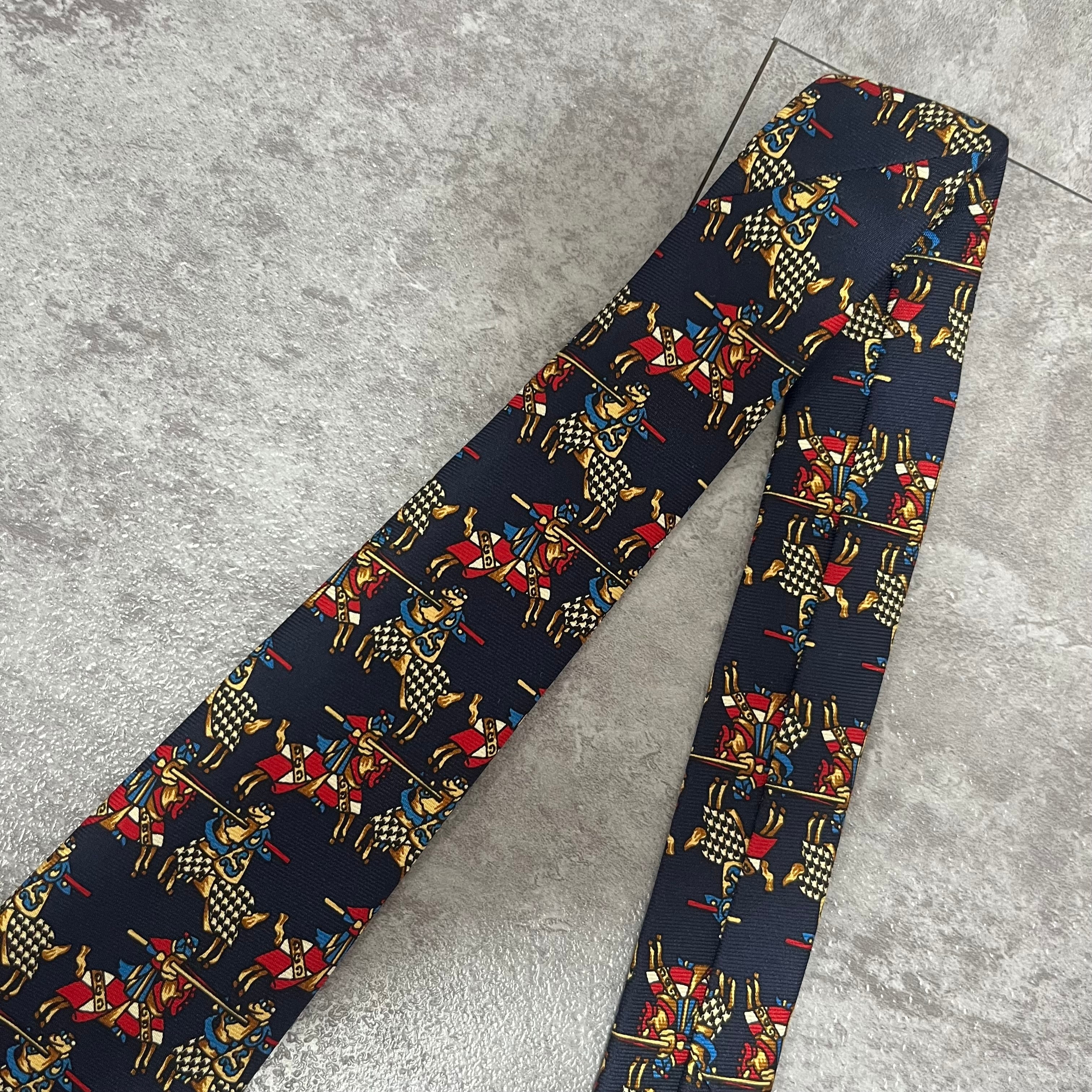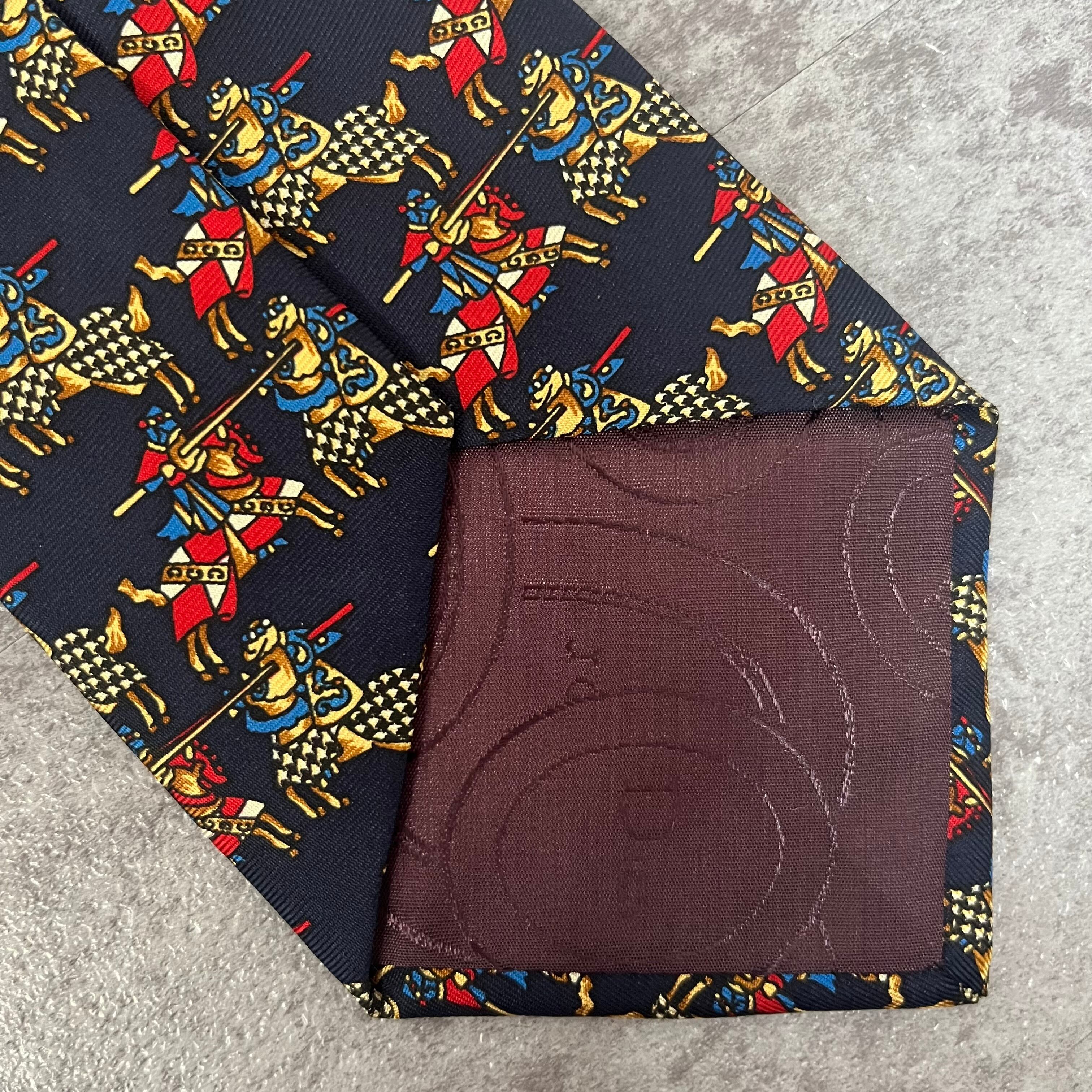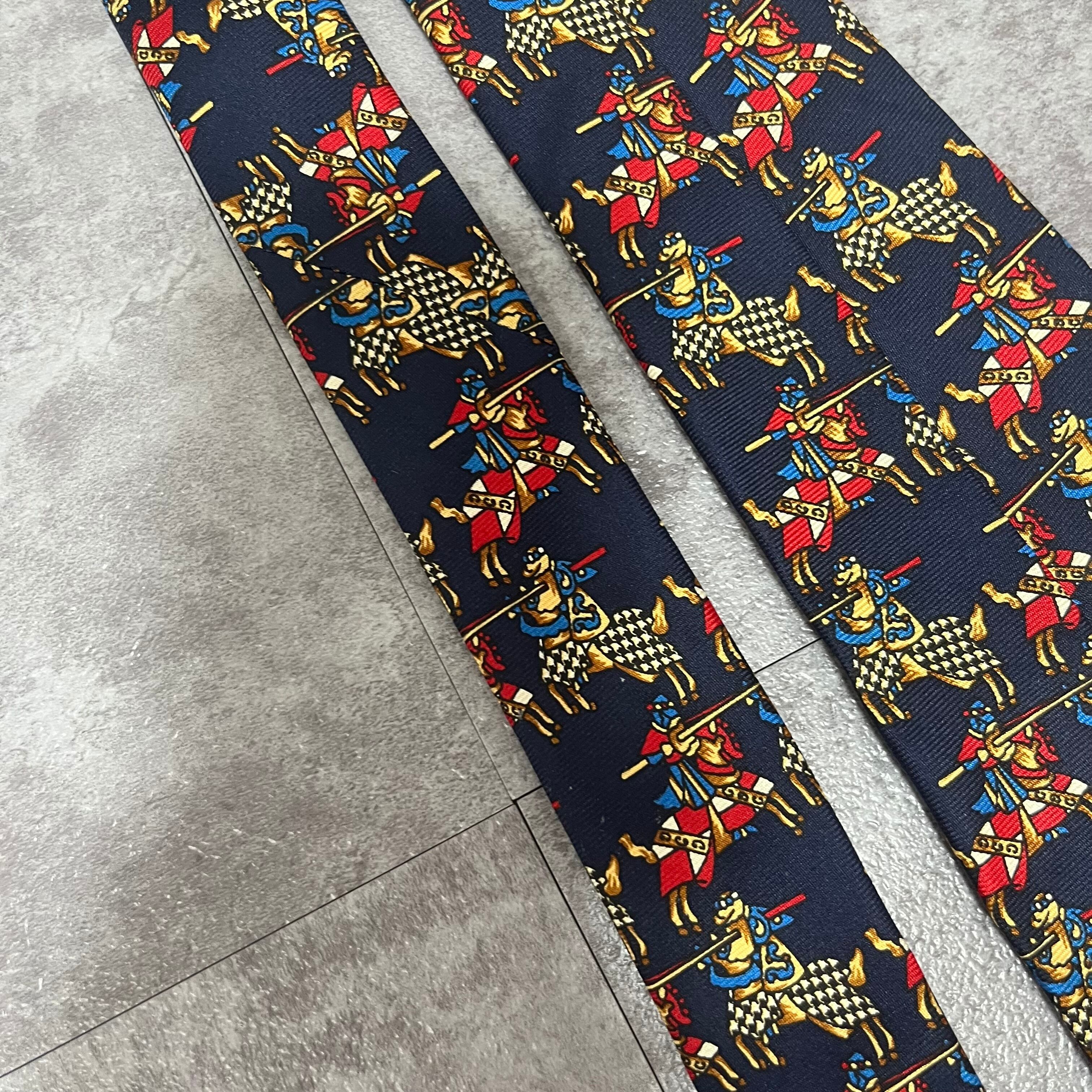 【Christian Dior】決闘ネクタイ ネイビー 馬柄 アニマル柄 人 一騎打ち