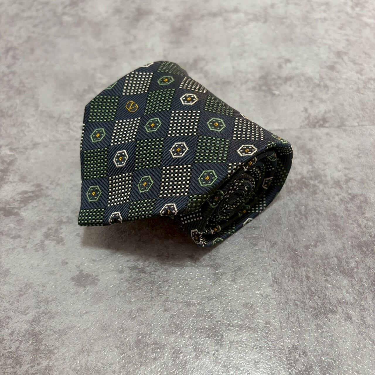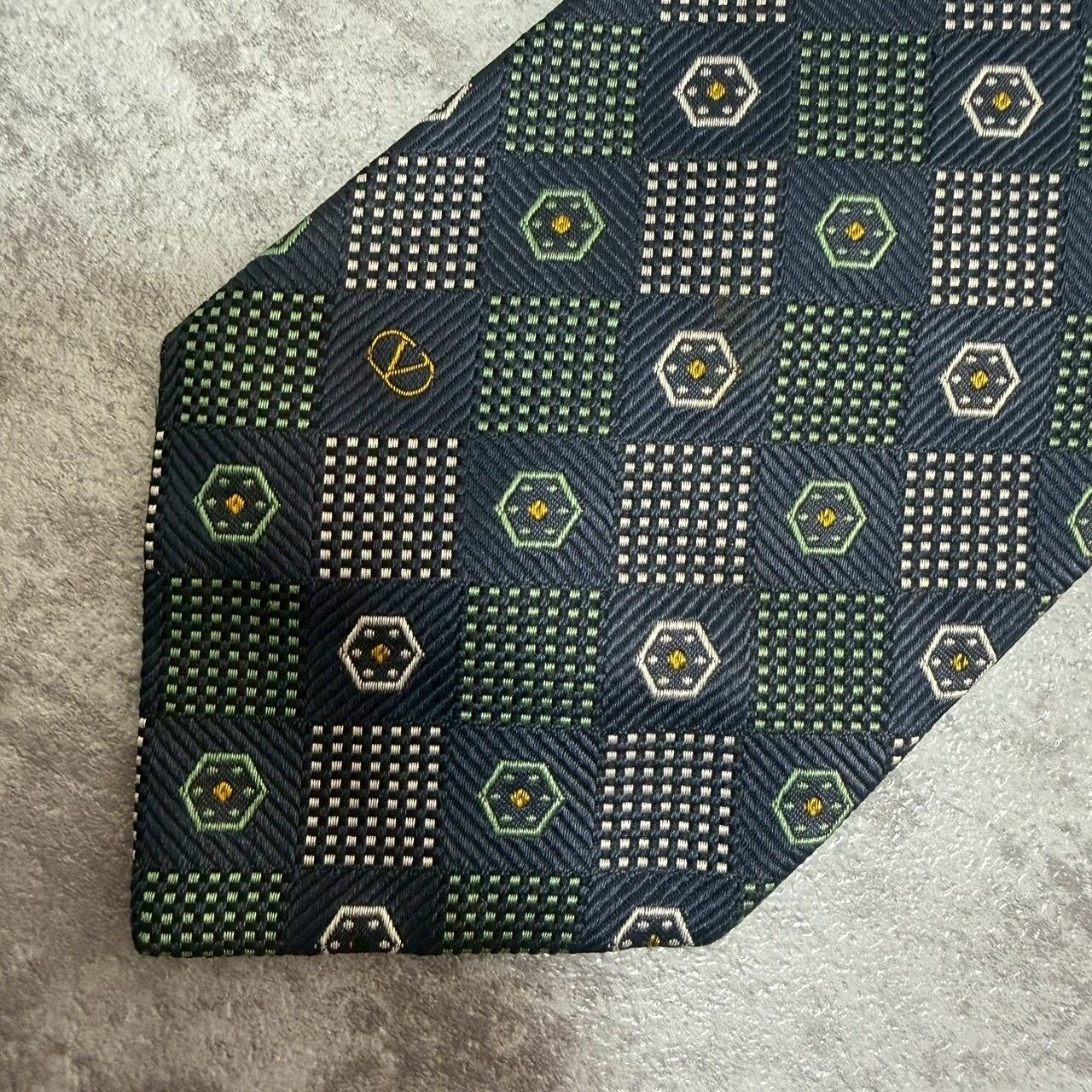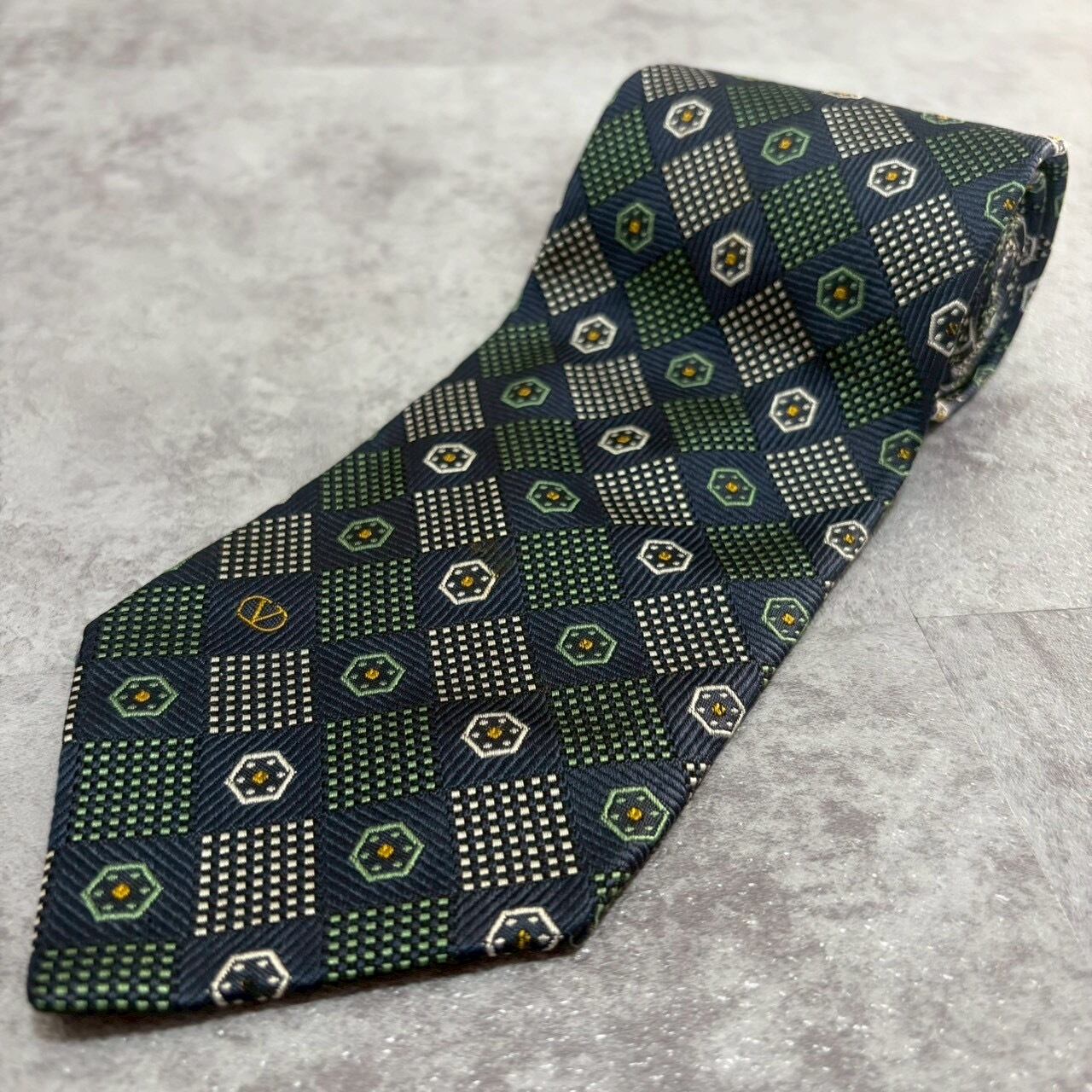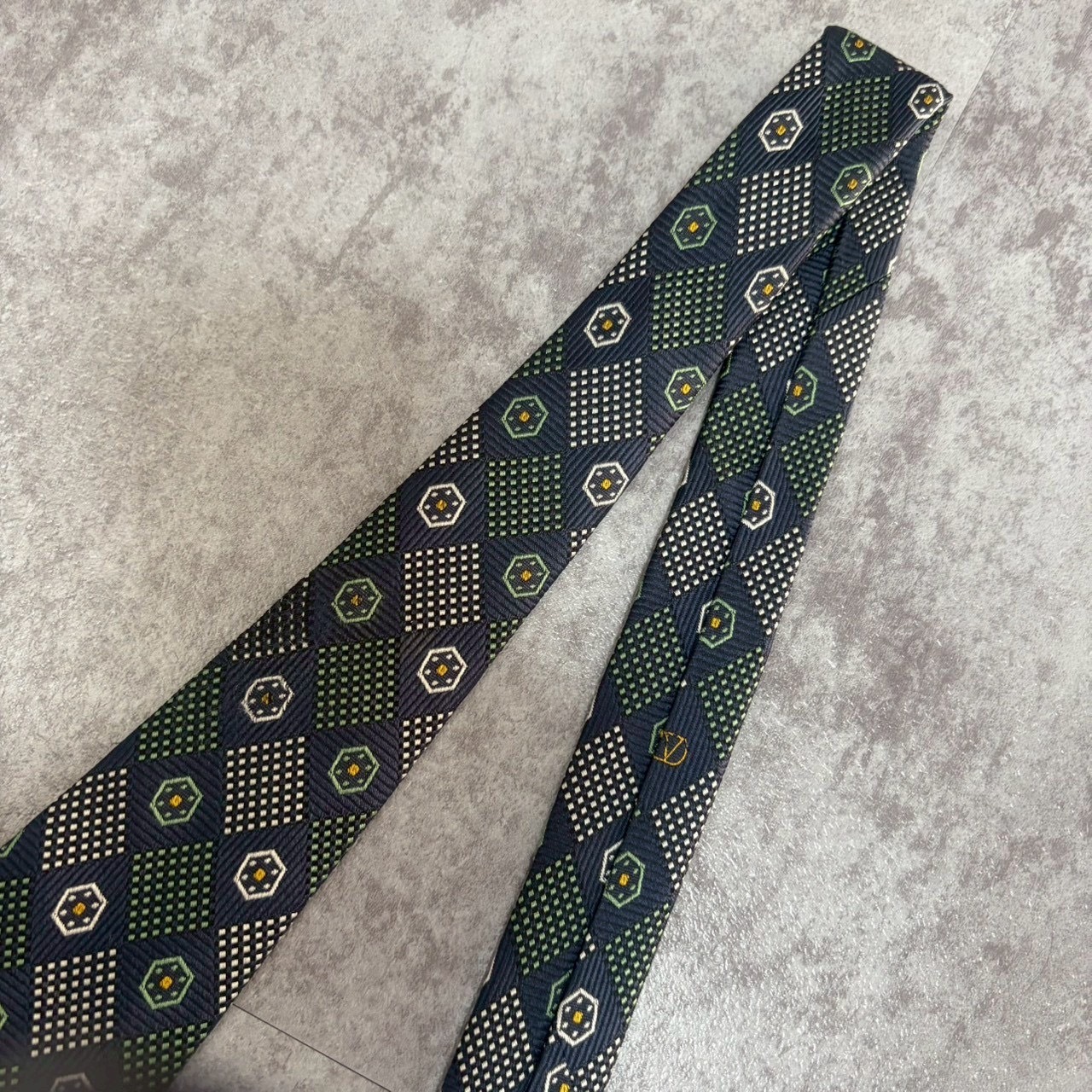 【VALENTINO】ロゴ入りチェック柄ネクタイ ネイビー ブルー アーガイルチェック