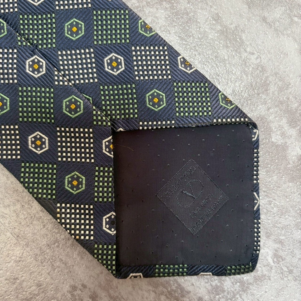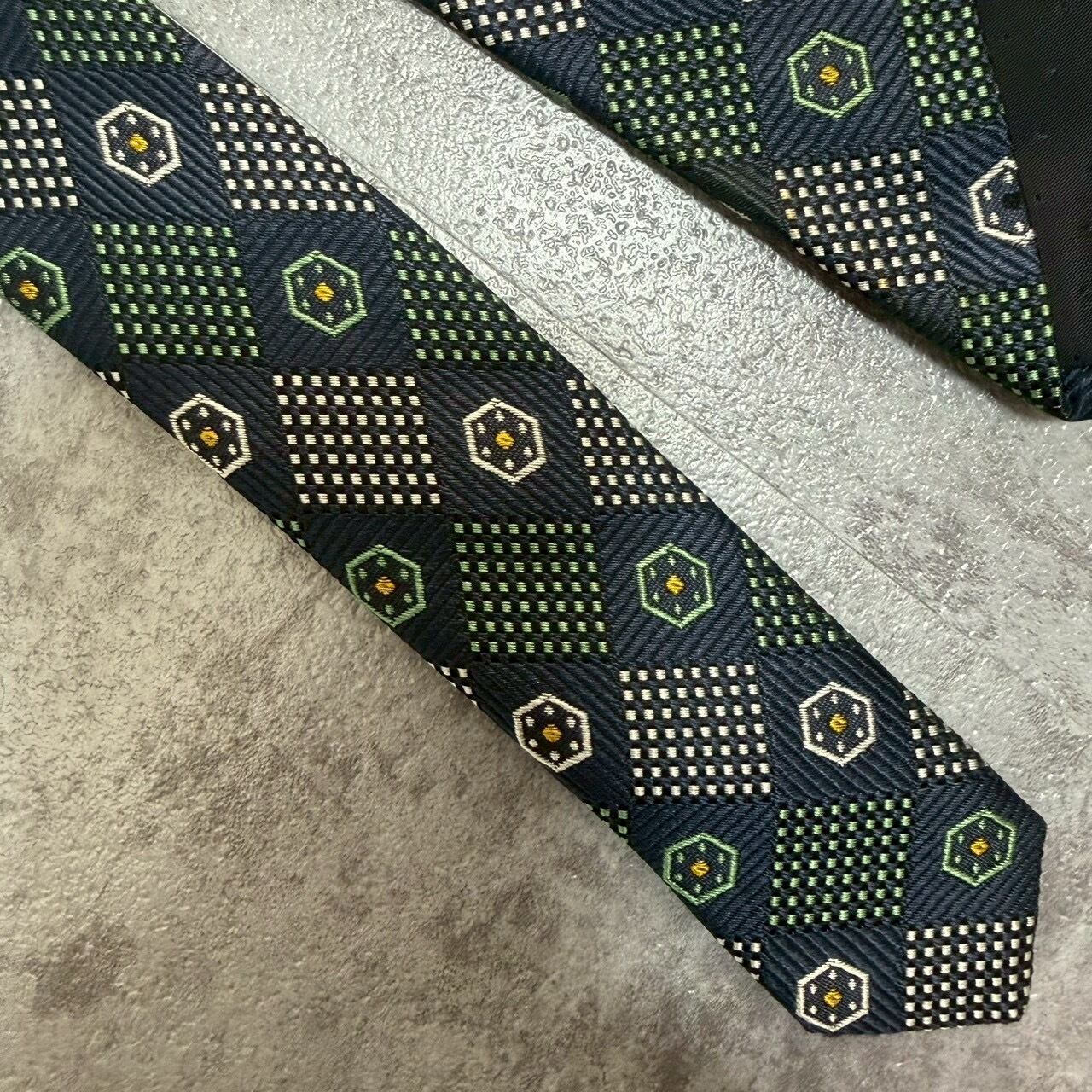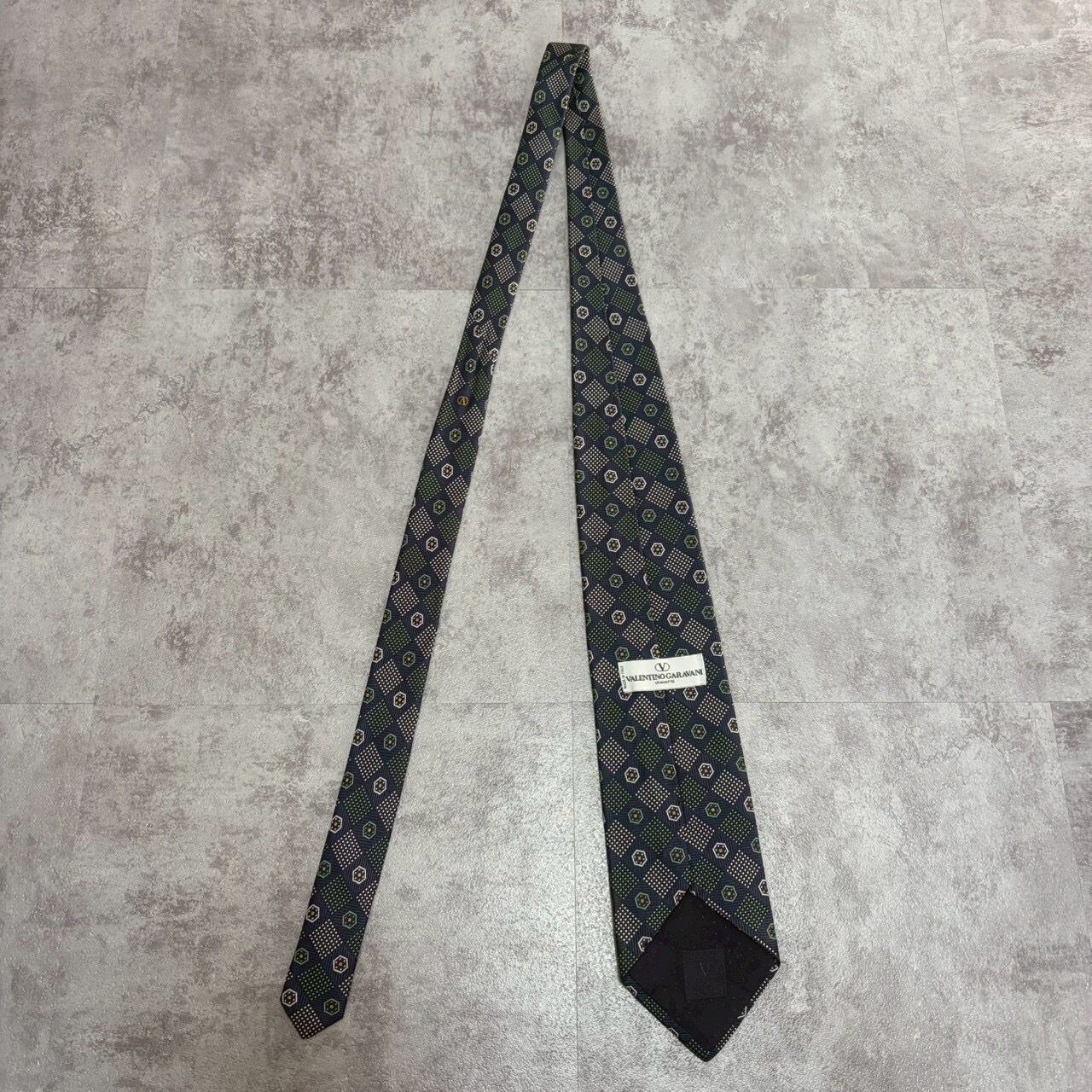 【VALENTINO】ロゴ入りチェック柄ネクタイ ネイビー ブルー アーガイルチェック