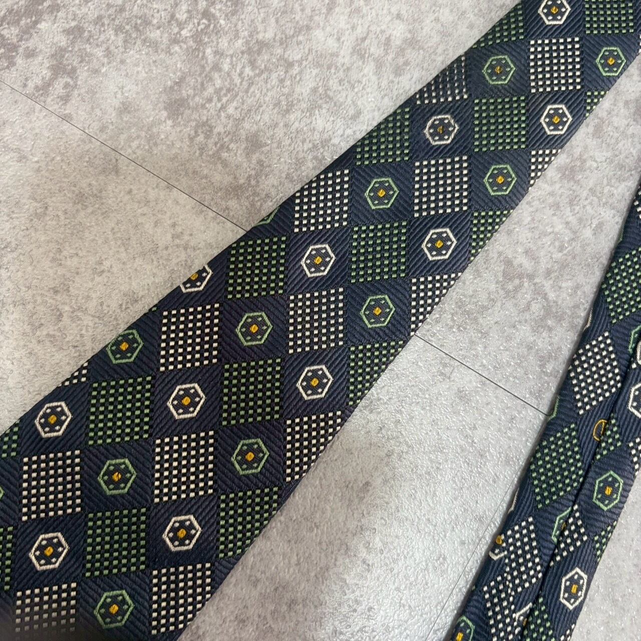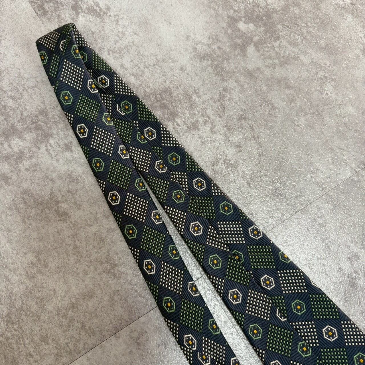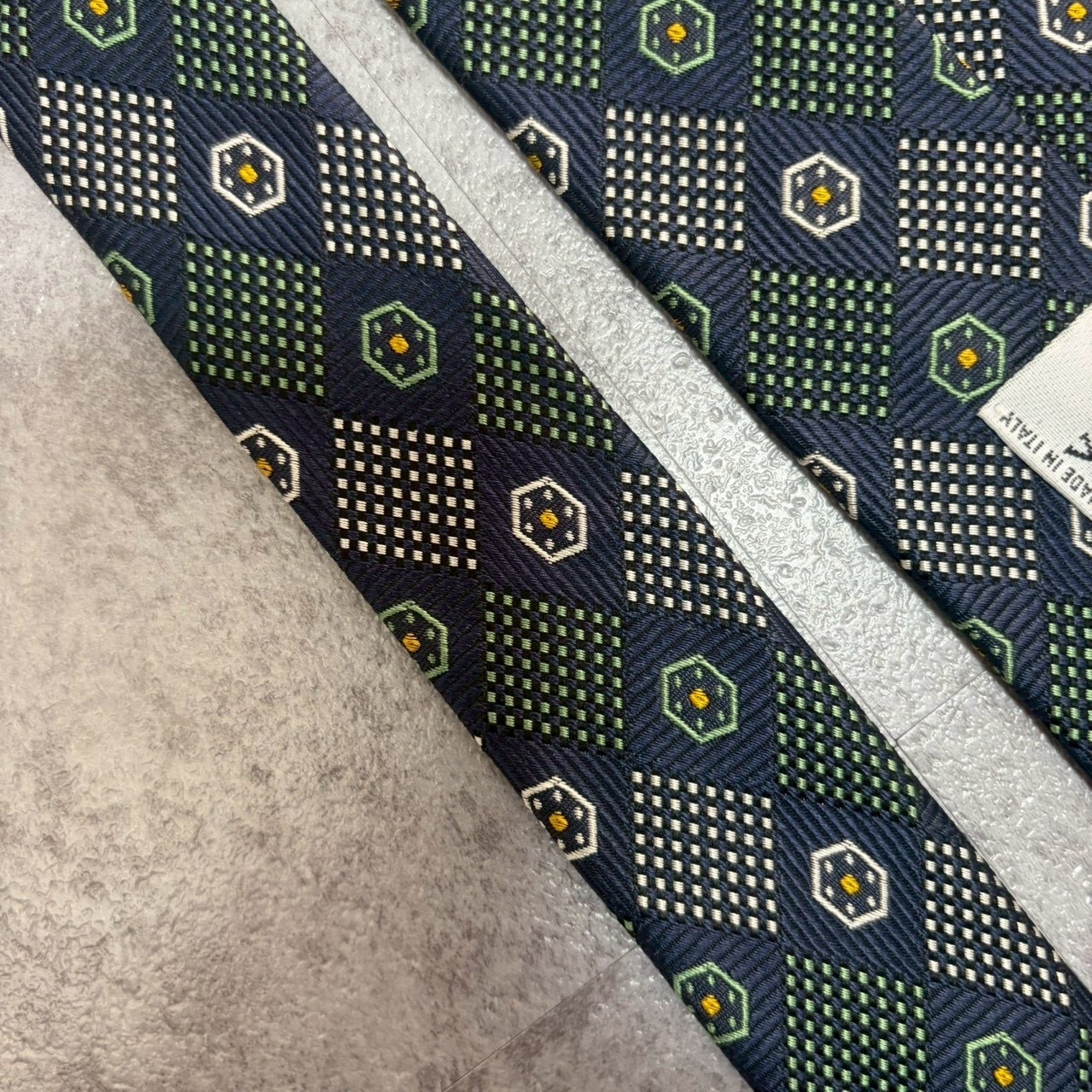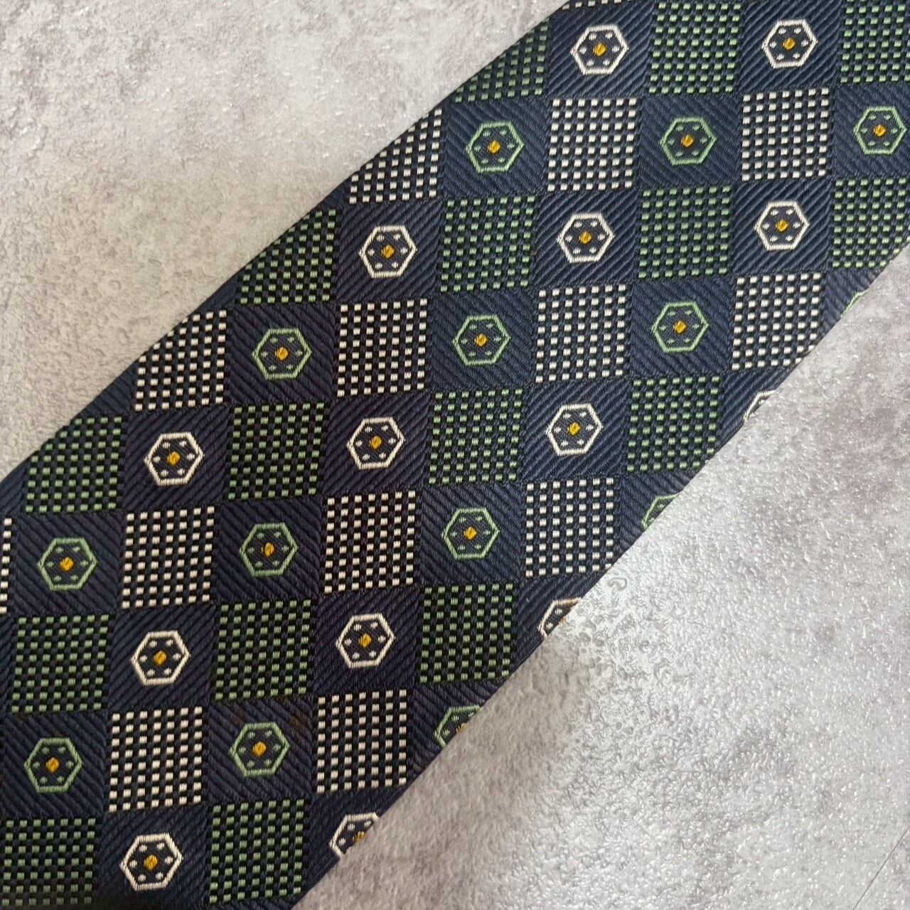 【VALENTINO】ロゴ入りチェック柄ネクタイ ネイビー ブルー アーガイルチェック