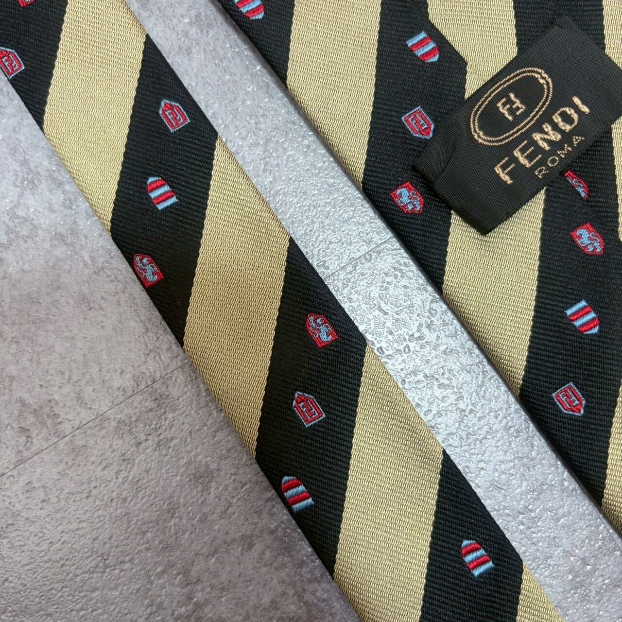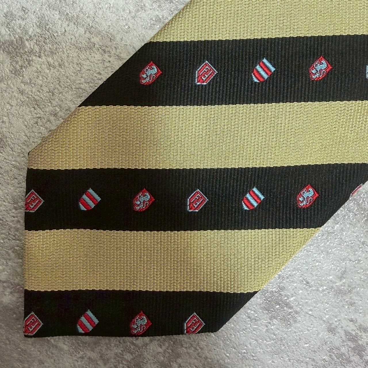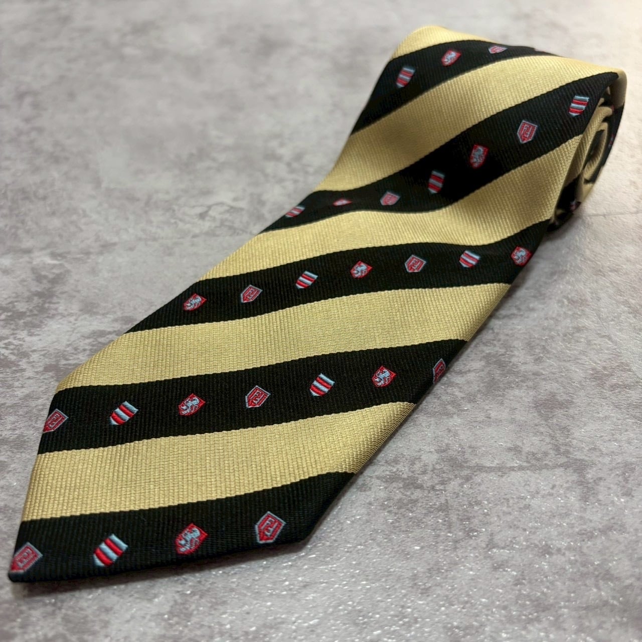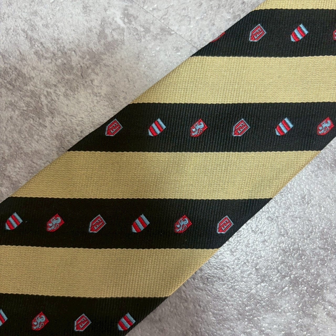 【FENDI】紋章柄×レジメンタルストライプネクタイ バイカラー ブラック ゴールド FFロゴ