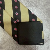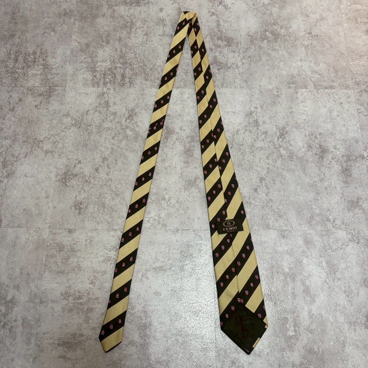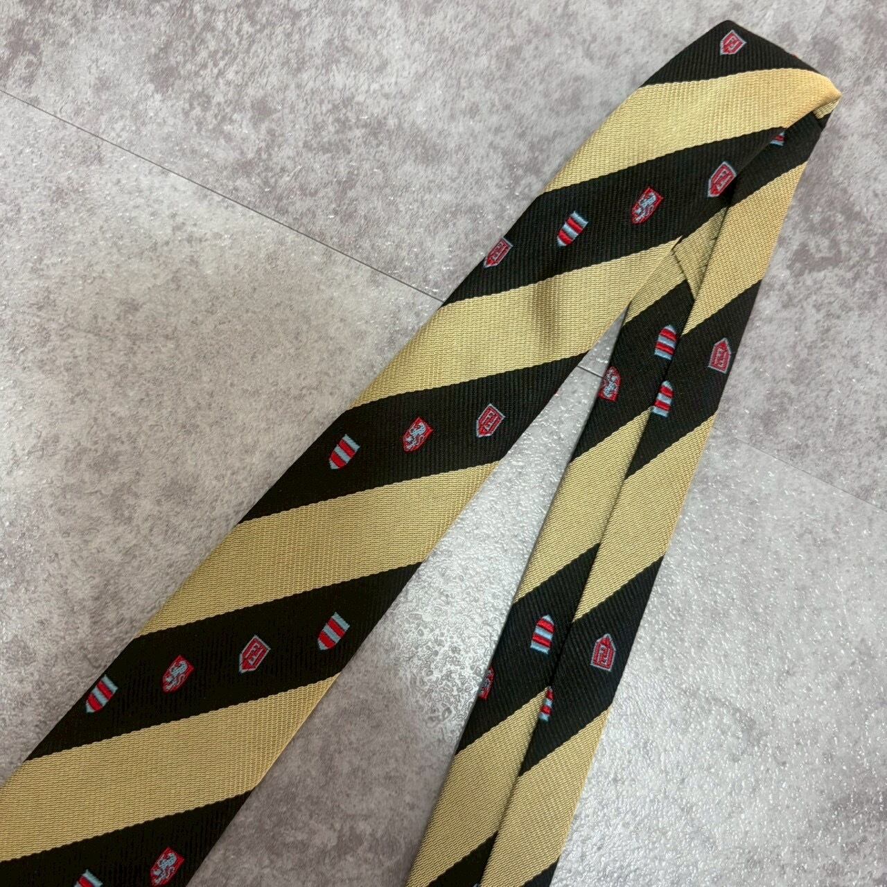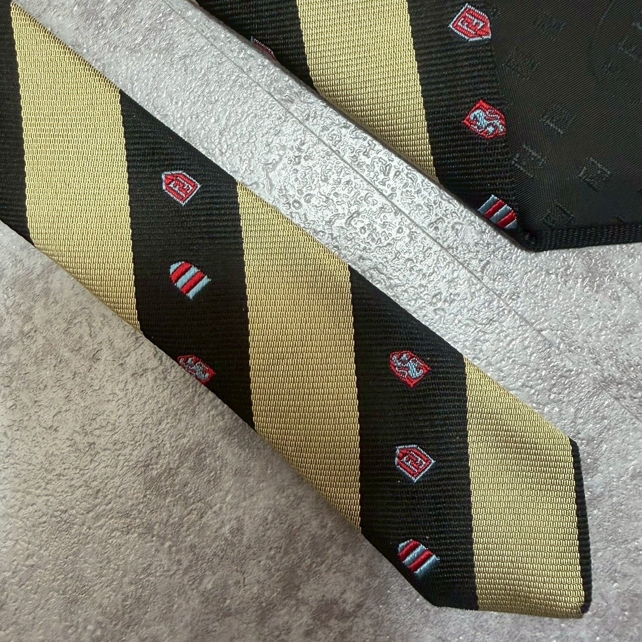 【FENDI】紋章柄×レジメンタルストライプネクタイ バイカラー ブラック ゴールド FFロゴ