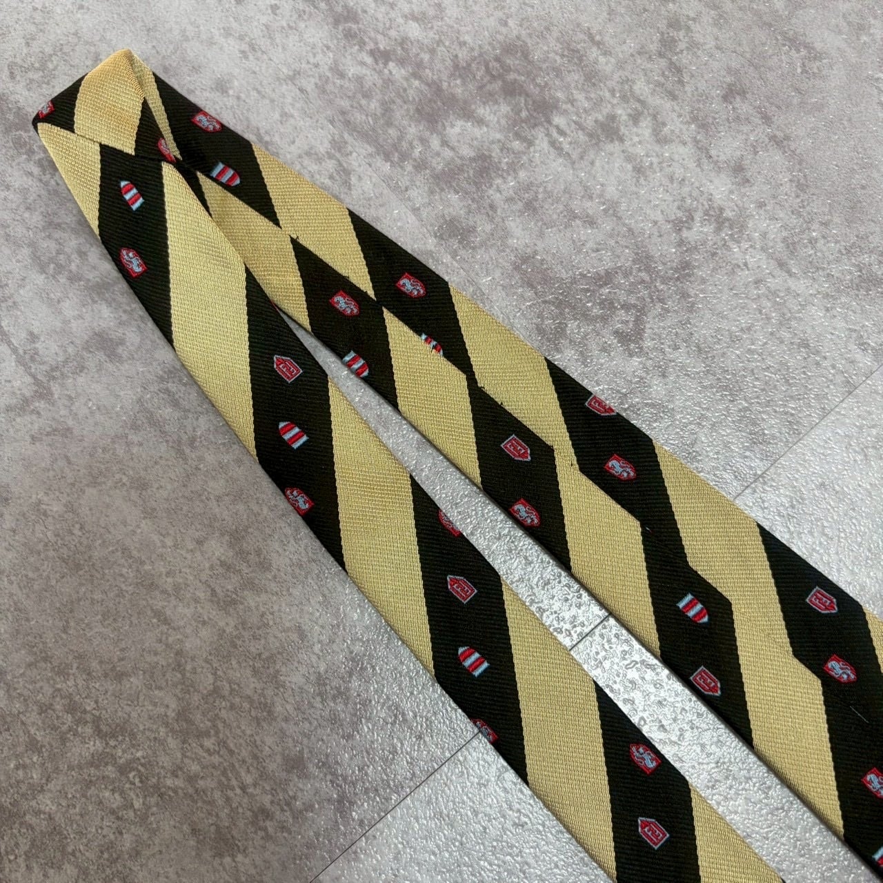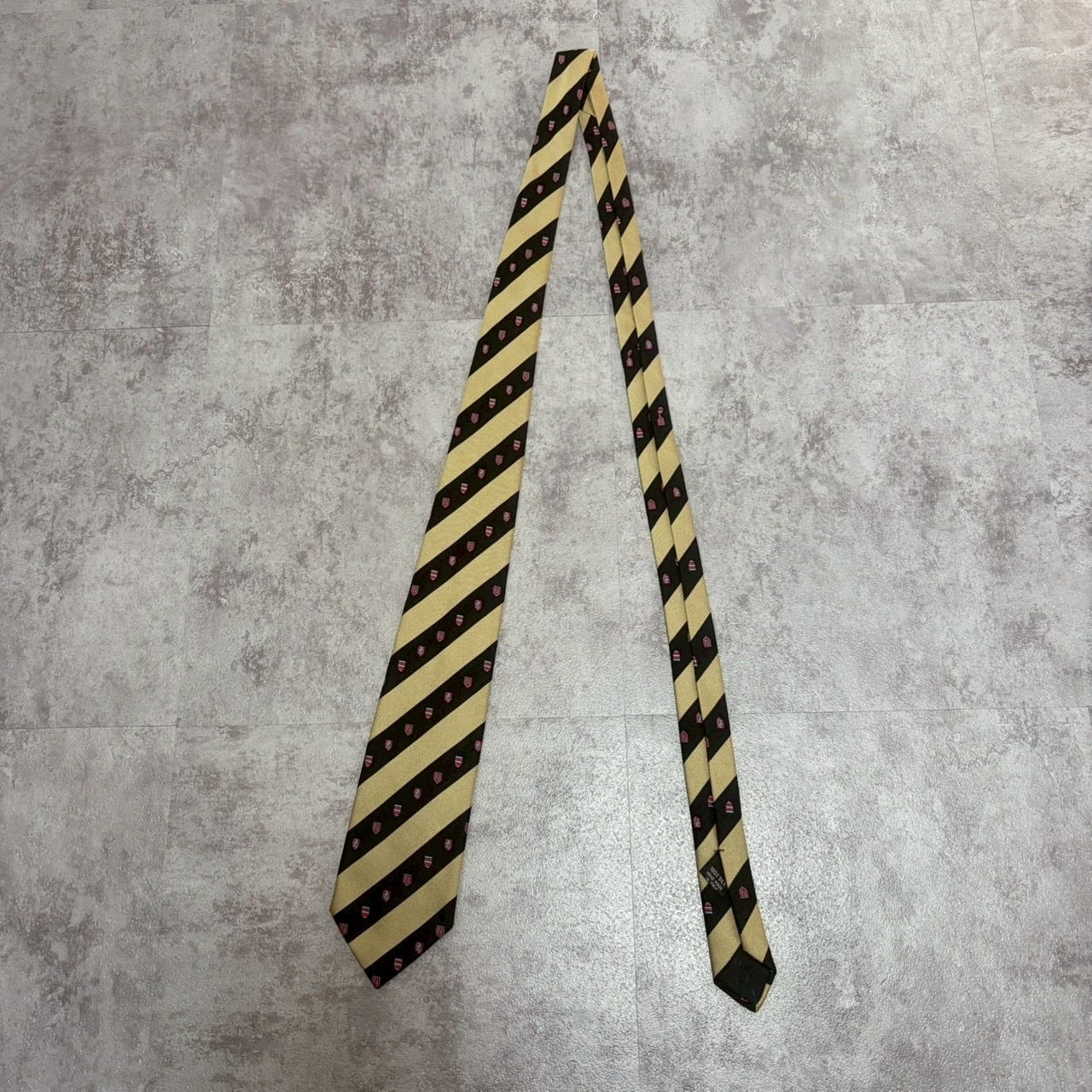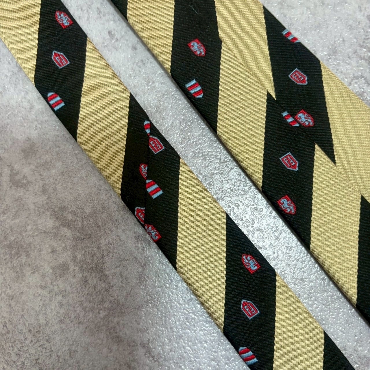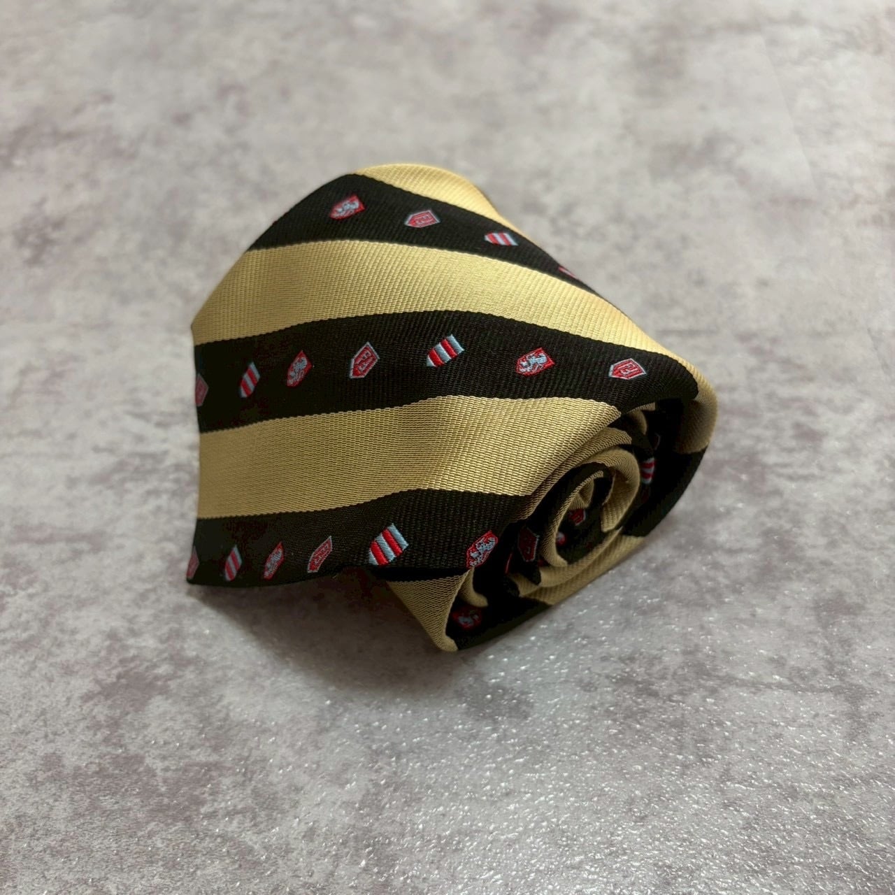 【FENDI】紋章柄×レジメンタルストライプネクタイ バイカラー ブラック ゴールド FFロゴ