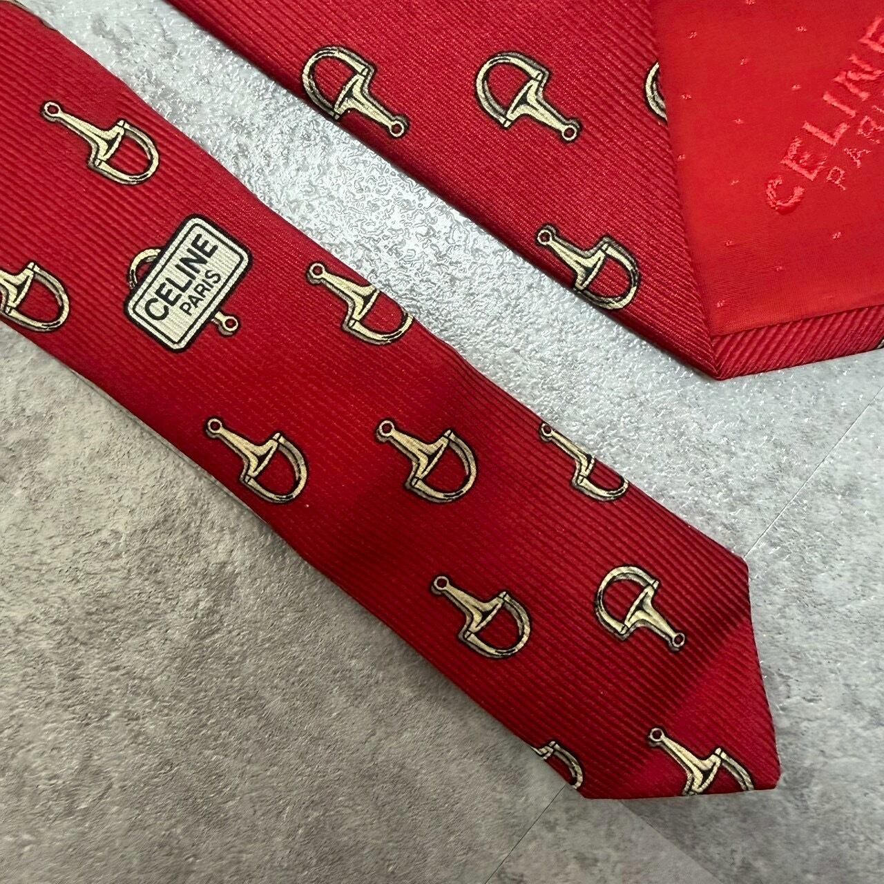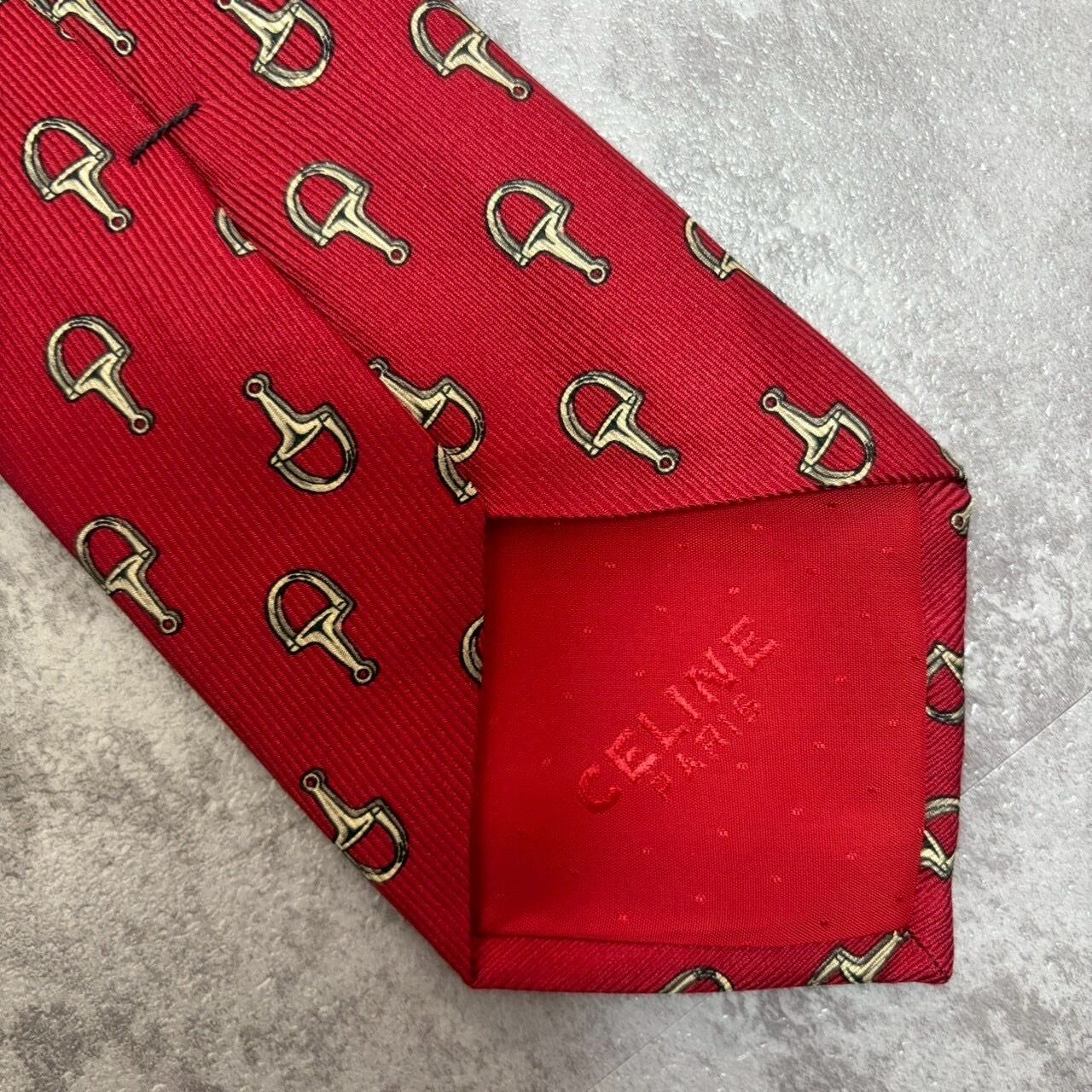 【CELINE】ホースビット柄ネクタイ レッド ヴィンテージ y2k 馬具