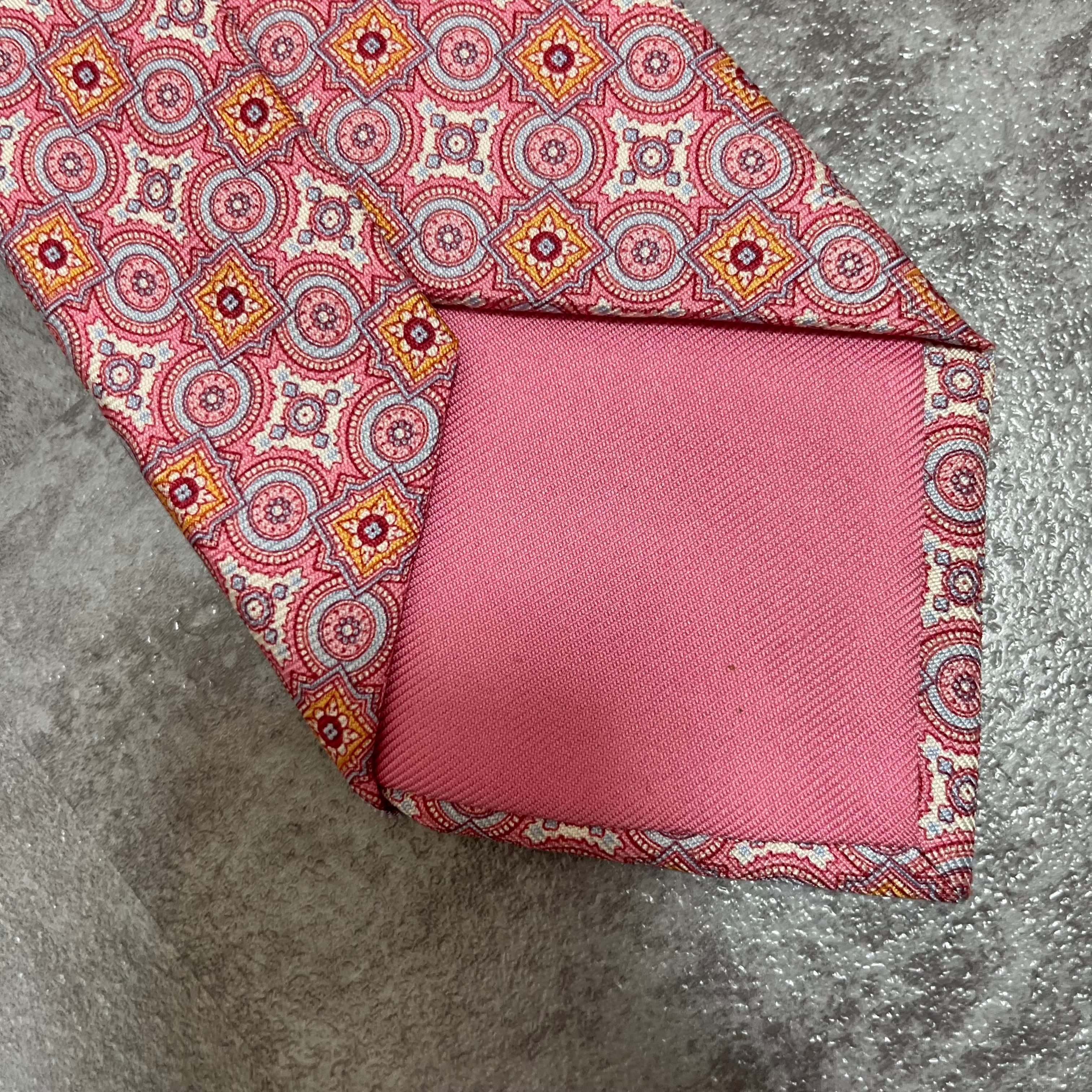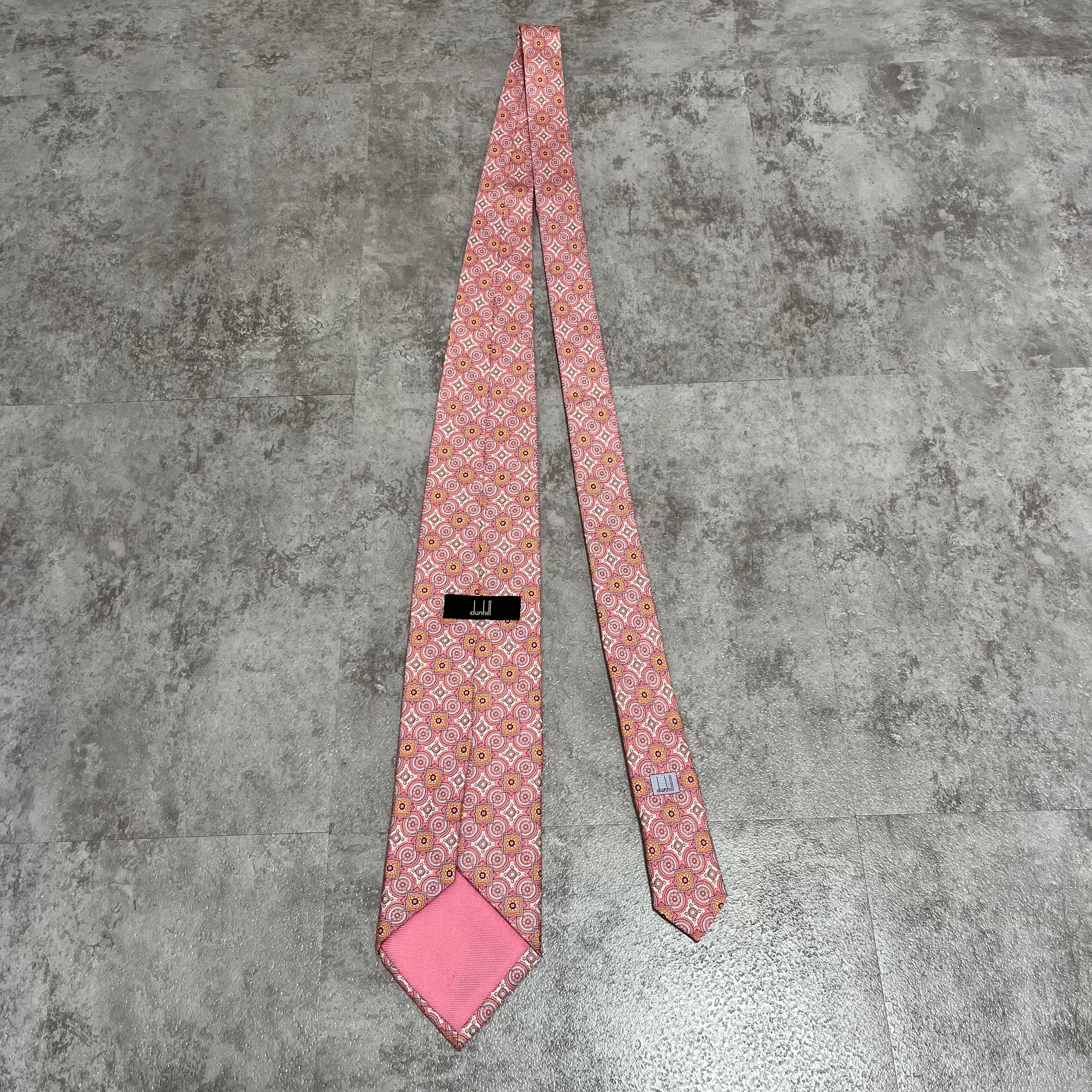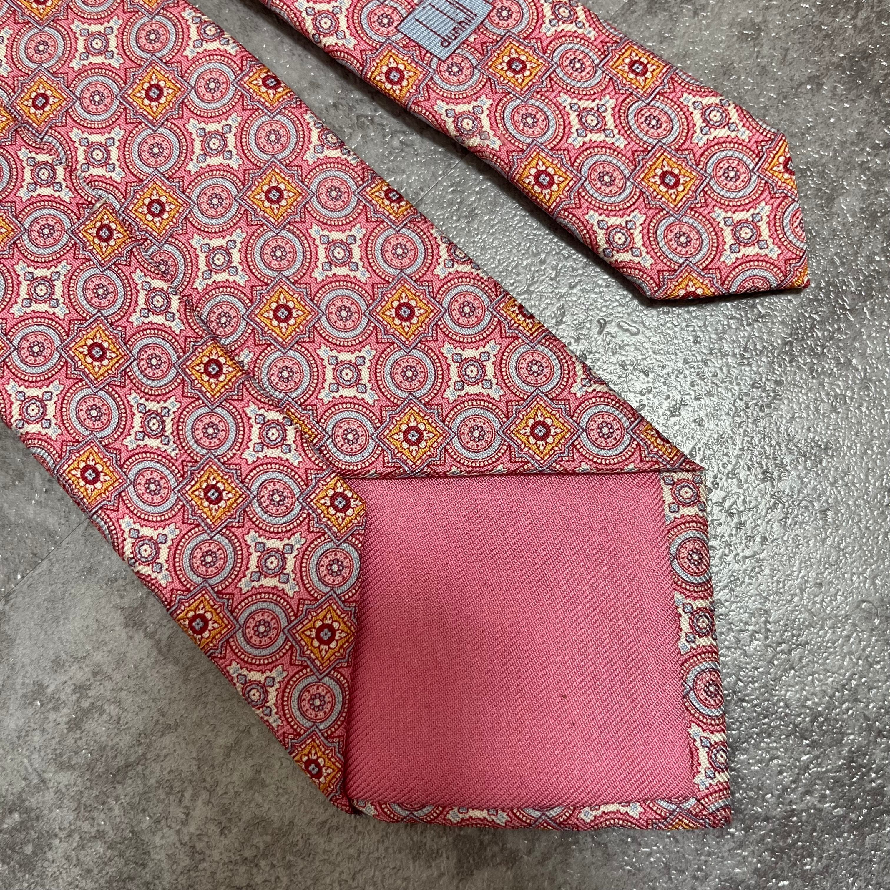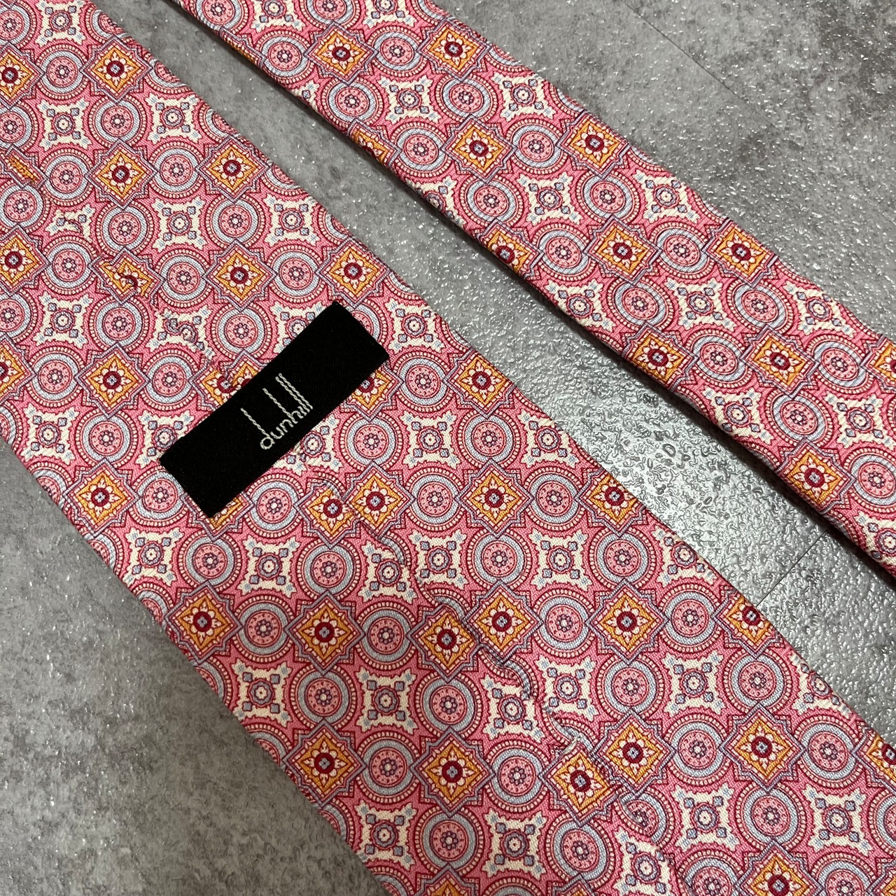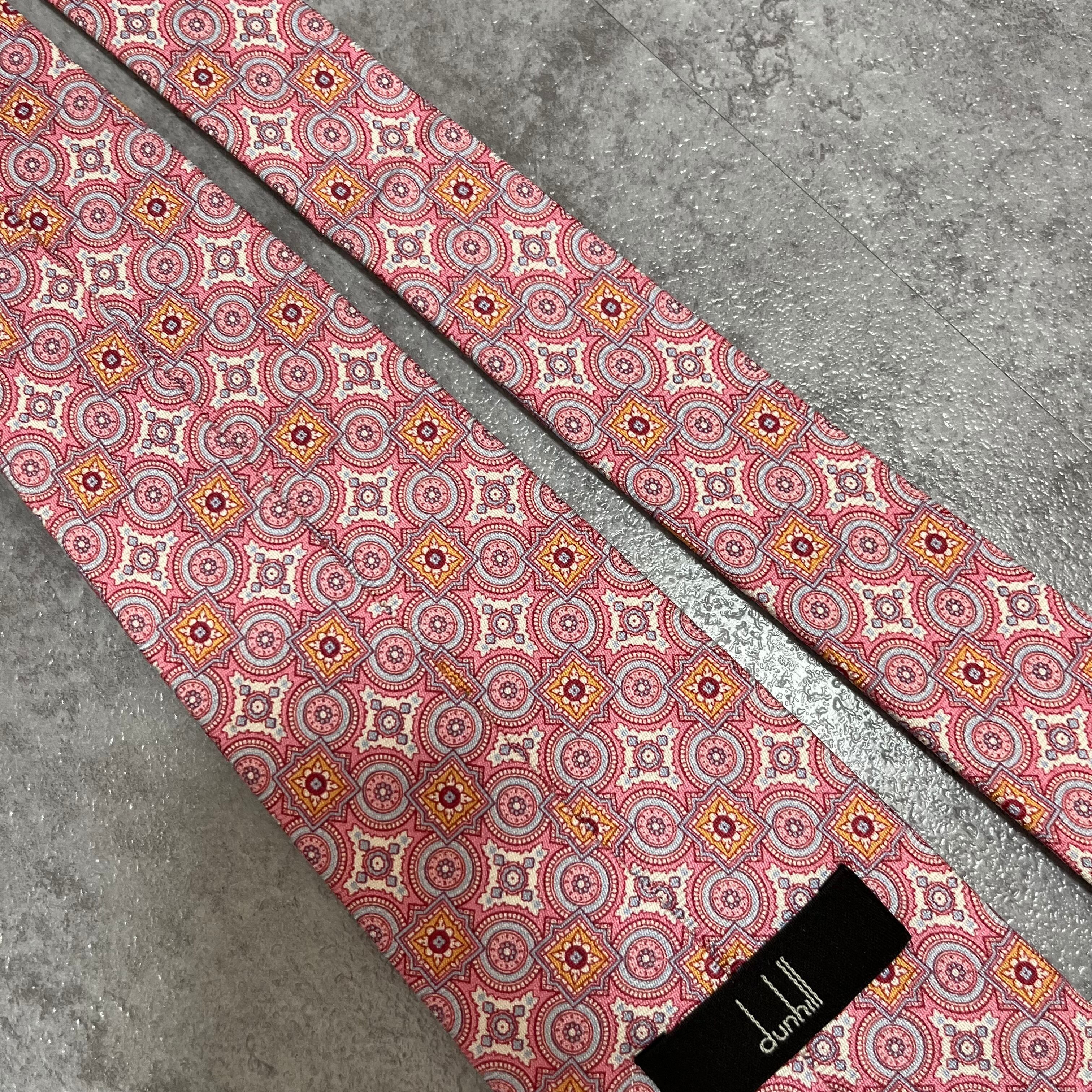 【dunhill】メダリオン柄ネクタイ ピンク 光沢肉厚 メダリオンチェック 紋章
