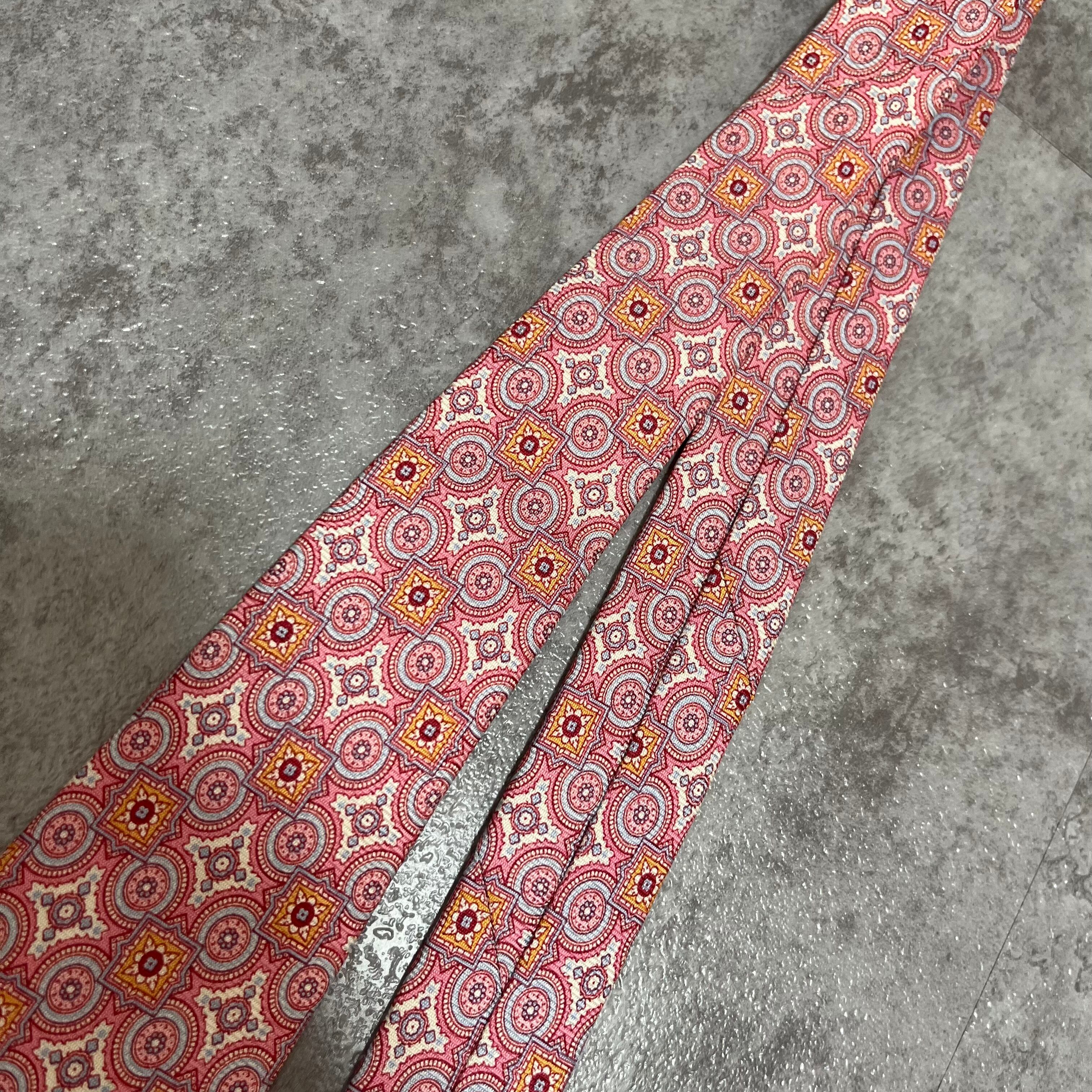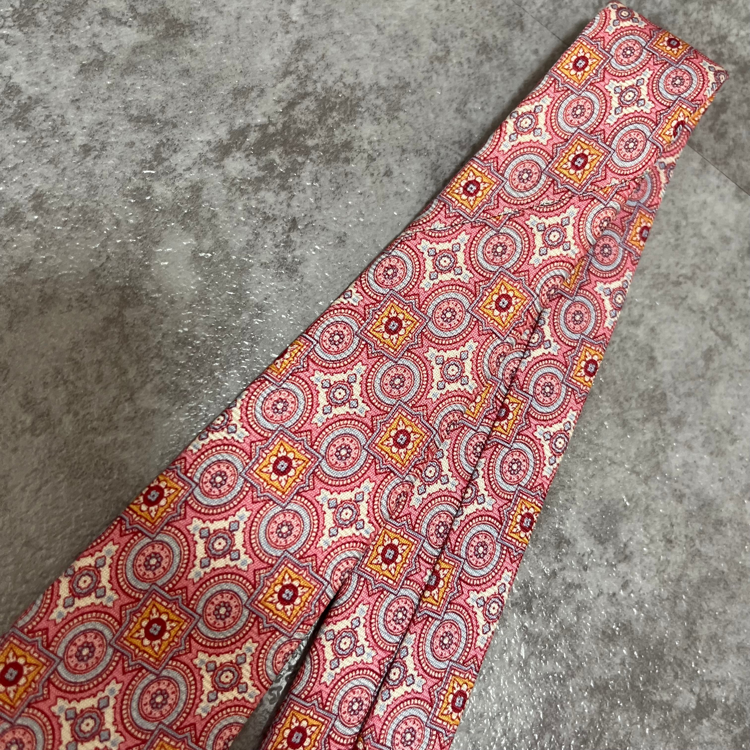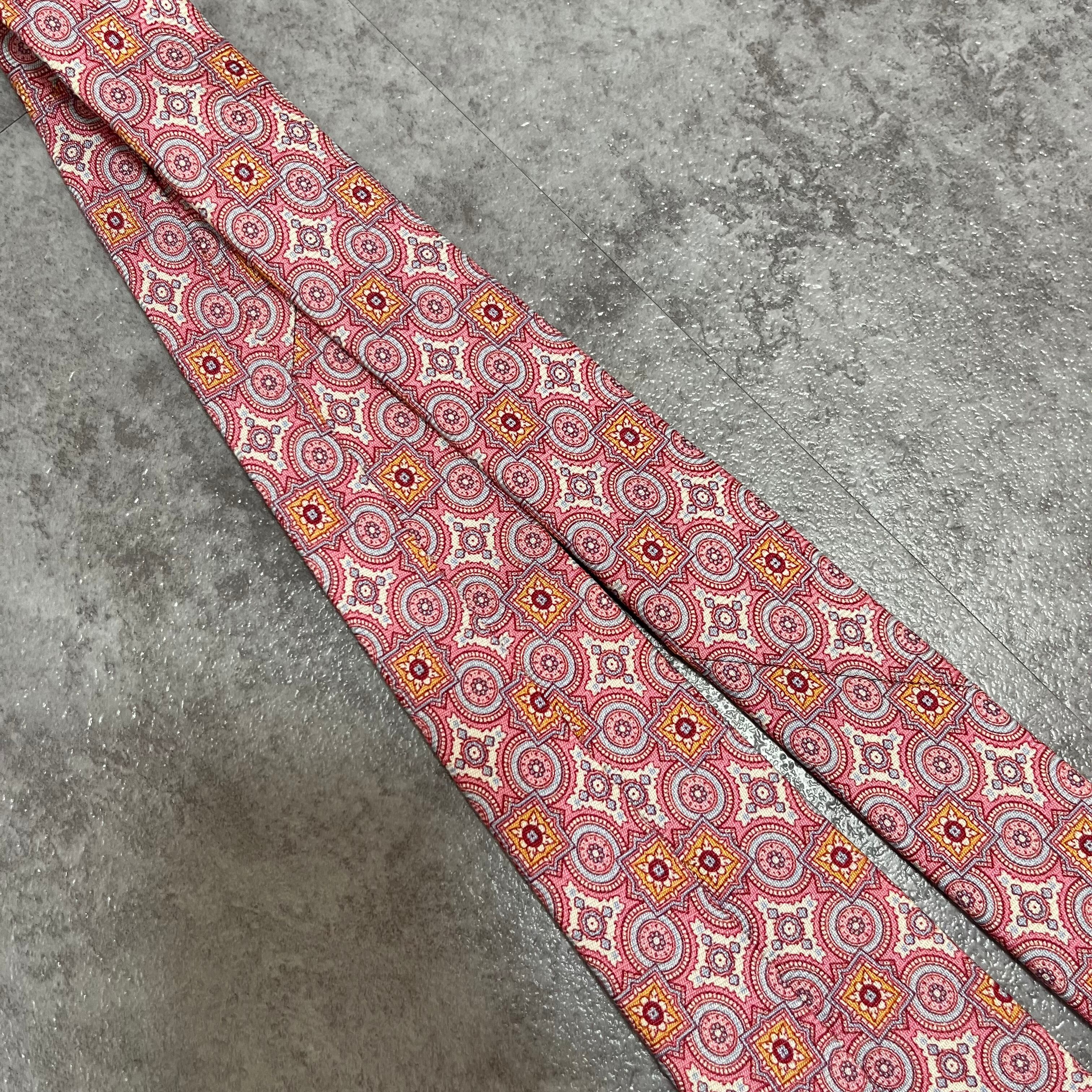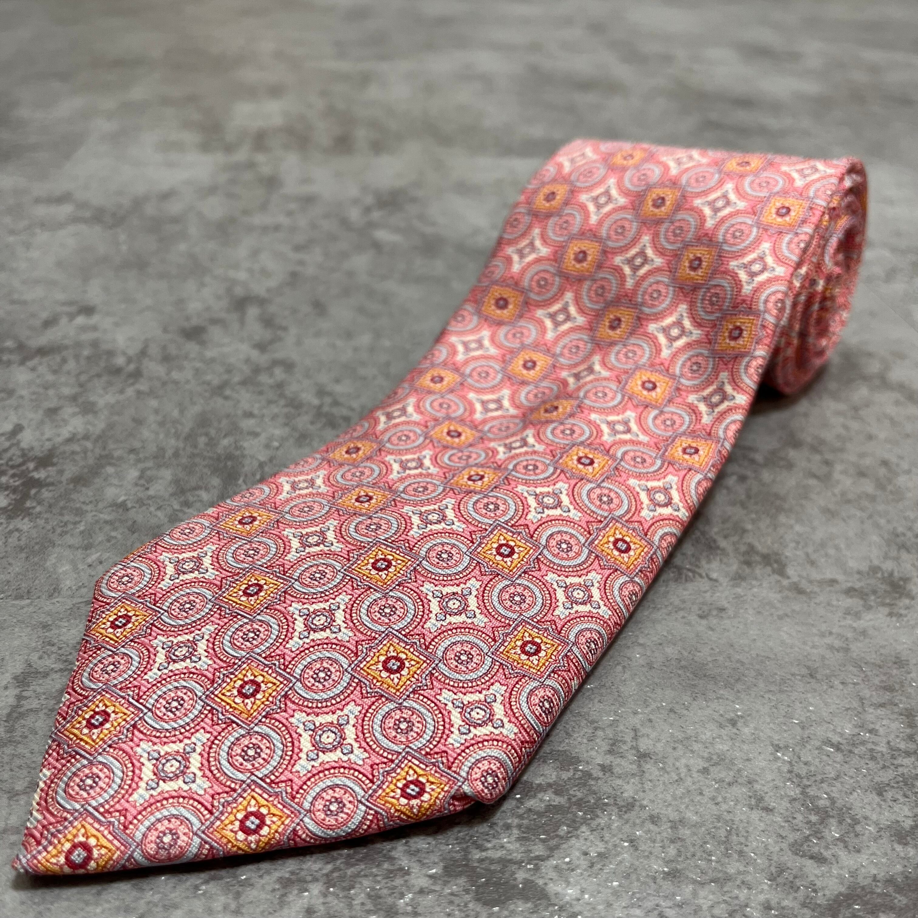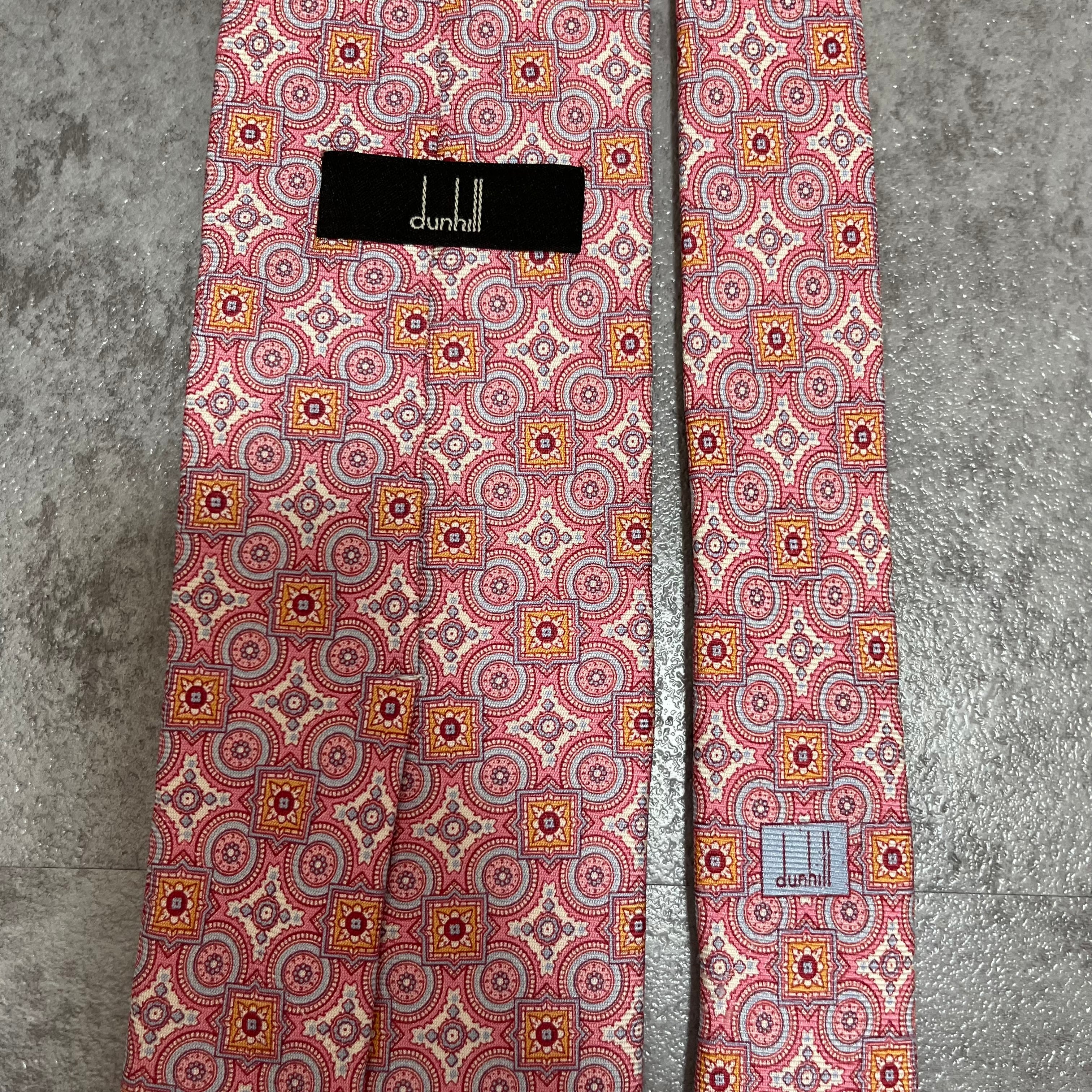 【dunhill】メダリオン柄ネクタイ ピンク 光沢肉厚 メダリオンチェック 紋章