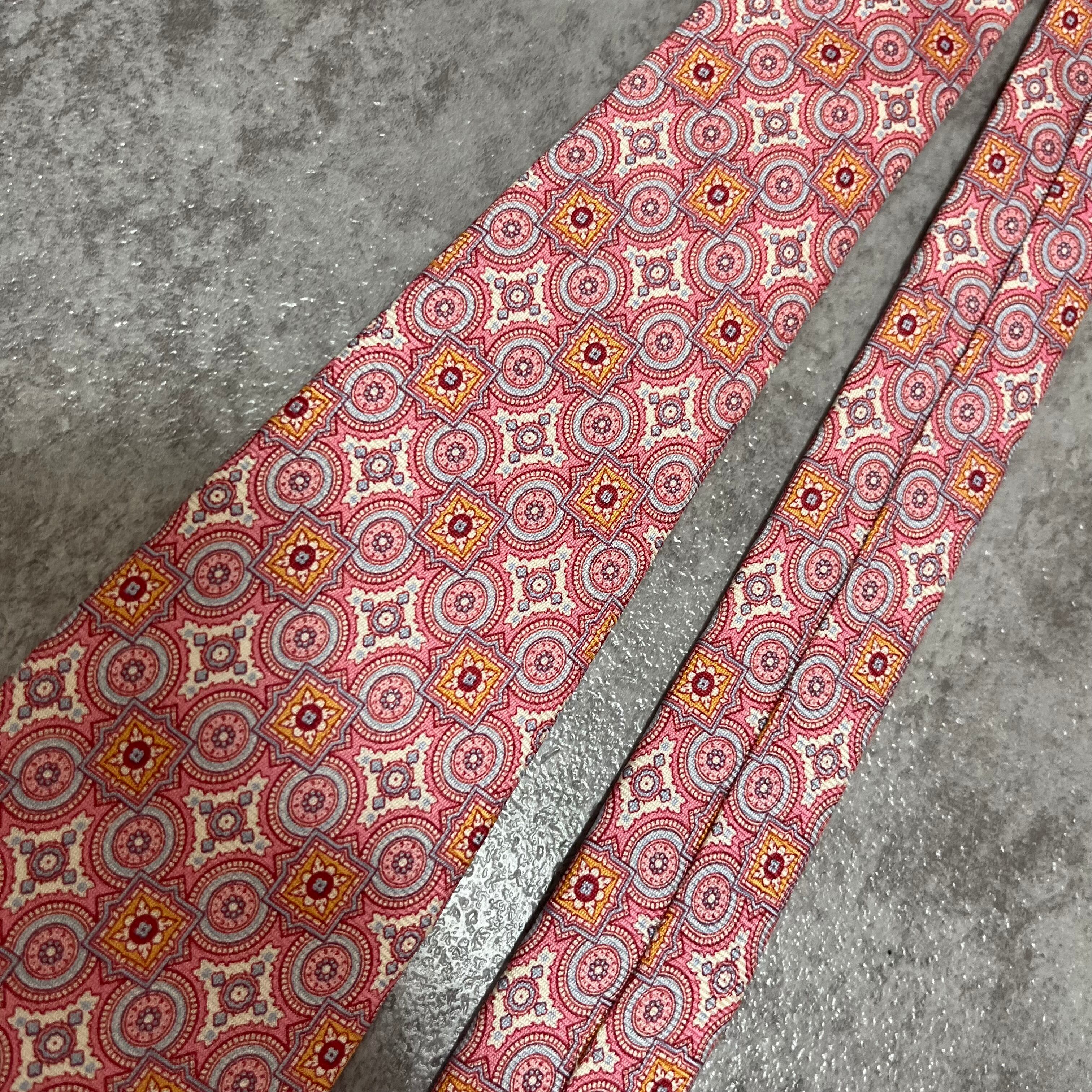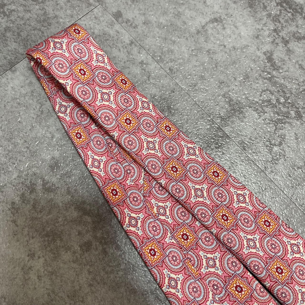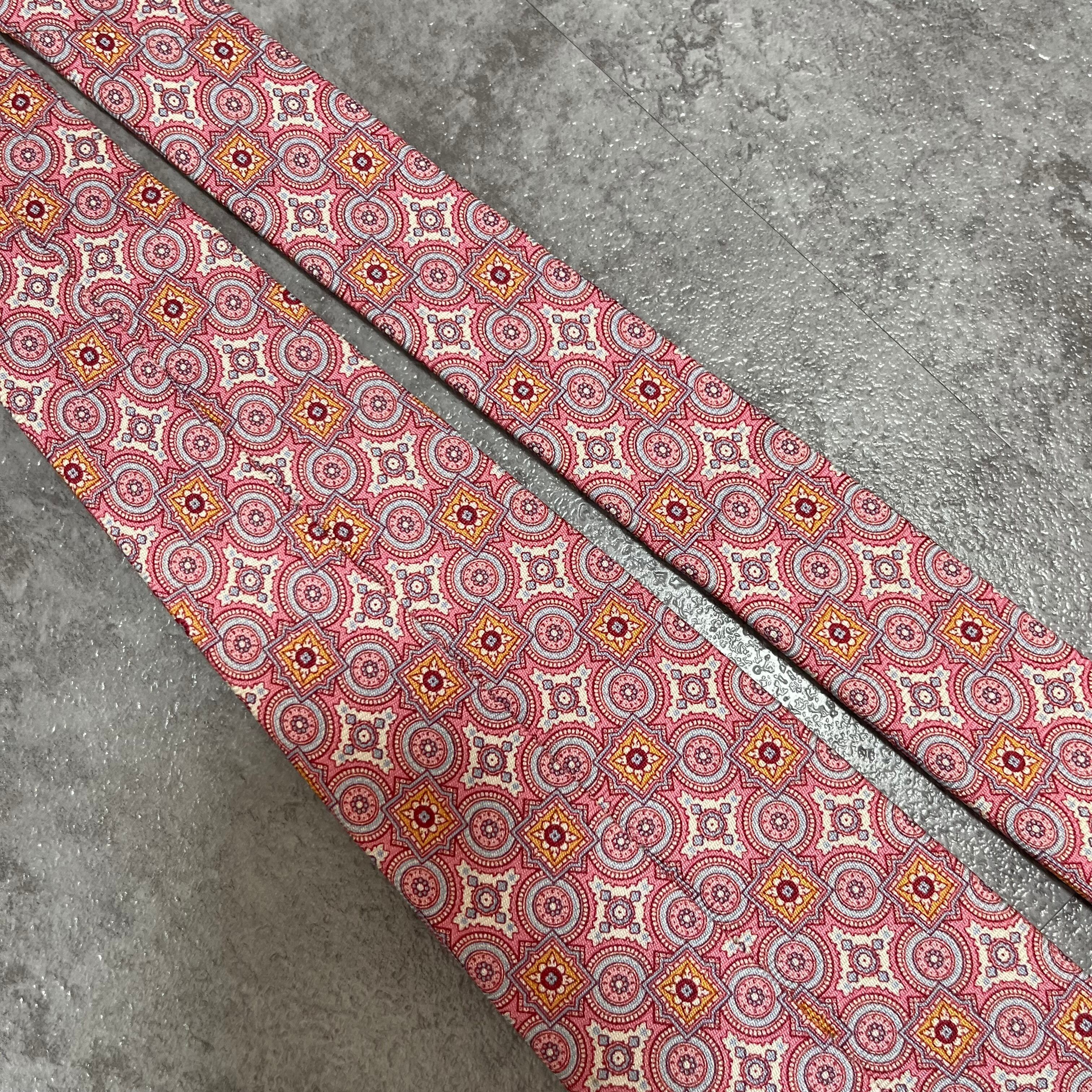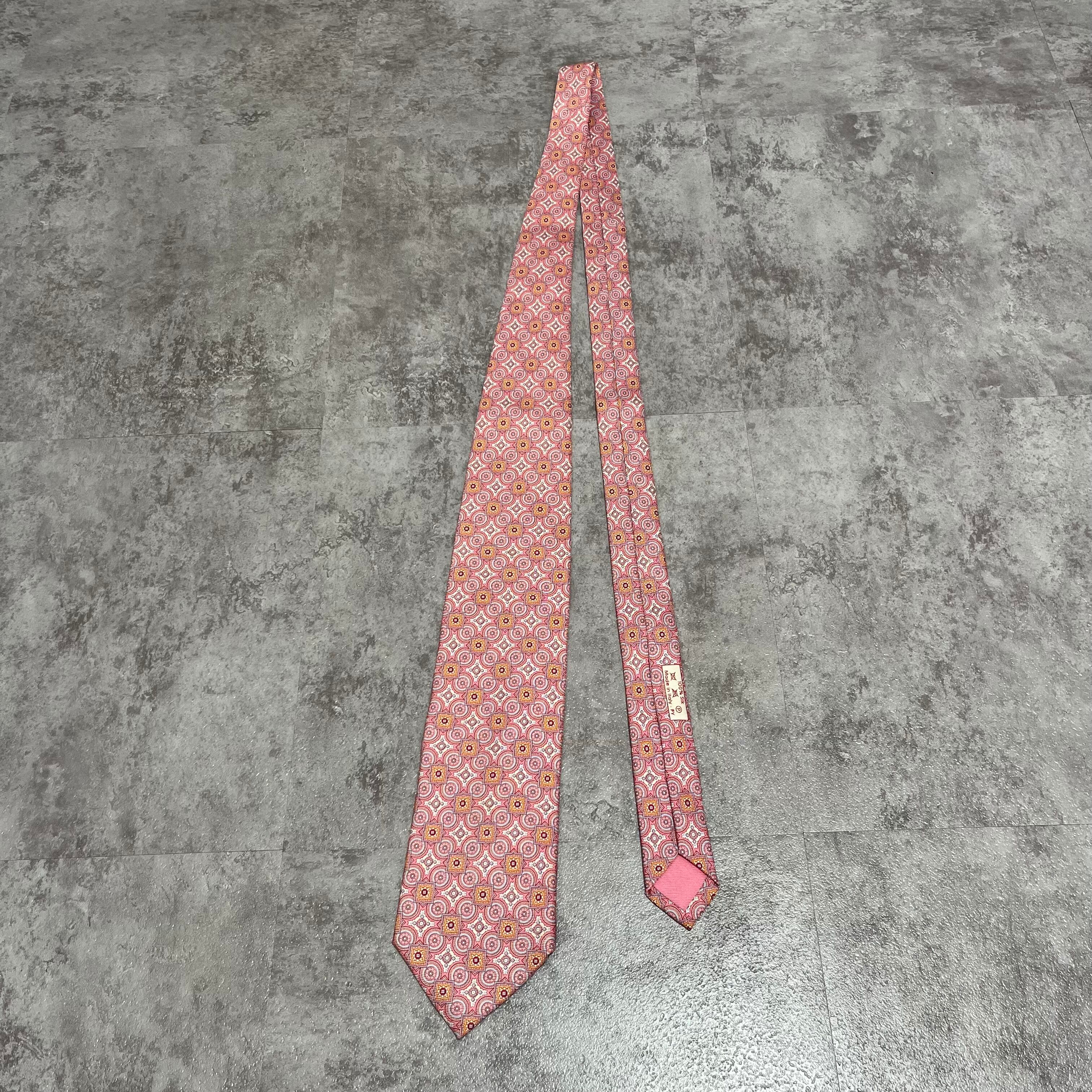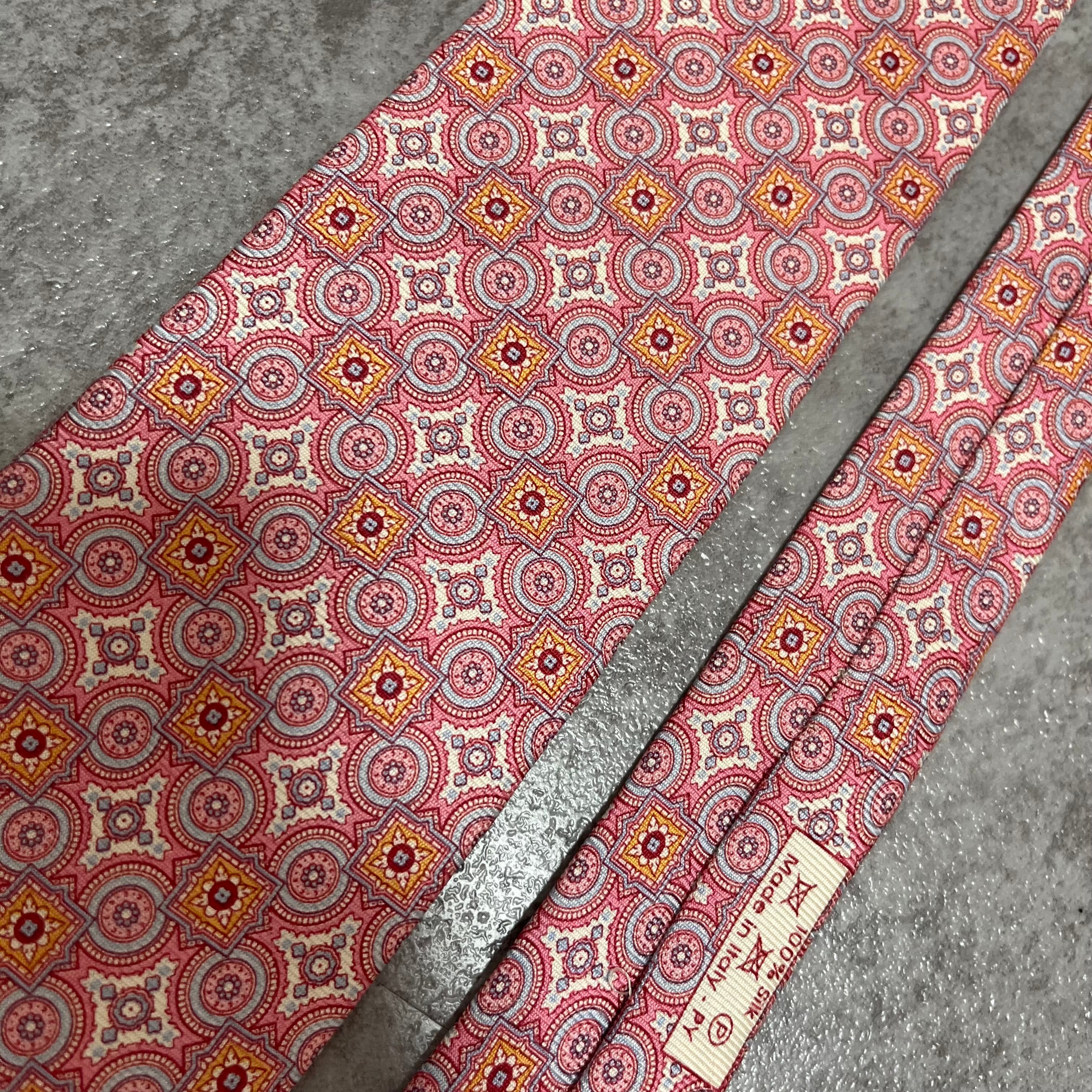 【dunhill】メダリオン柄ネクタイ ピンク 光沢肉厚 メダリオンチェック 紋章