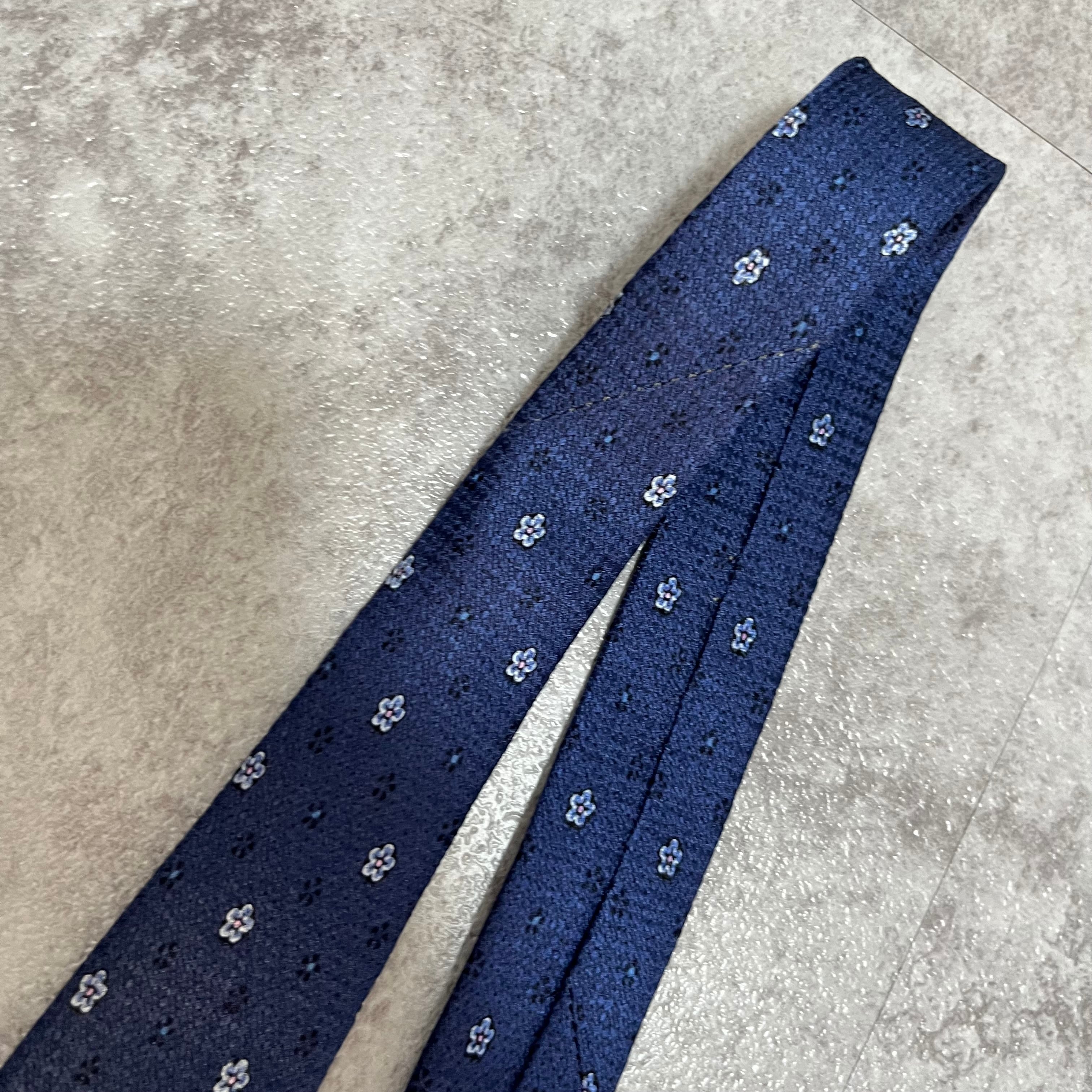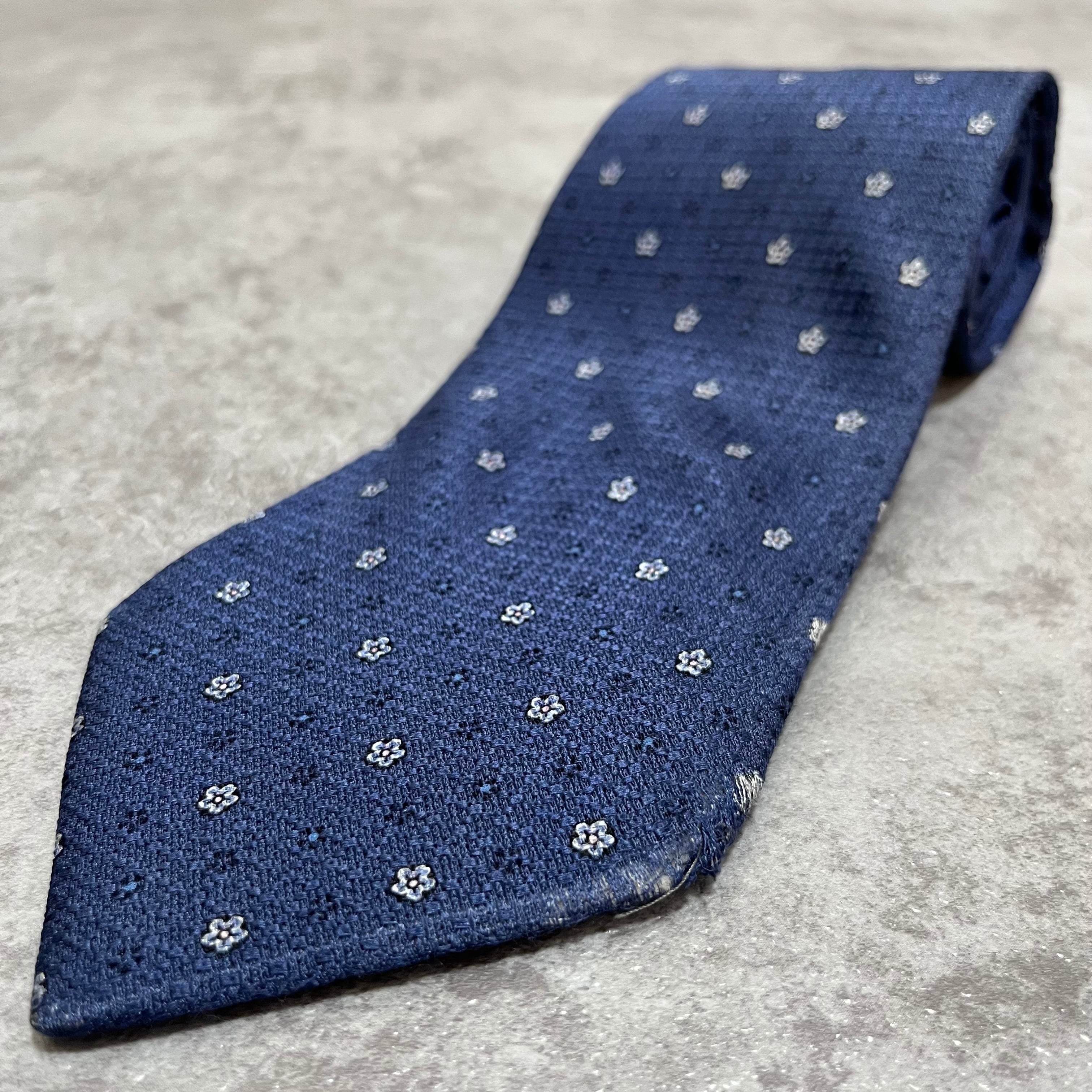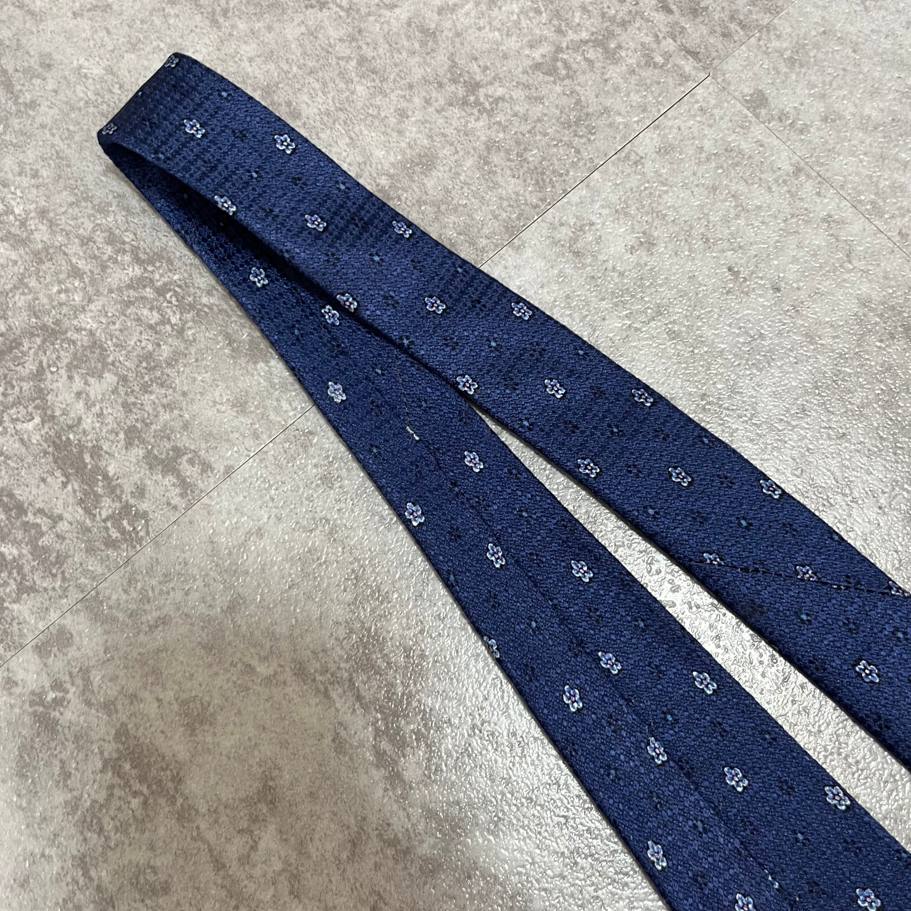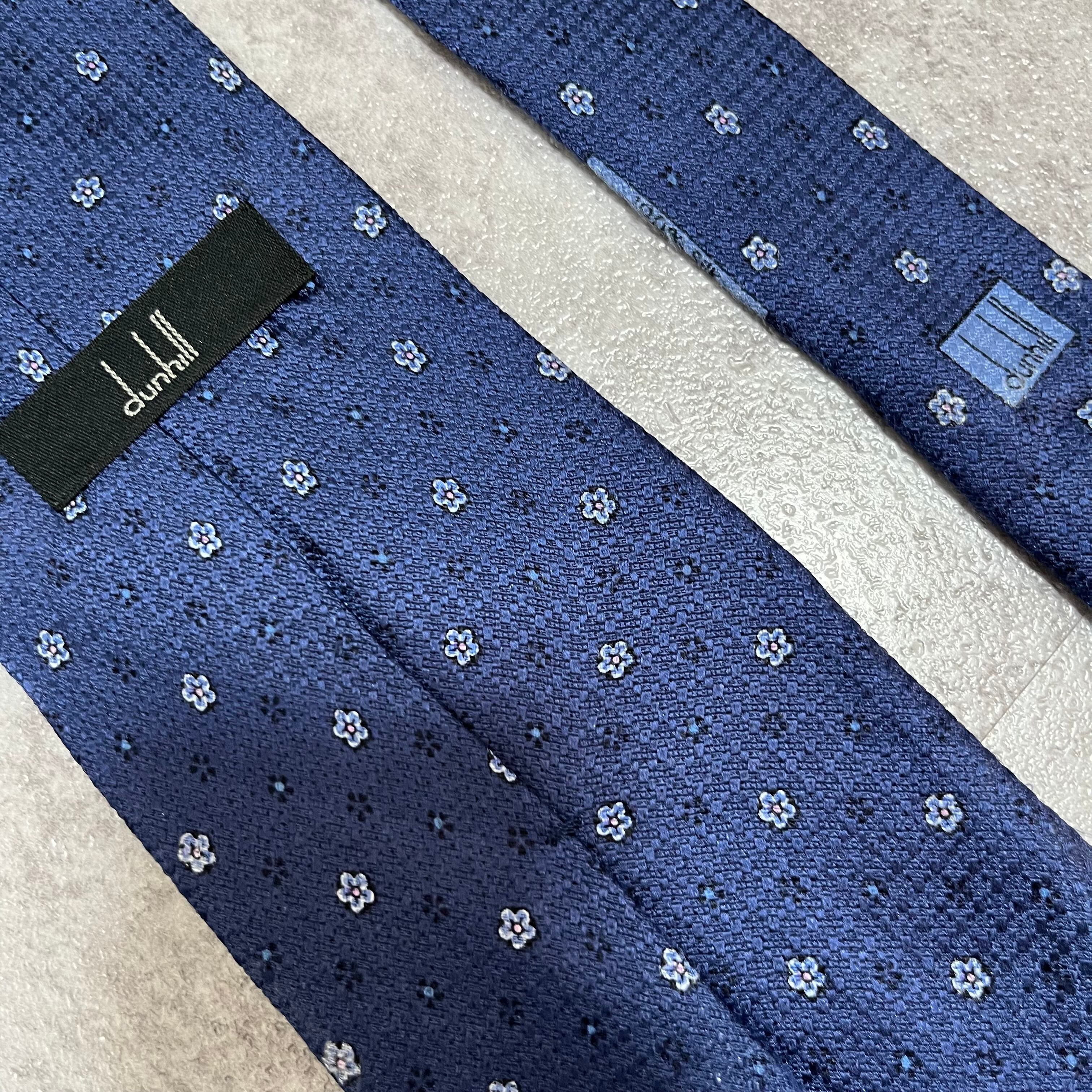 【dunhill】花柄ドット柄ネクタイ ネイビー シャドウドット