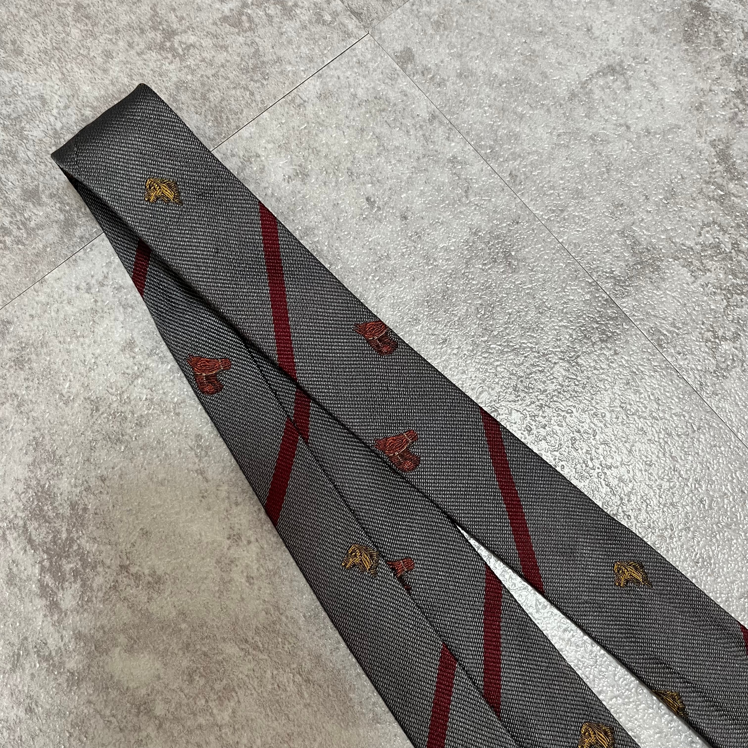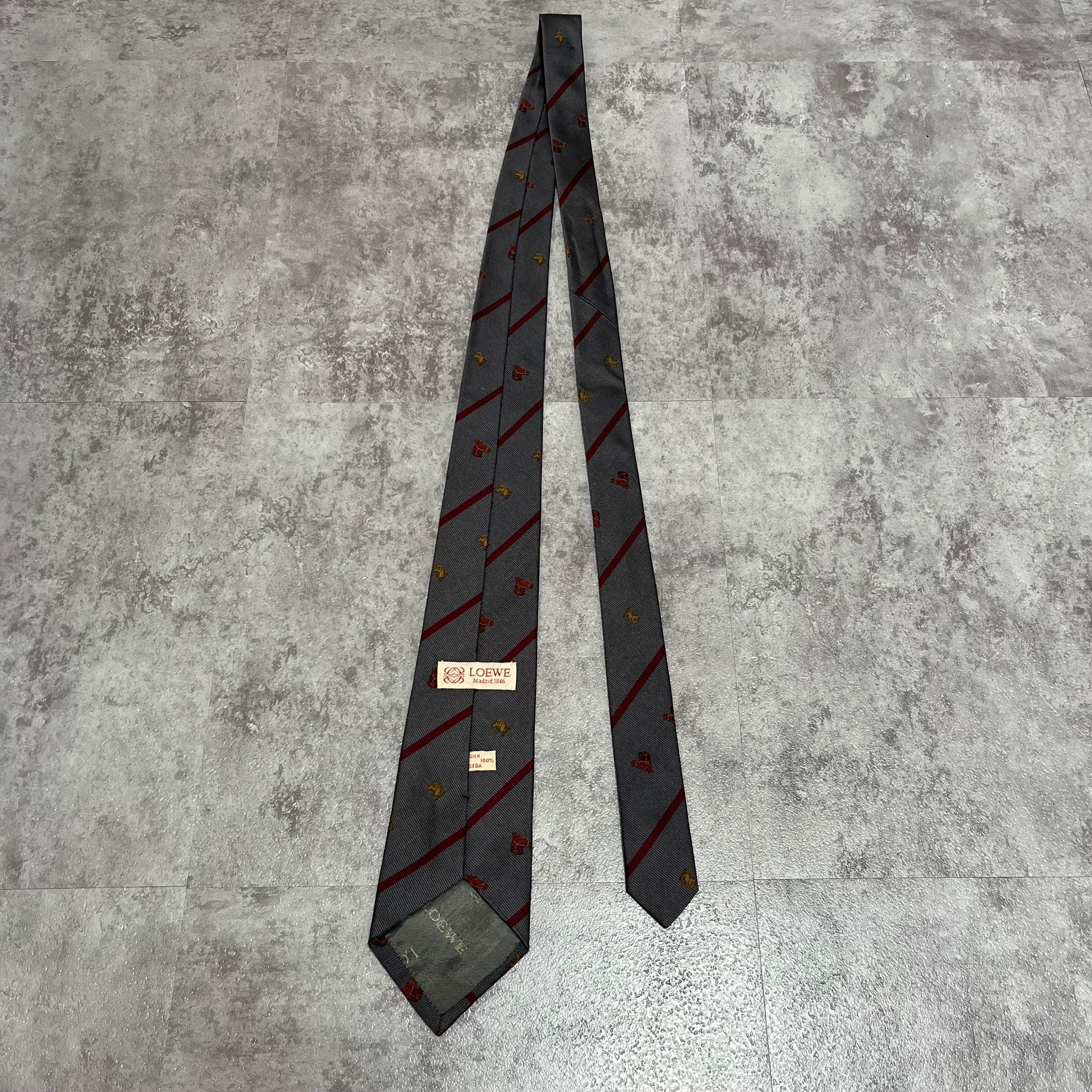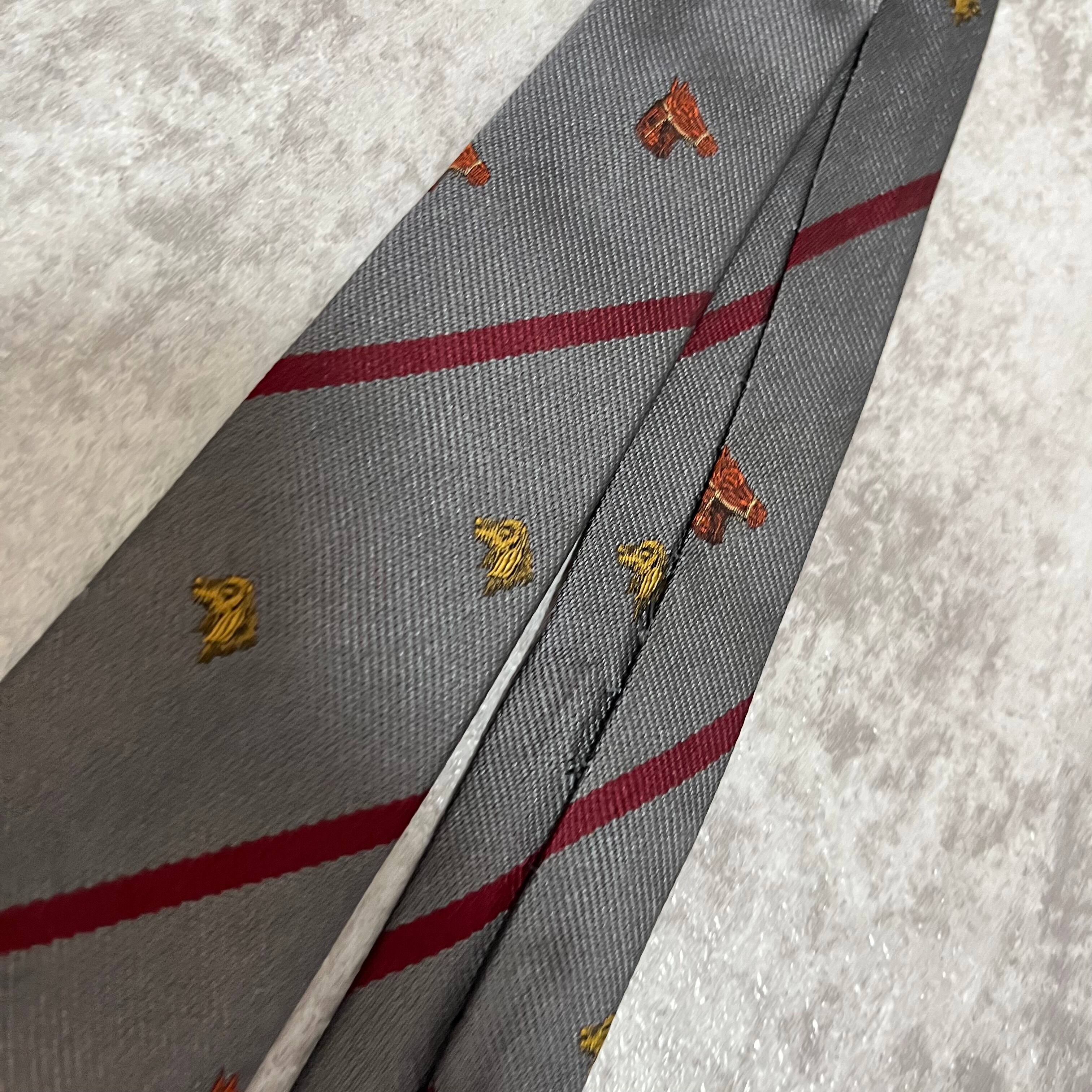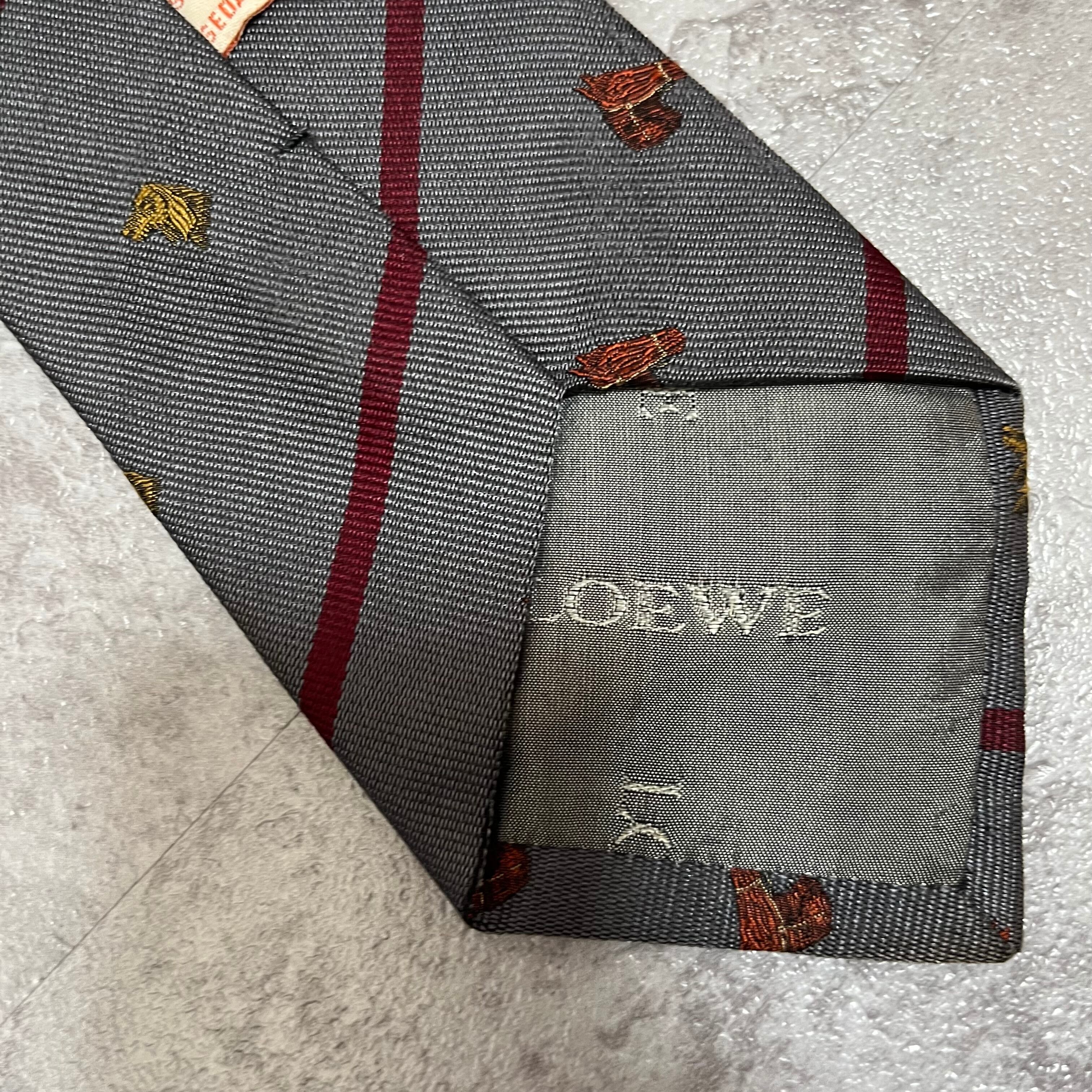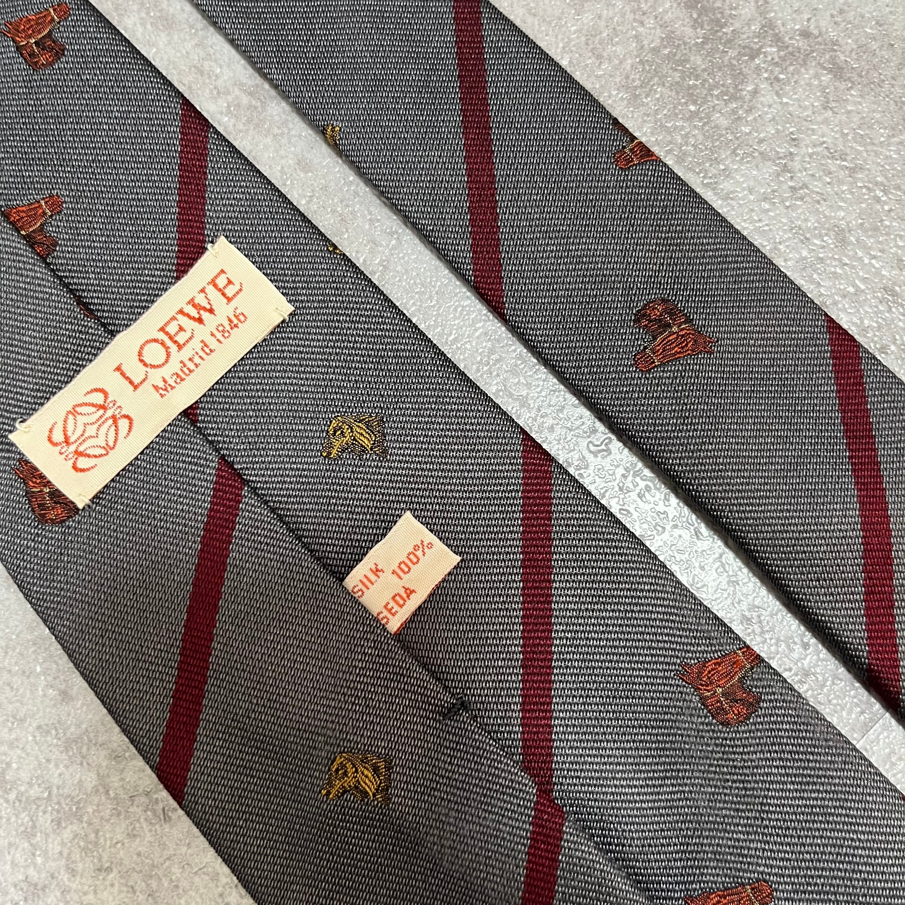 【LOEWE】アニマル柄×レジメンタルストライプネクタイ グレー レッド バイカラー 犬 馬
