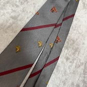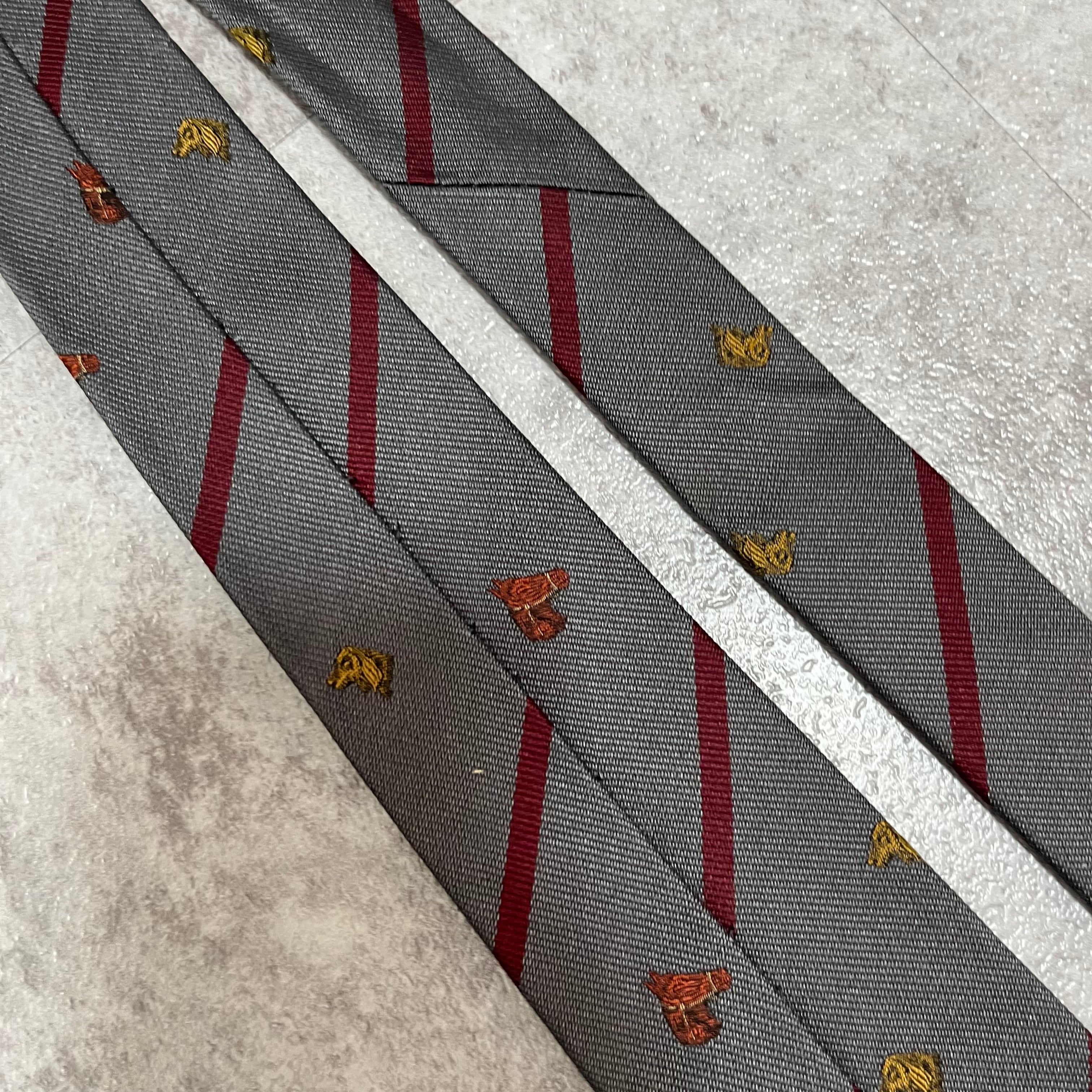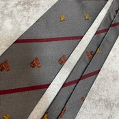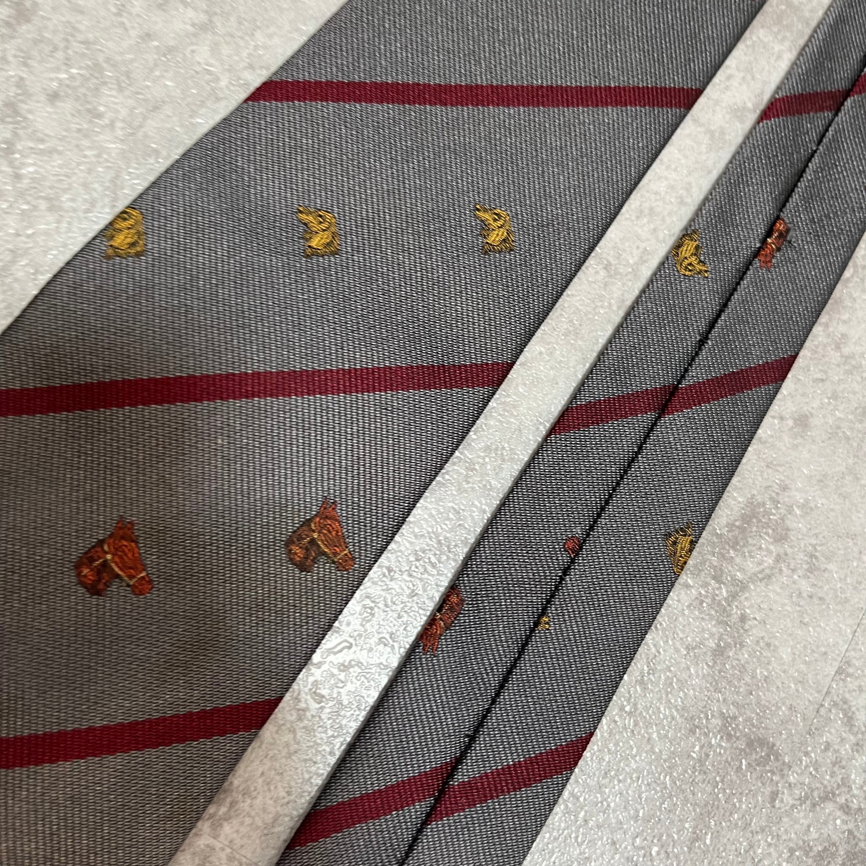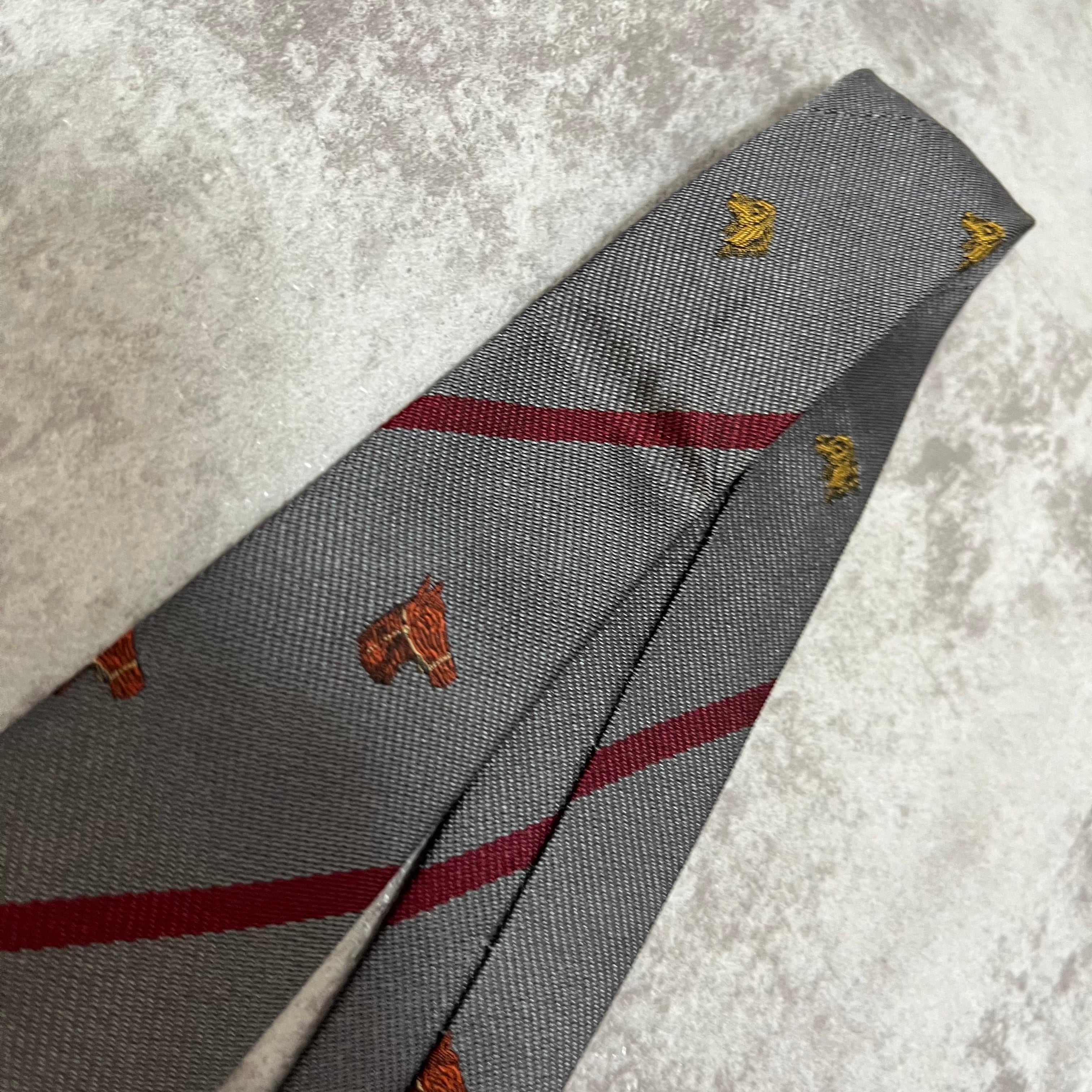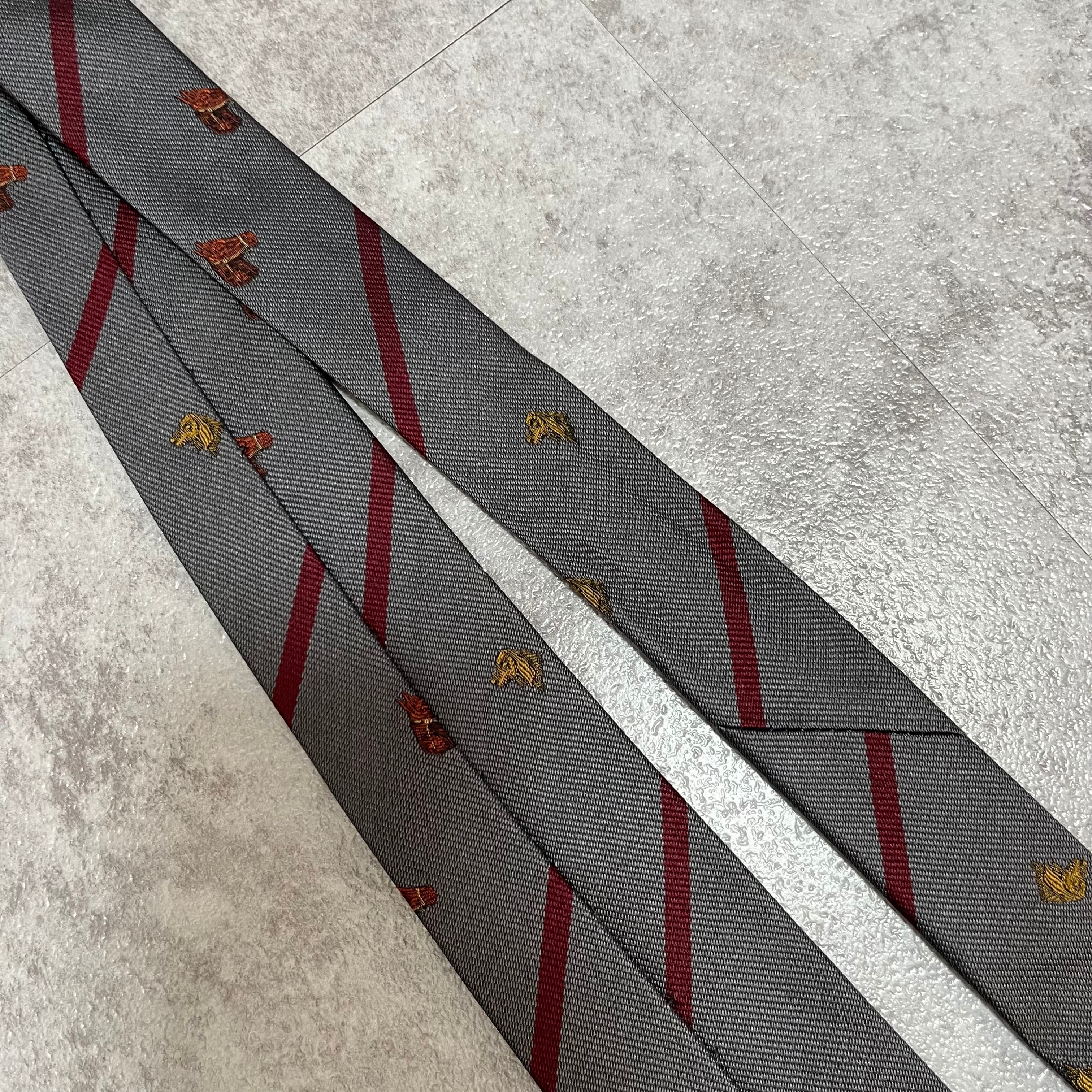 【LOEWE】アニマル柄×レジメンタルストライプネクタイ グレー レッド バイカラー 犬 馬