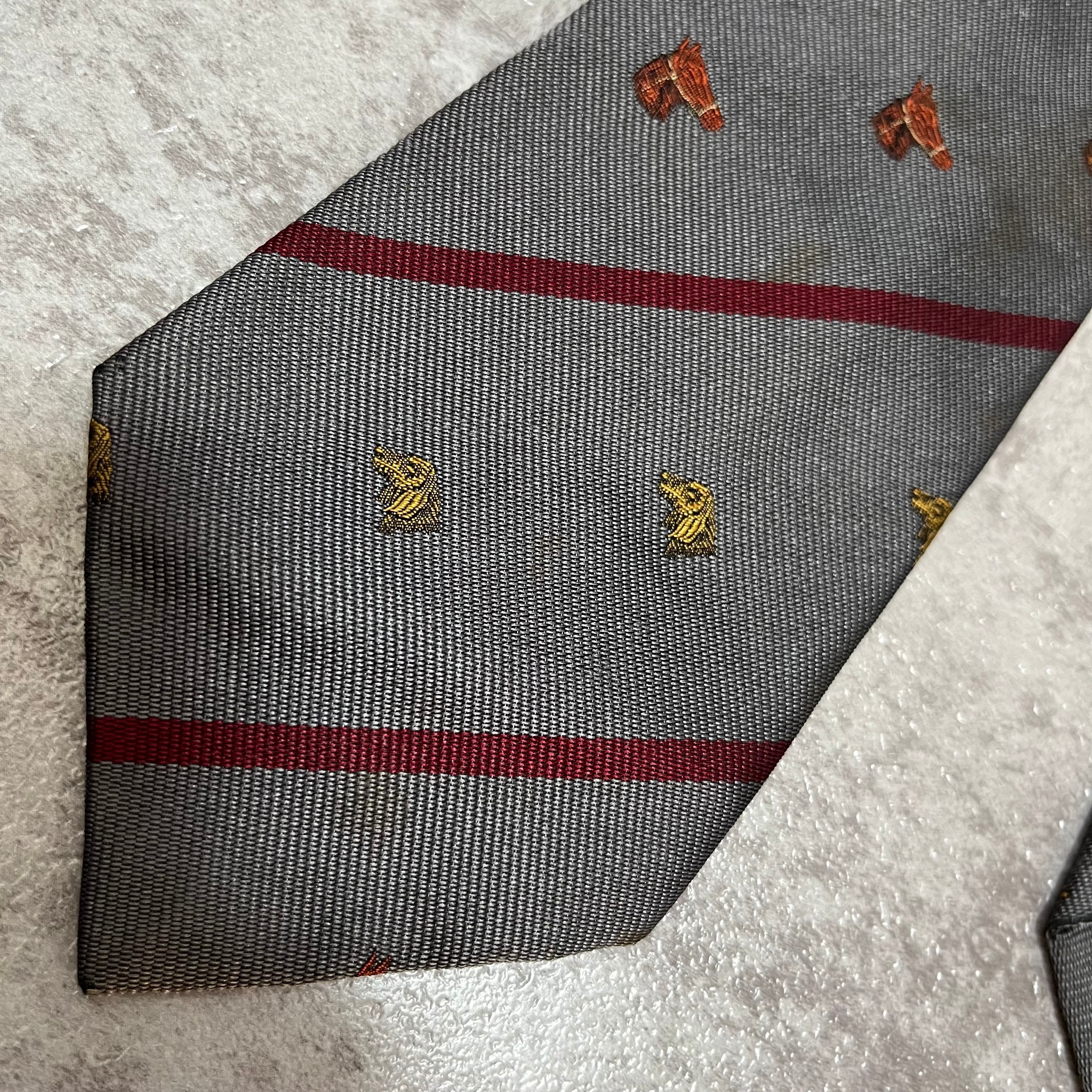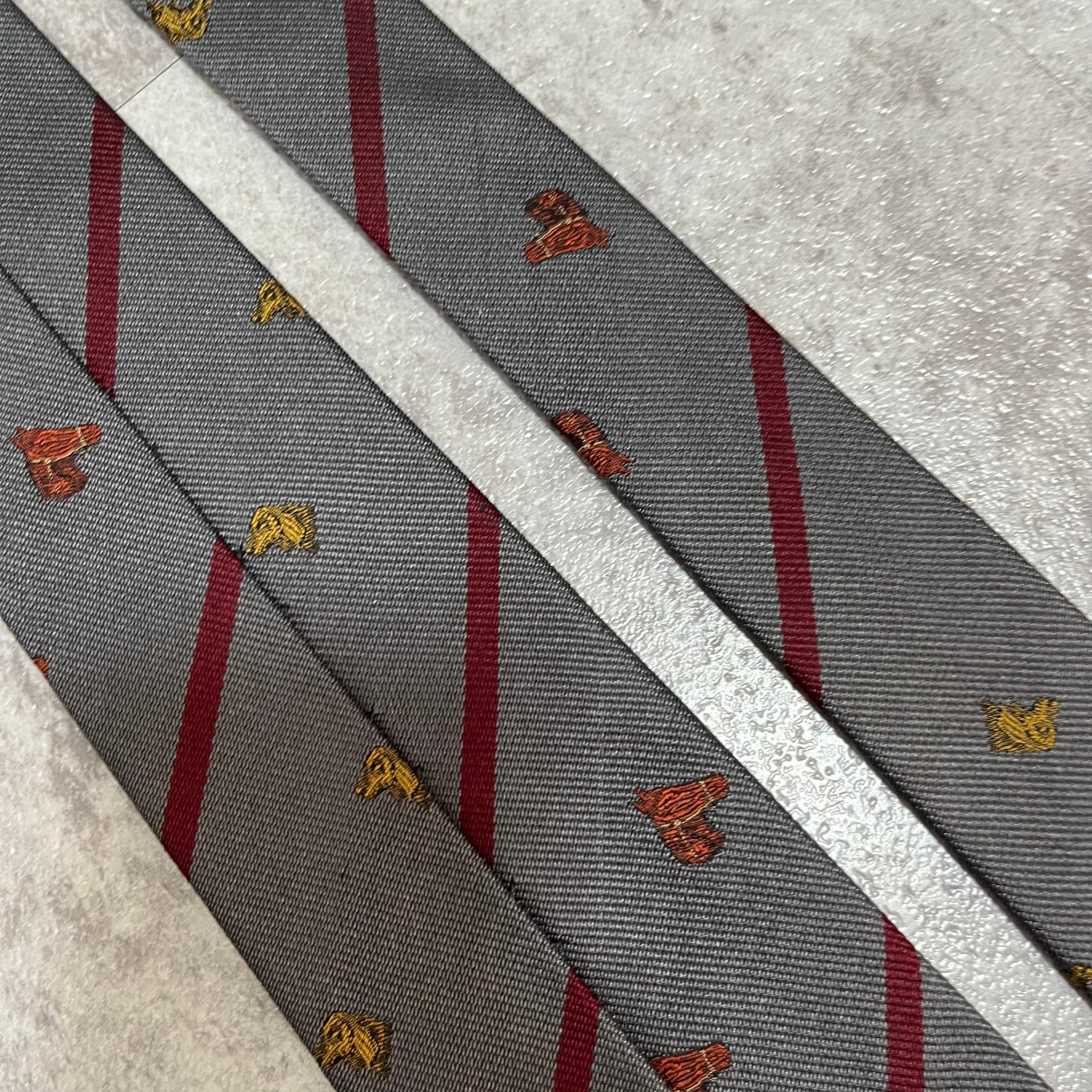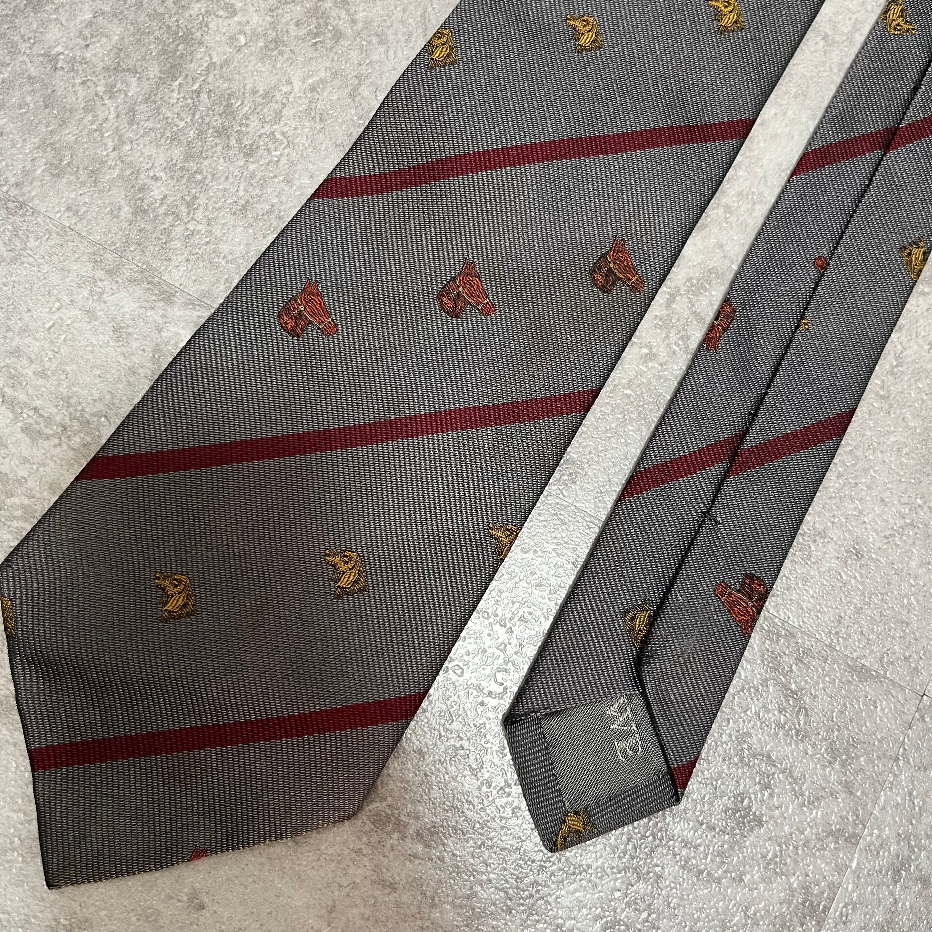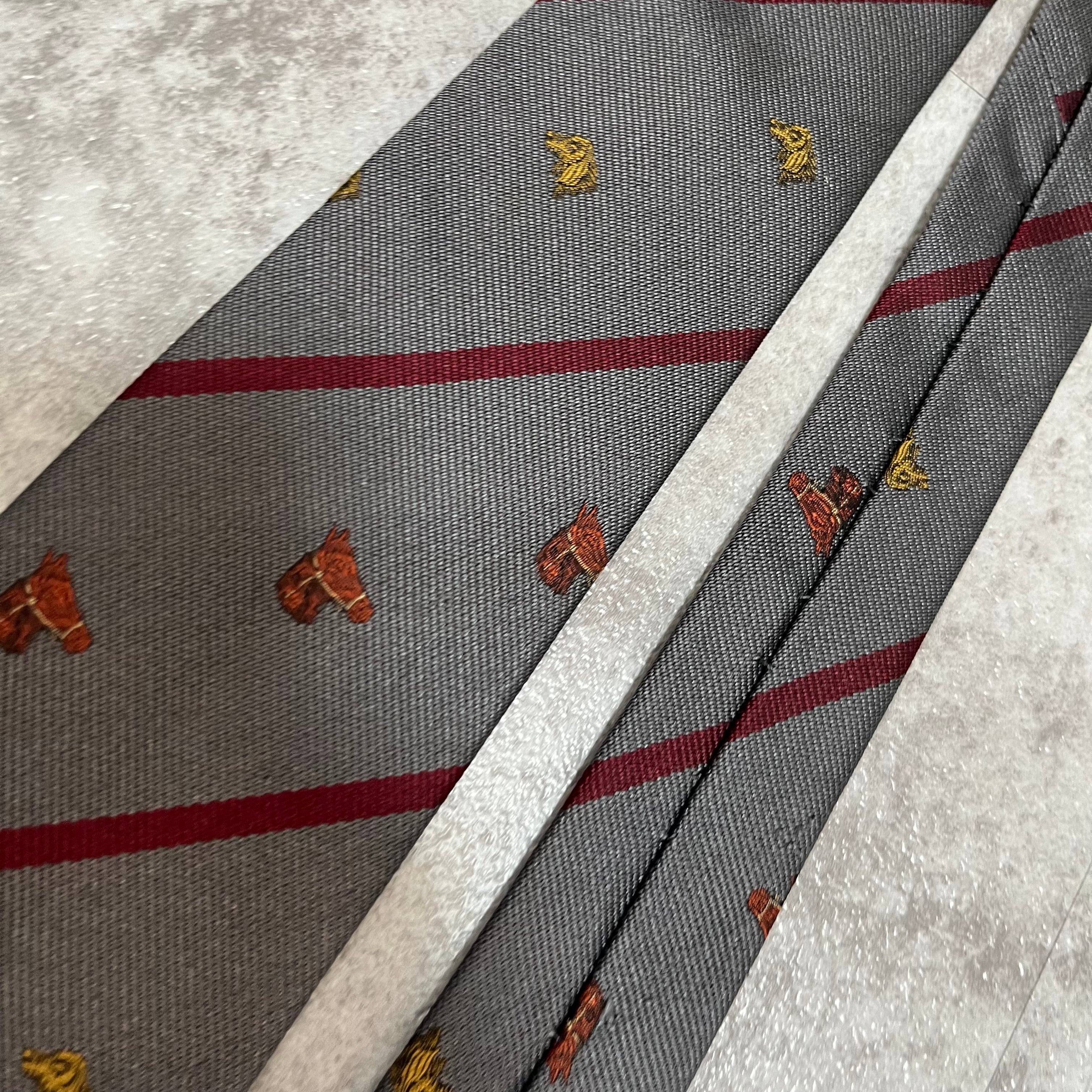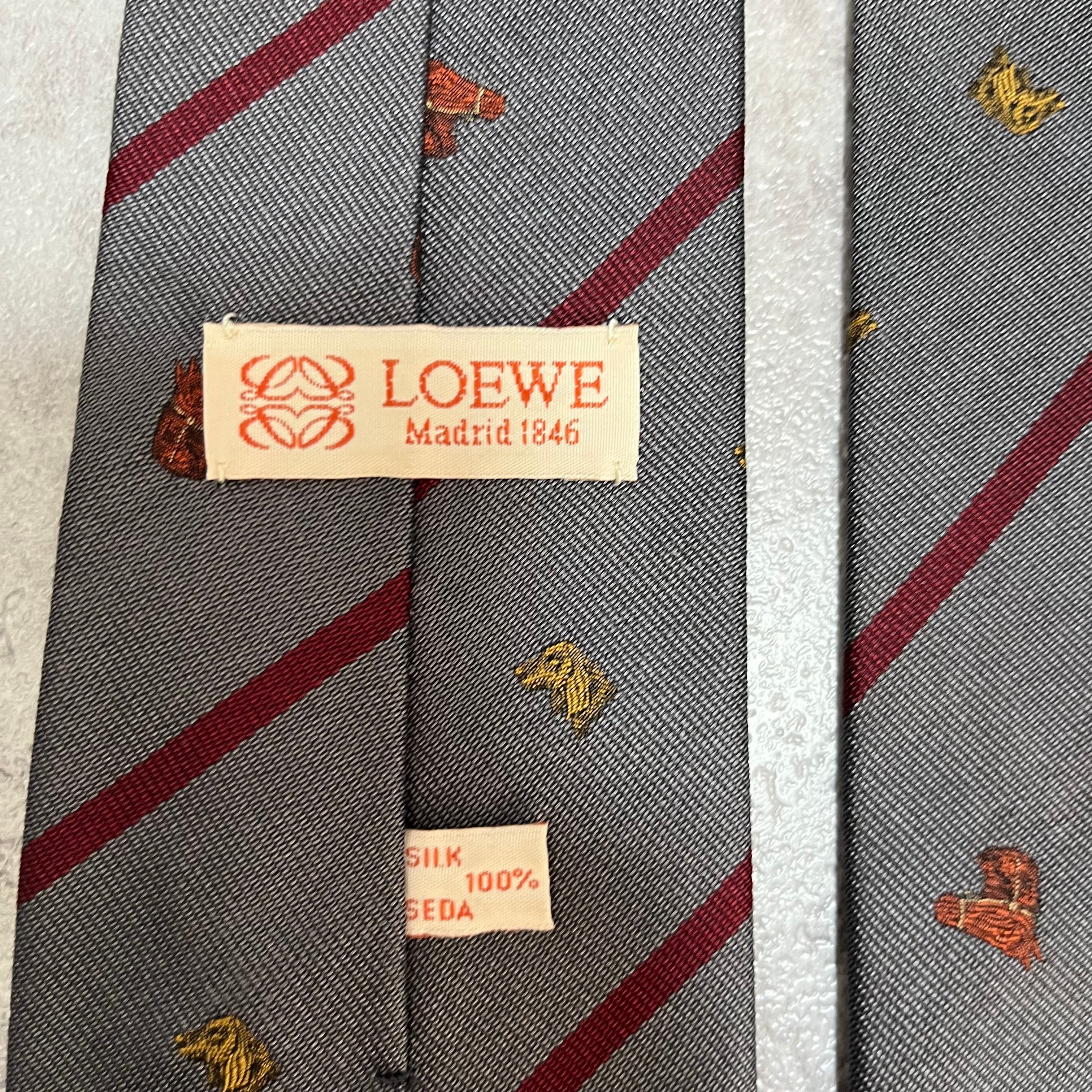 【LOEWE】アニマル柄×レジメンタルストライプネクタイ グレー レッド バイカラー 犬 馬