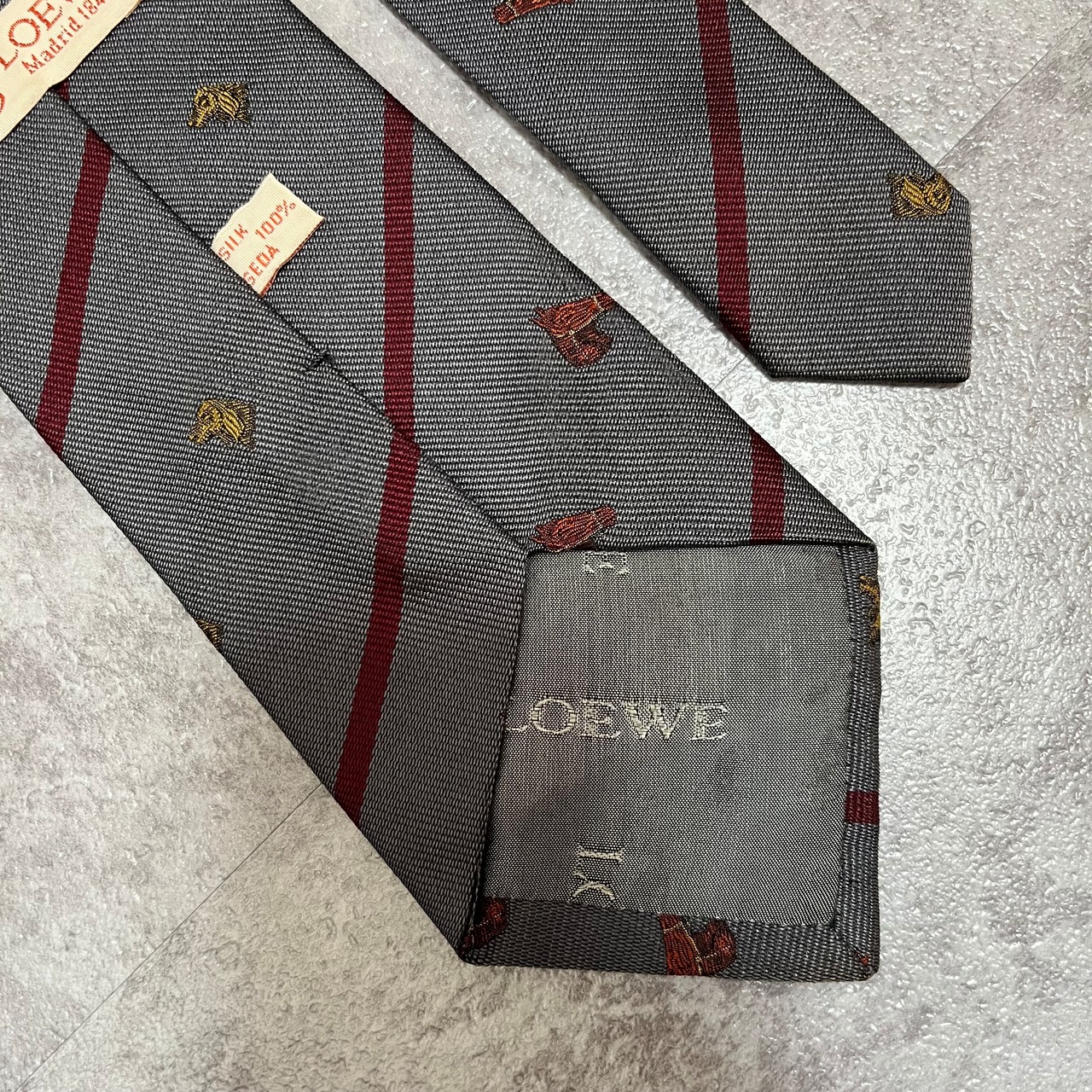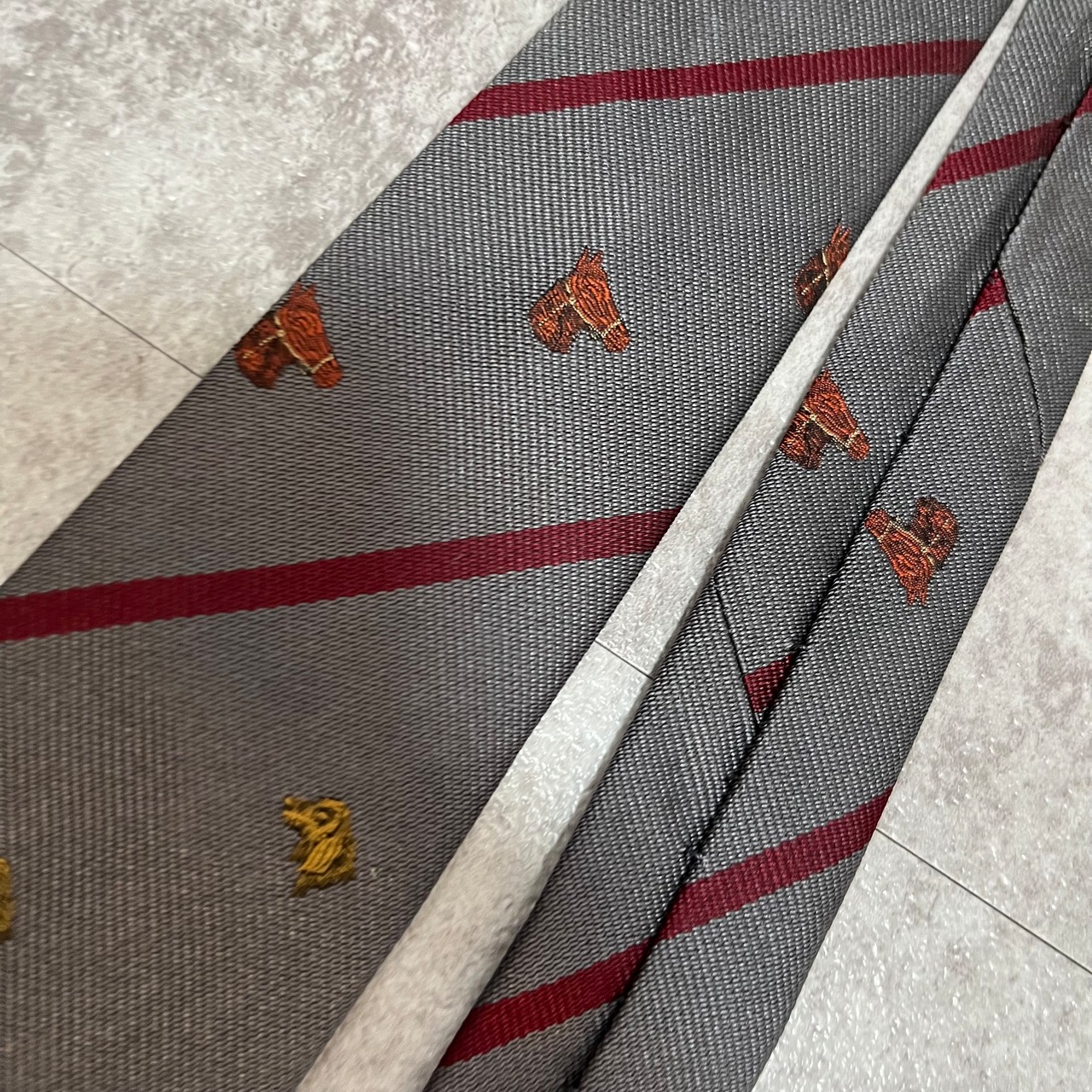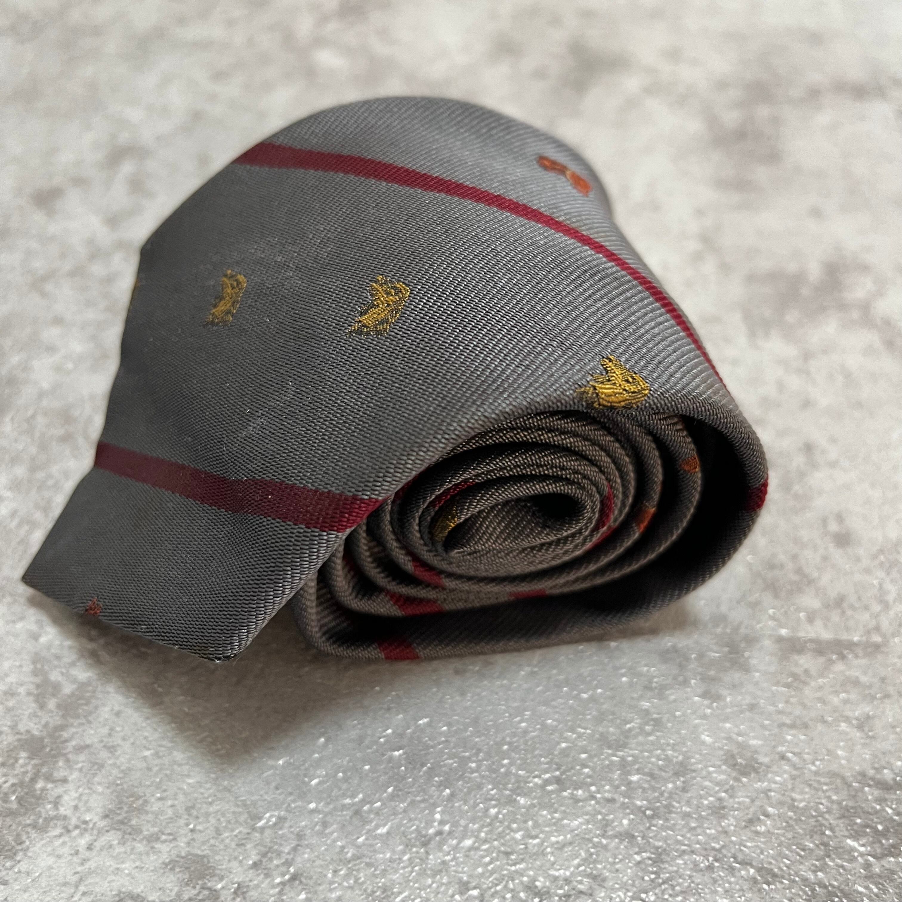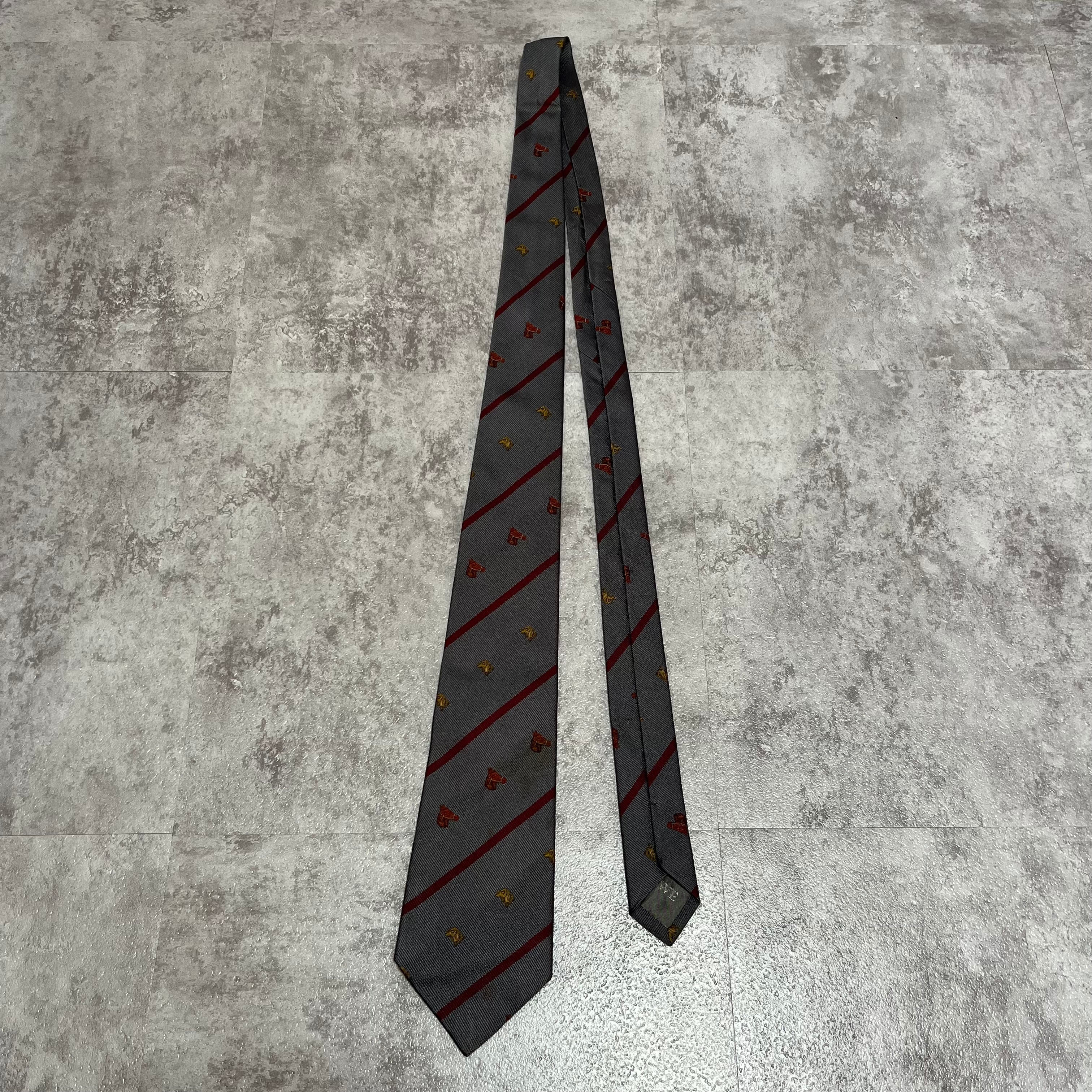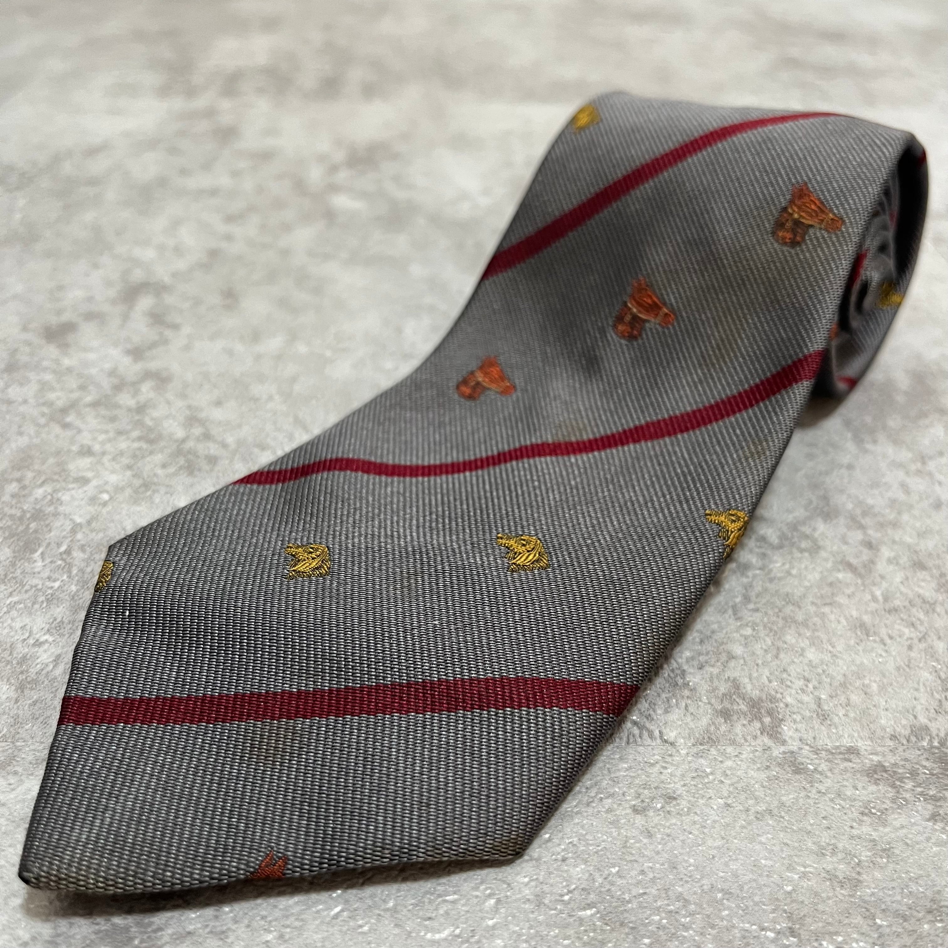【LOEWE】アニマル柄×レジメンタルストライプネクタイ グレー レッド バイカラー 犬 馬