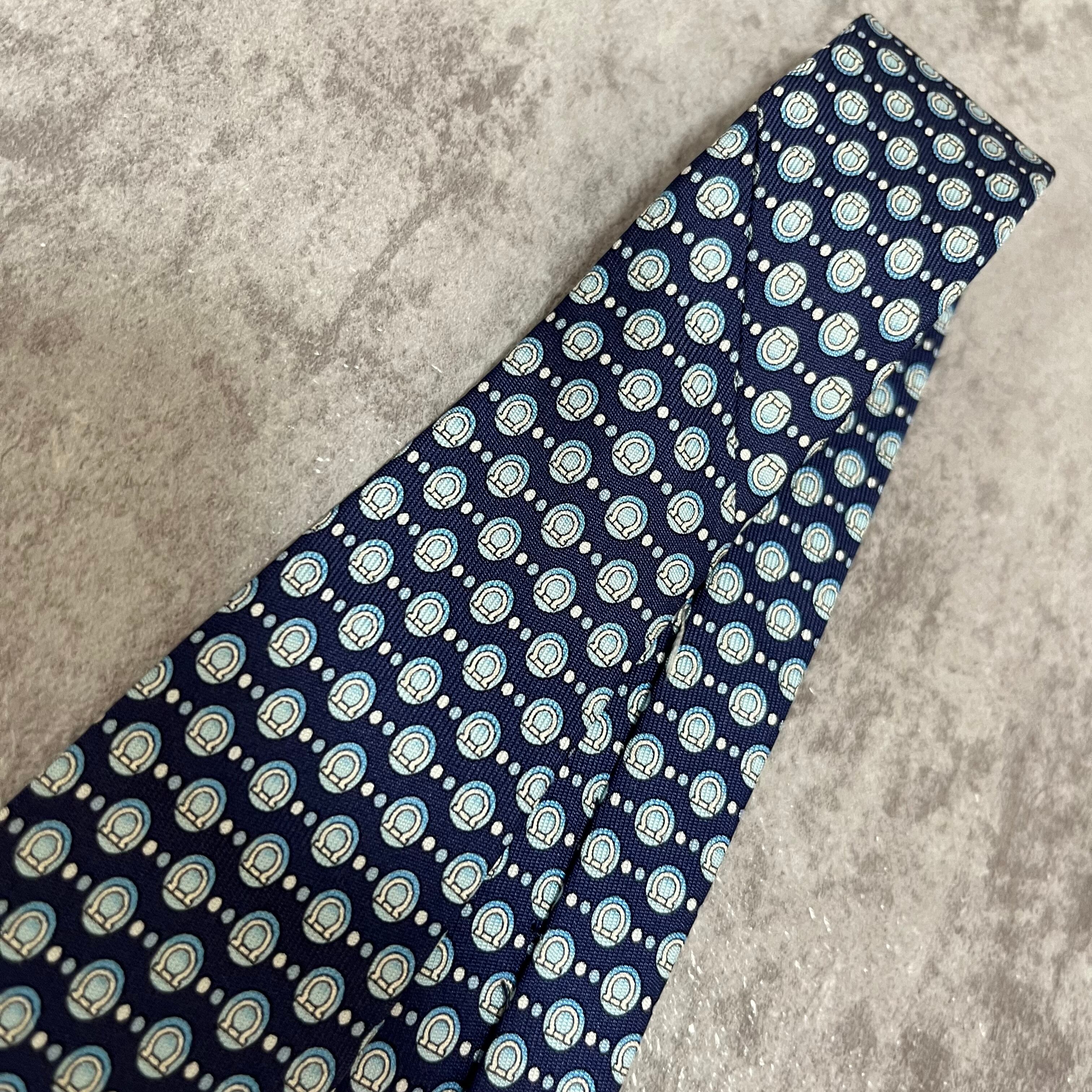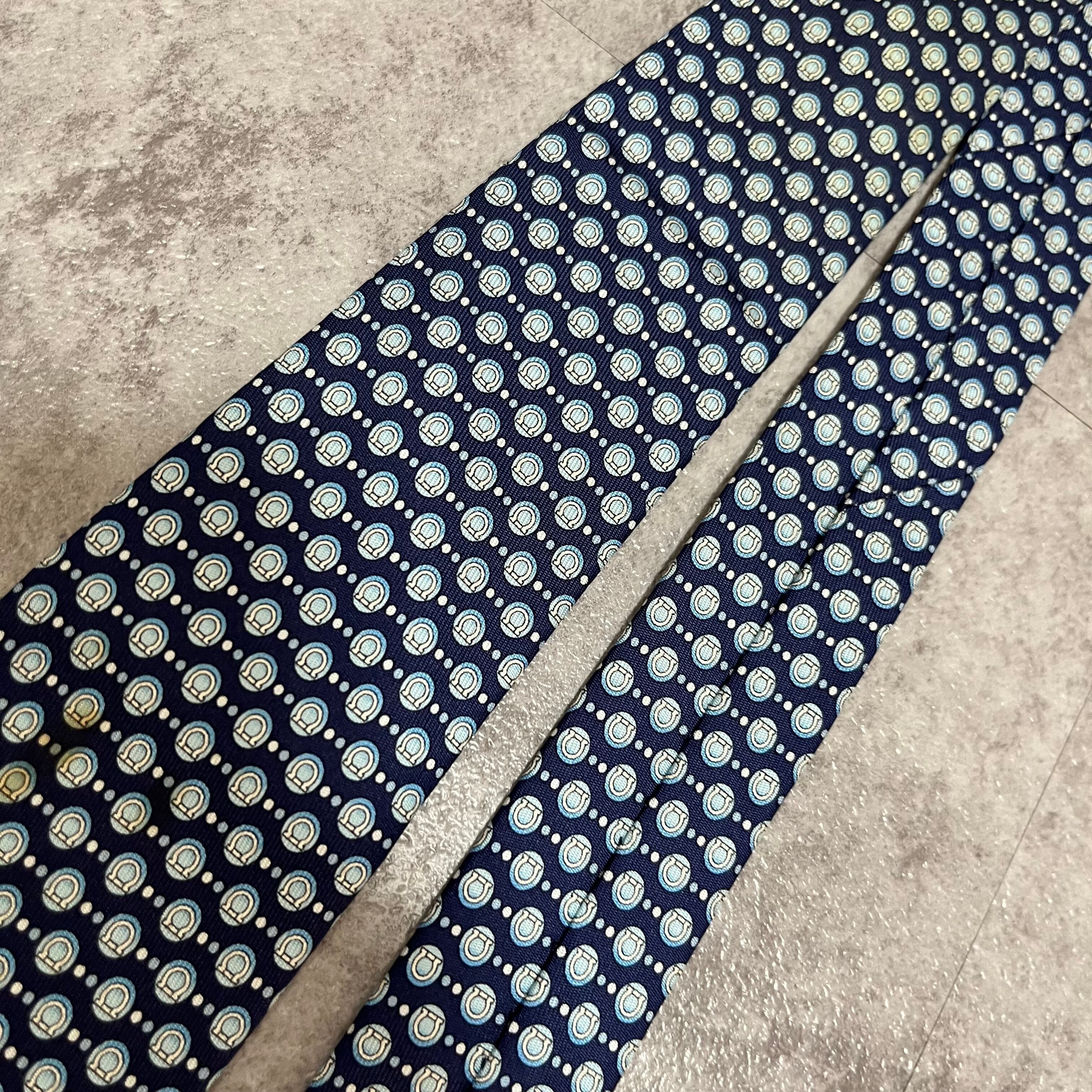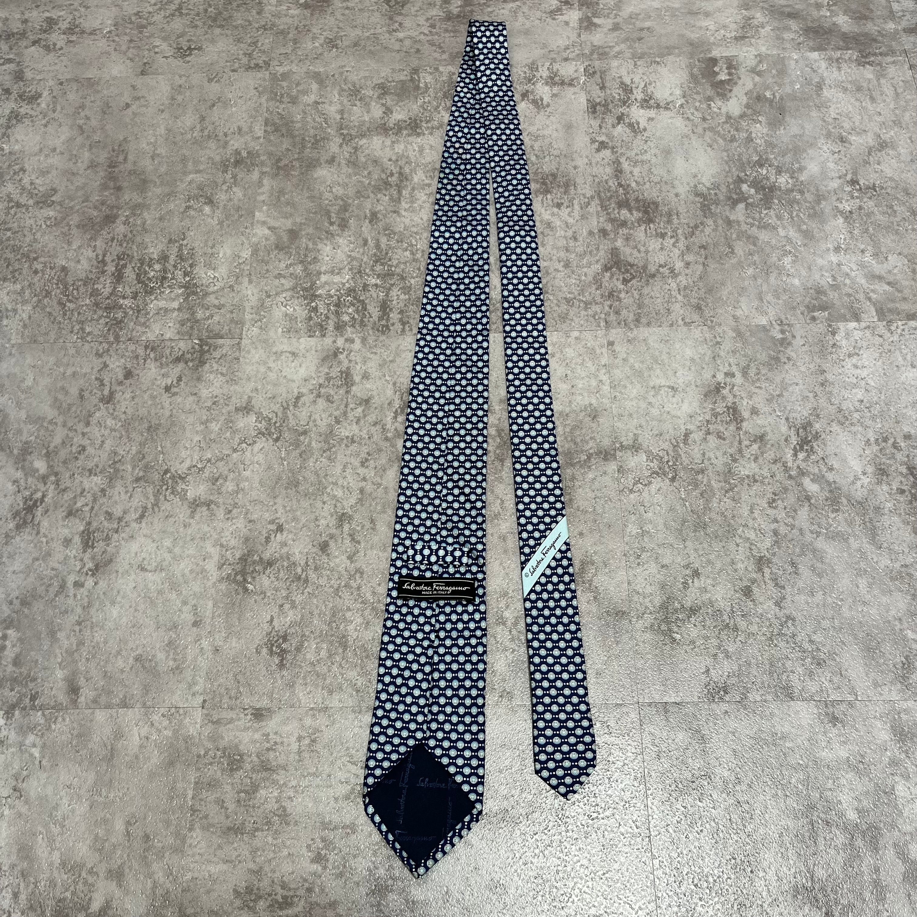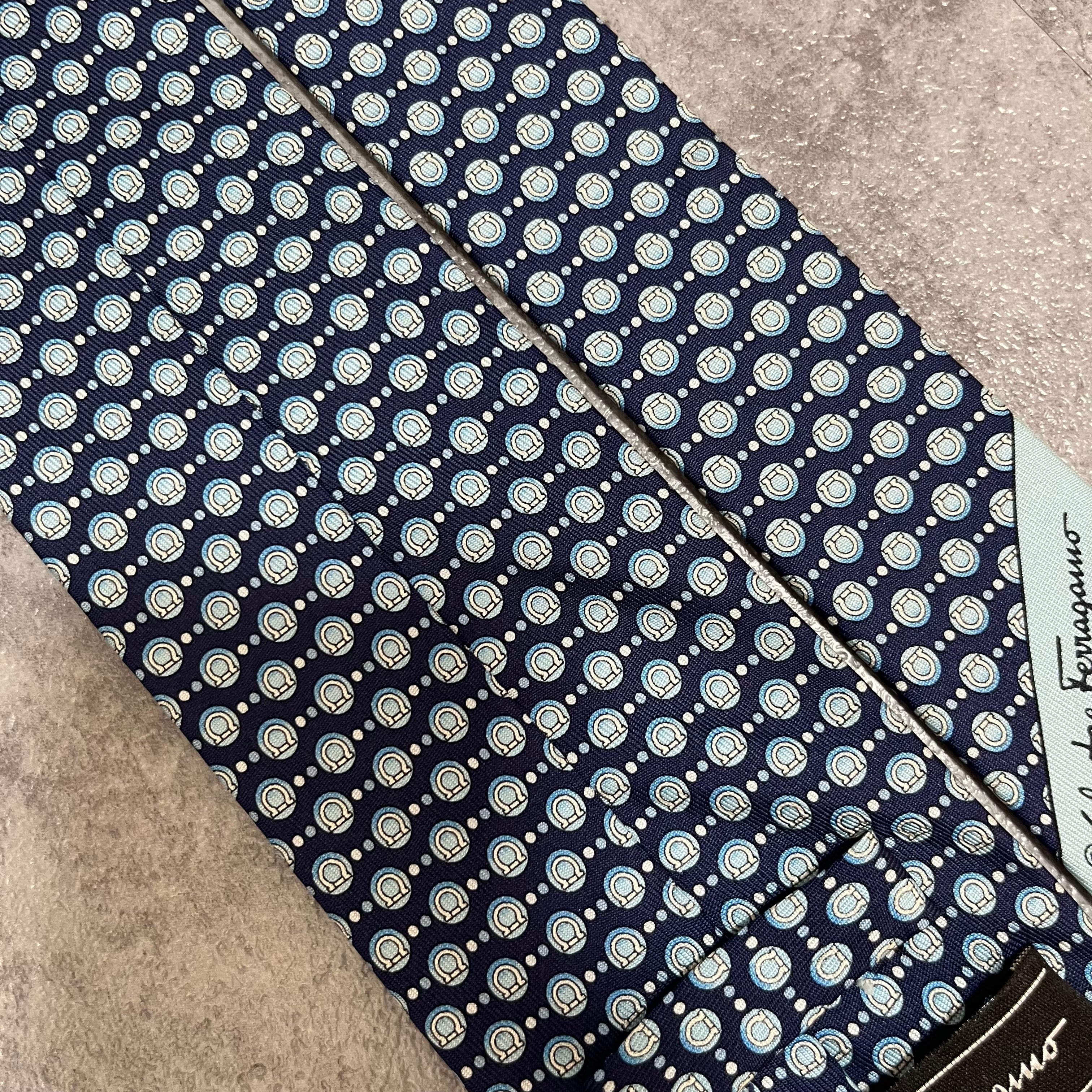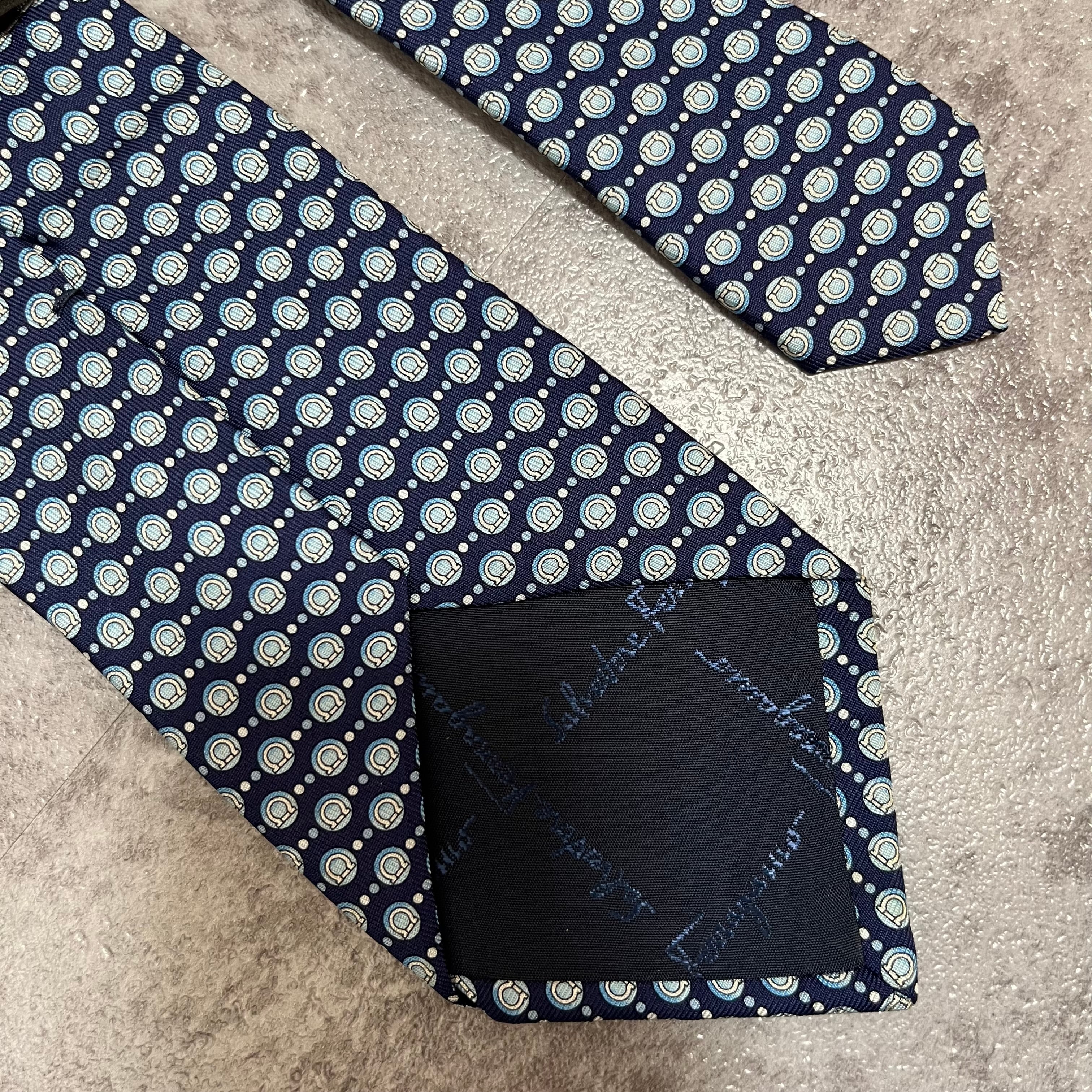 【Salvatore Ferragamo】ガンチーニロゴ総柄ネクタイ ブルー 総ロゴ ドット柄