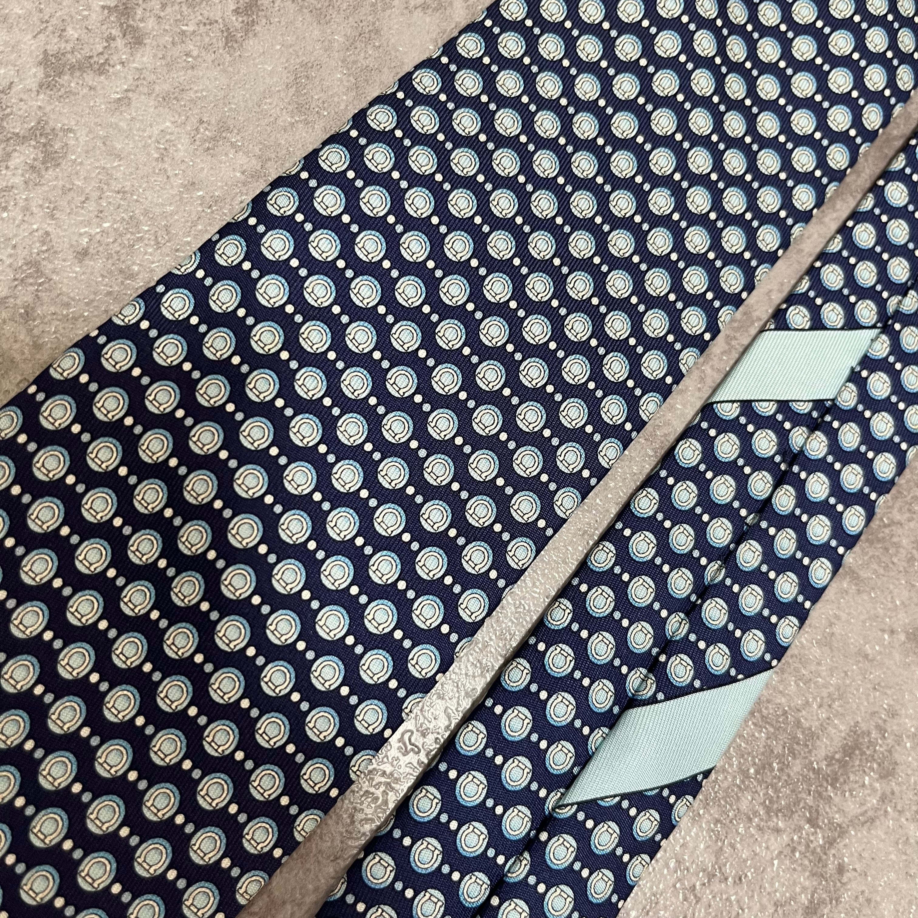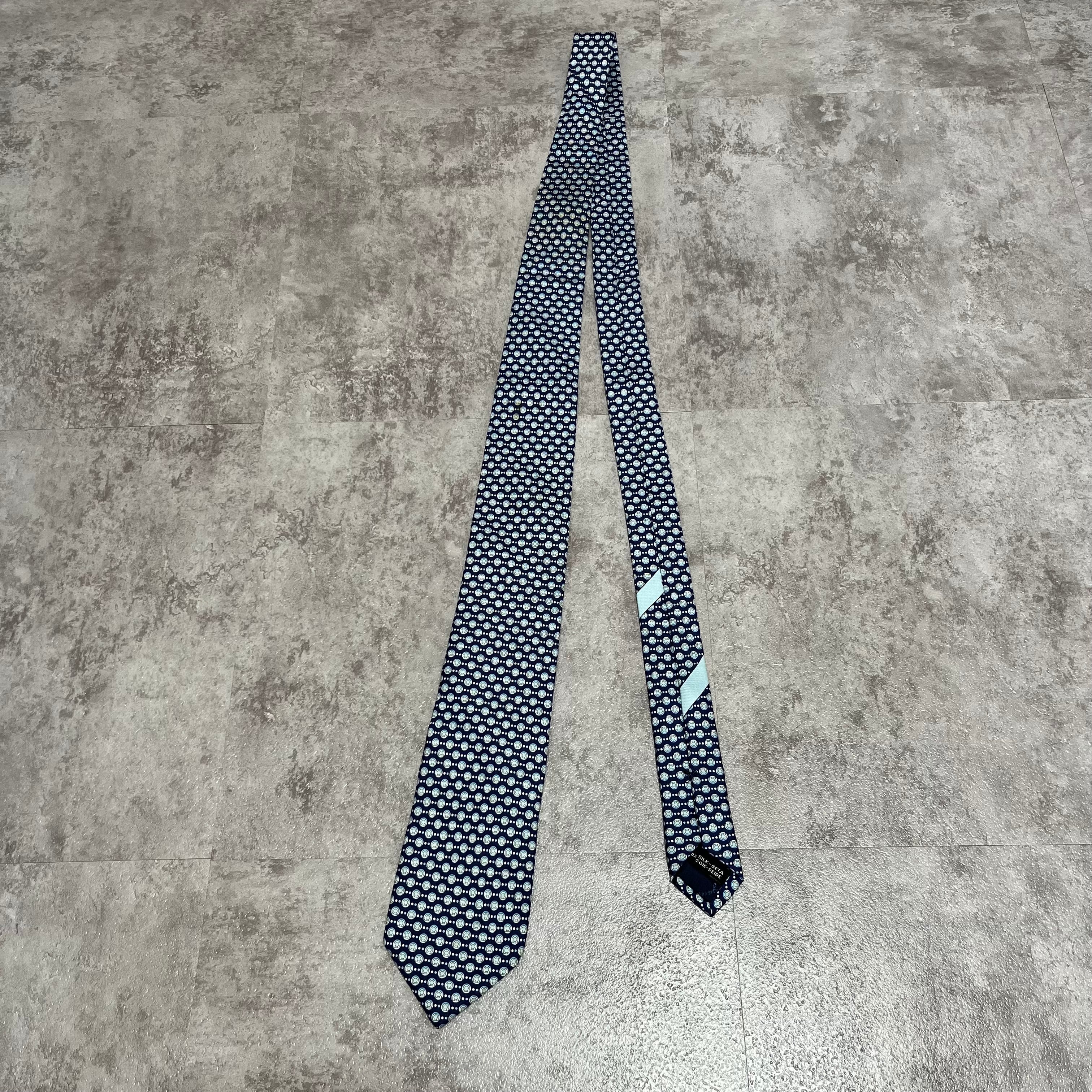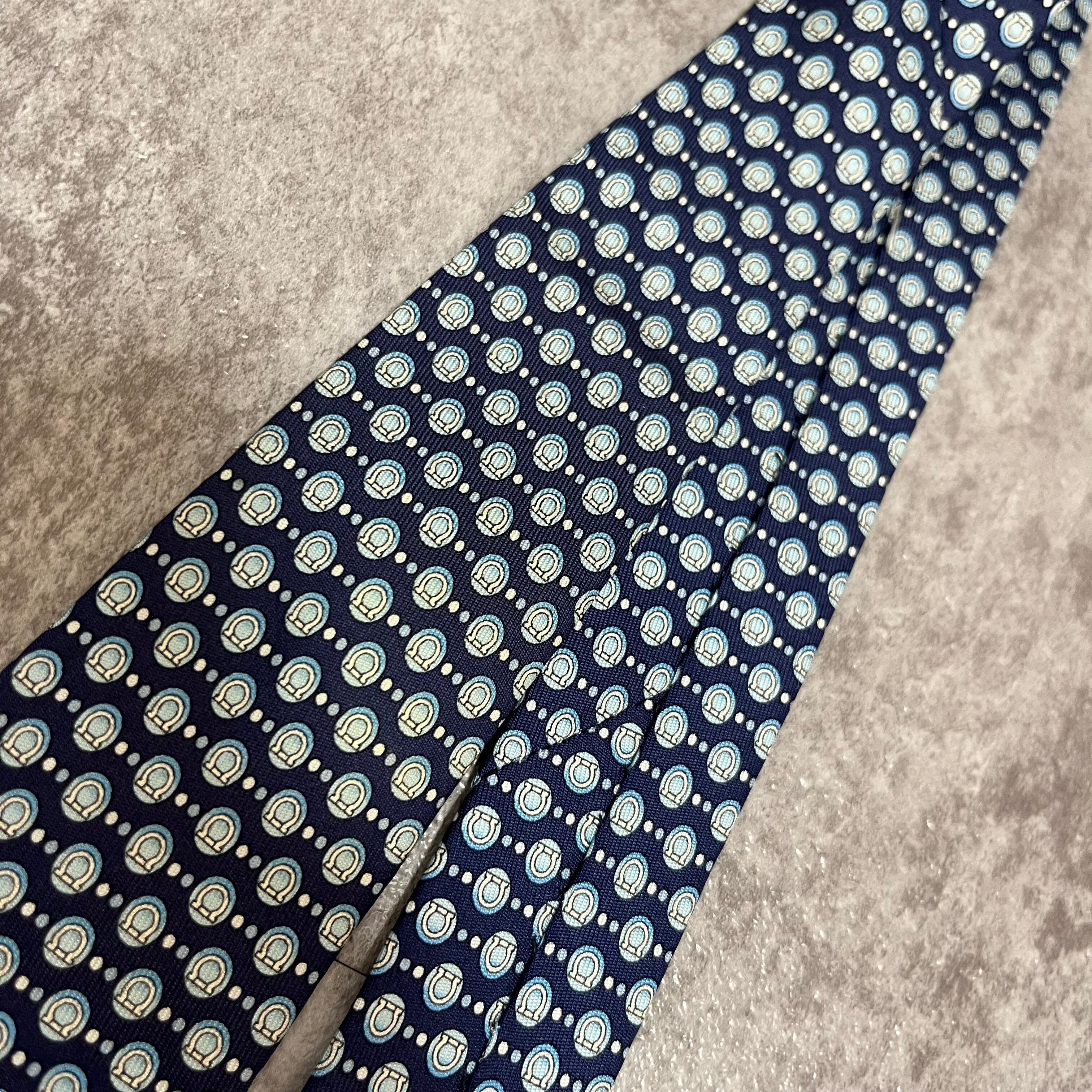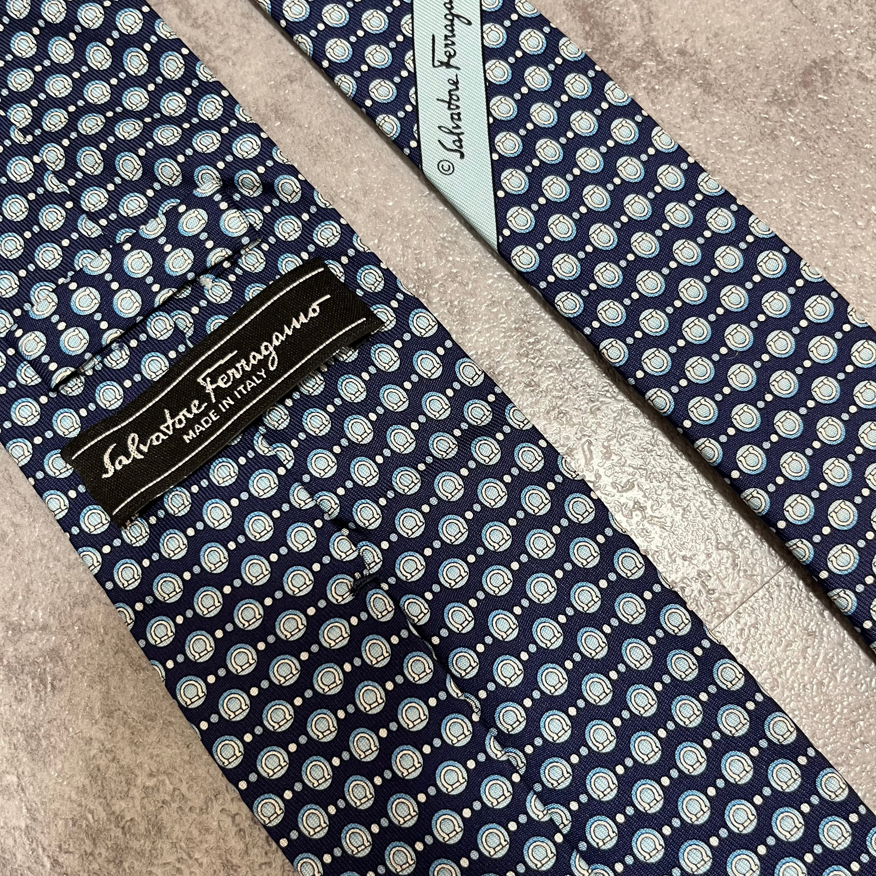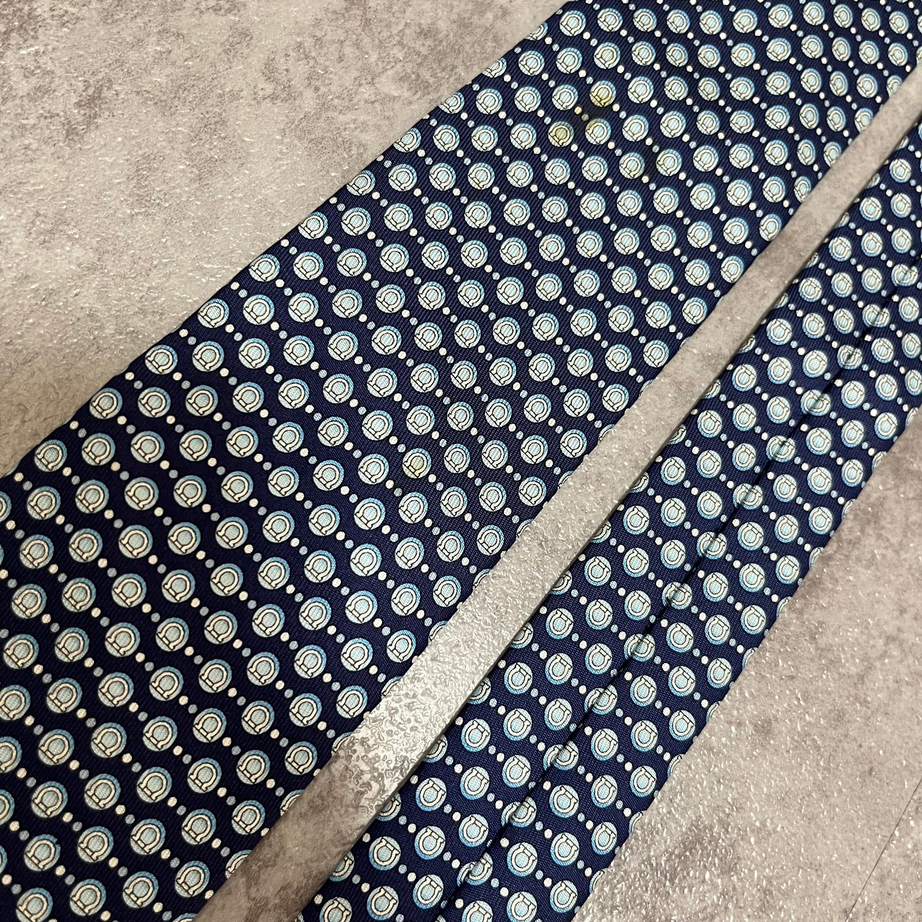 【Salvatore Ferragamo】ガンチーニロゴ総柄ネクタイ ブルー 総ロゴ ドット柄
