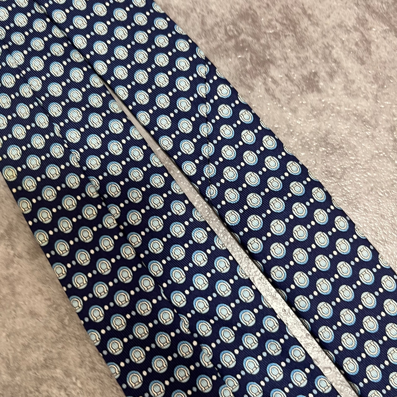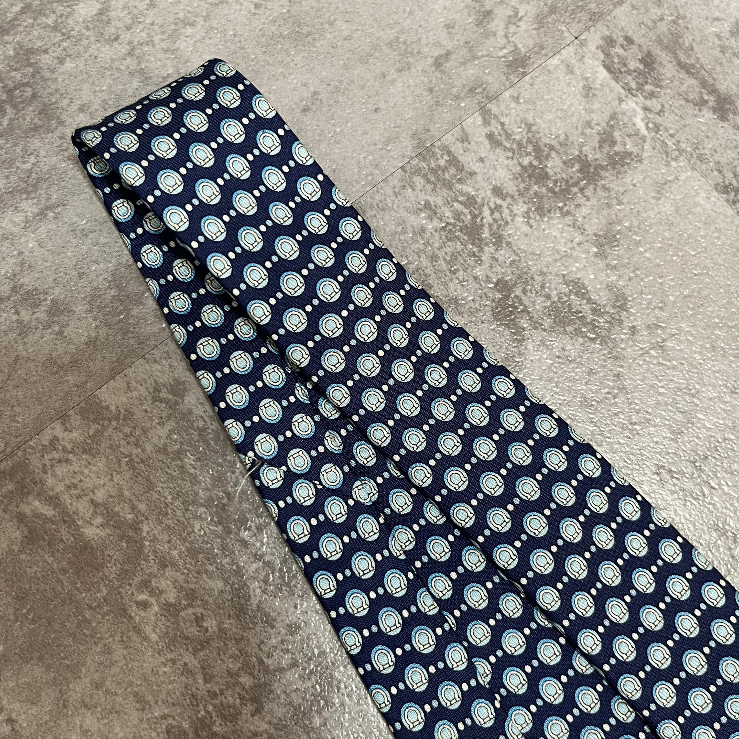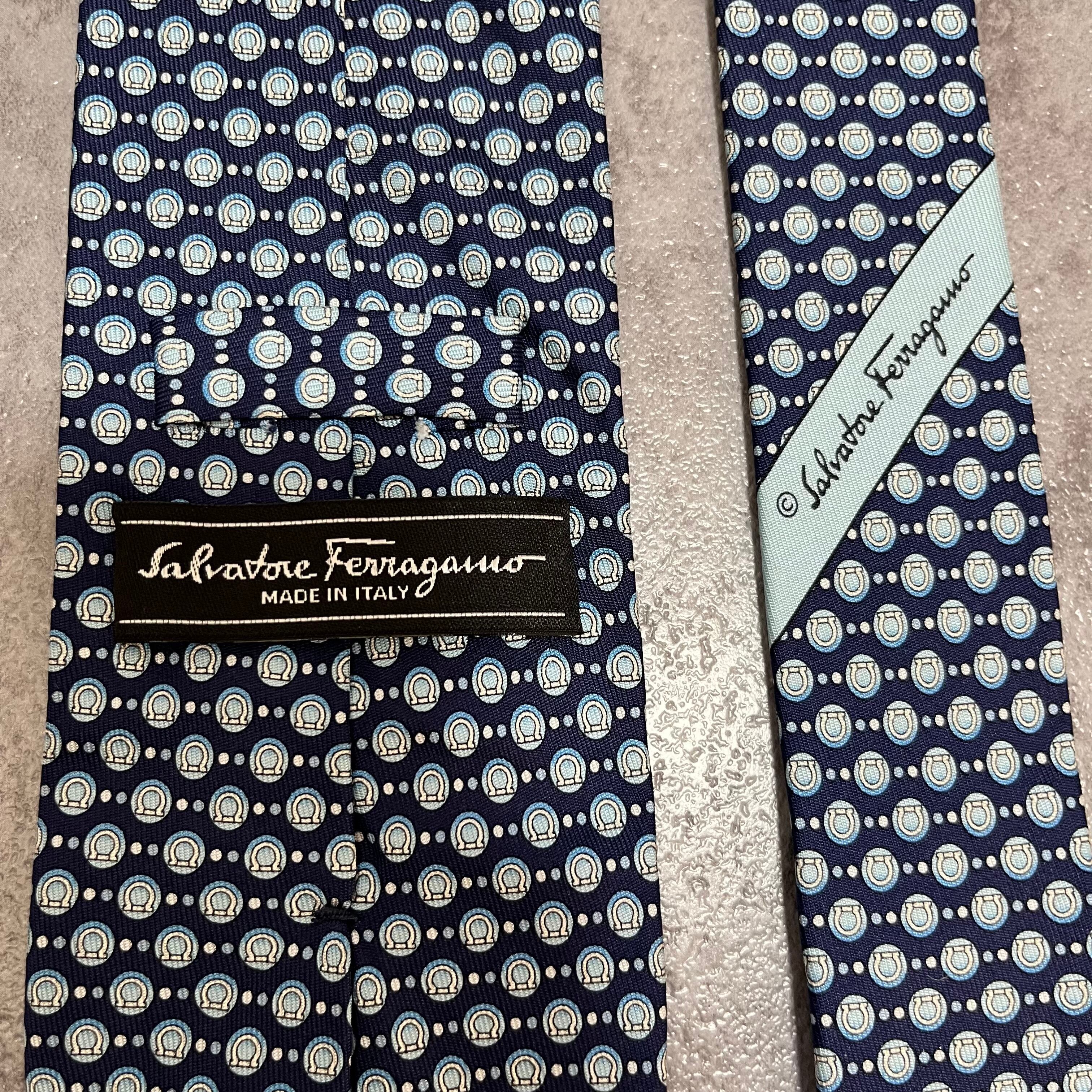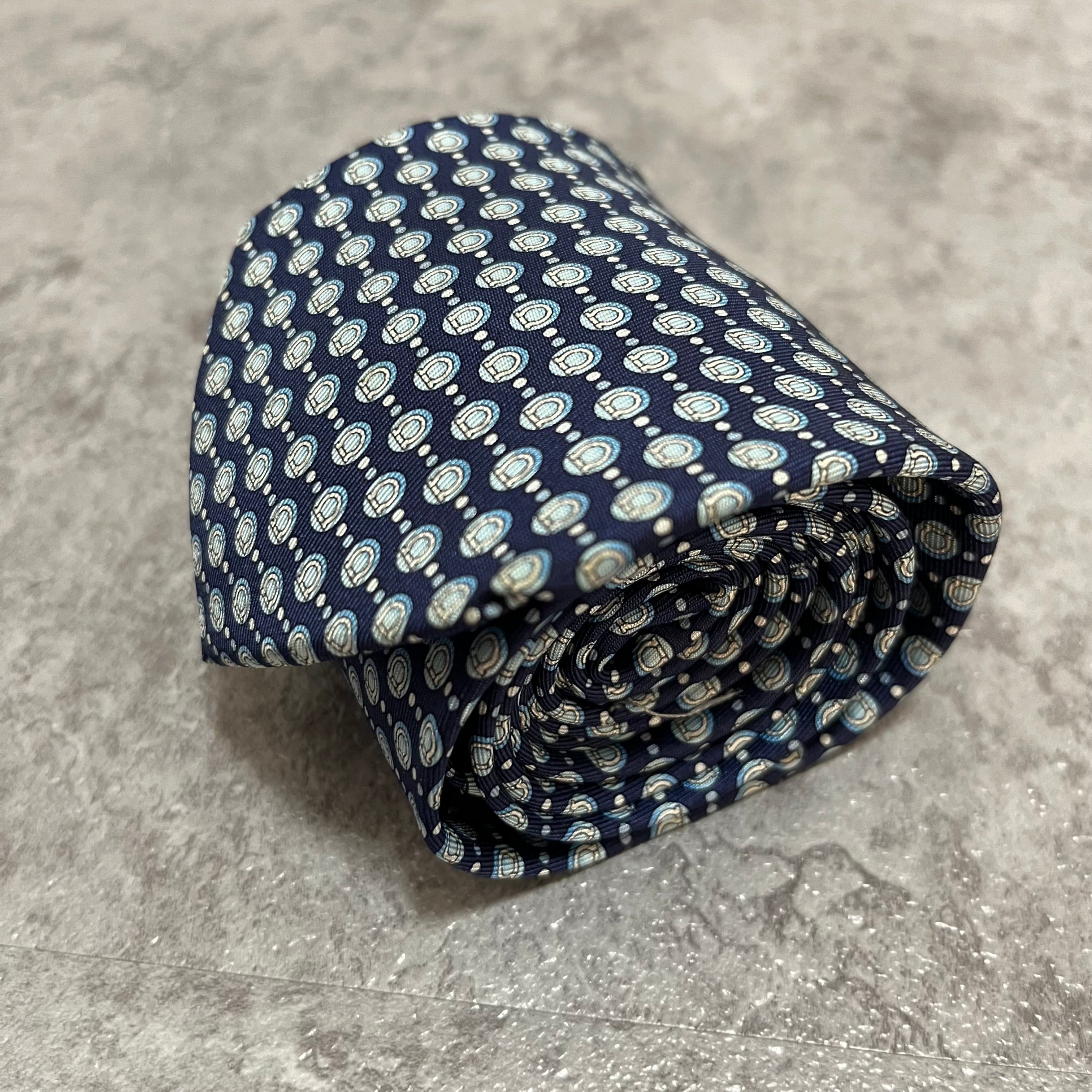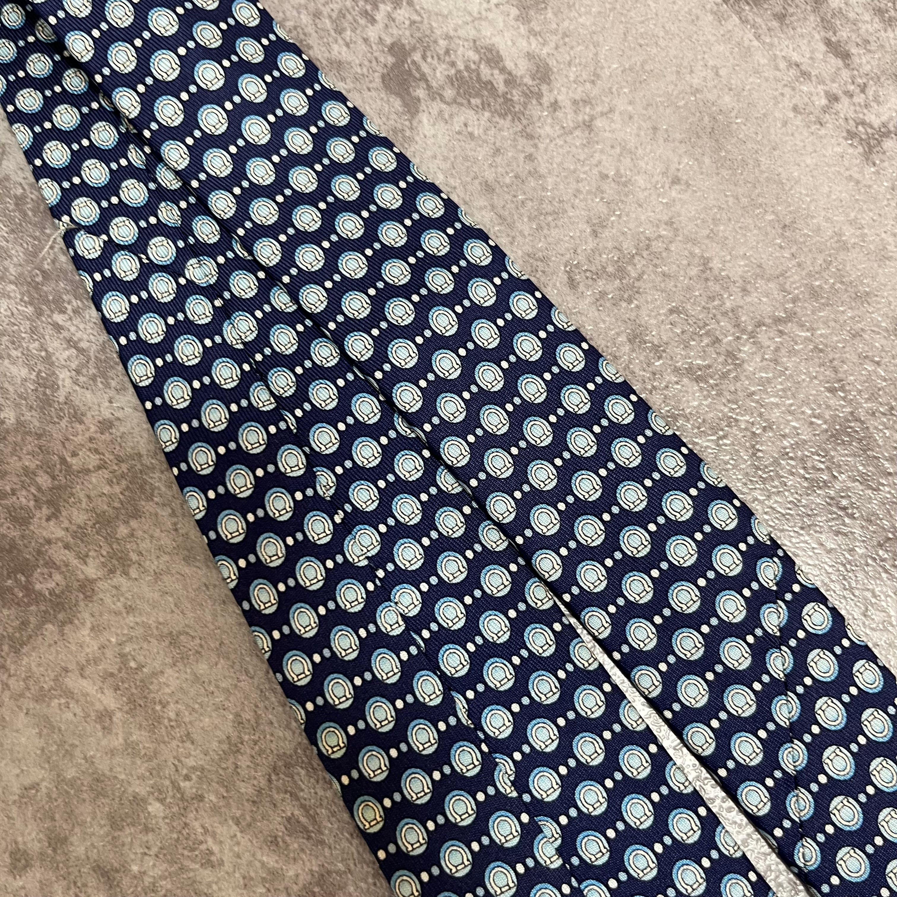 【Salvatore Ferragamo】ガンチーニロゴ総柄ネクタイ ブルー 総ロゴ ドット柄