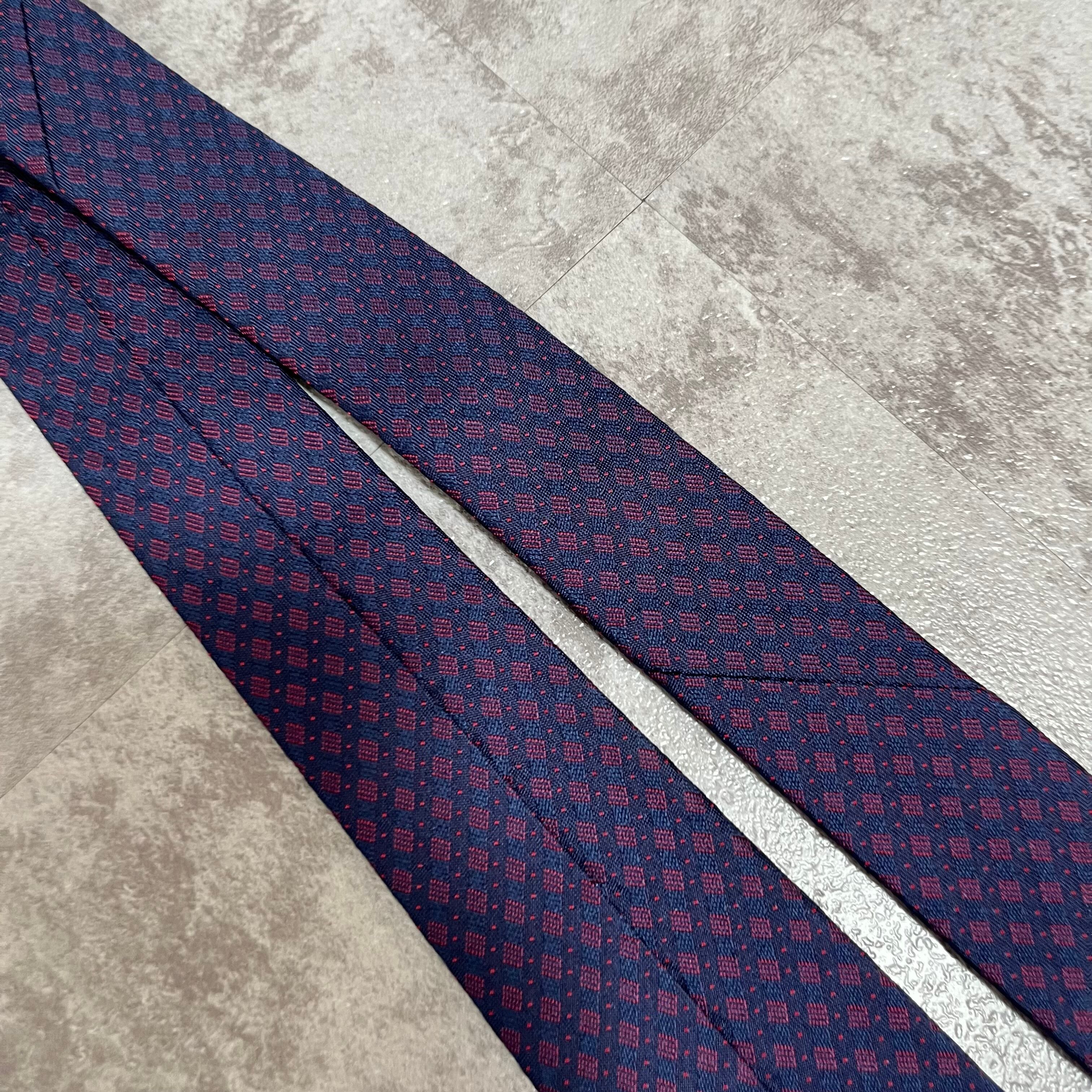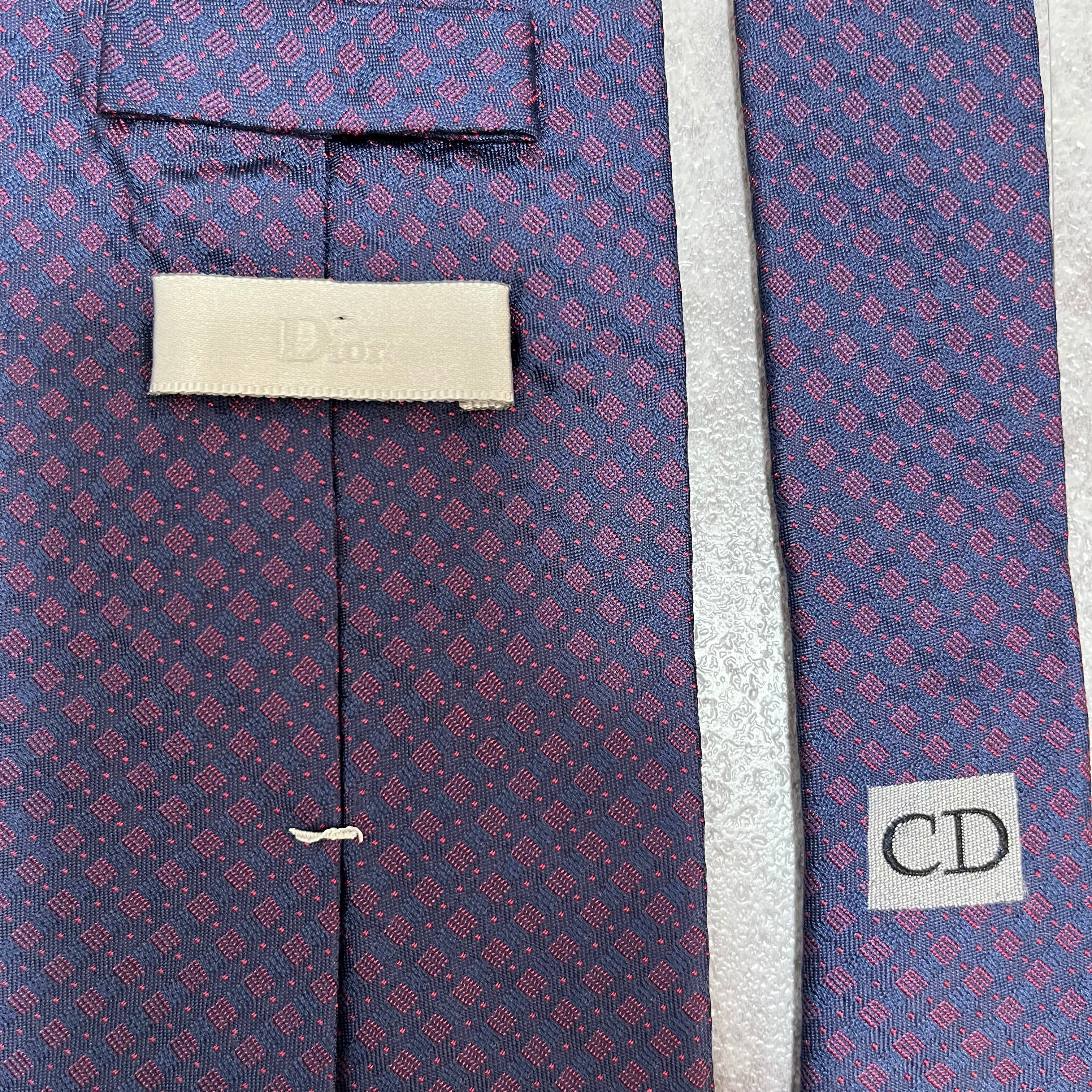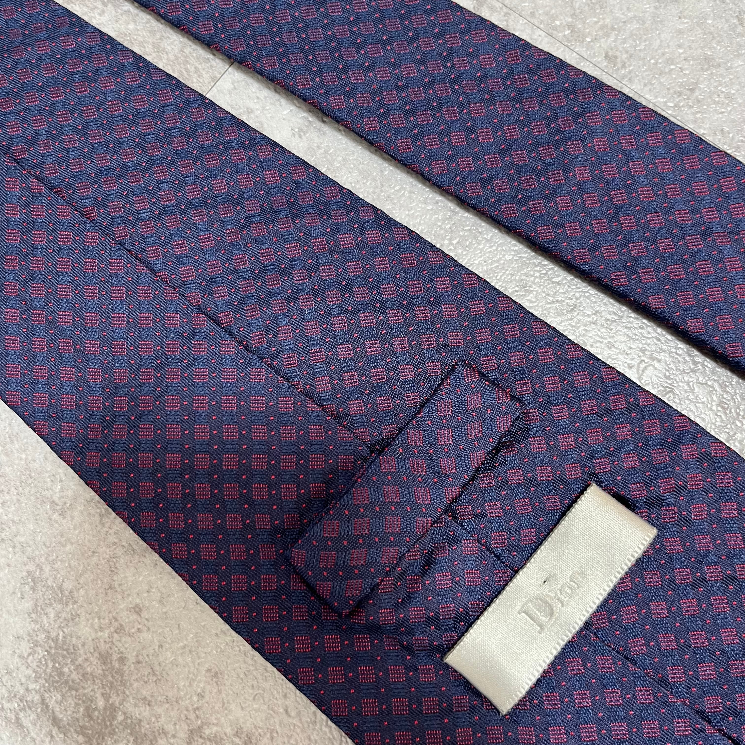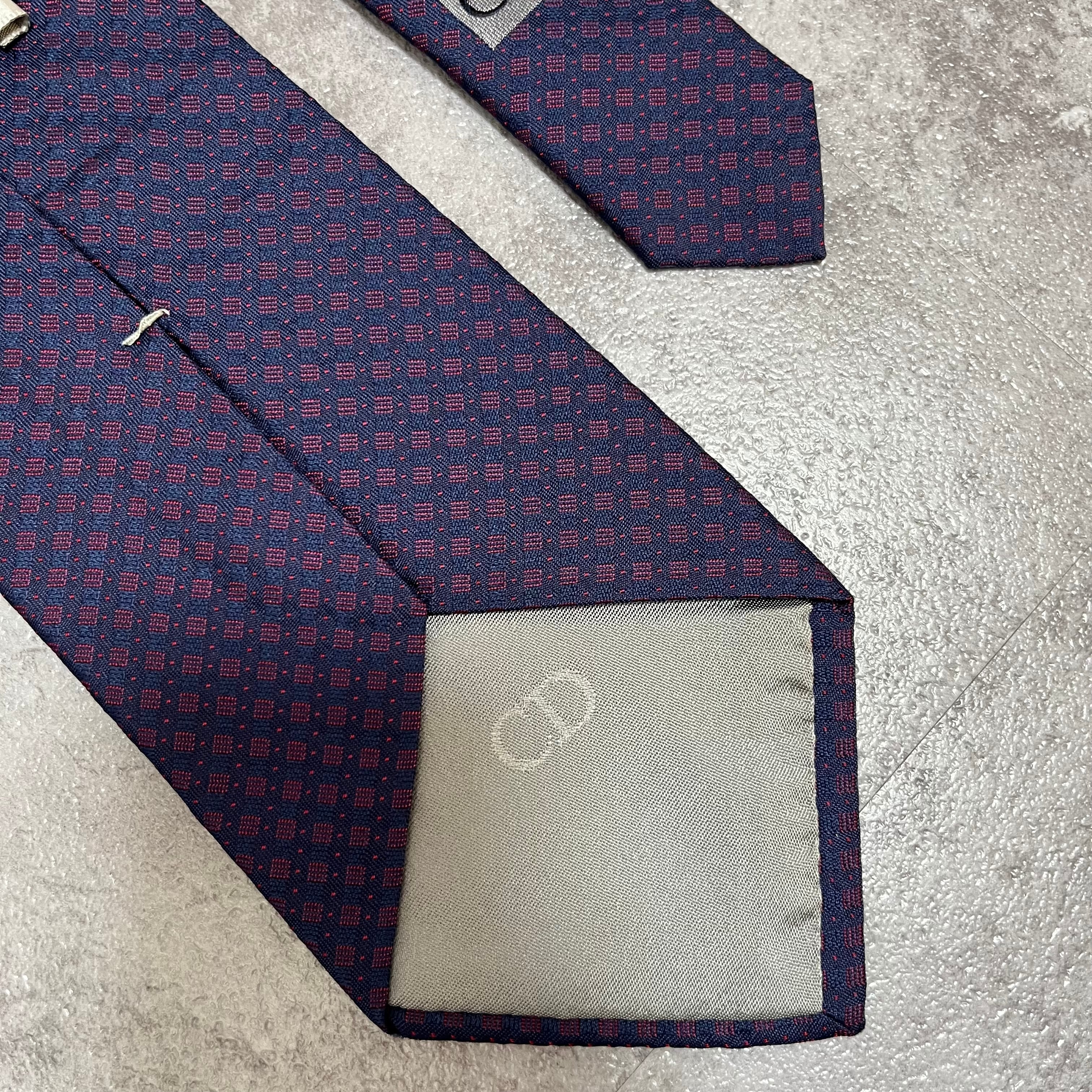 【Dior Homme】チェック柄ネクタイ ネイビー レッド バイカラー ドット 細チェック
