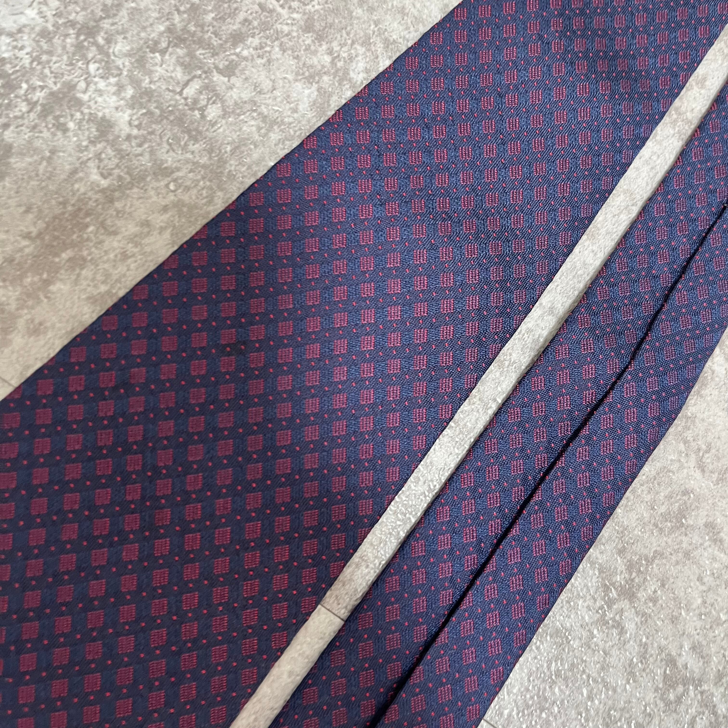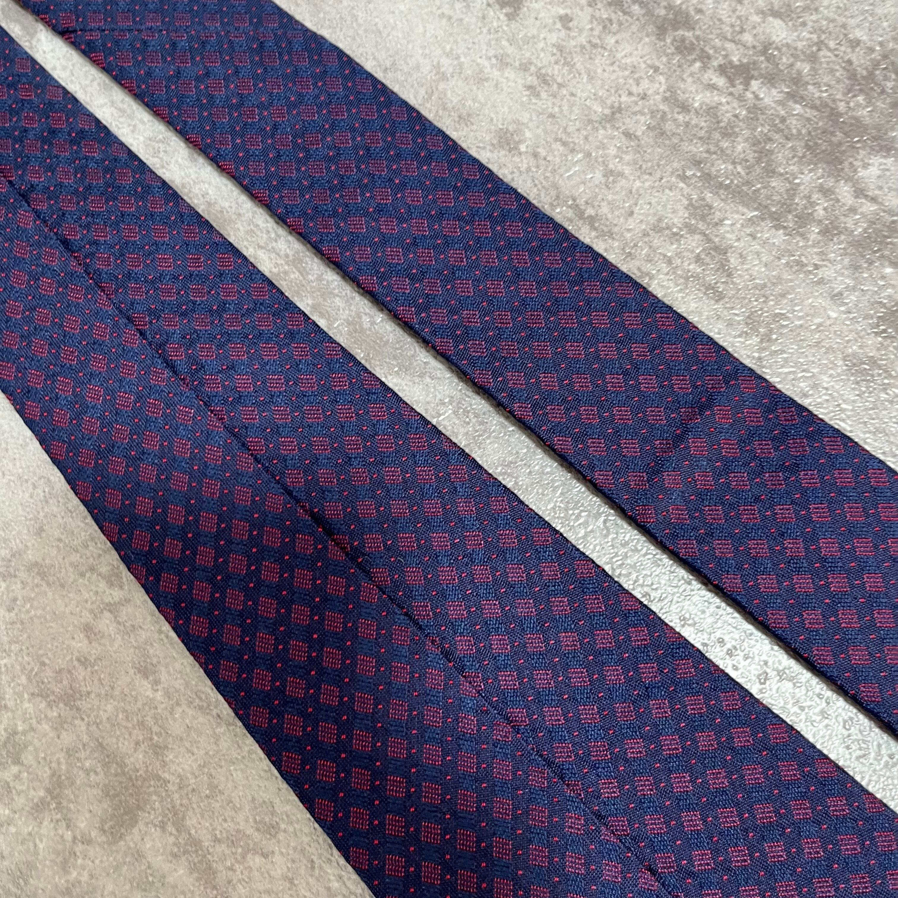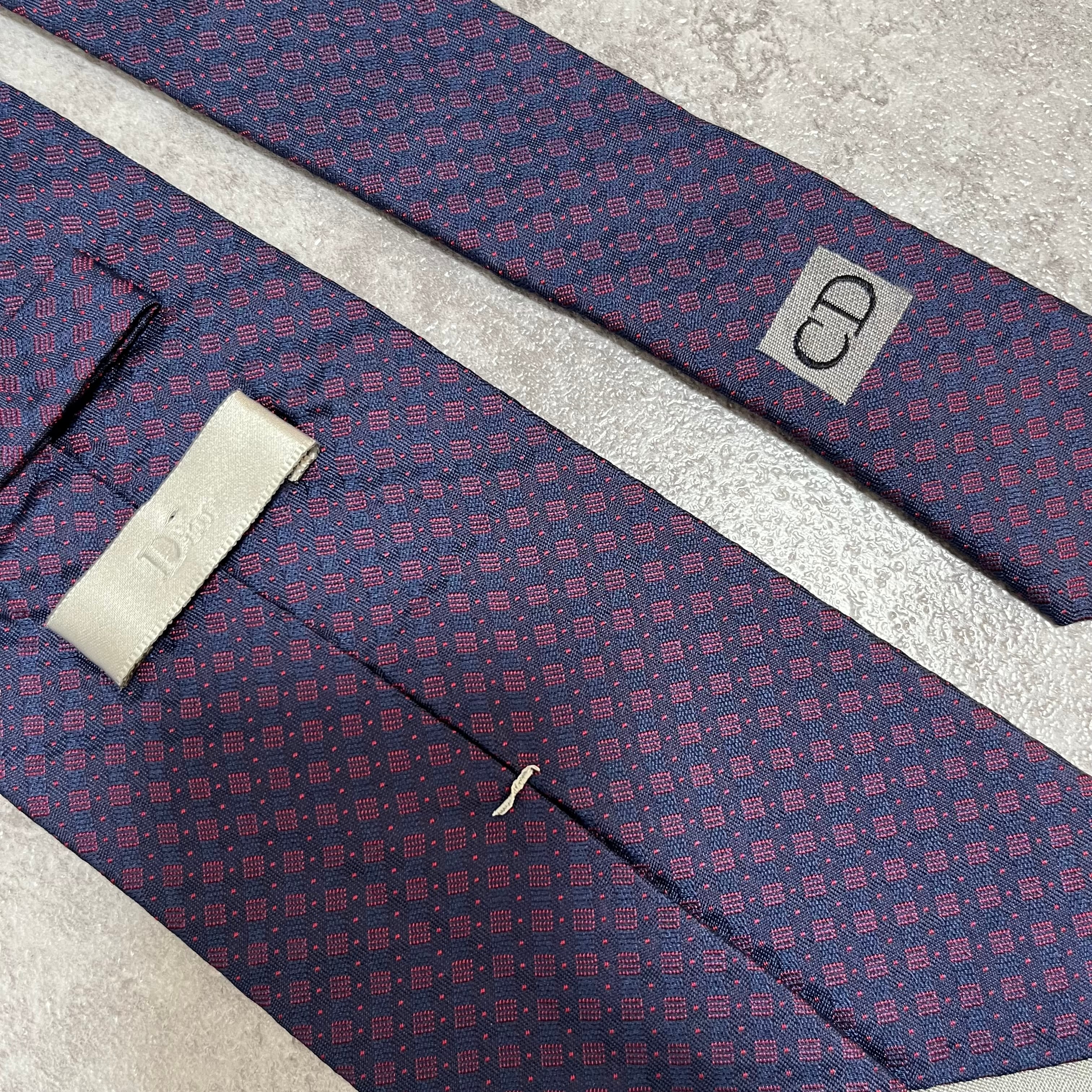 【Dior Homme】チェック柄ネクタイ ネイビー レッド バイカラー ドット 細チェック