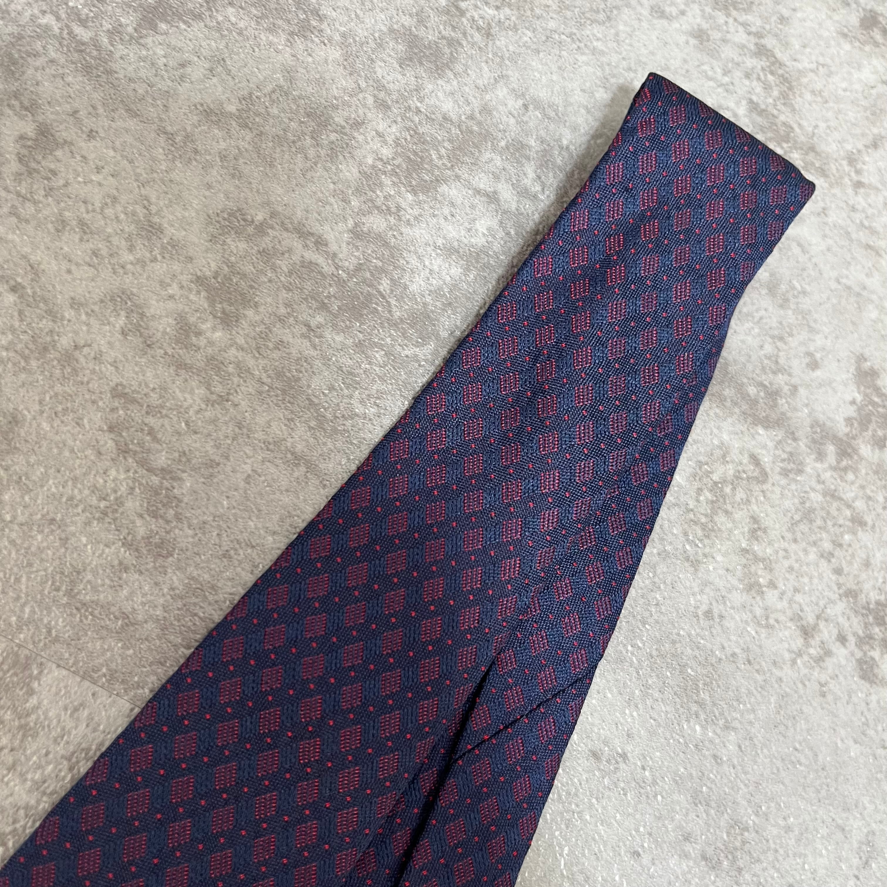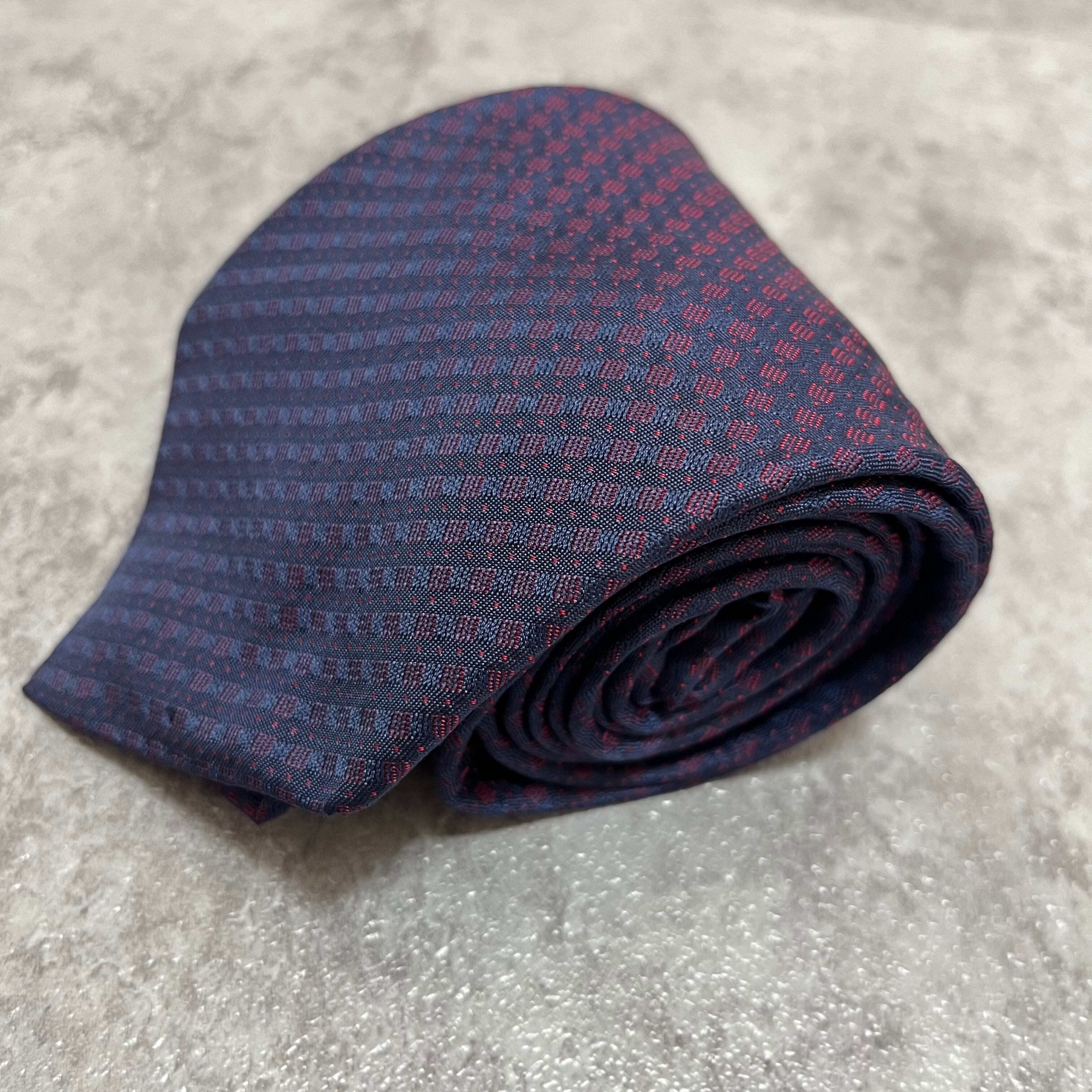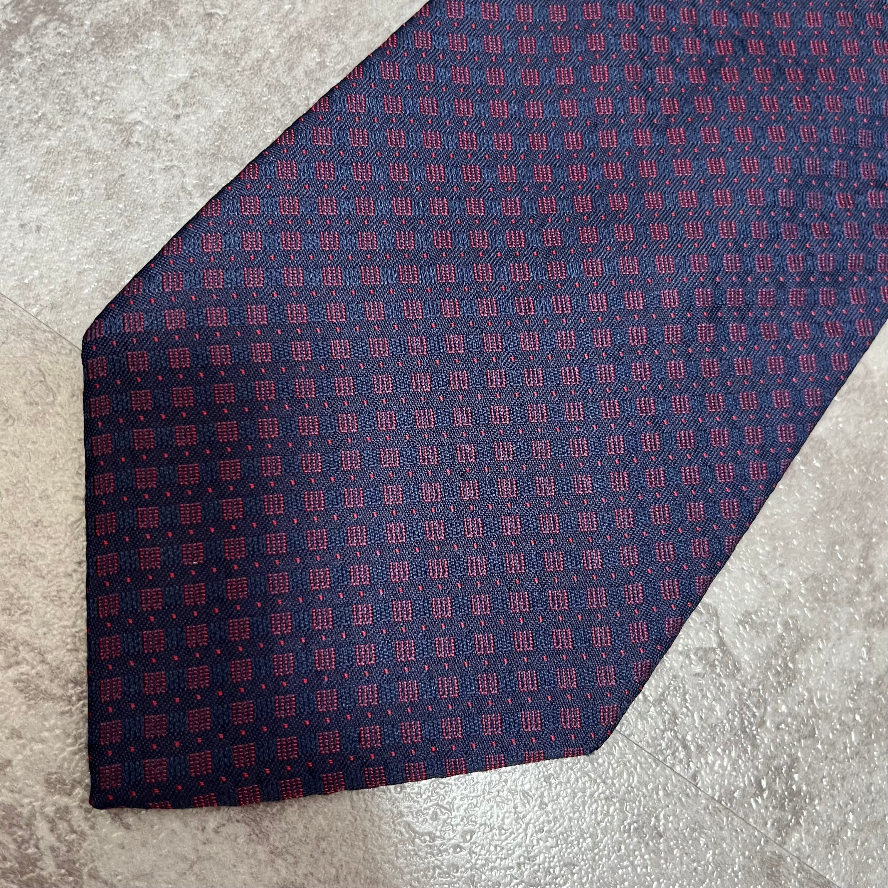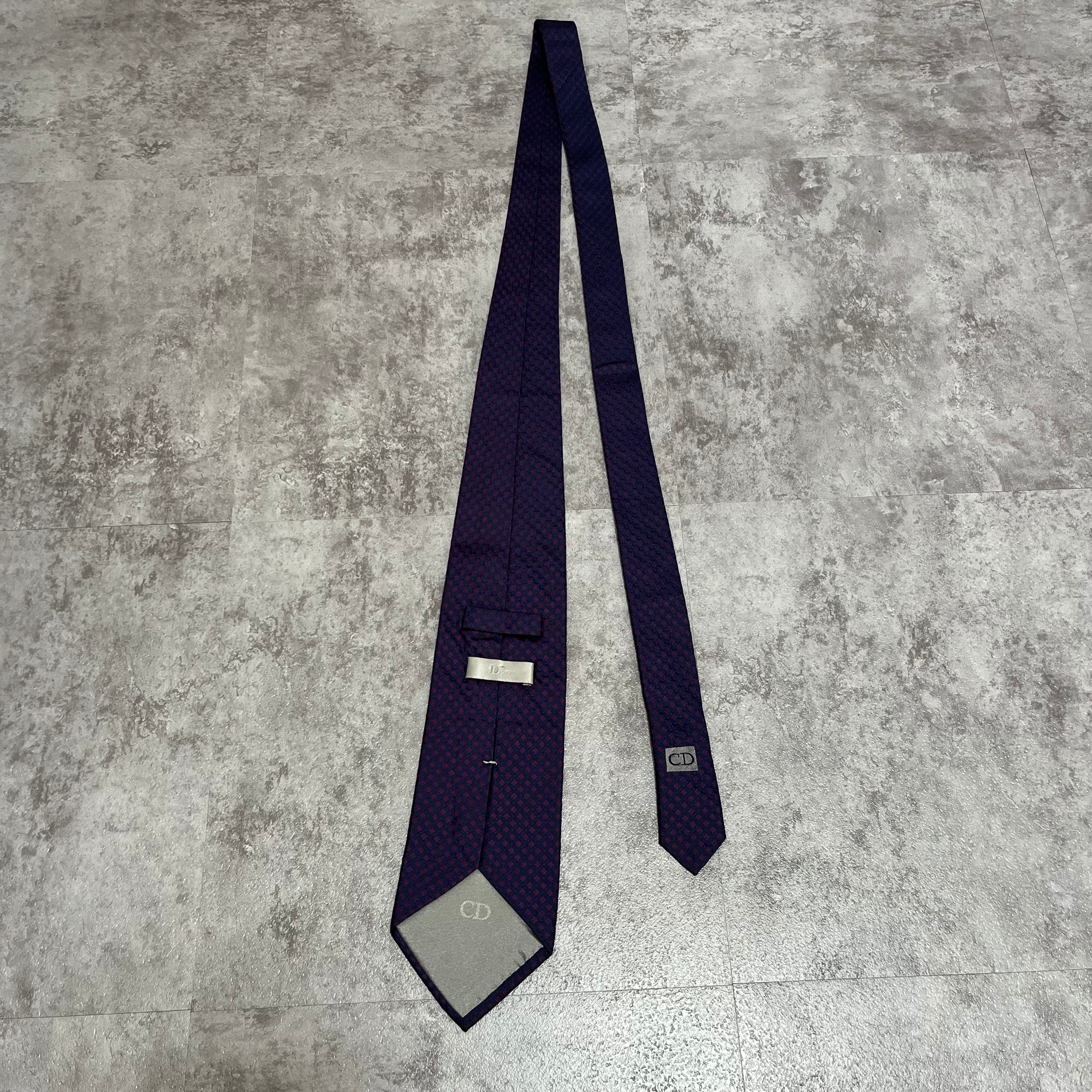 【Dior Homme】チェック柄ネクタイ ネイビー レッド バイカラー ドット 細チェック