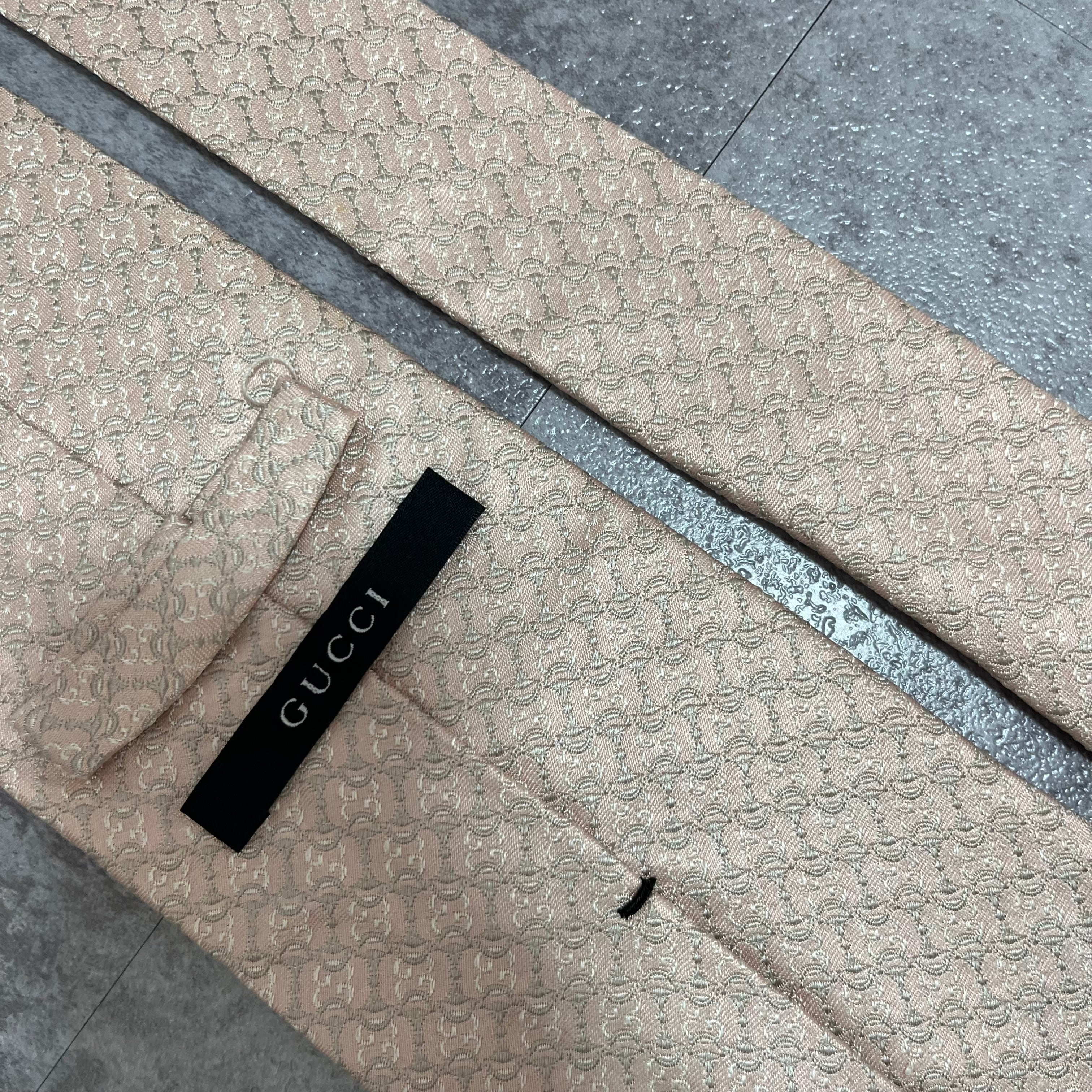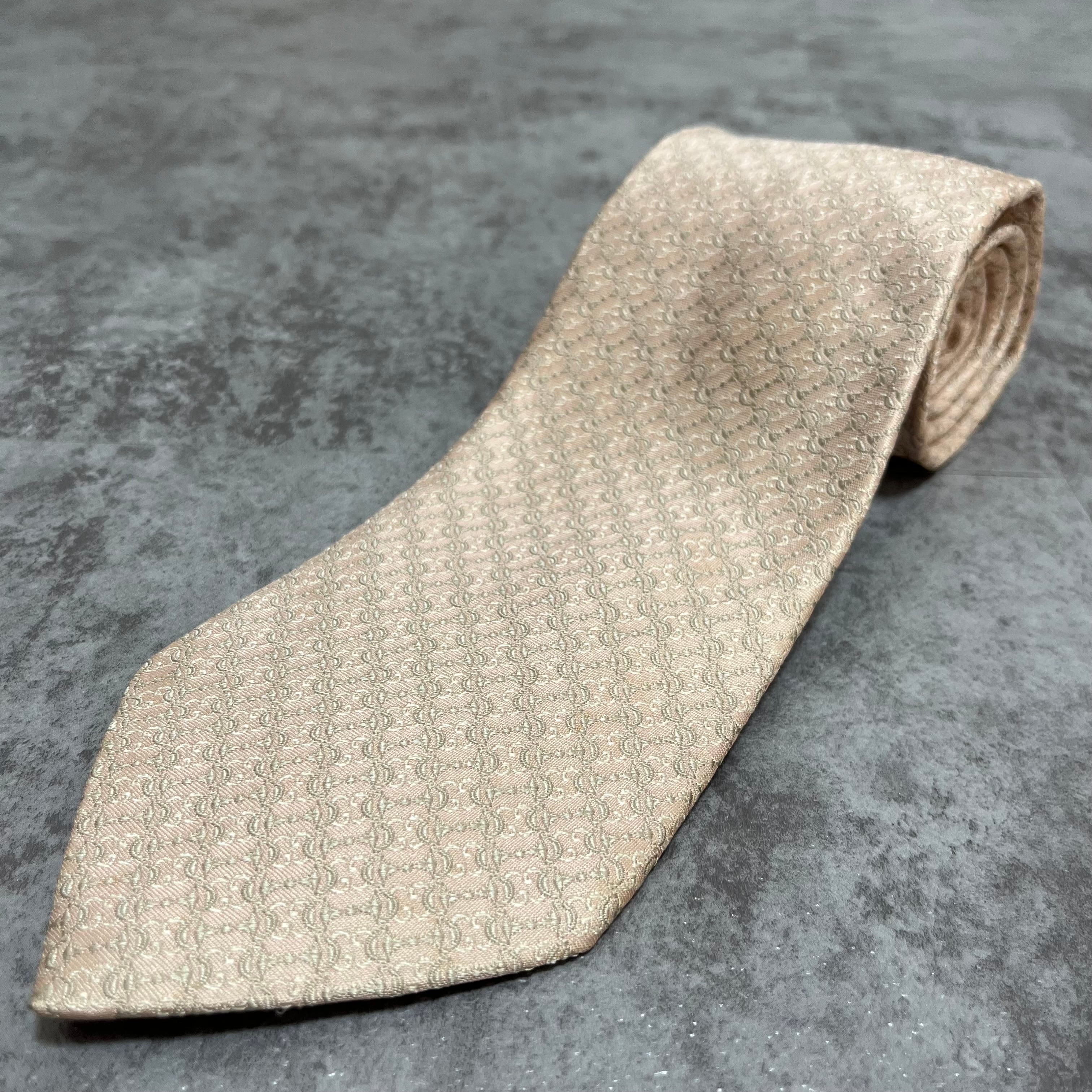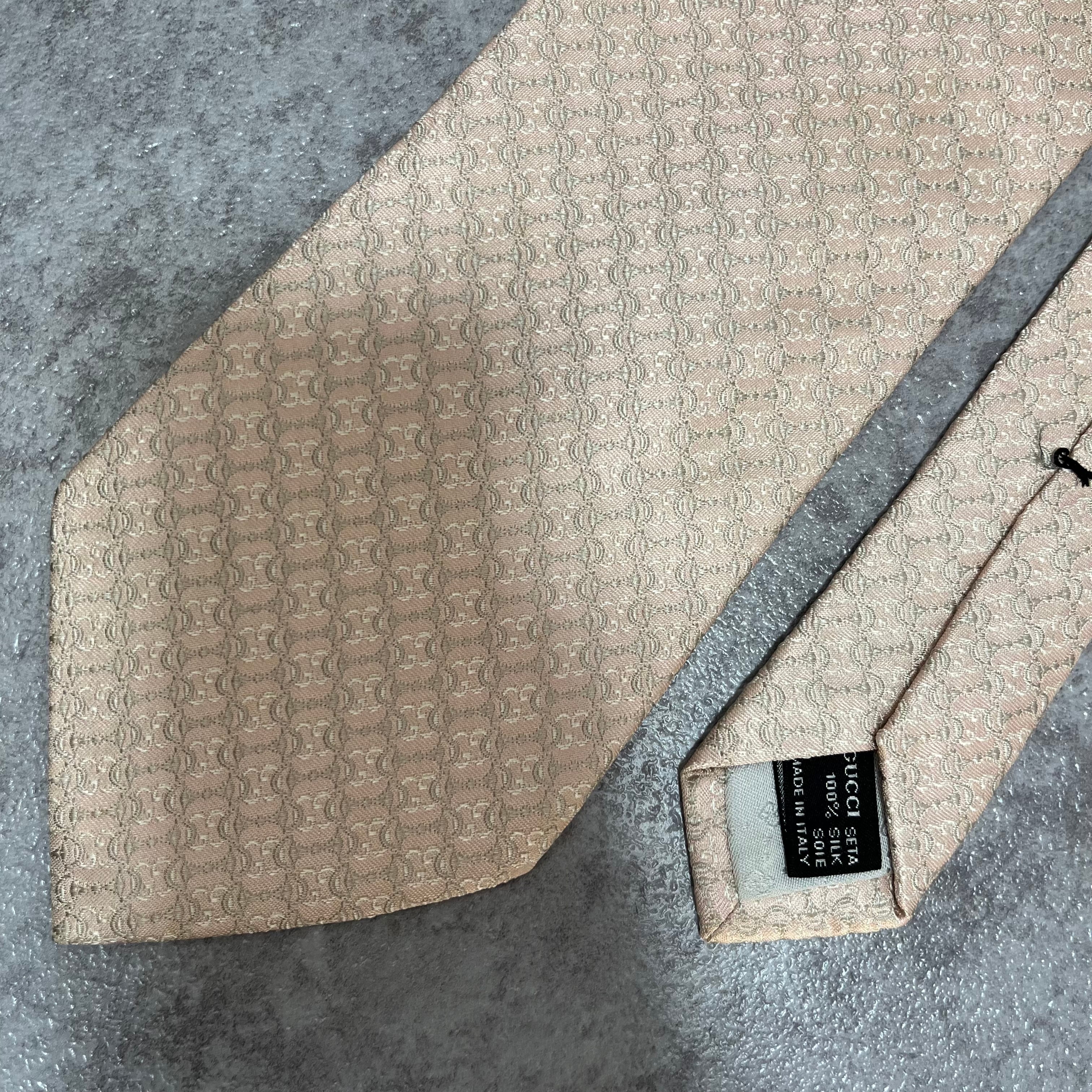 【GUCCI】ホースビット柄ネクタイ 薄ピンク 光沢