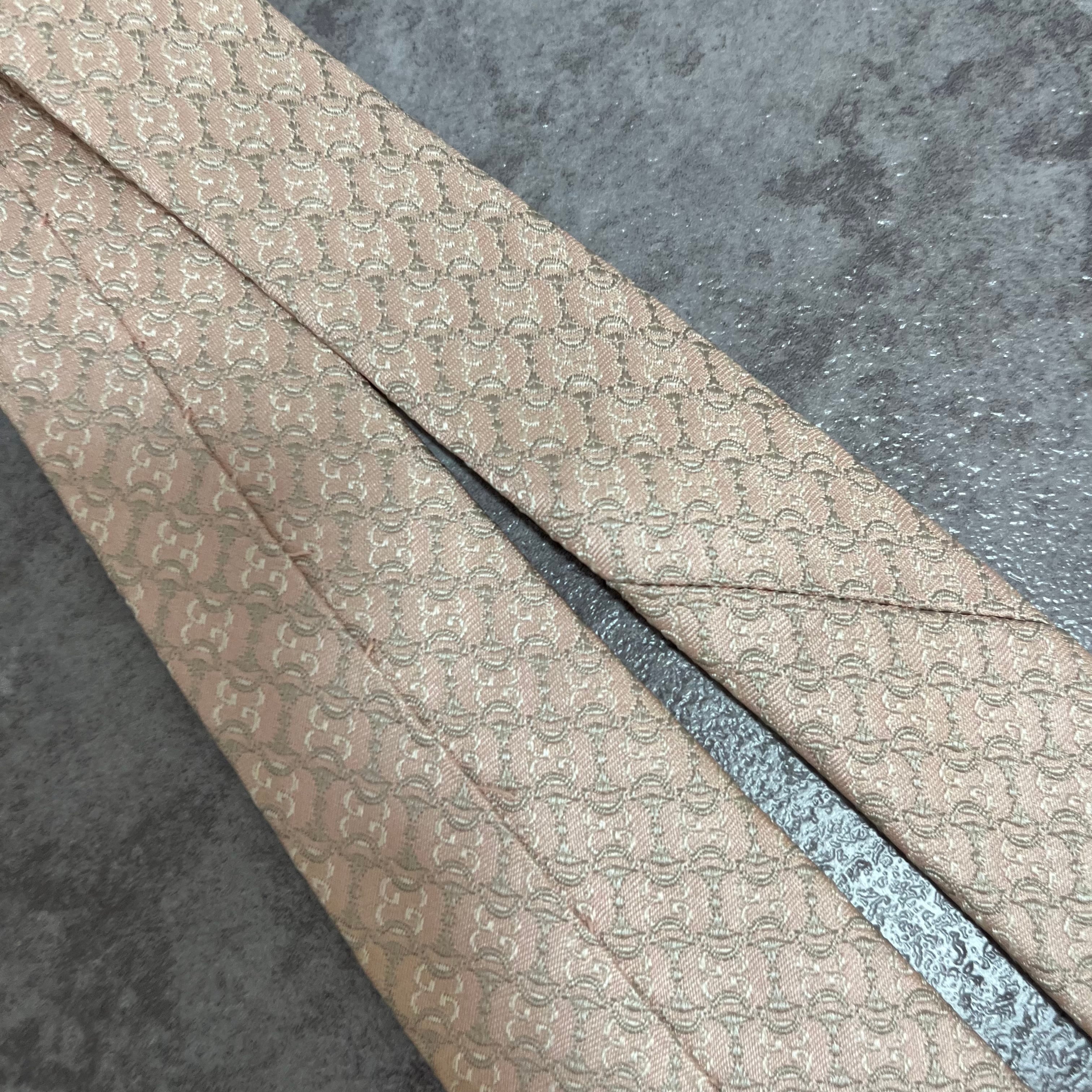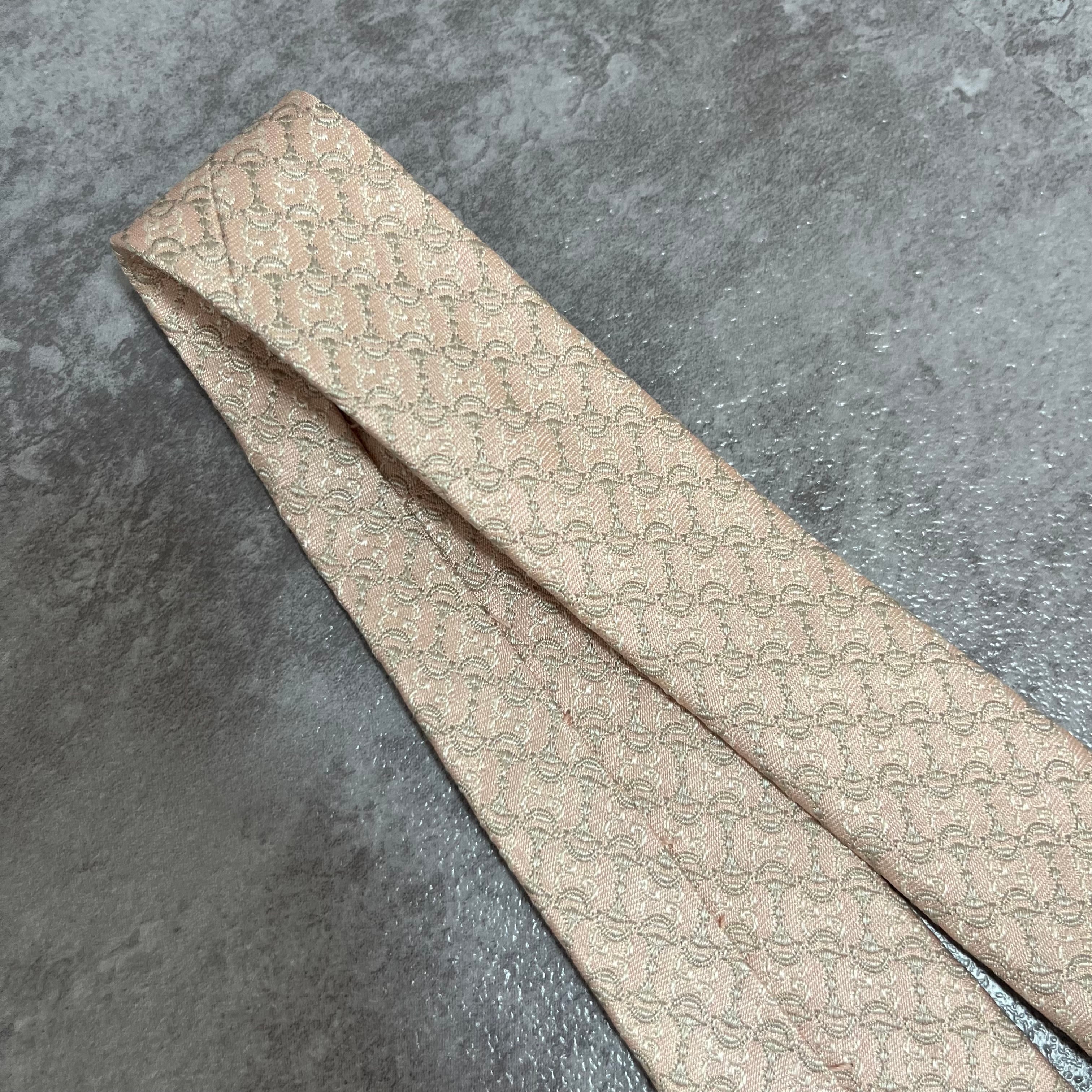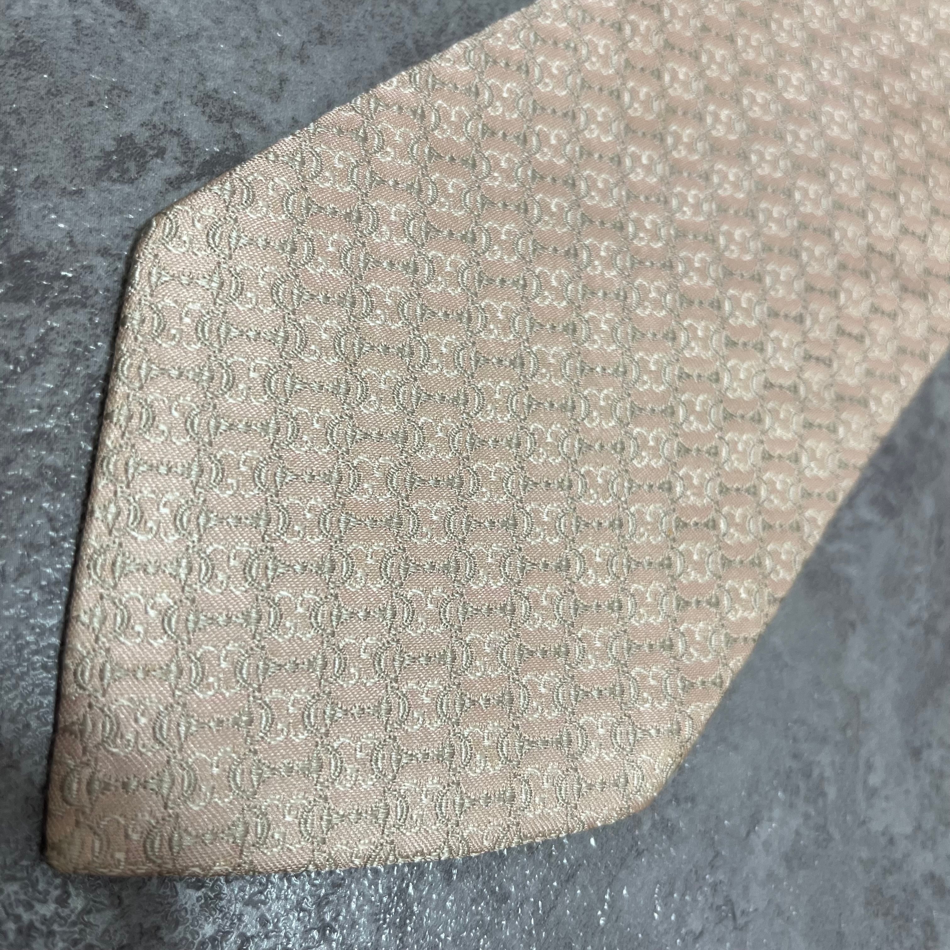 【GUCCI】ホースビット柄ネクタイ 薄ピンク 光沢