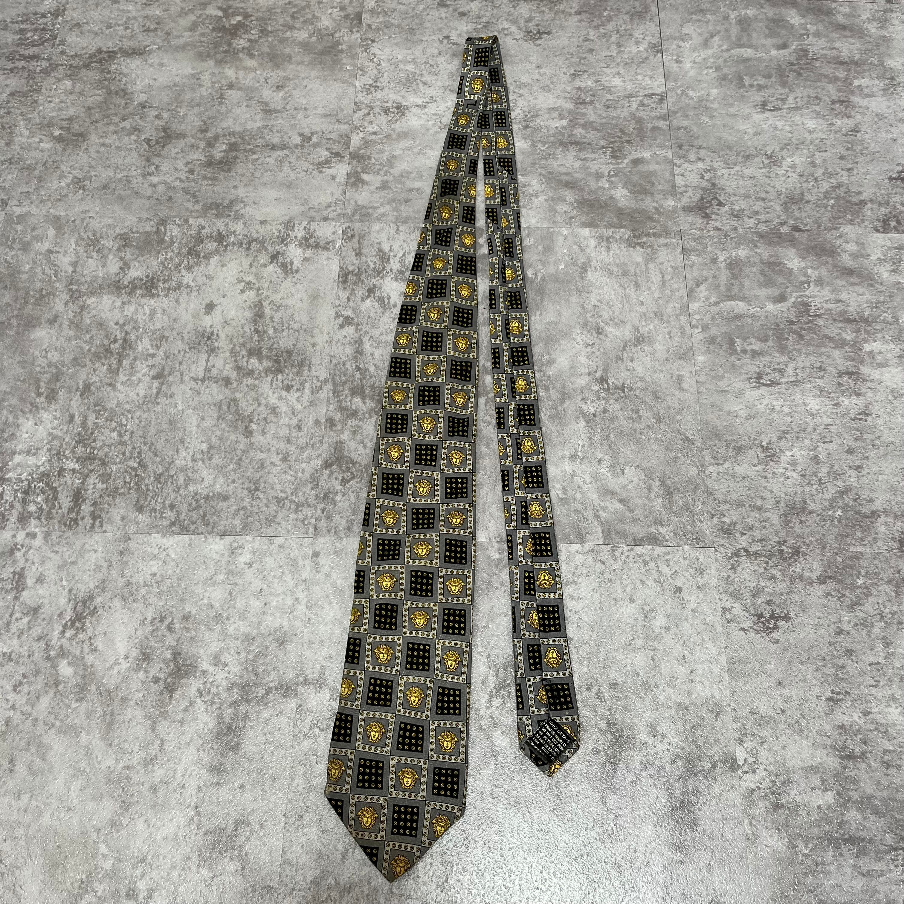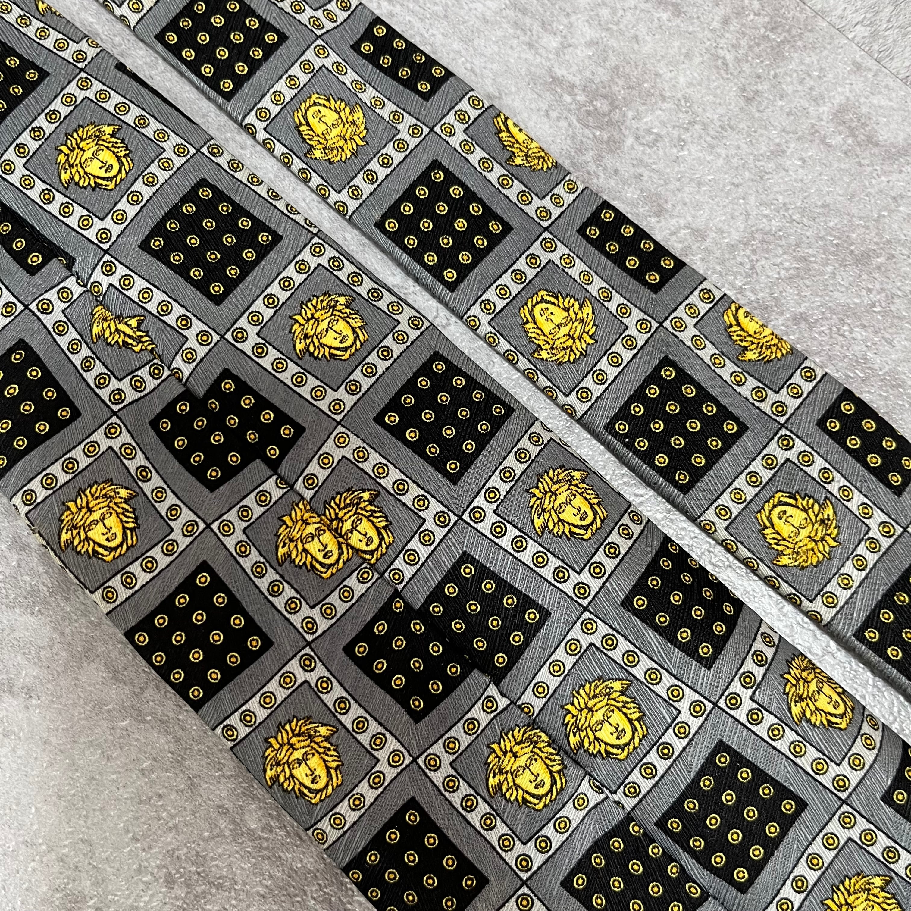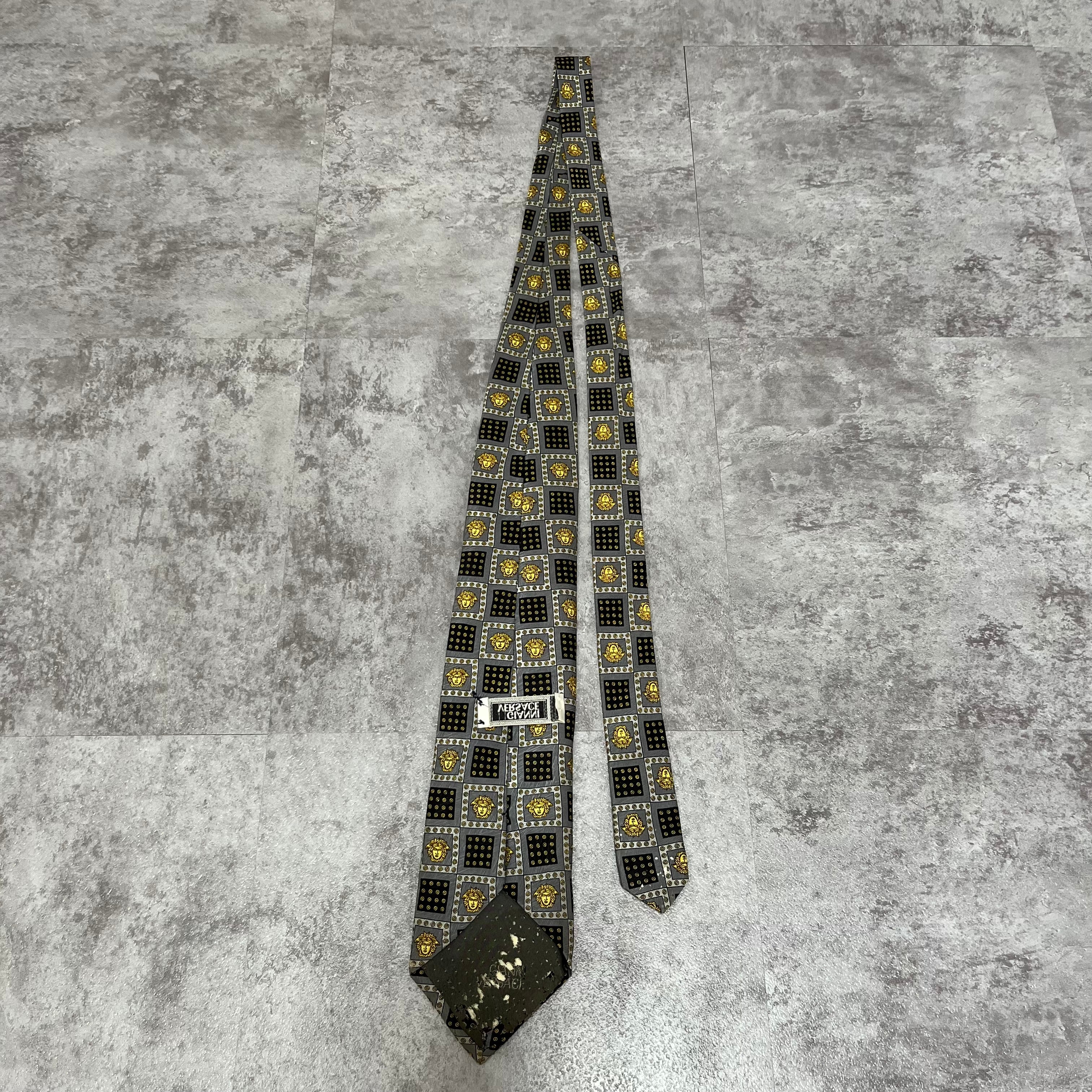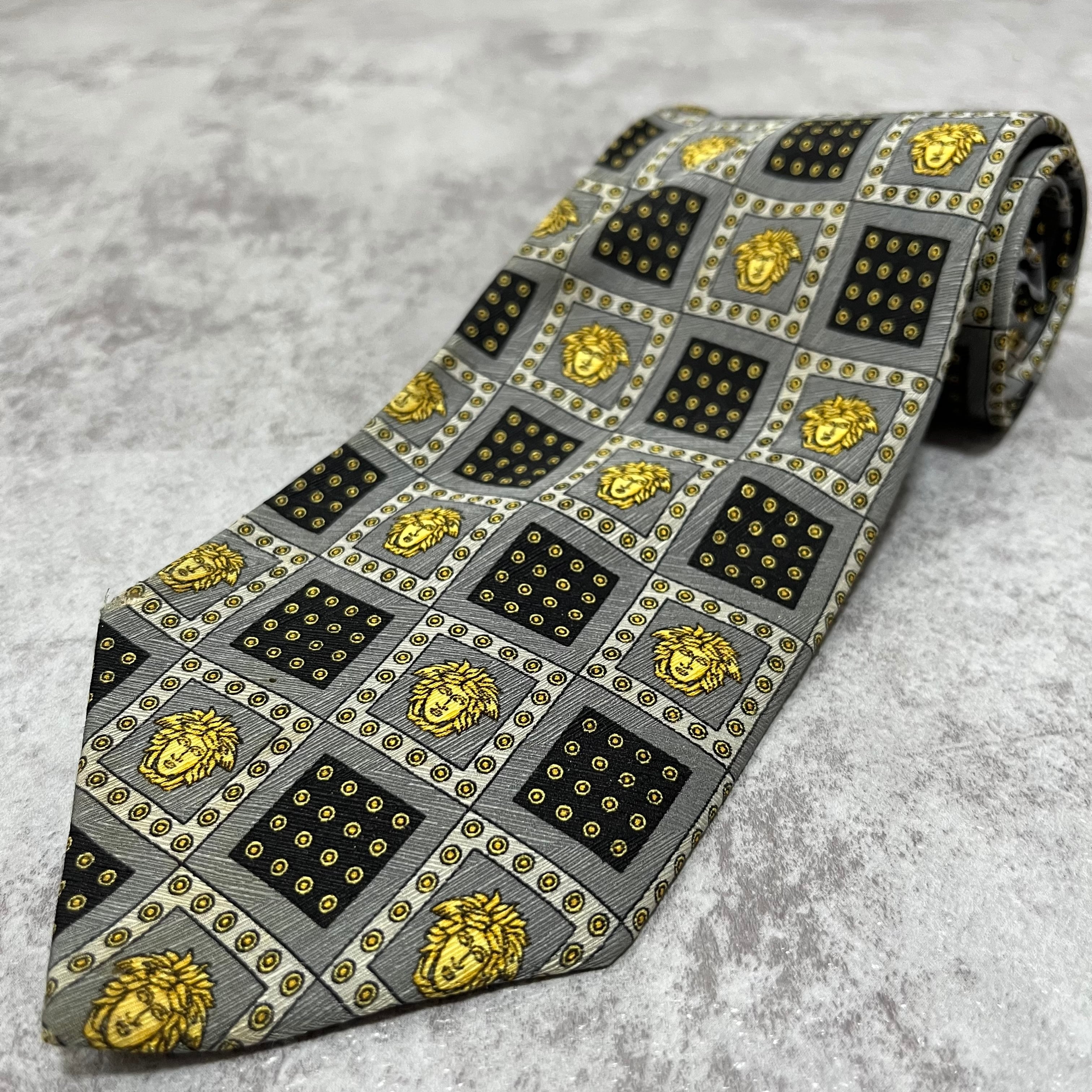 【Versace】ブロックチェック柄ネクタイ メデューサロゴ入り グレー イエロー