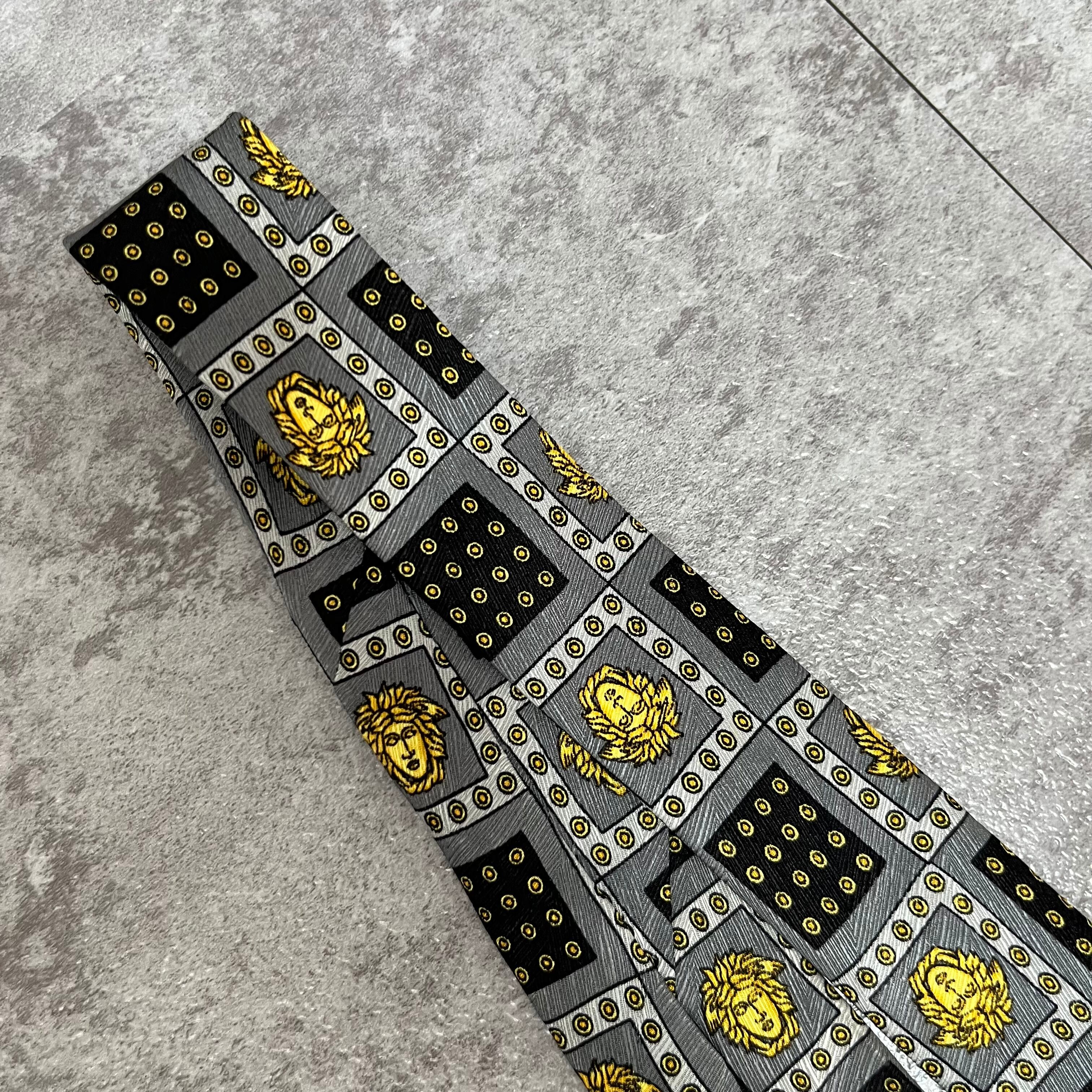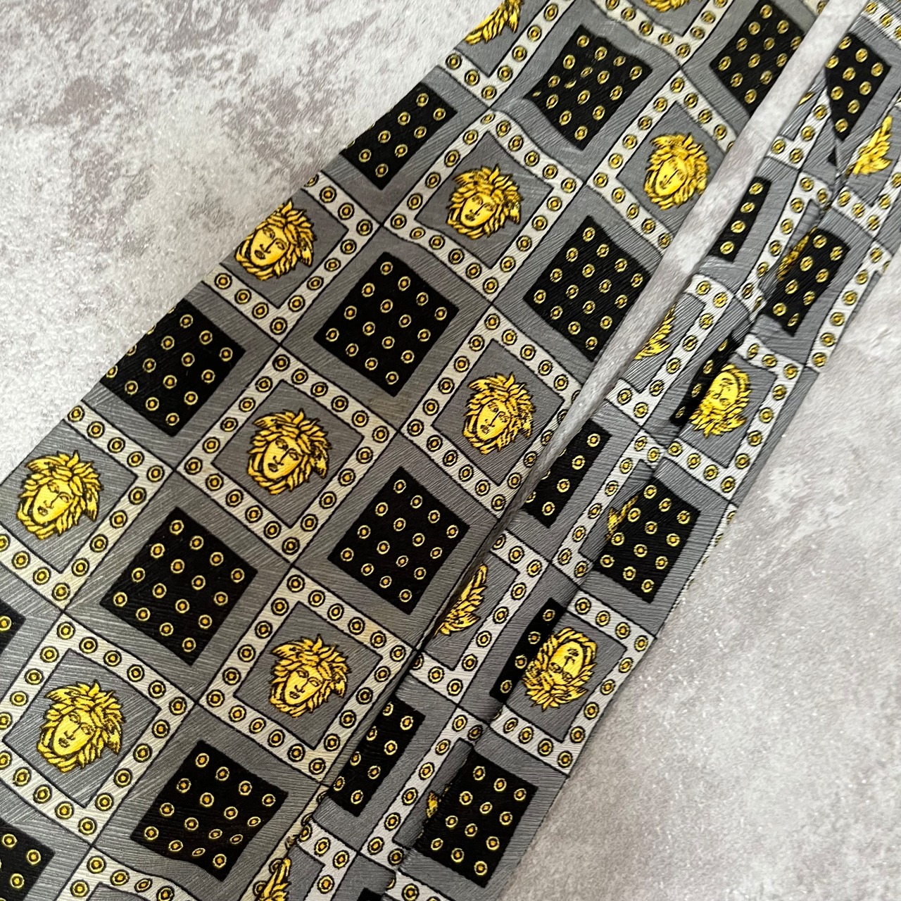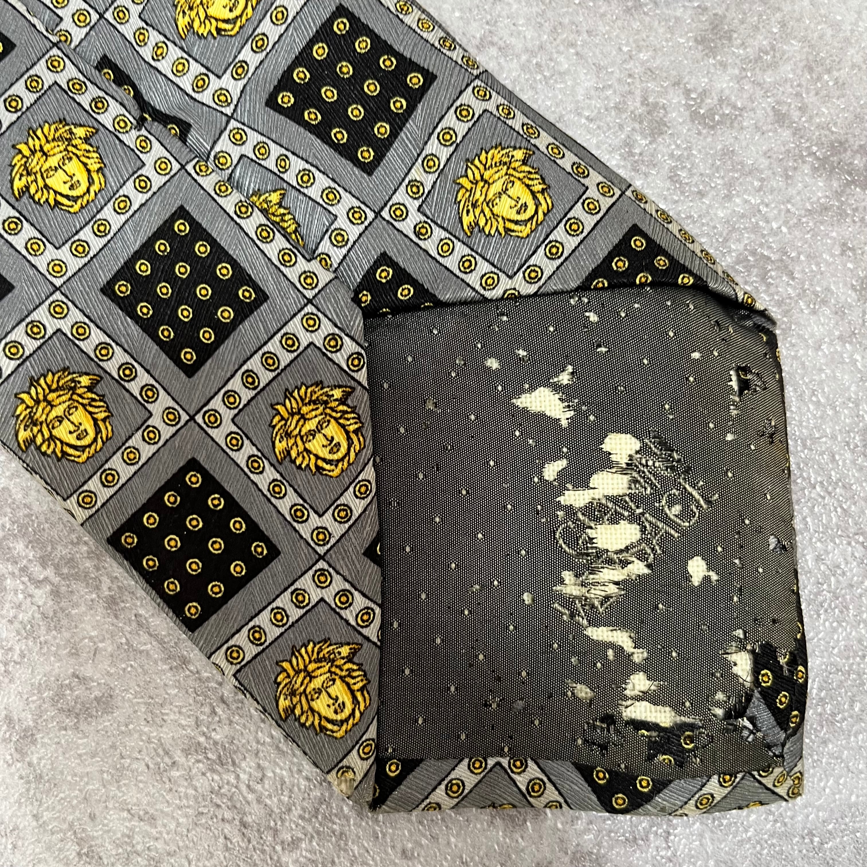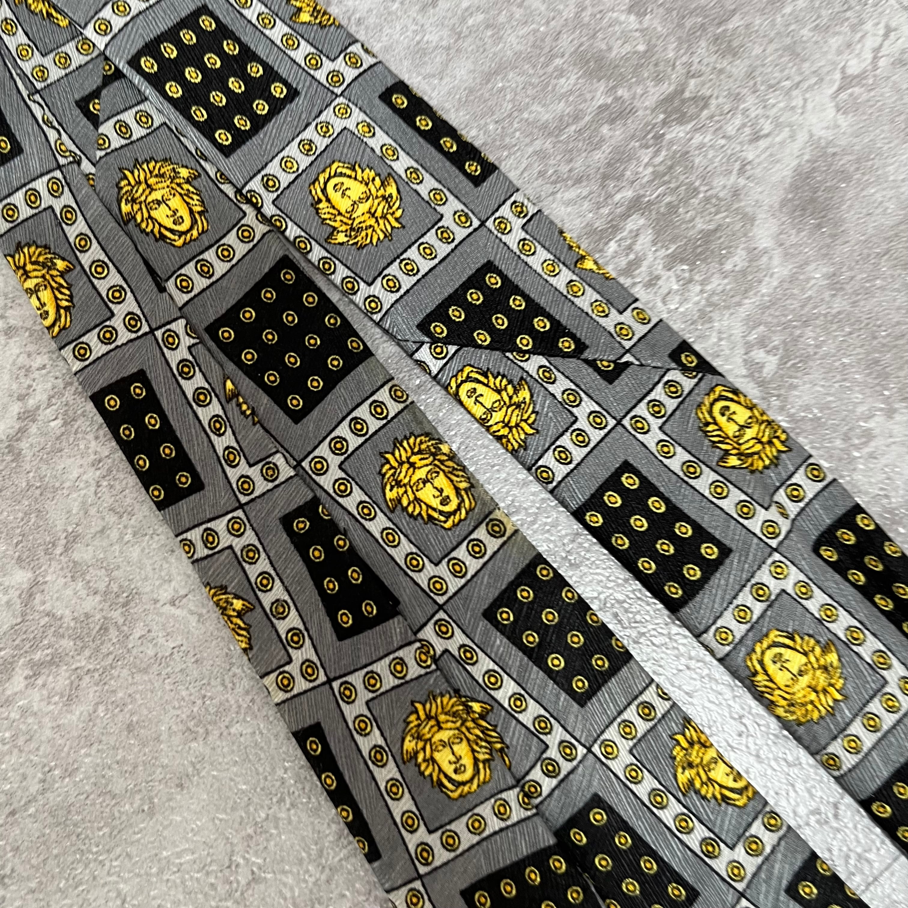 【Versace】ブロックチェック柄ネクタイ メデューサロゴ入り グレー イエロー