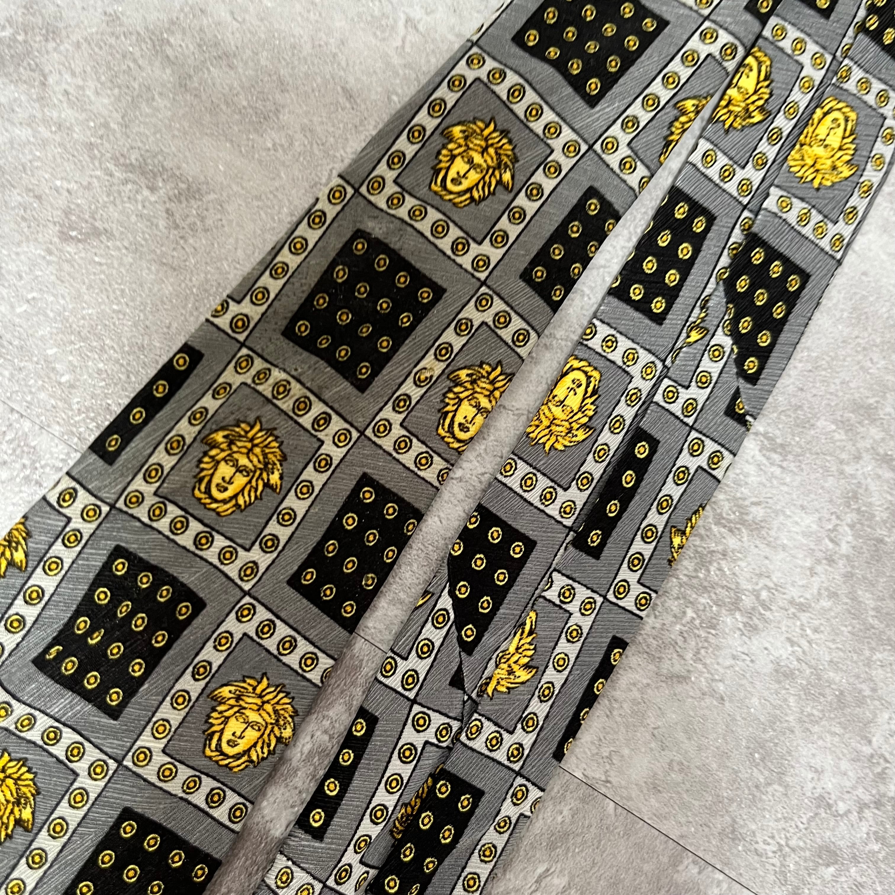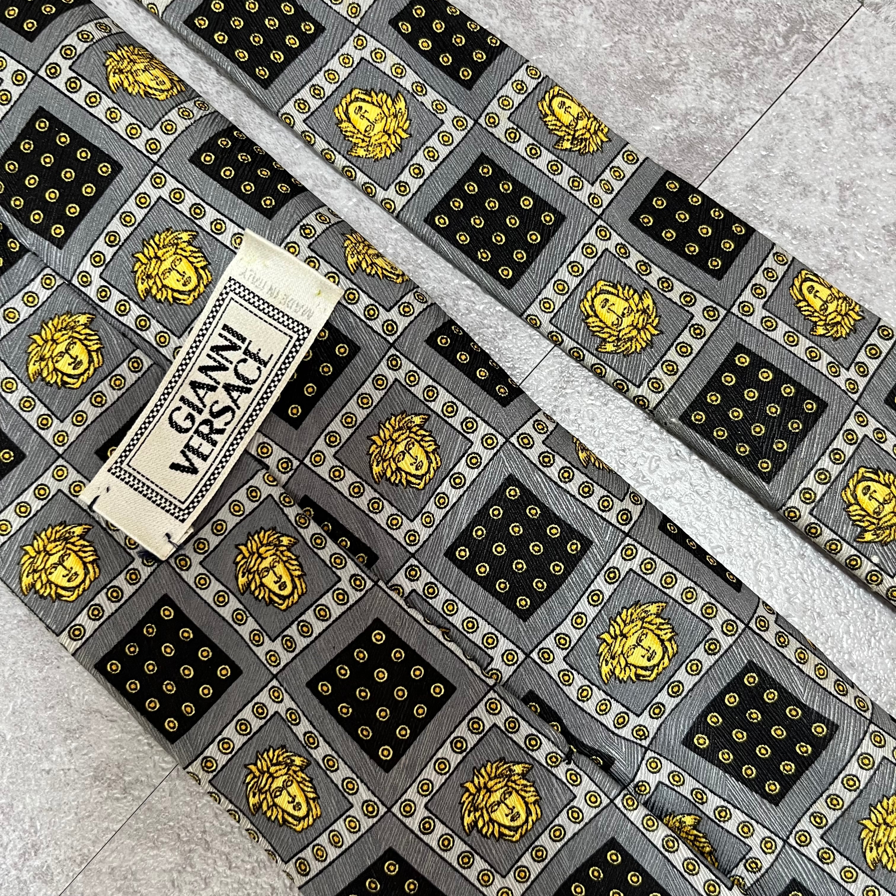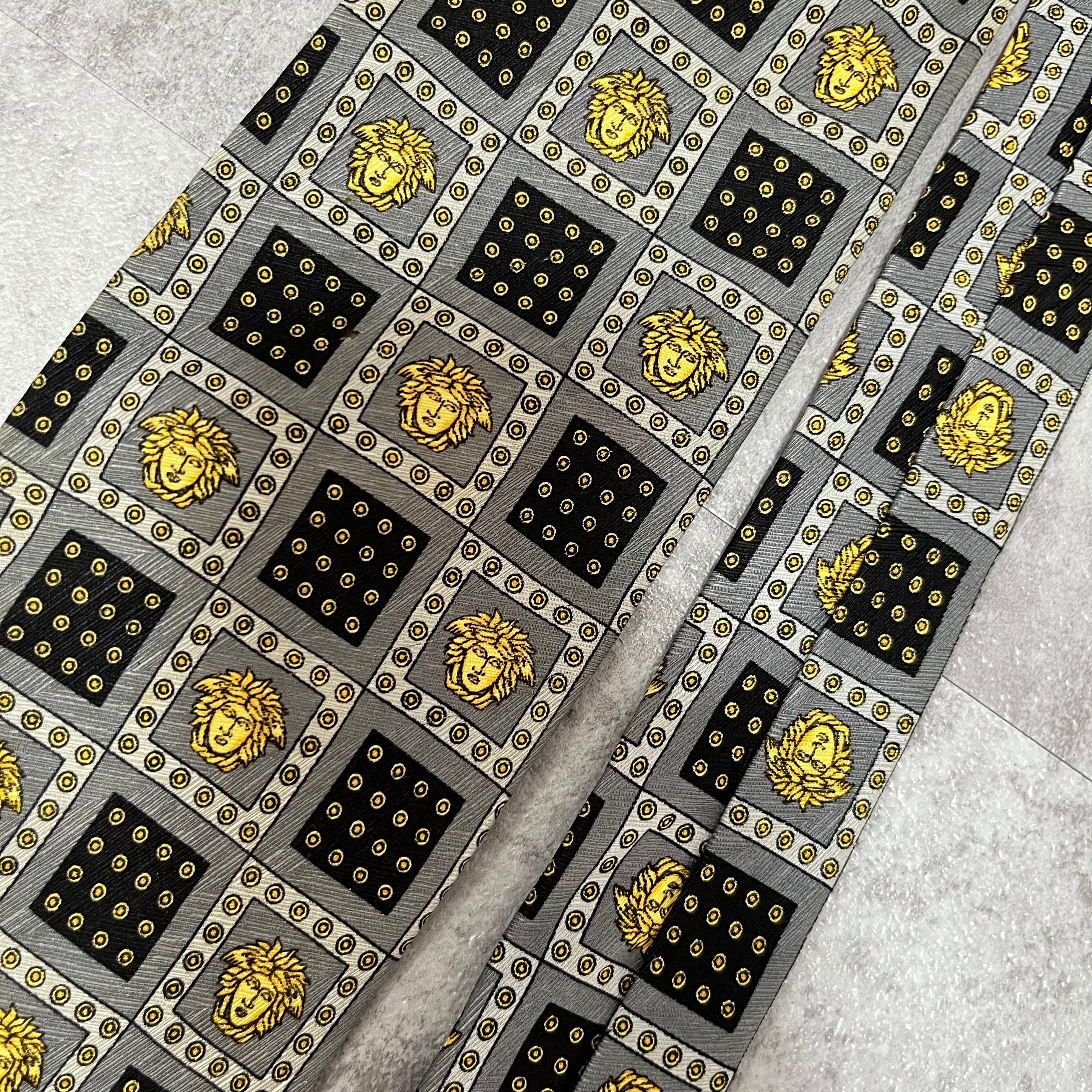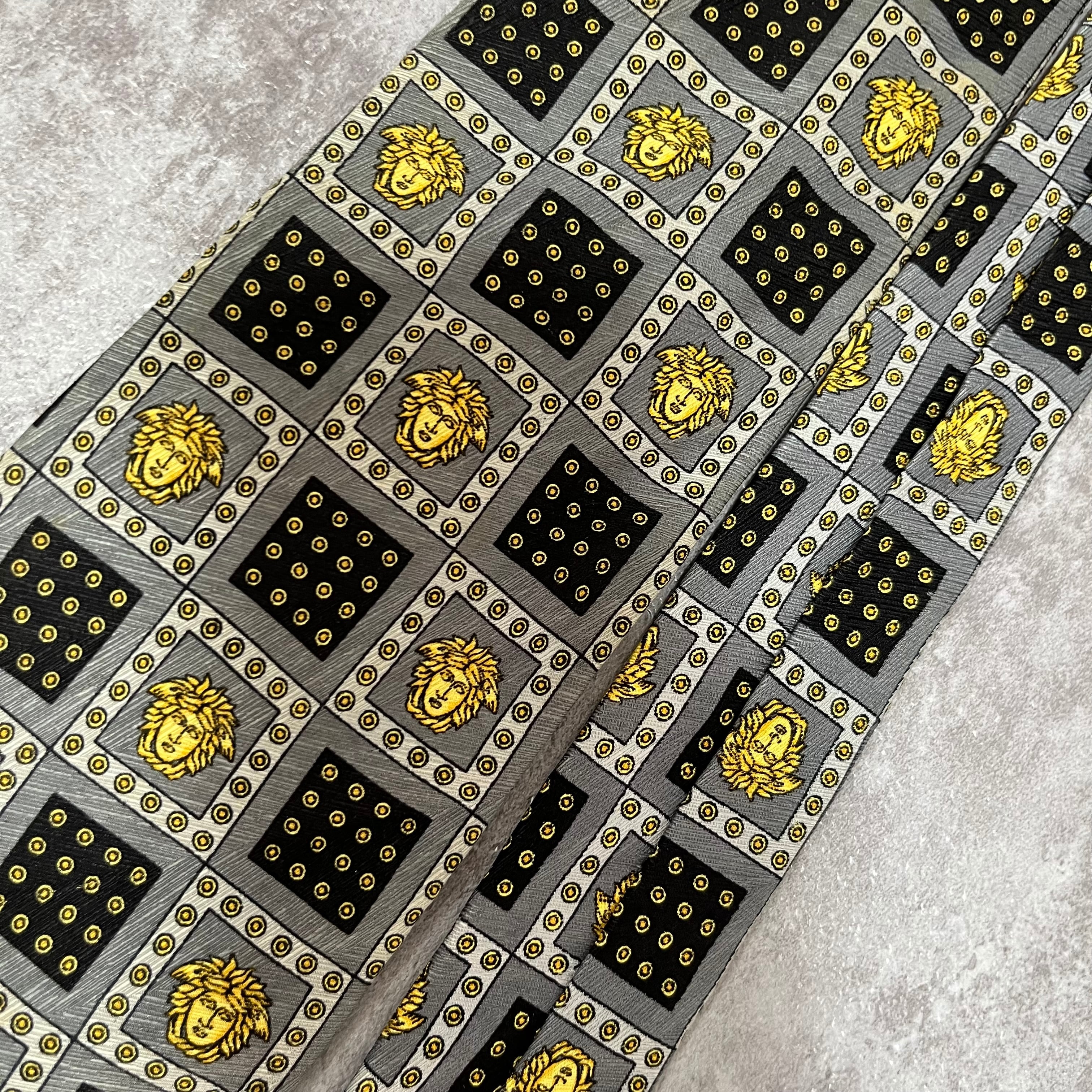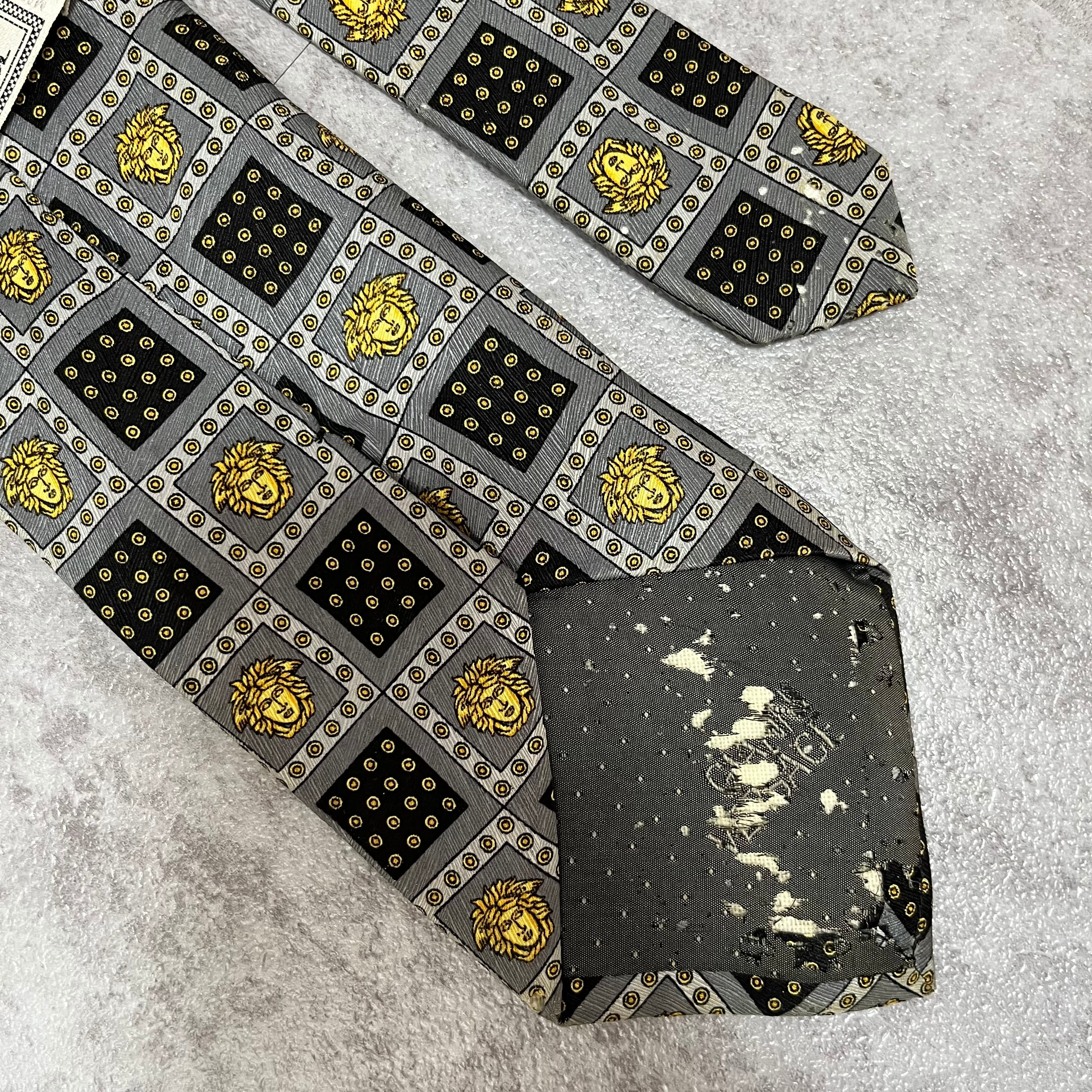 【Versace】ブロックチェック柄ネクタイ メデューサロゴ入り グレー イエロー