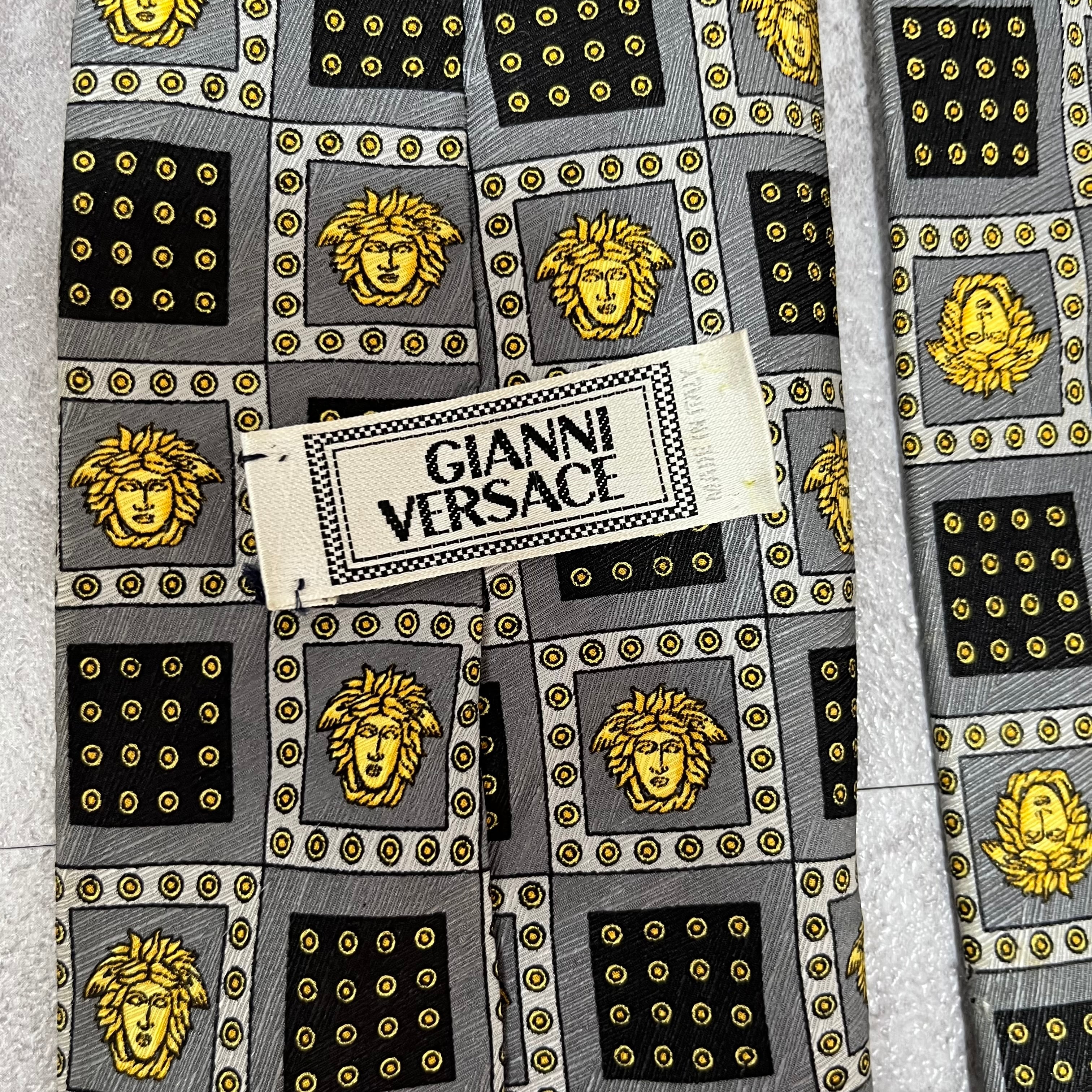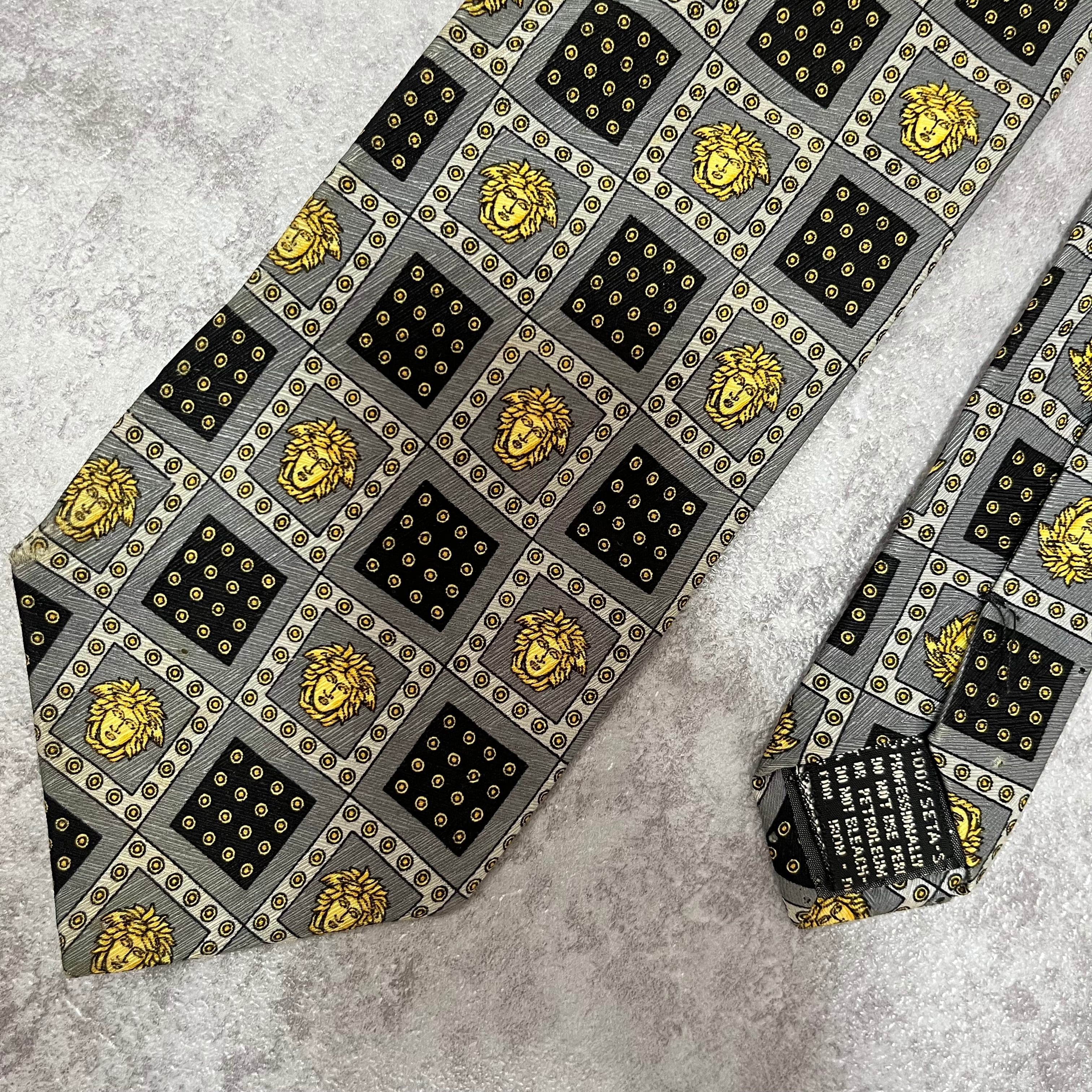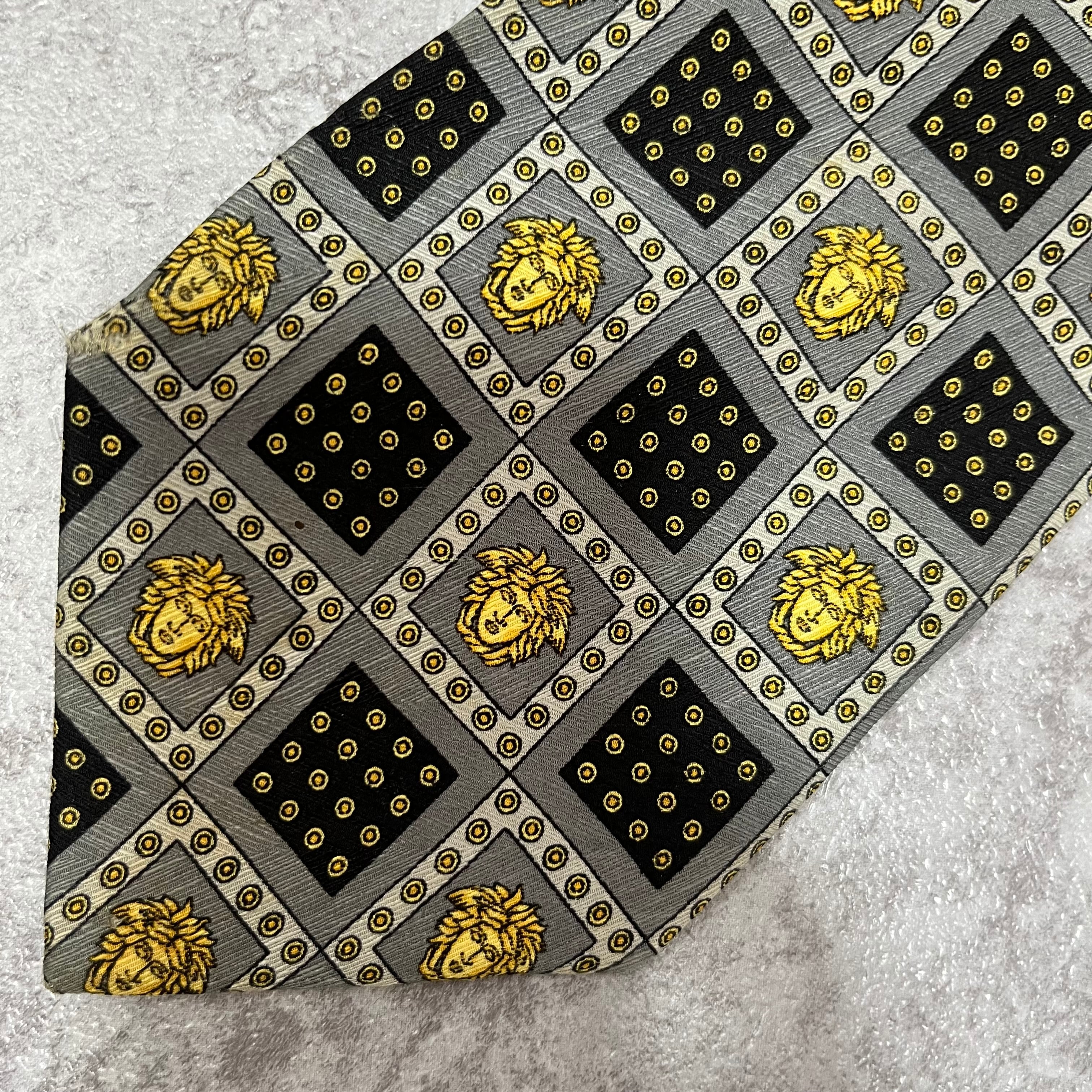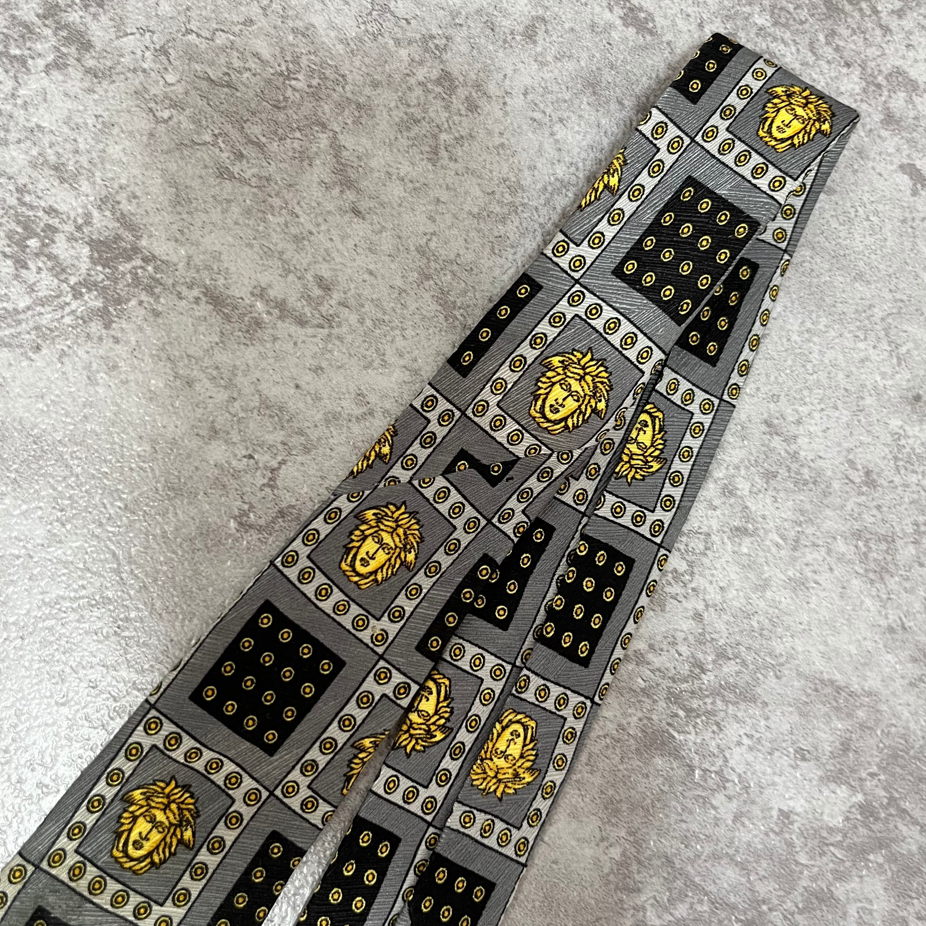 【Versace】ブロックチェック柄ネクタイ メデューサロゴ入り グレー イエロー