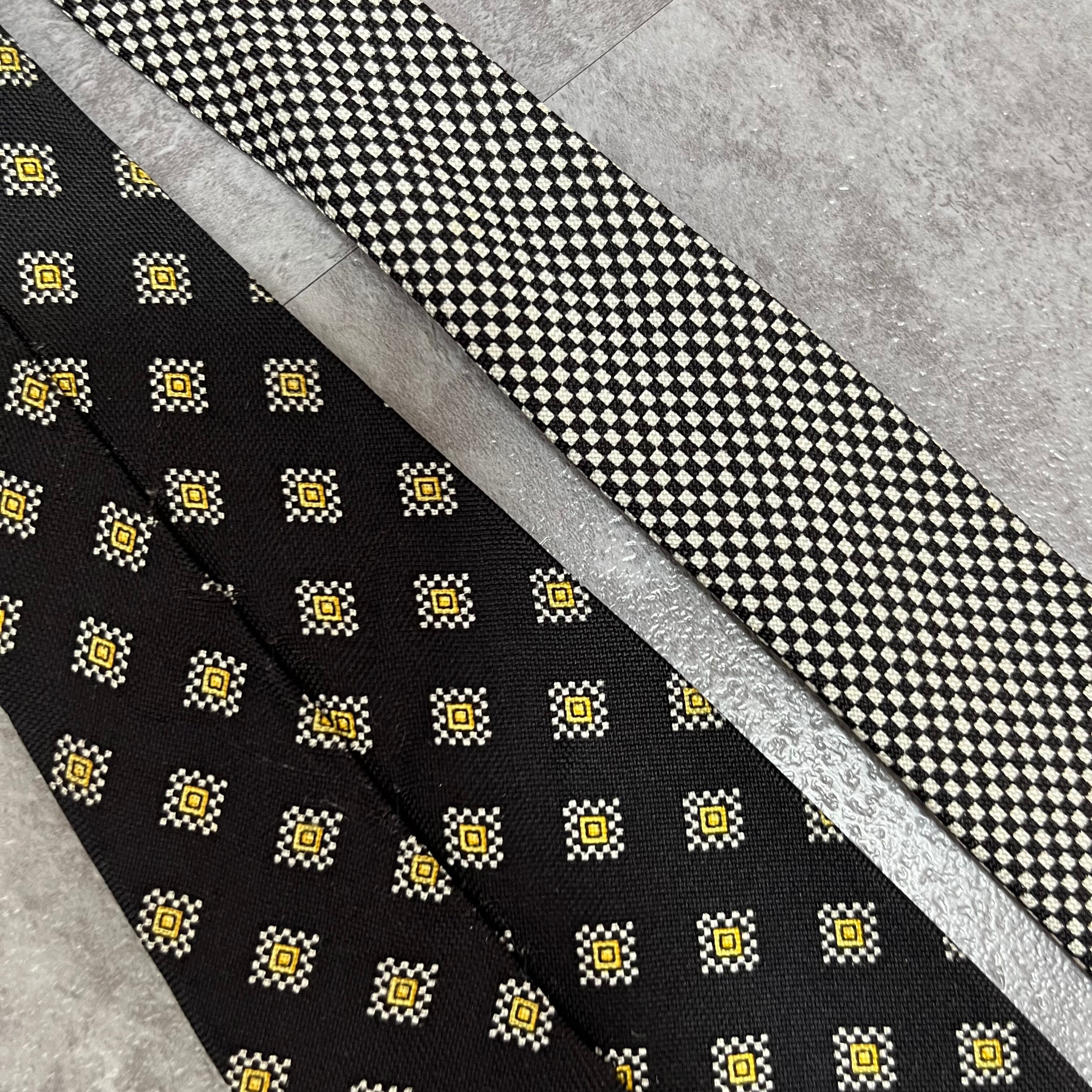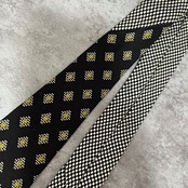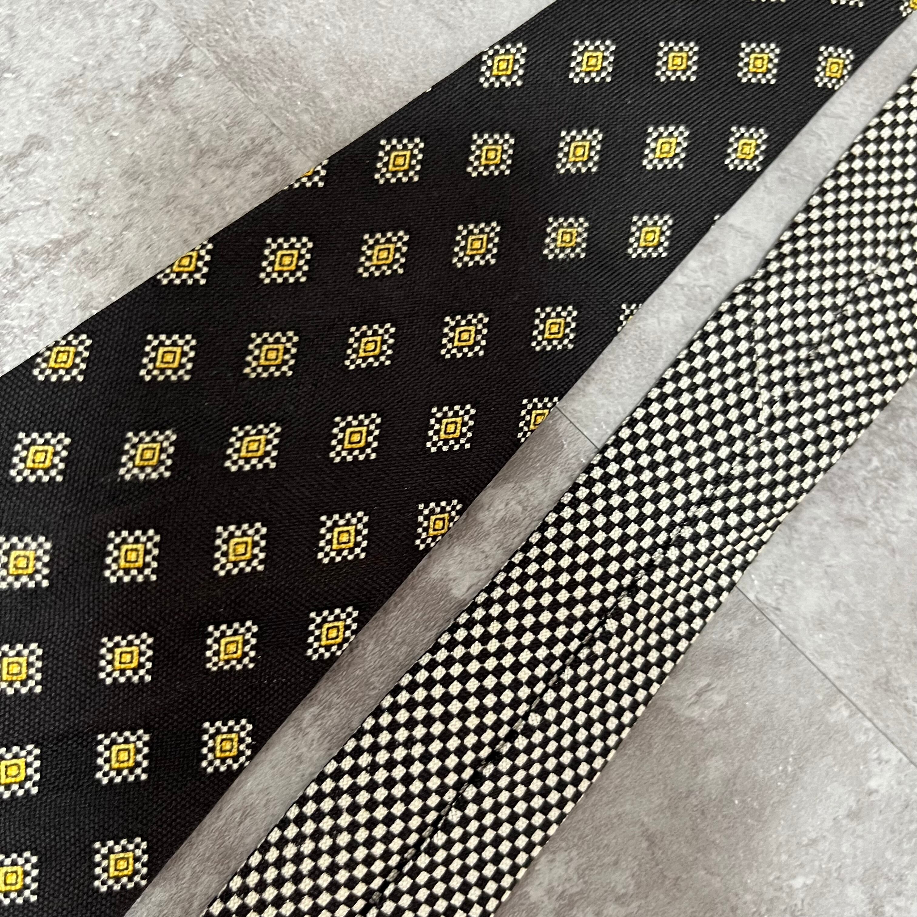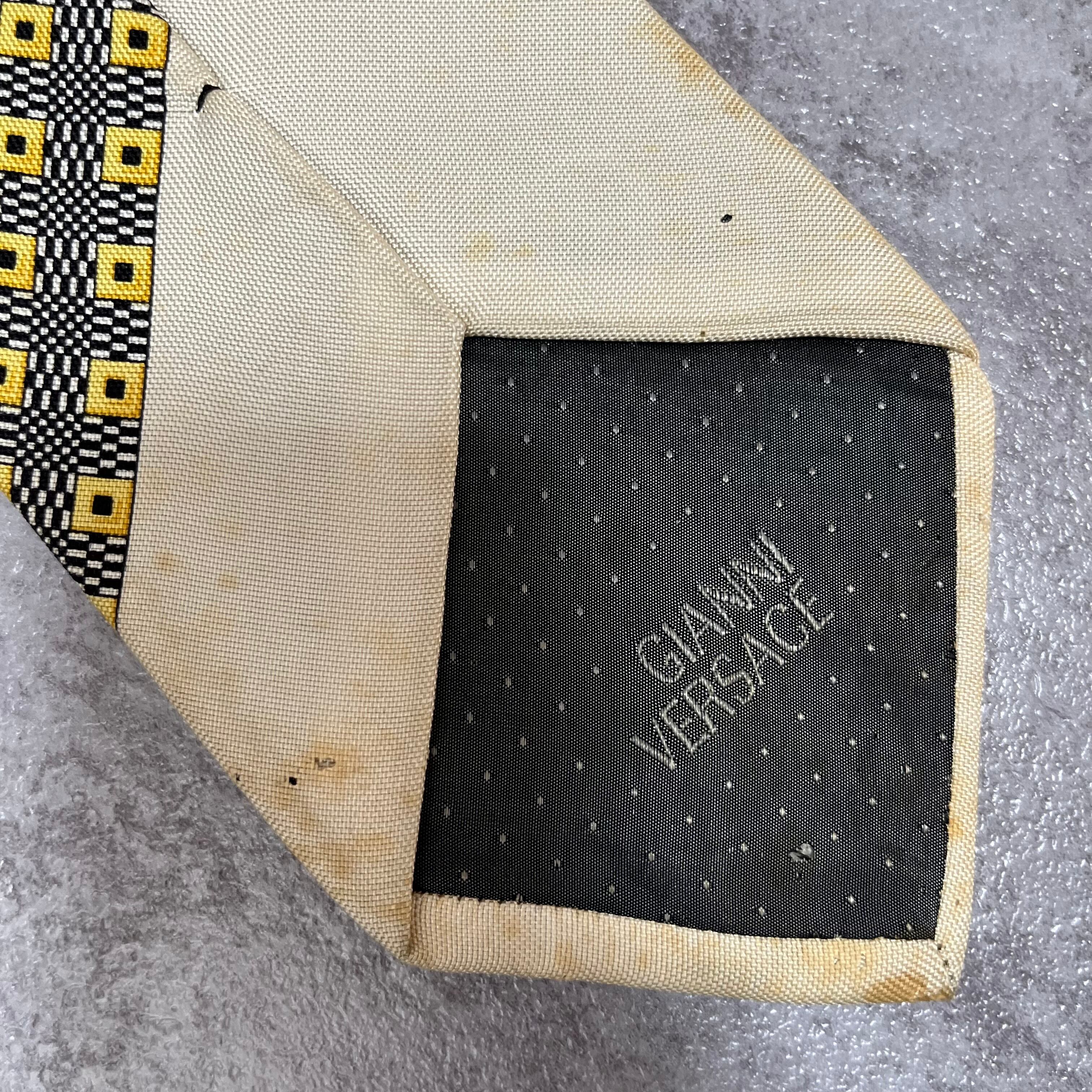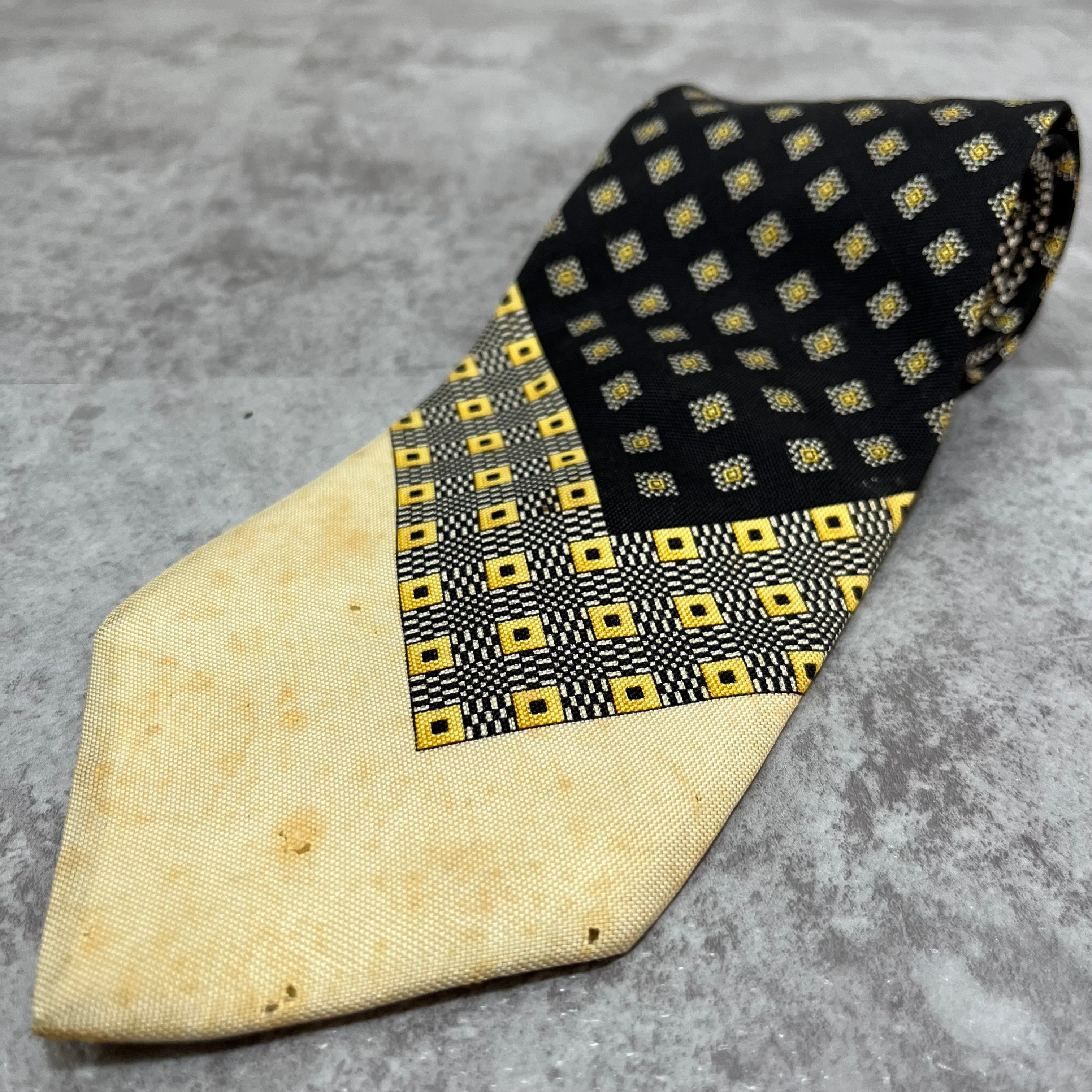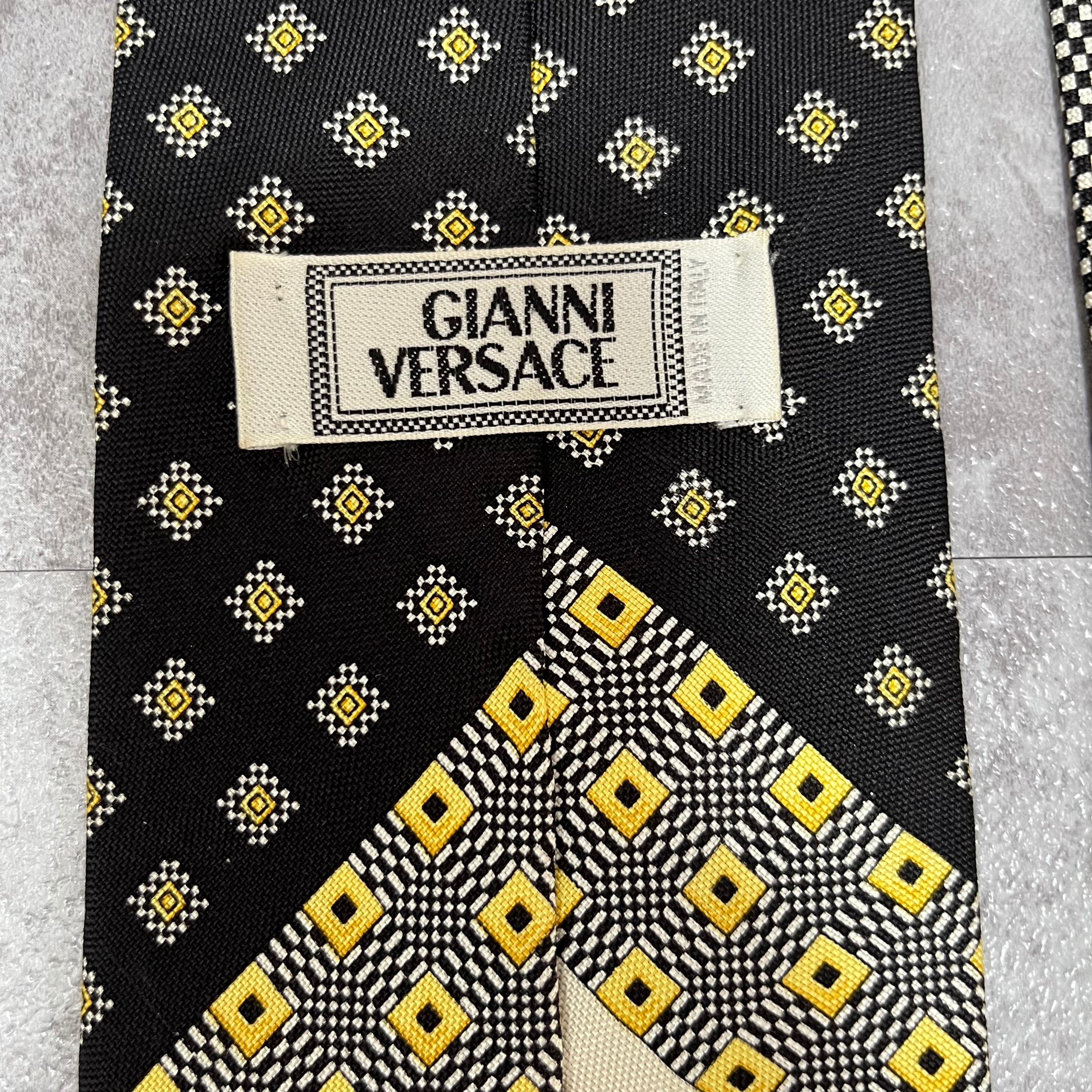 【Versace】スカーフ柄ネクタイ マルチカラー ダークネイビー グレー ベージュ チェック柄