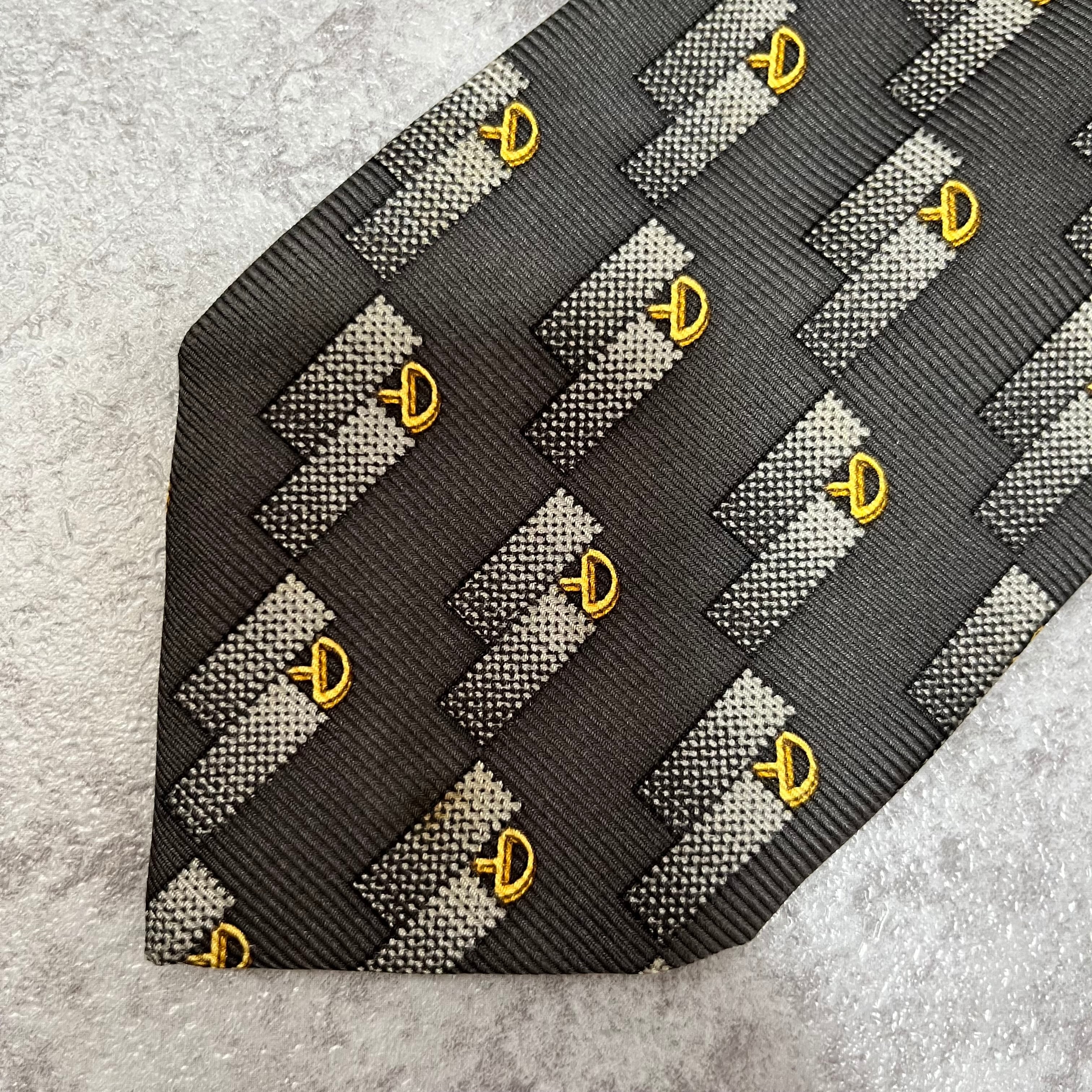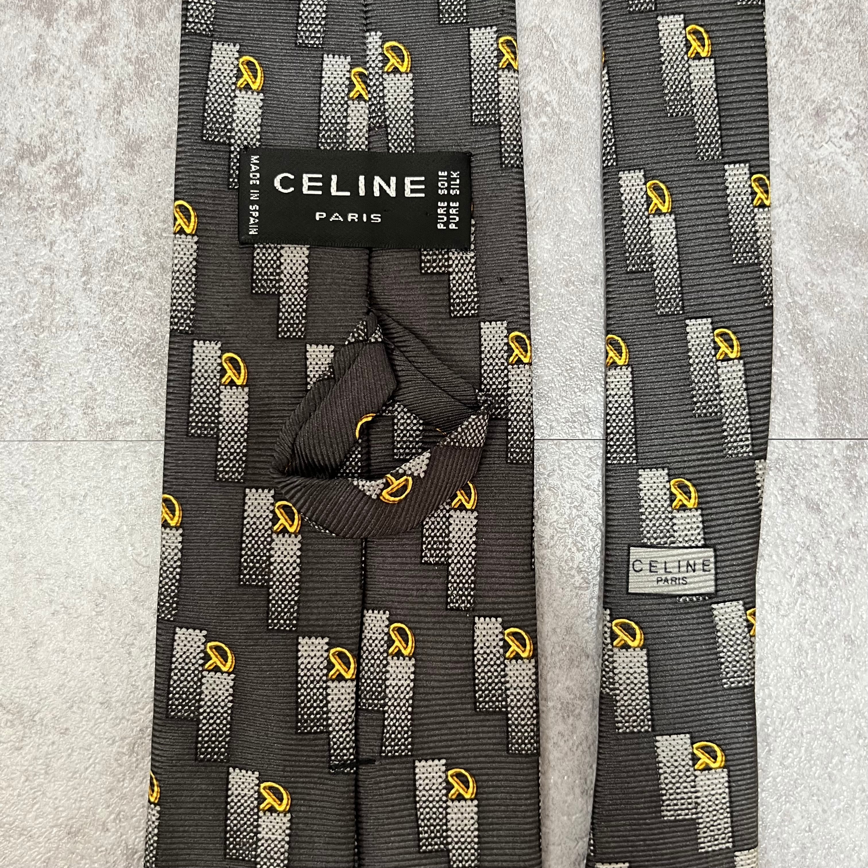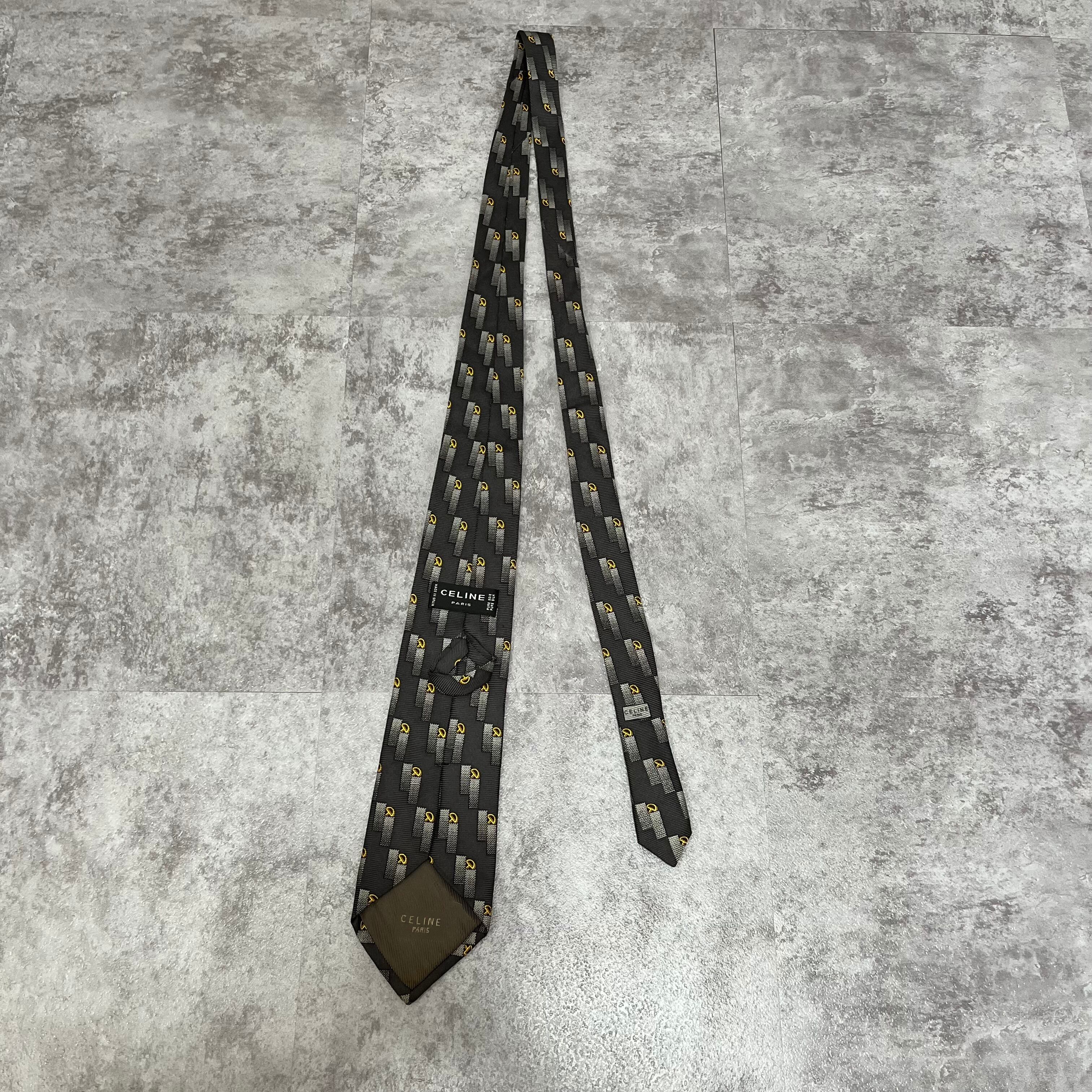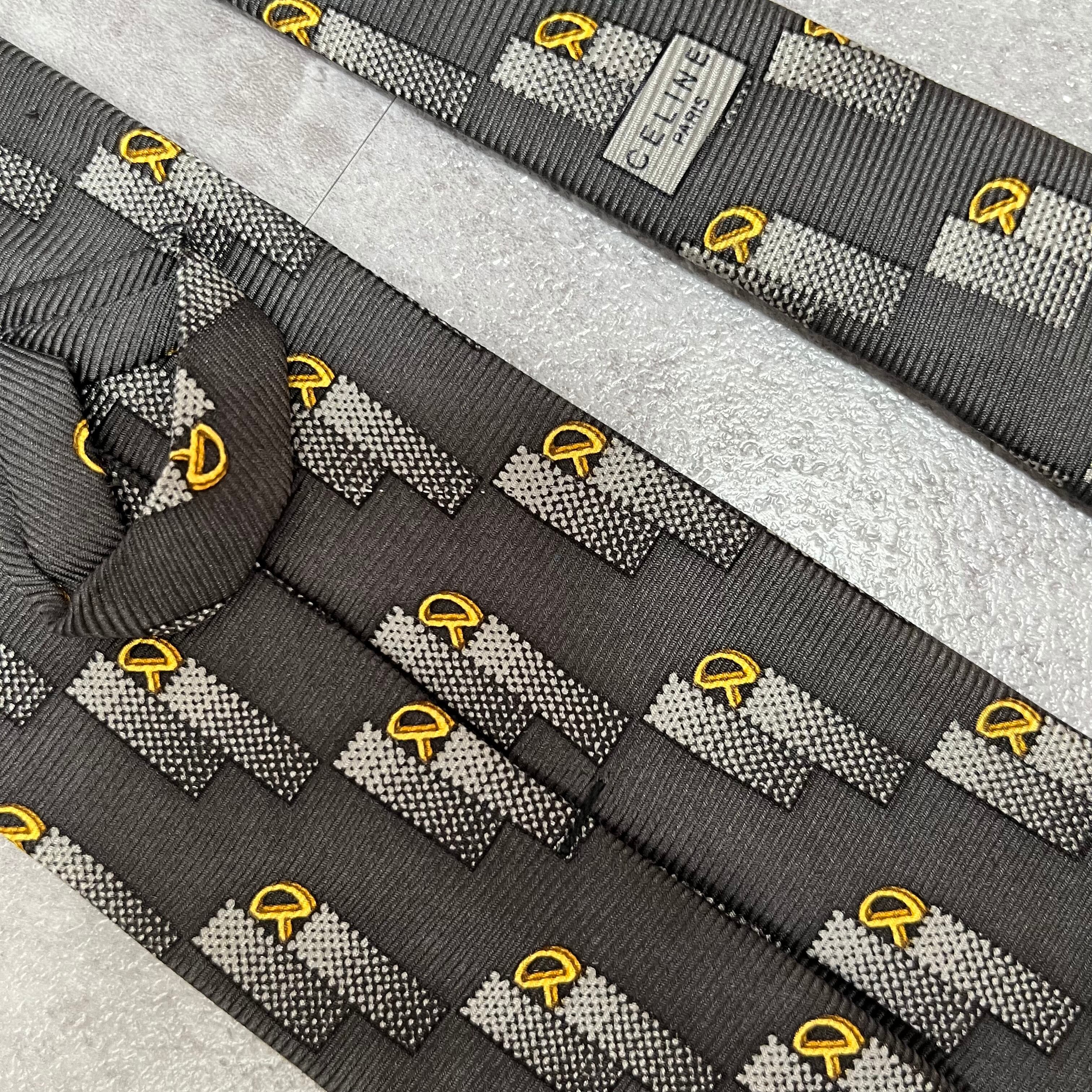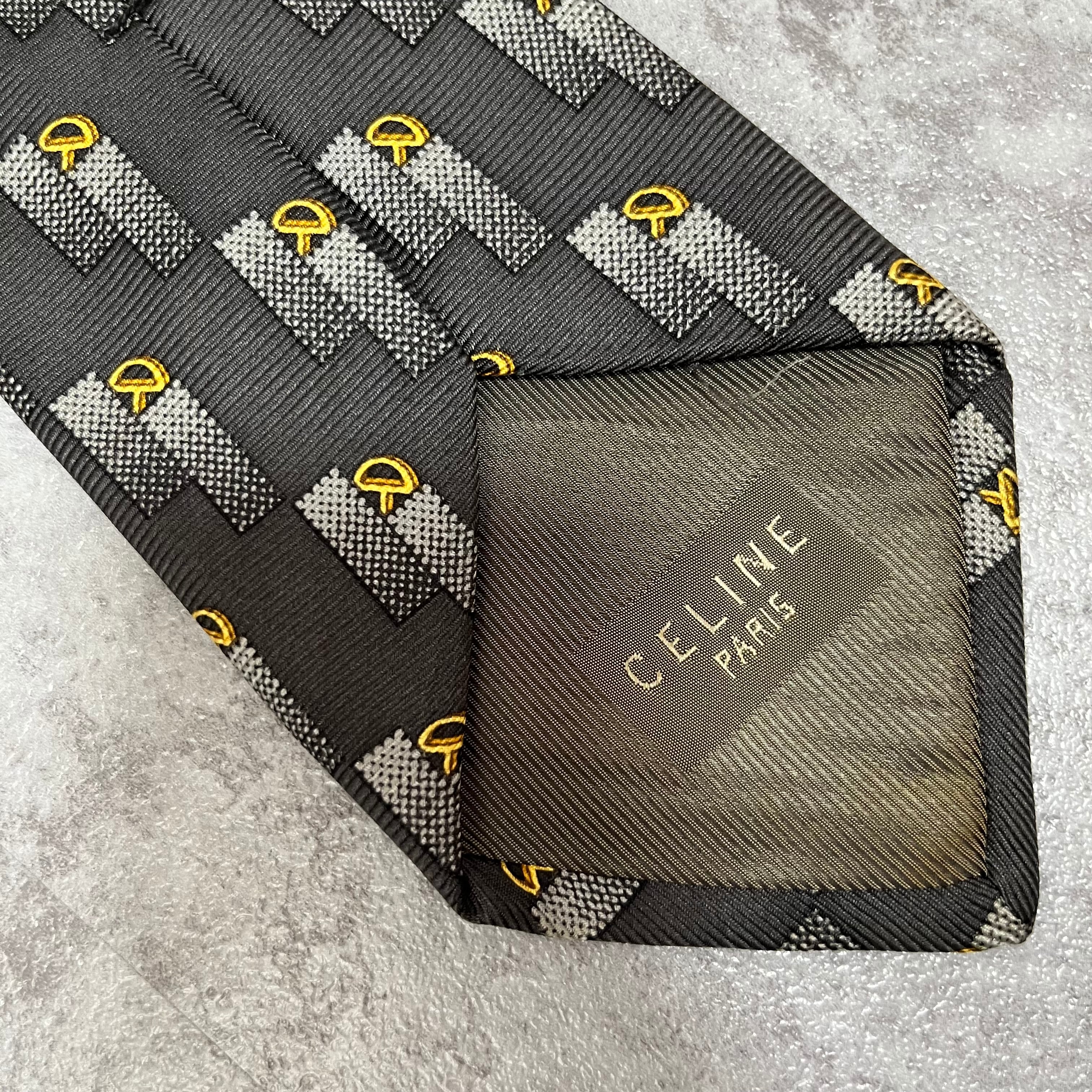 【CELINE】特殊レジメンタルストライプネクタイ グレー ホースビット 四角形