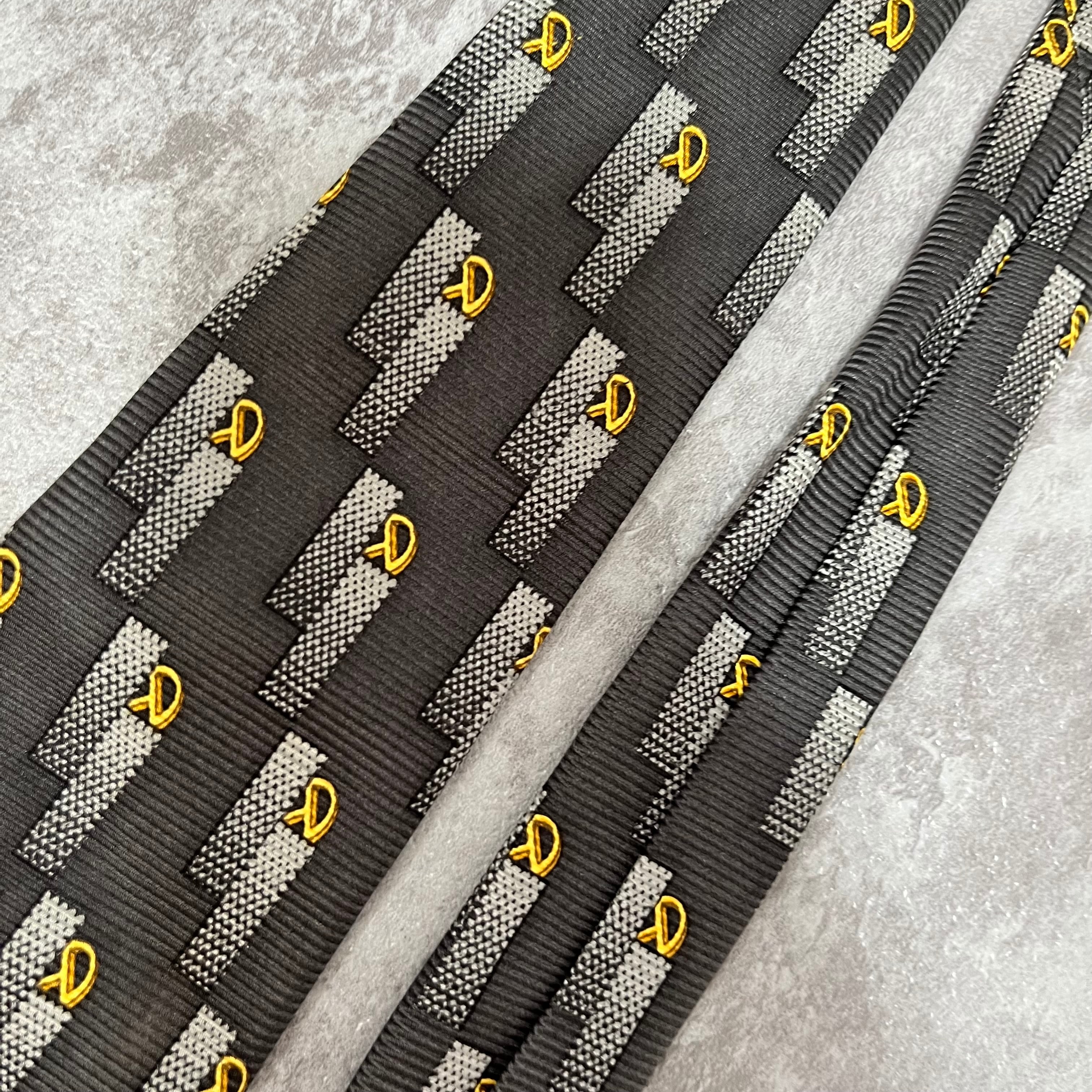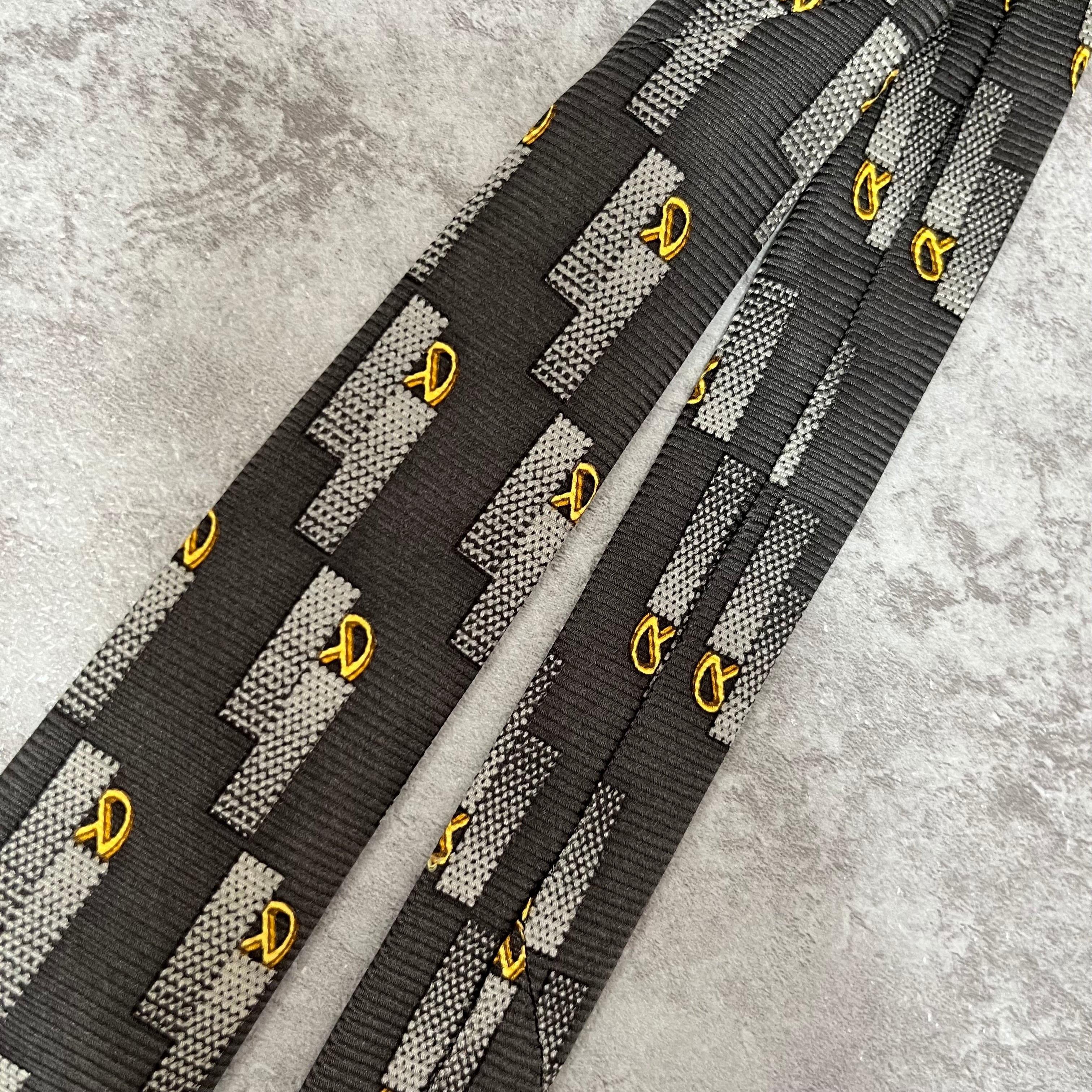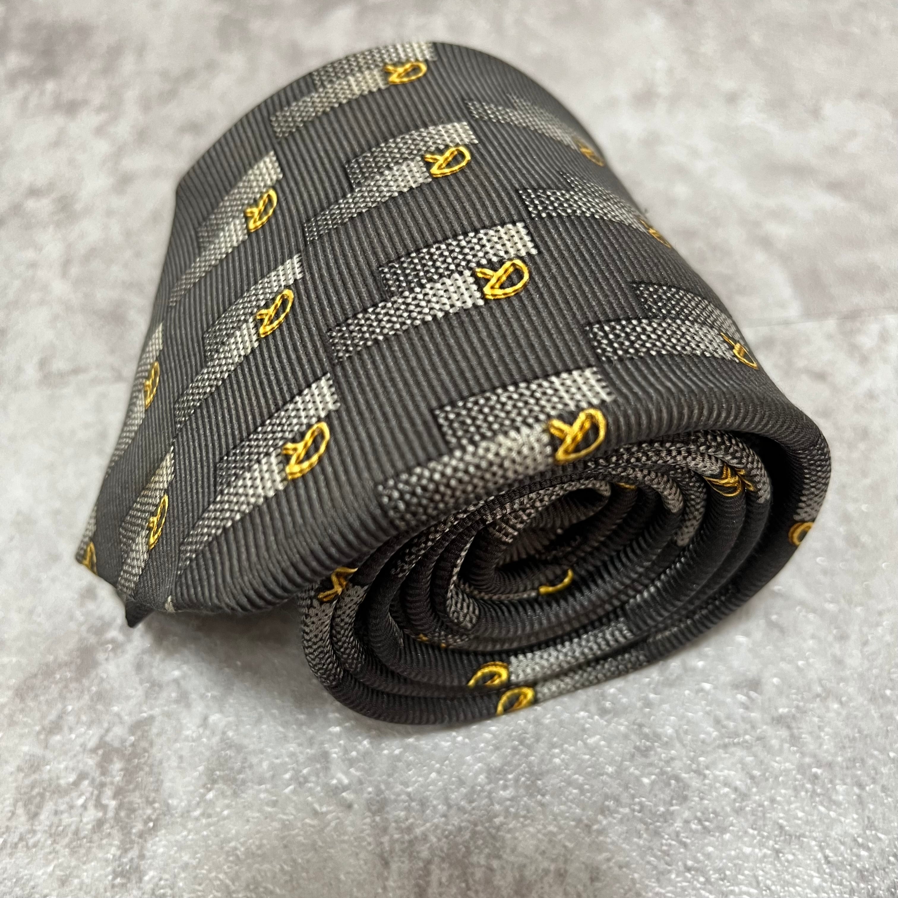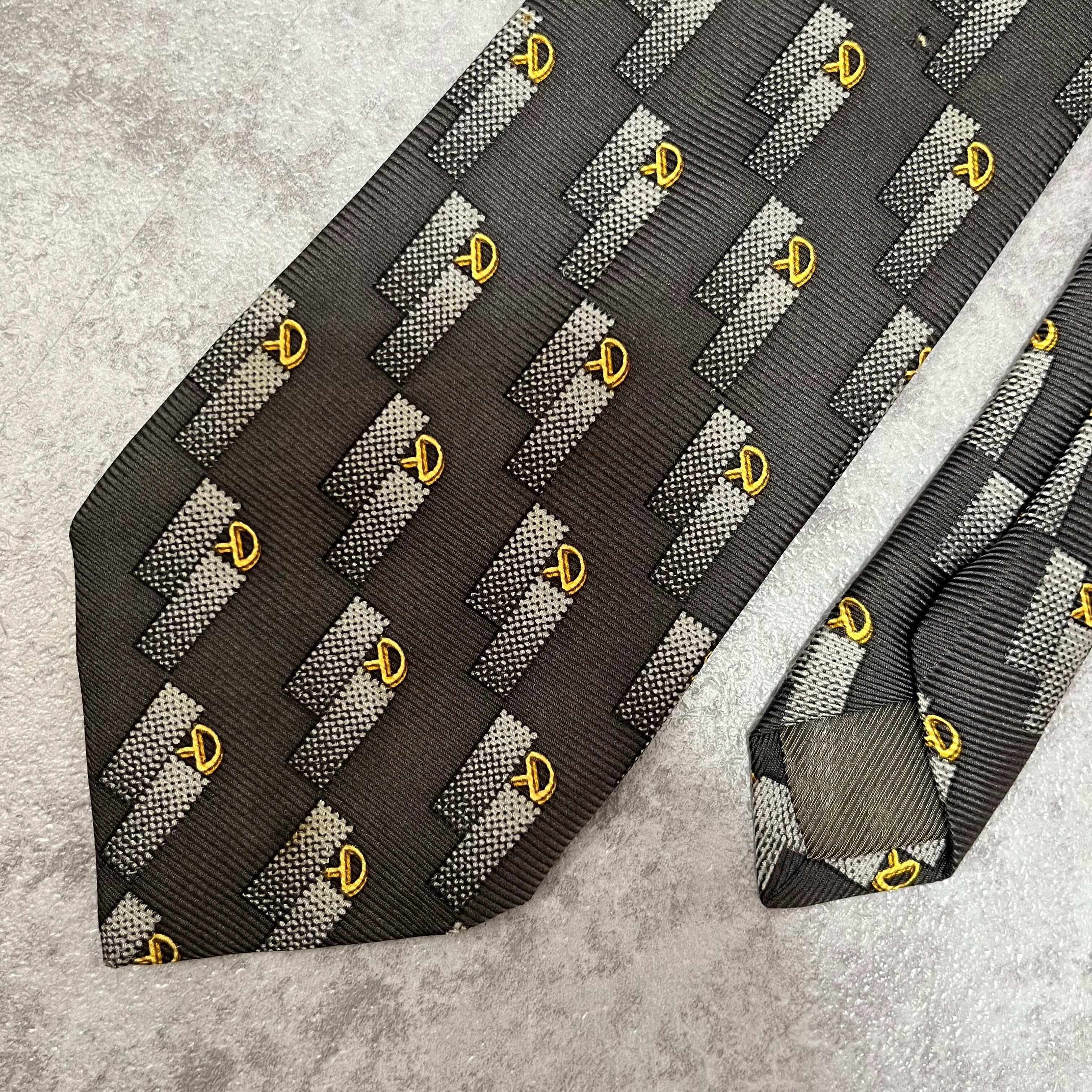 【CELINE】特殊レジメンタルストライプネクタイ グレー ホースビット 四角形