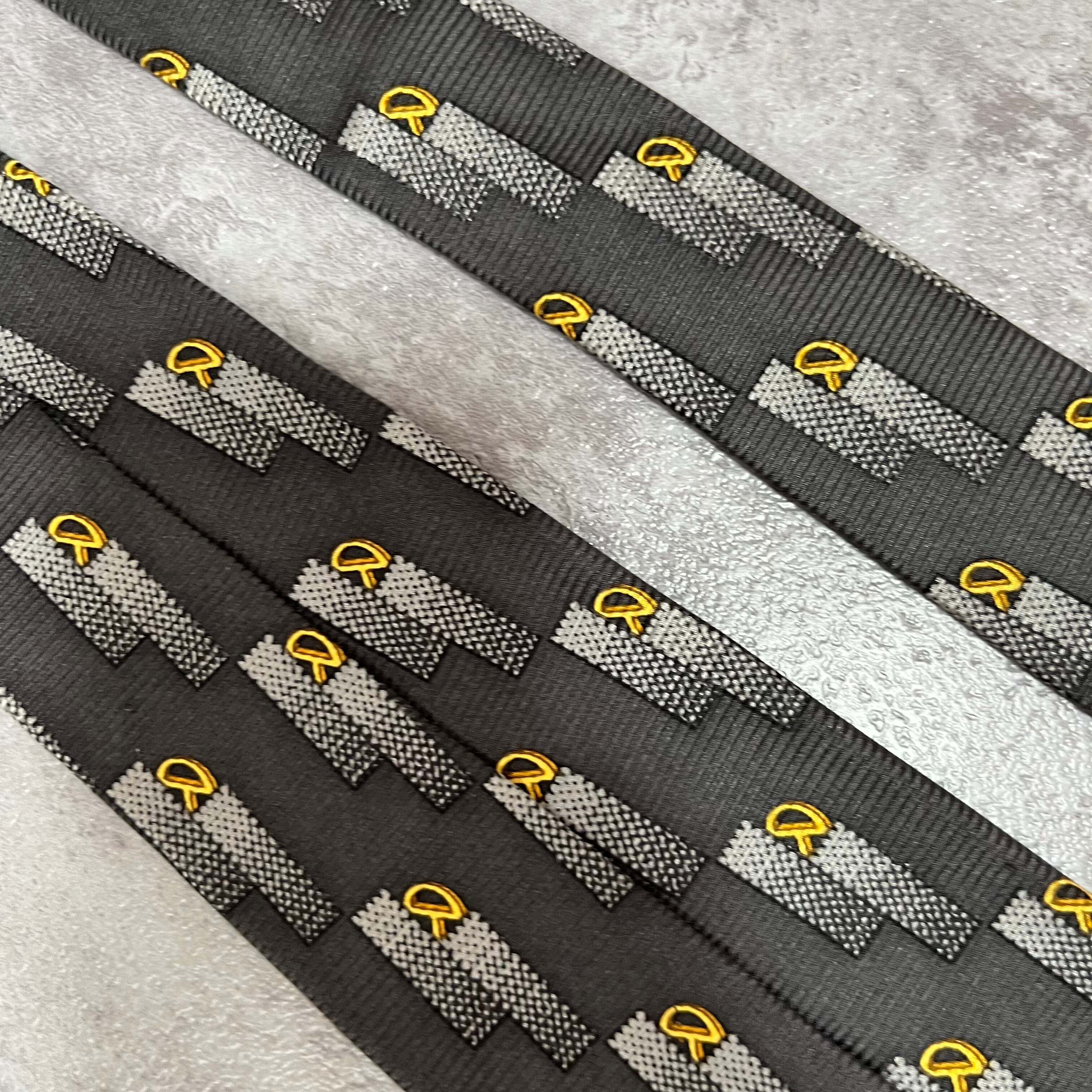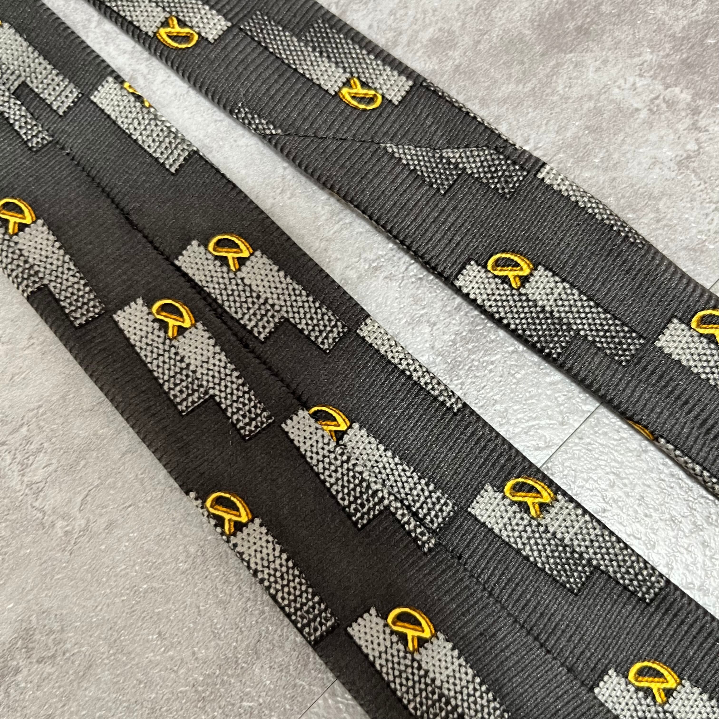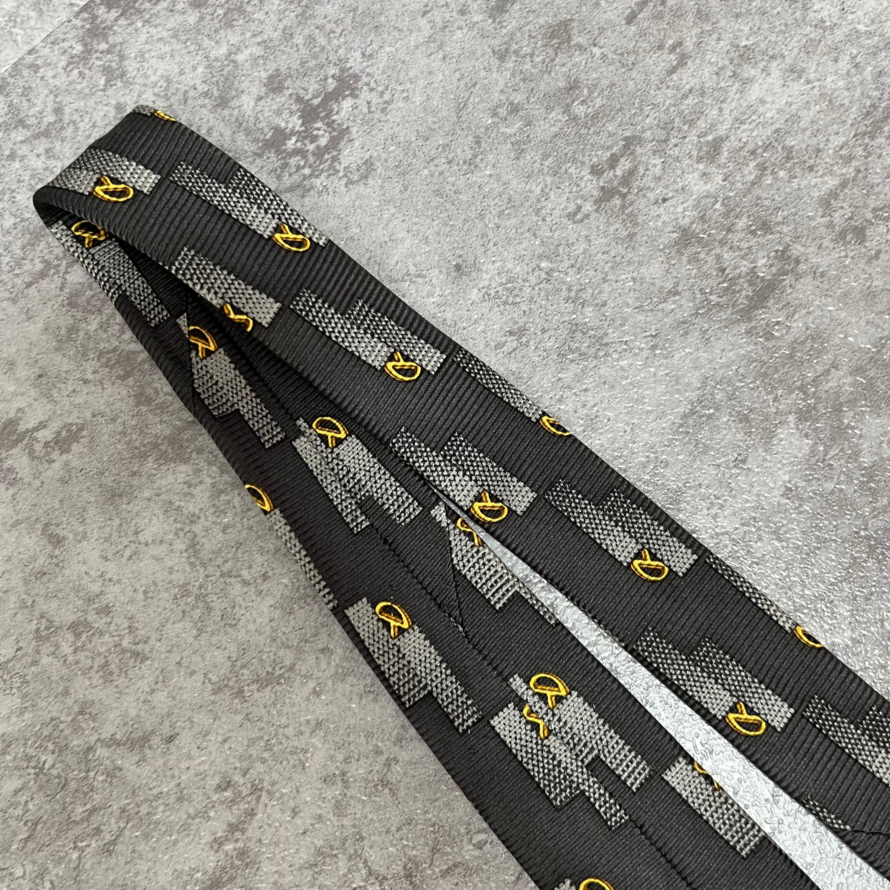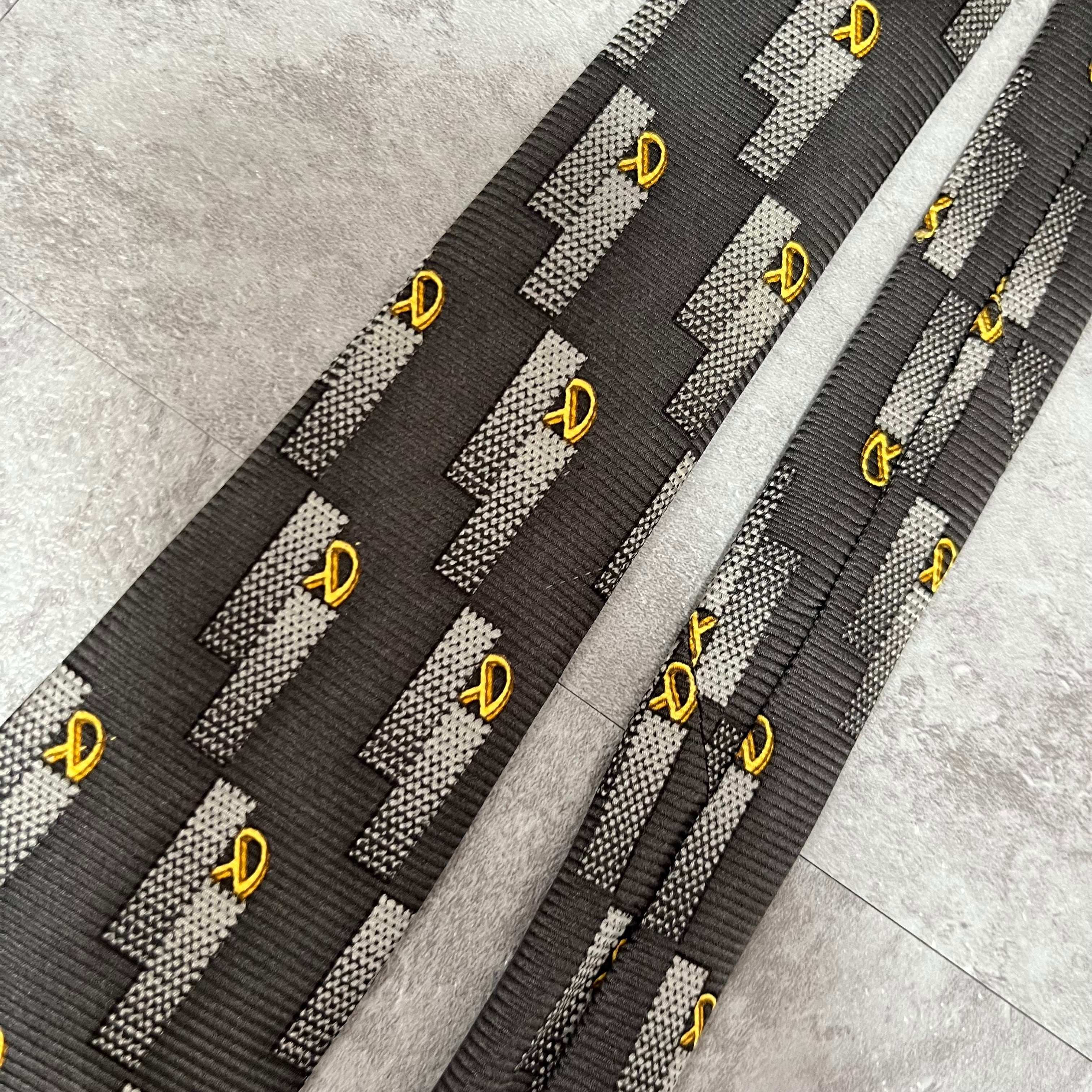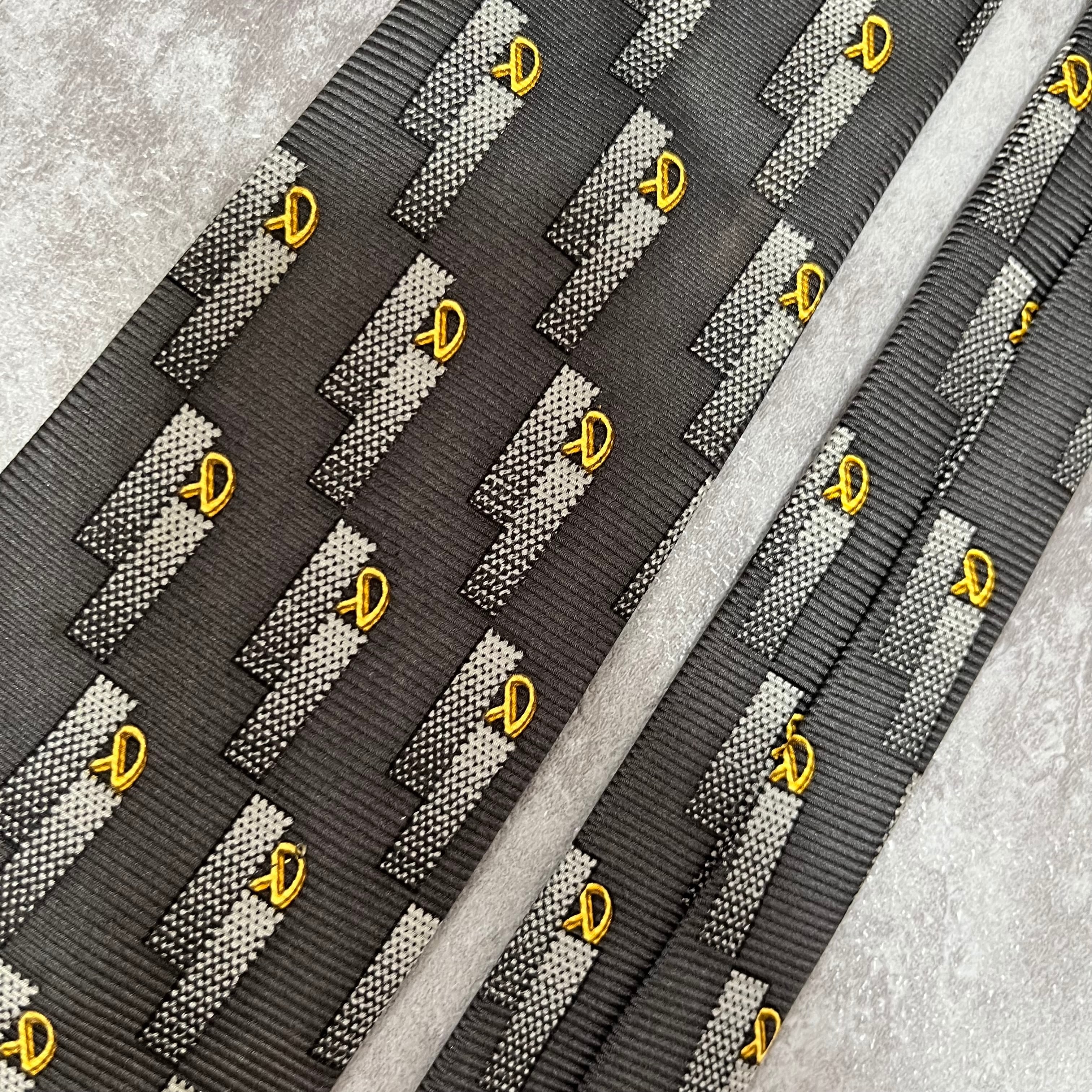 【CELINE】特殊レジメンタルストライプネクタイ グレー ホースビット 四角形