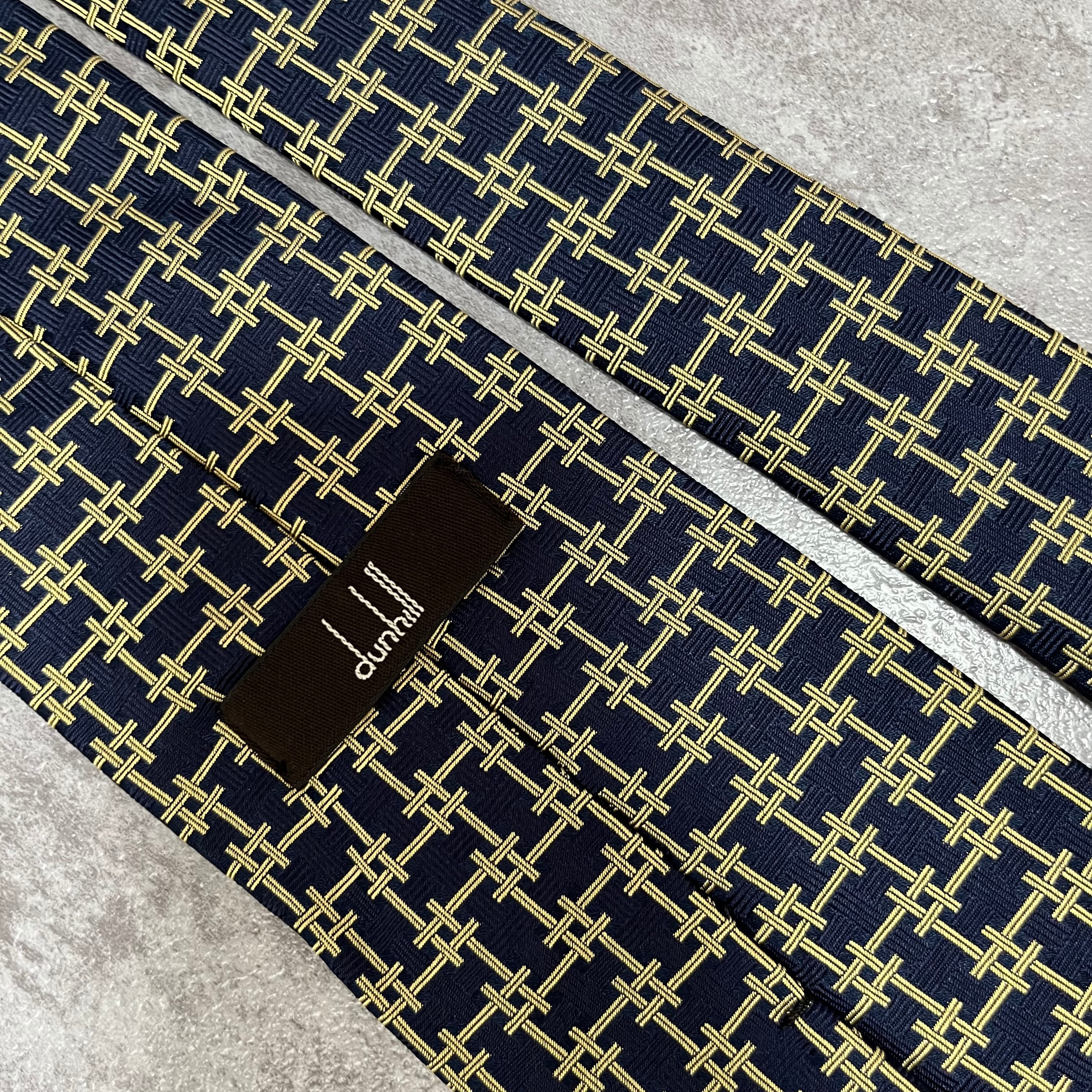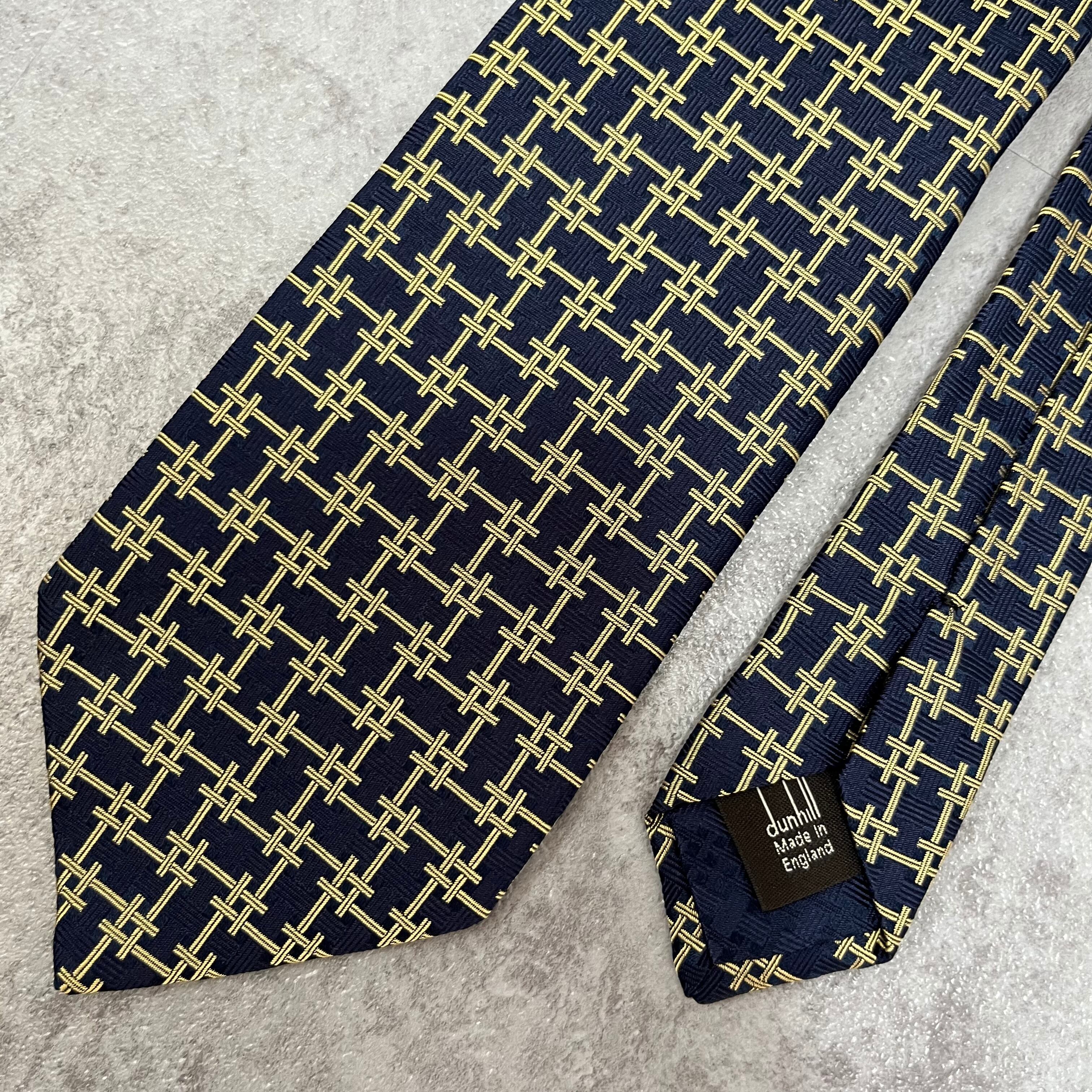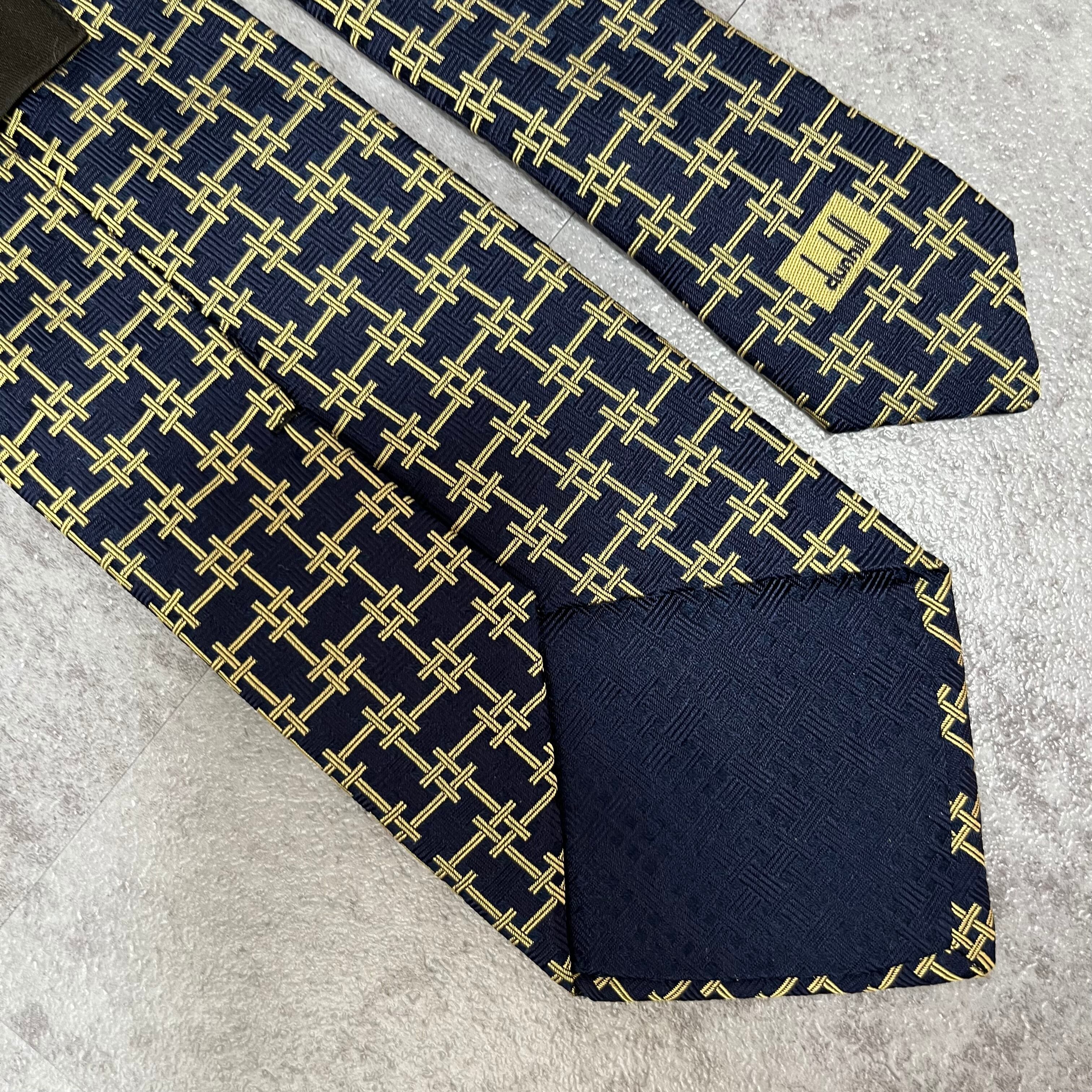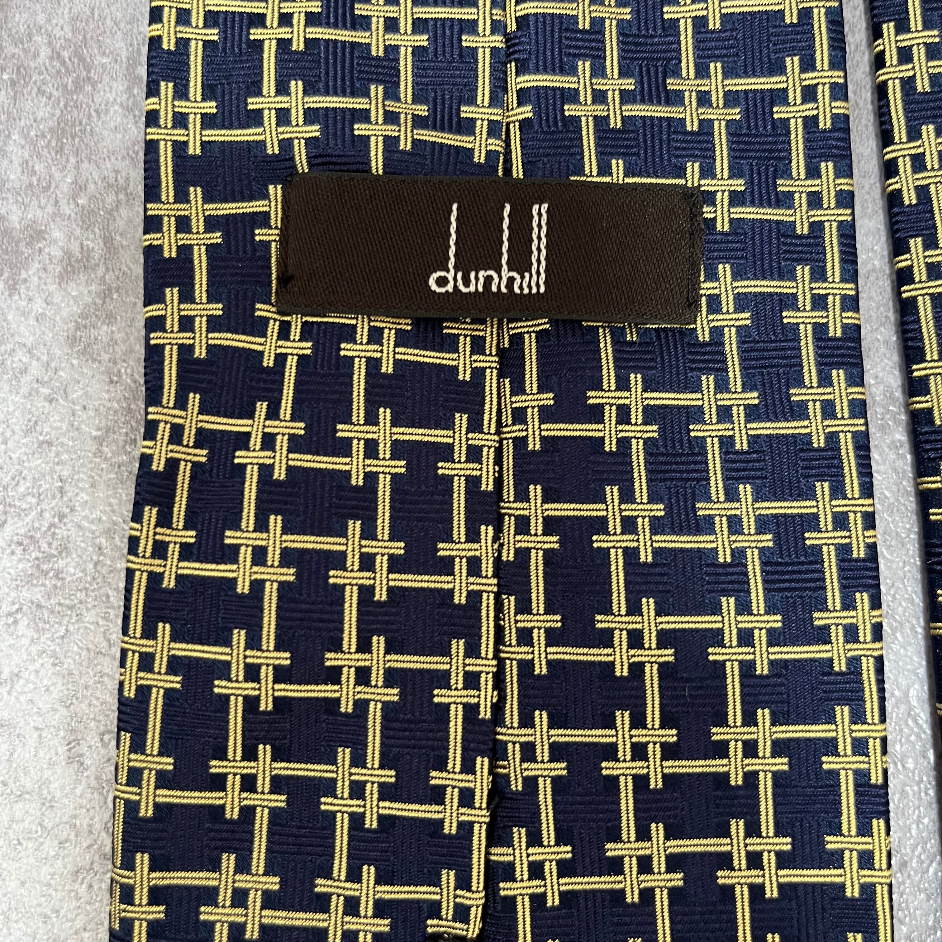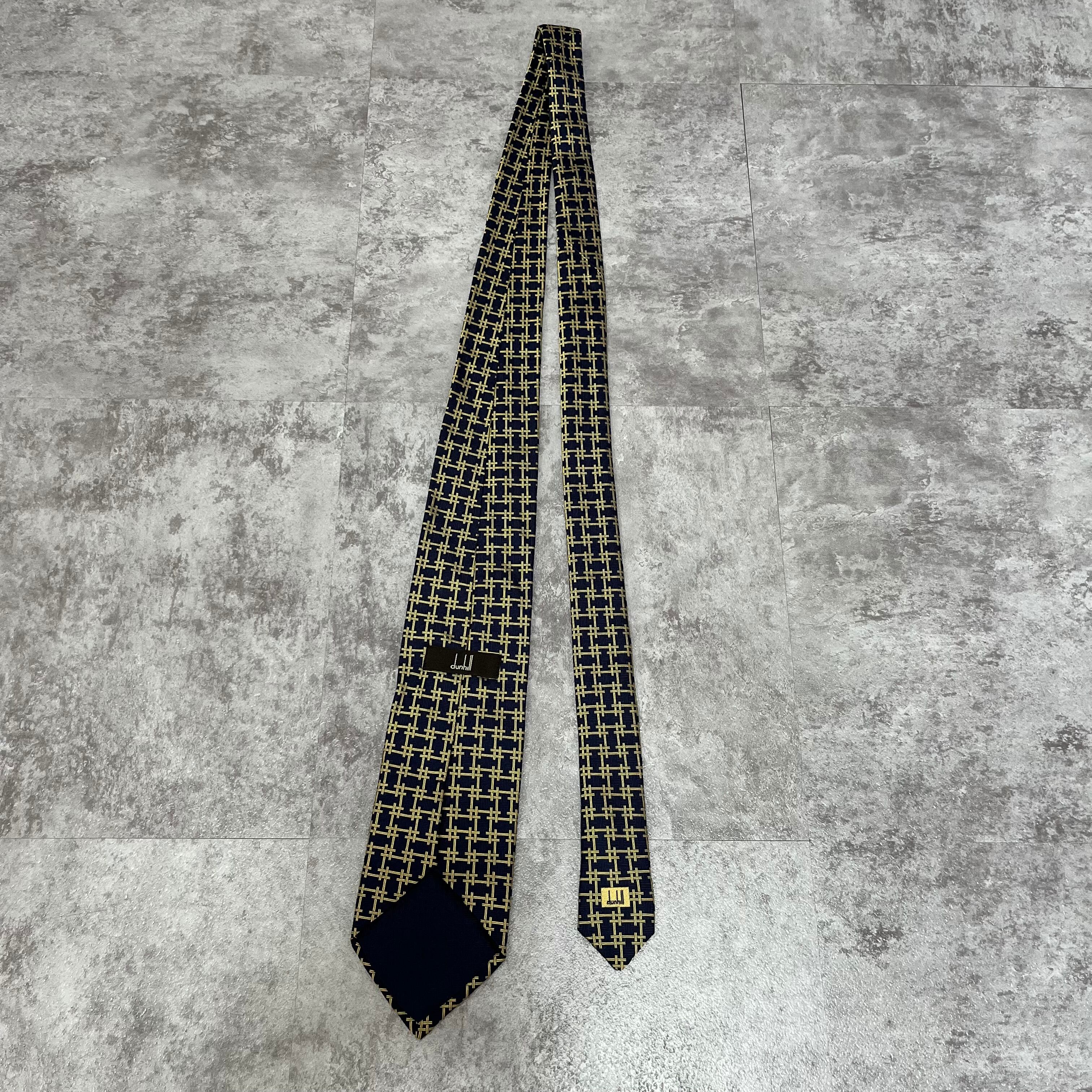 【dunhill】チェック柄ネクタイ ネイビー イエロー バイカラー ビジネス