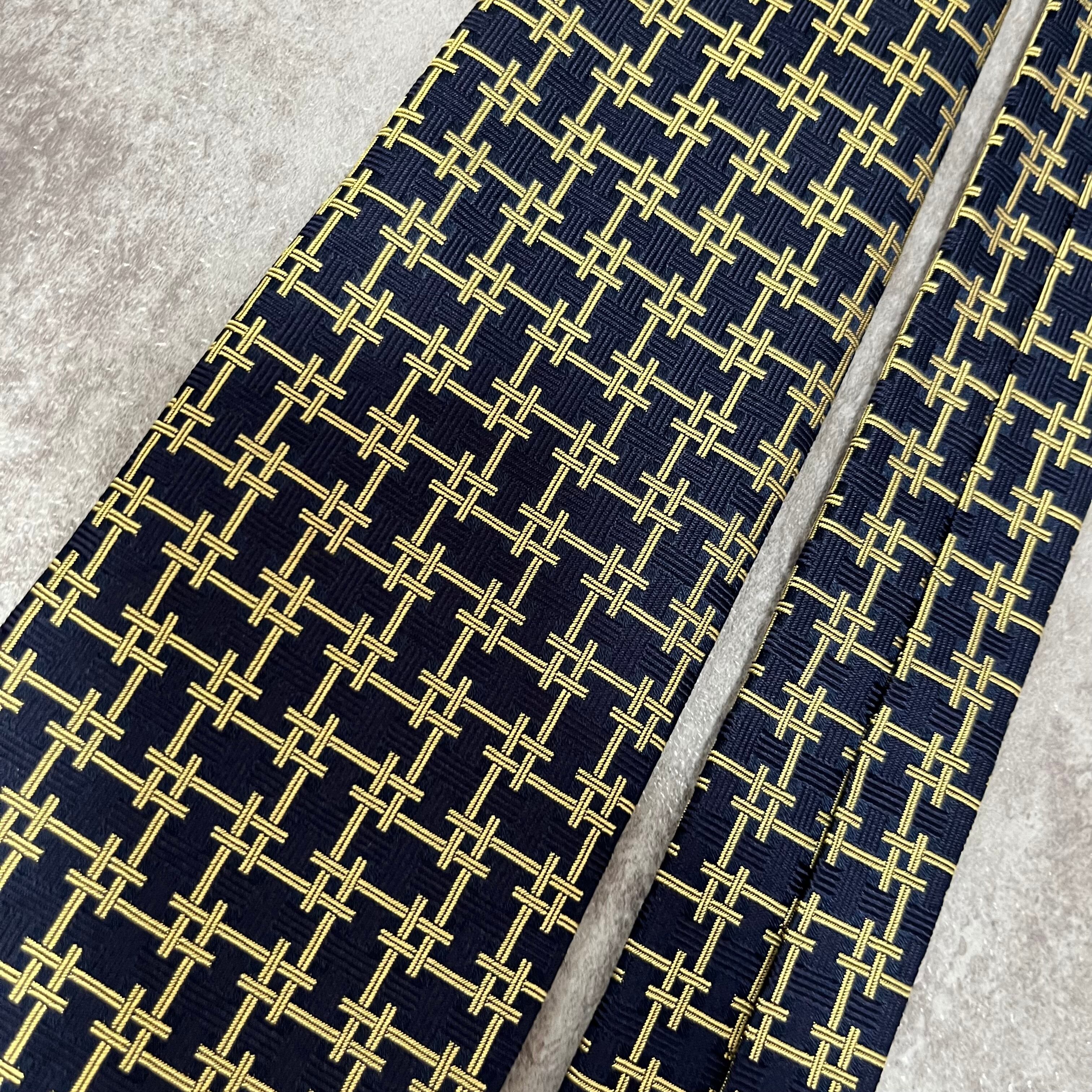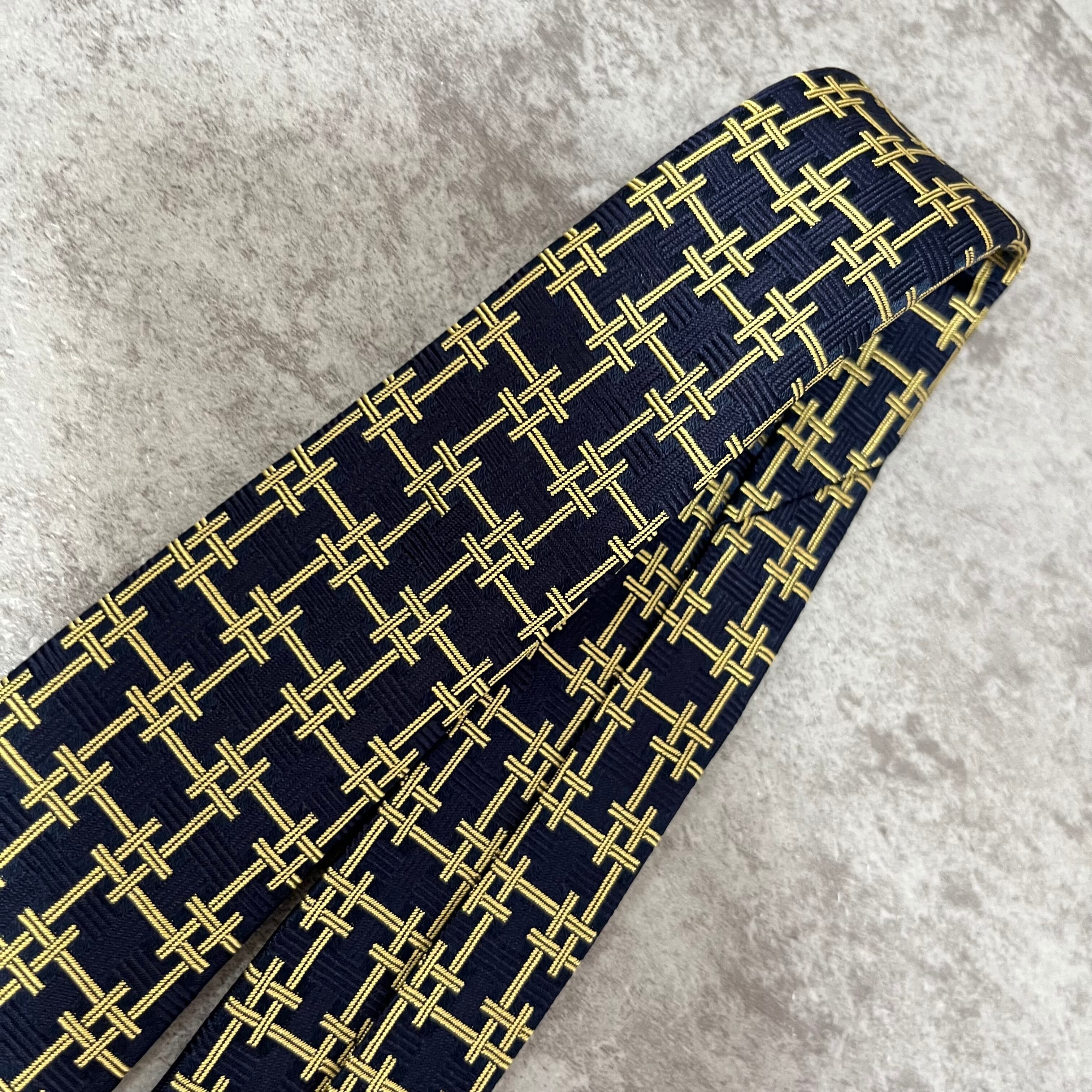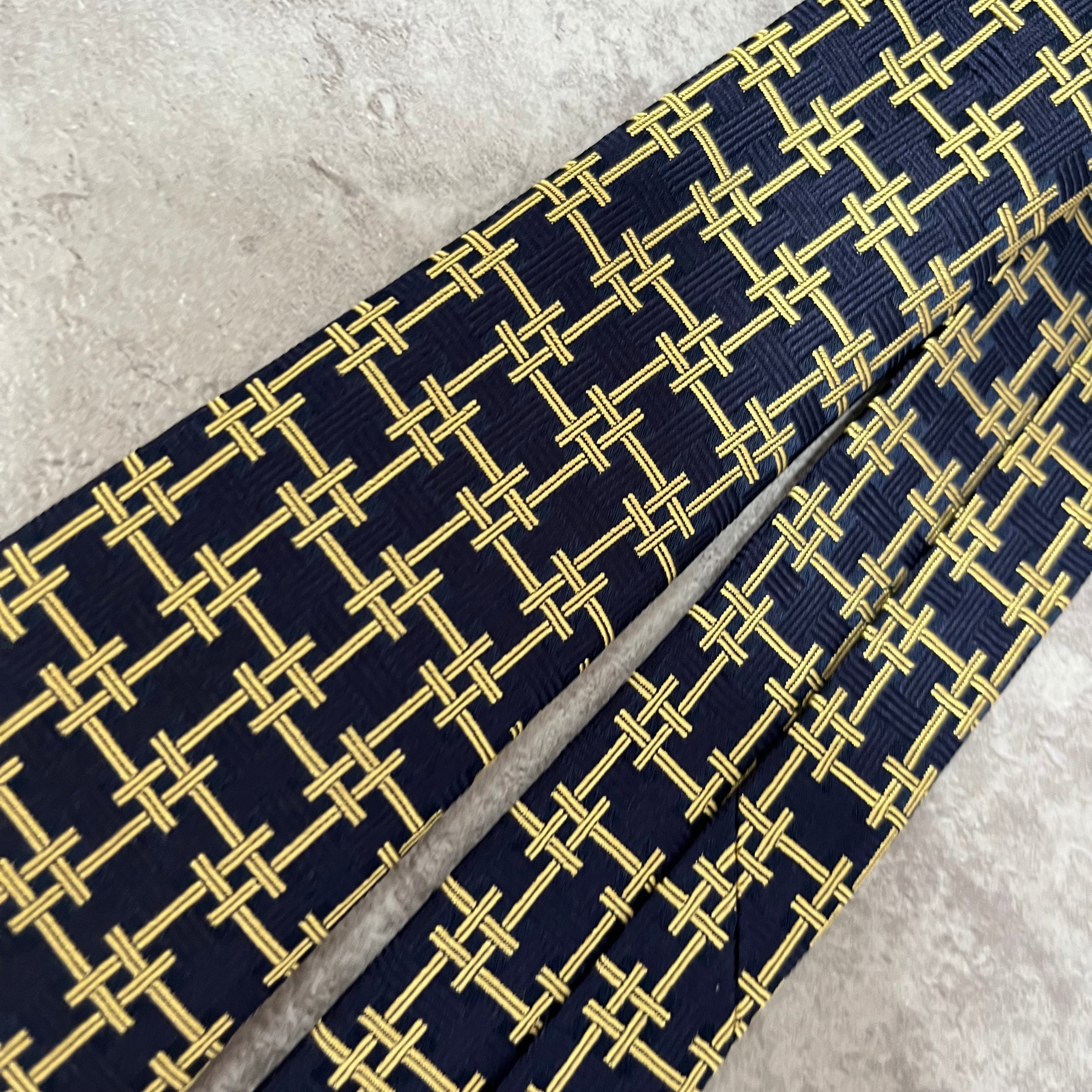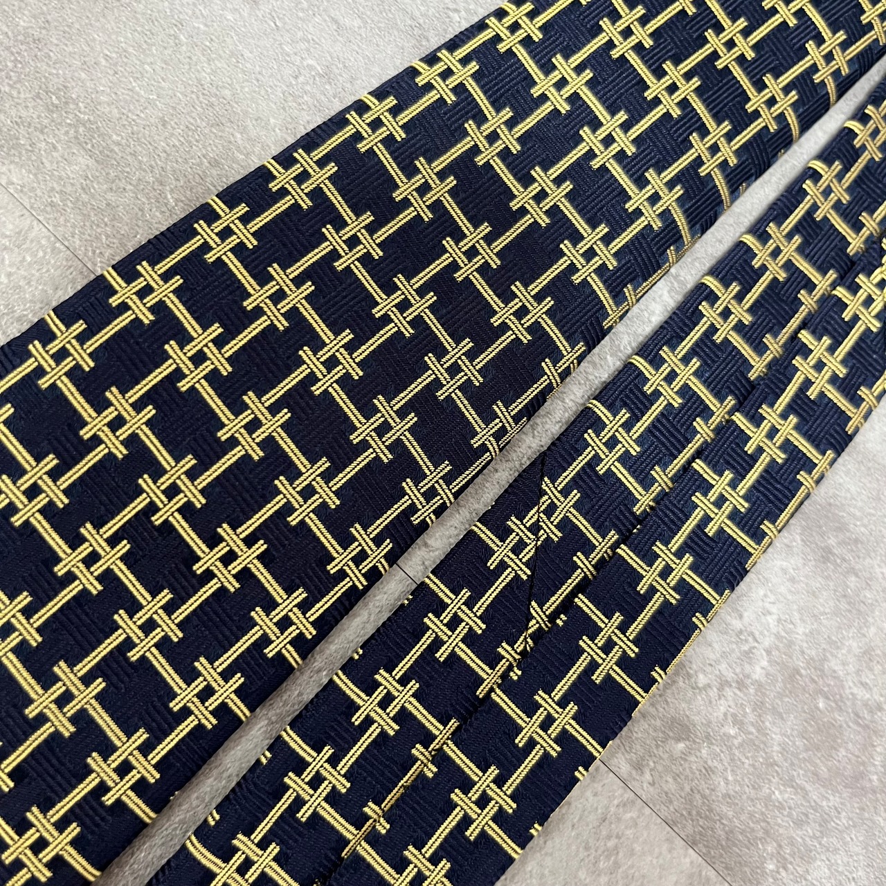 【dunhill】チェック柄ネクタイ ネイビー イエロー バイカラー ビジネス