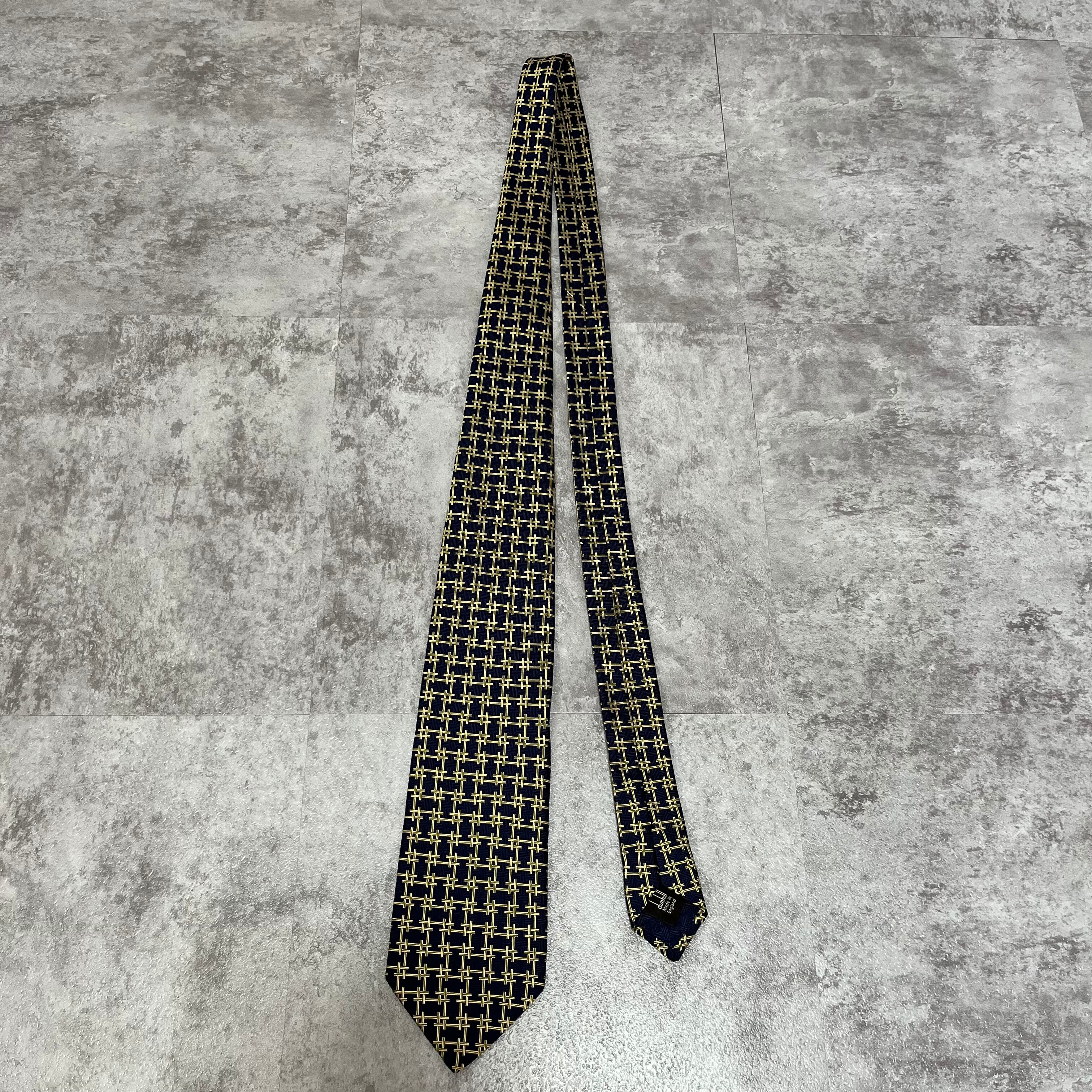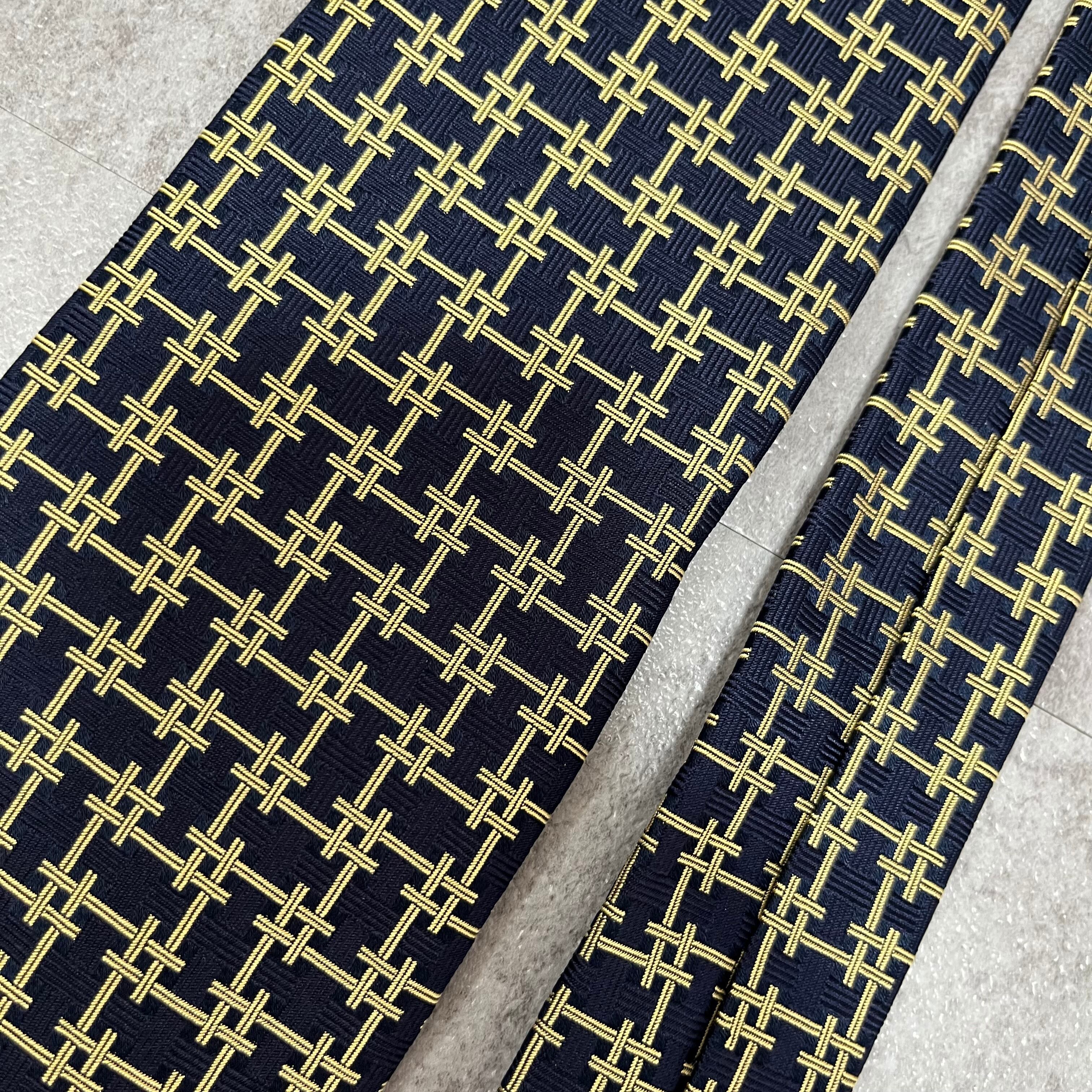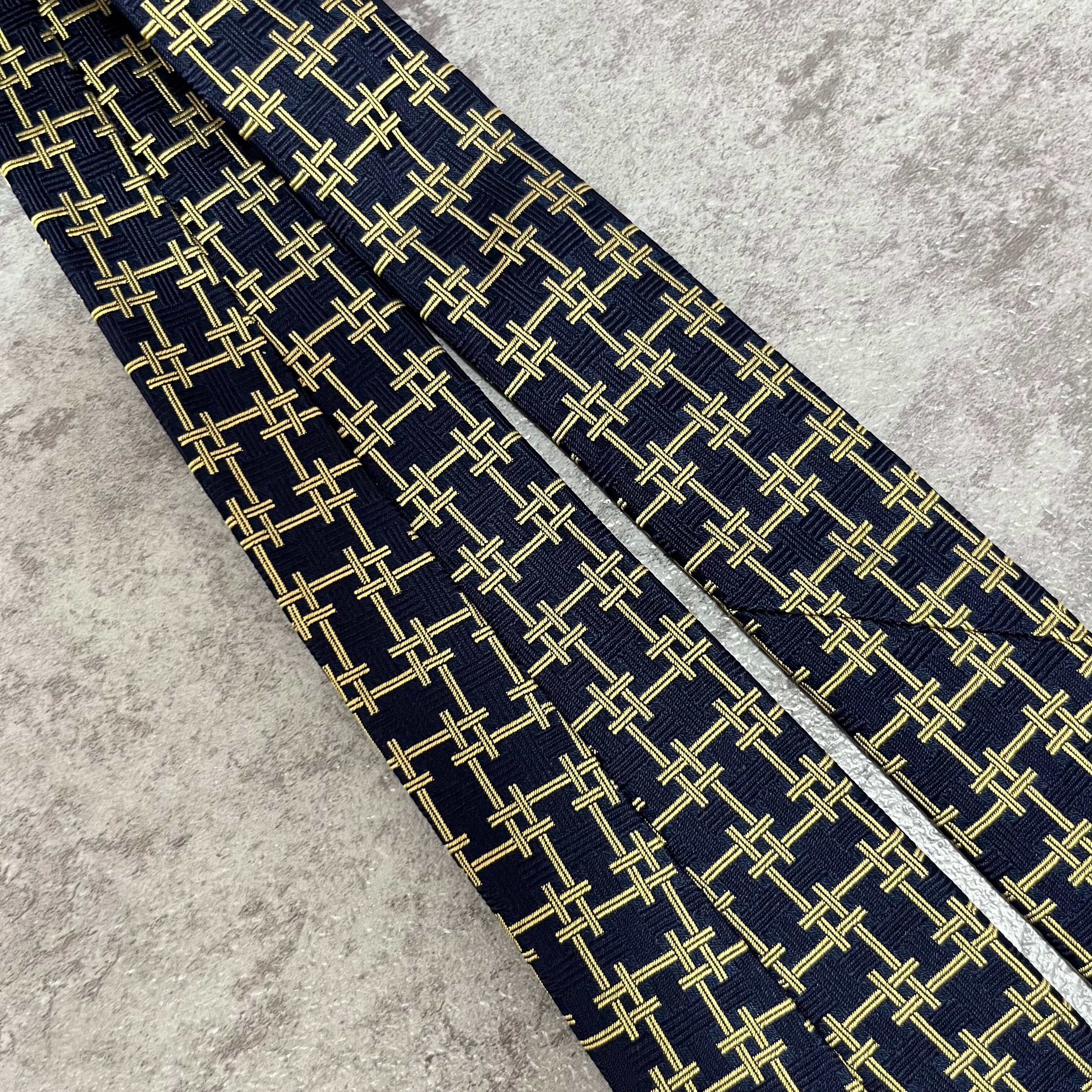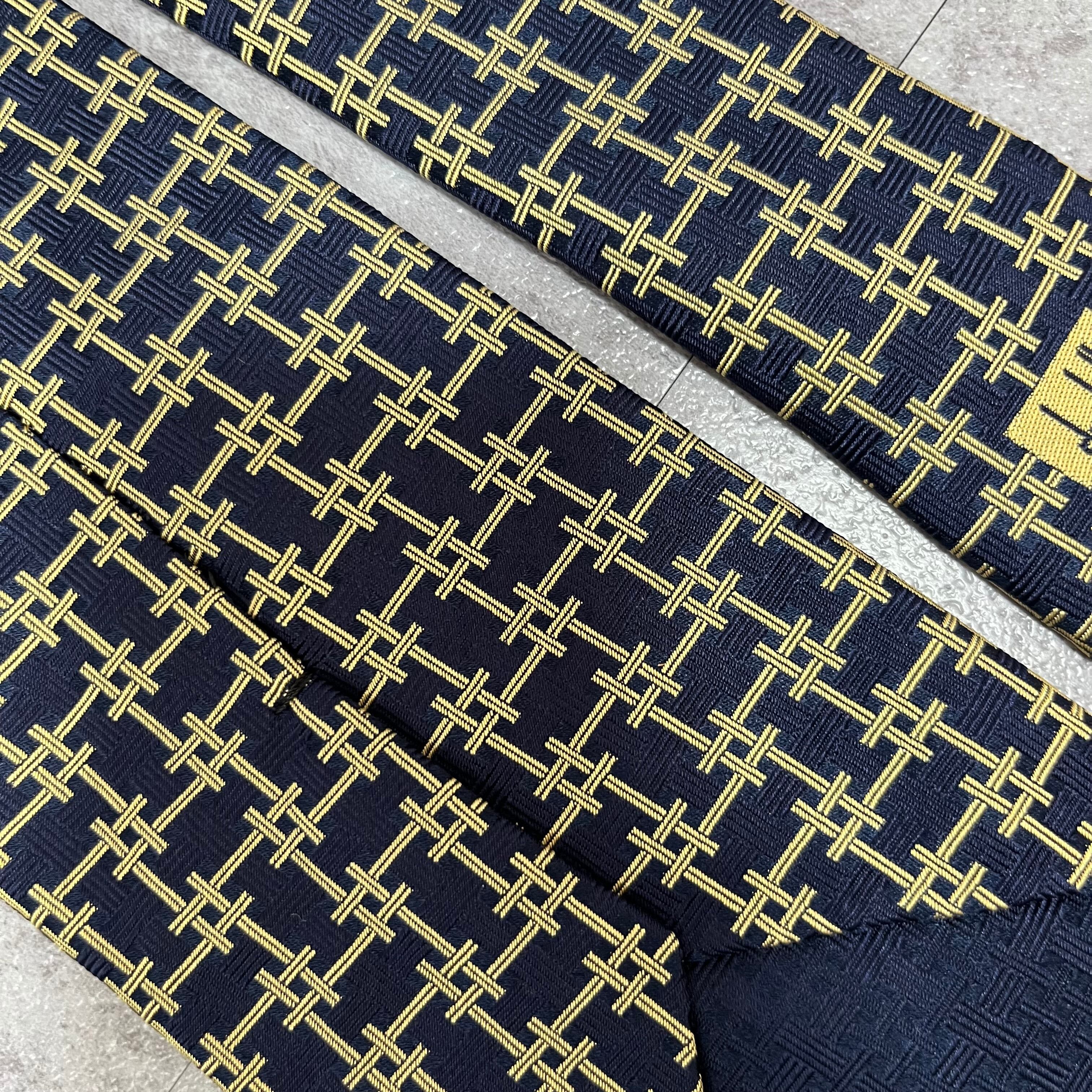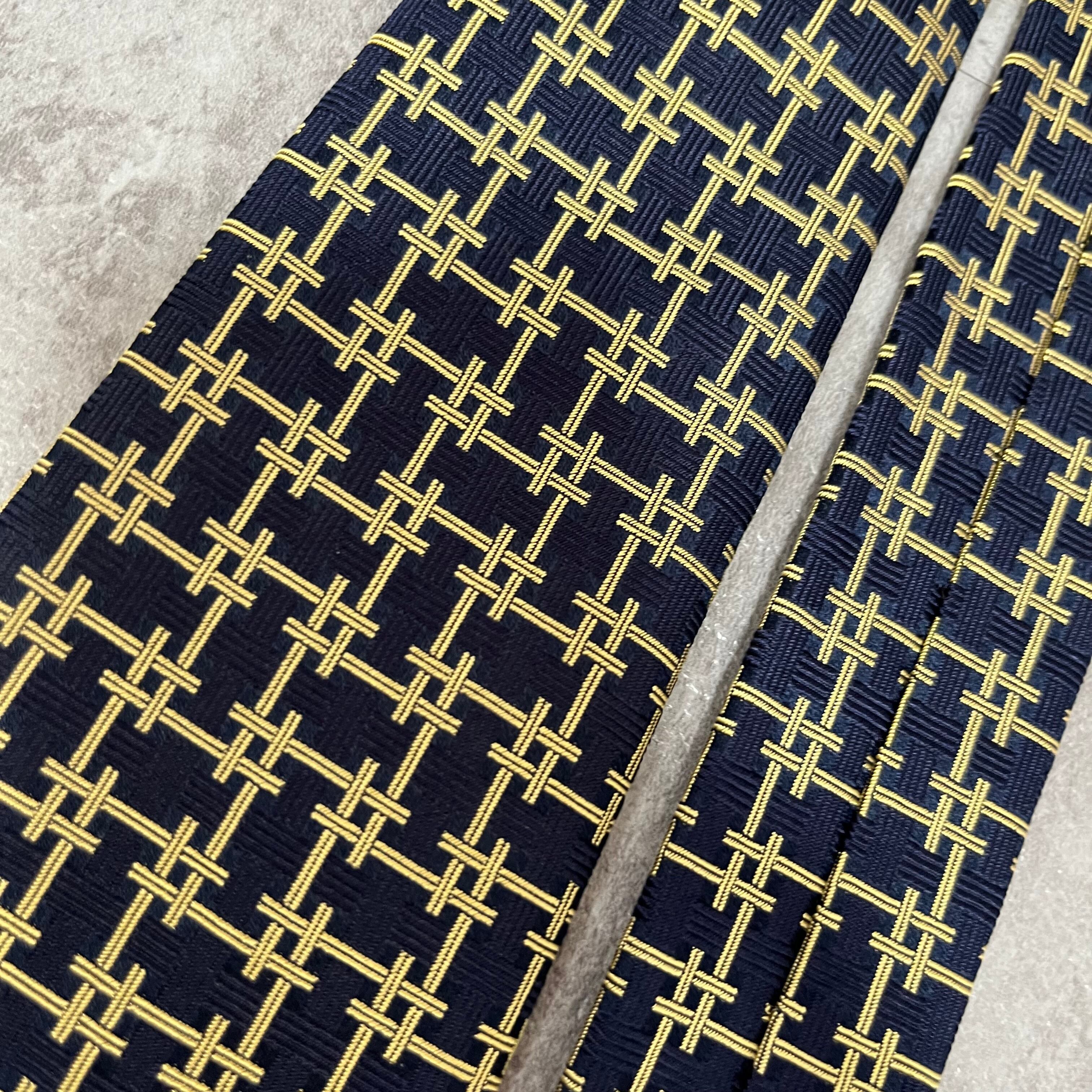 【dunhill】チェック柄ネクタイ ネイビー イエロー バイカラー ビジネス