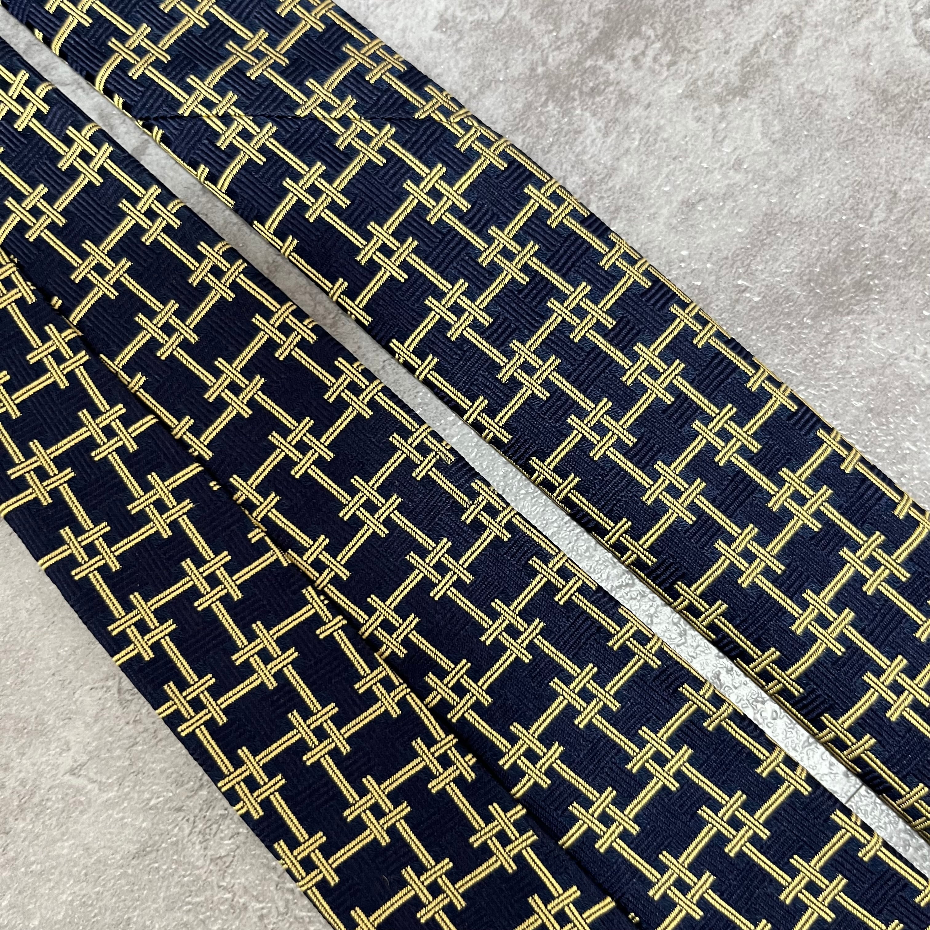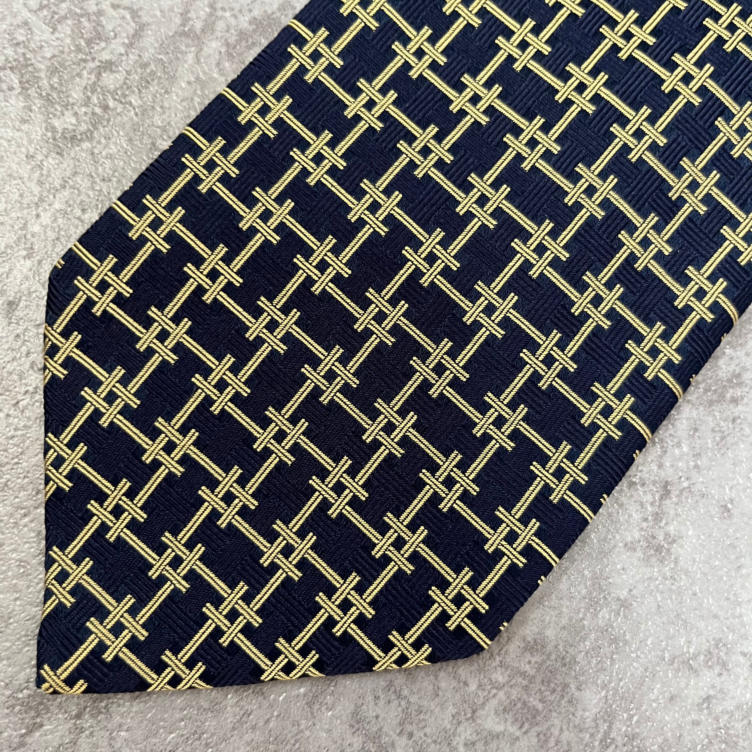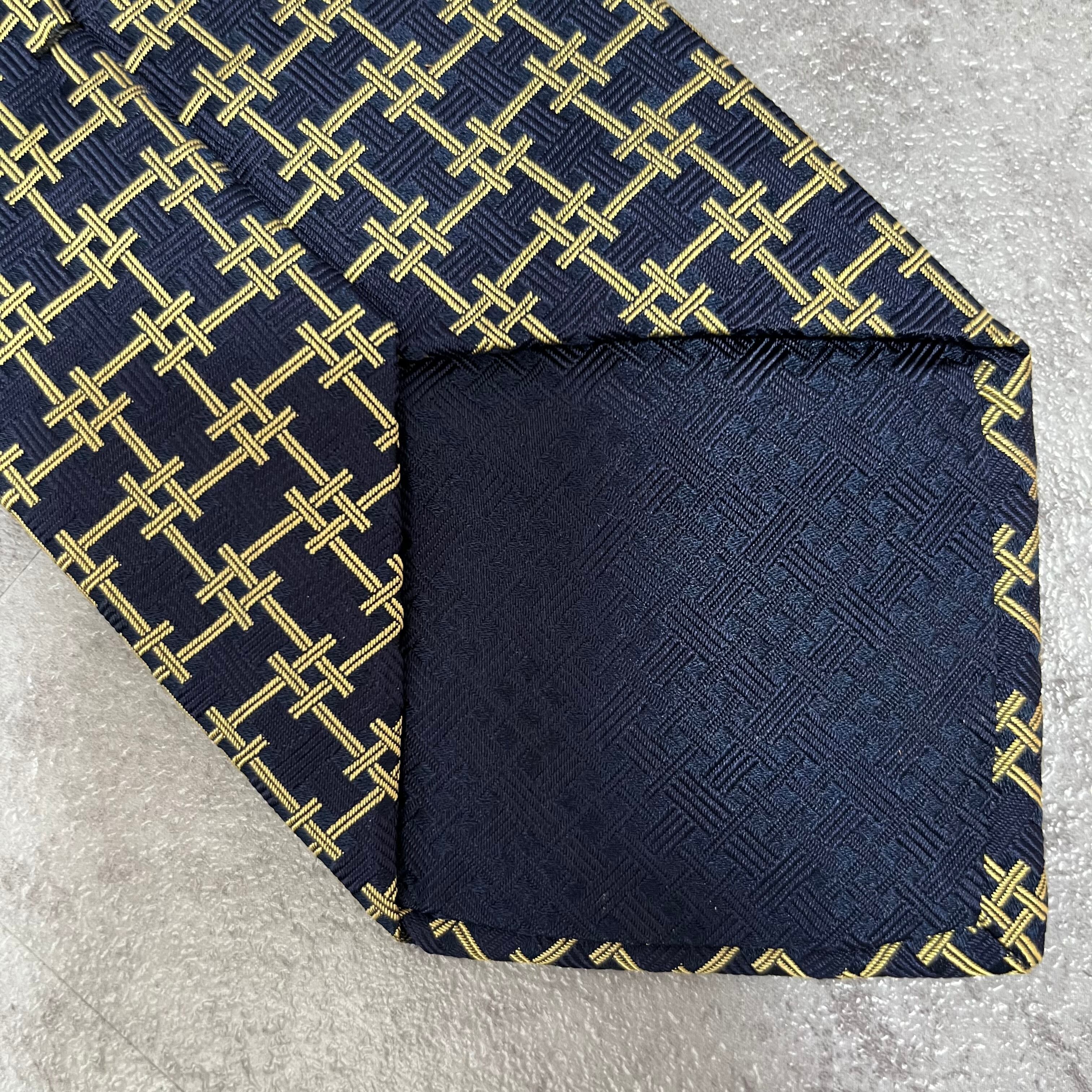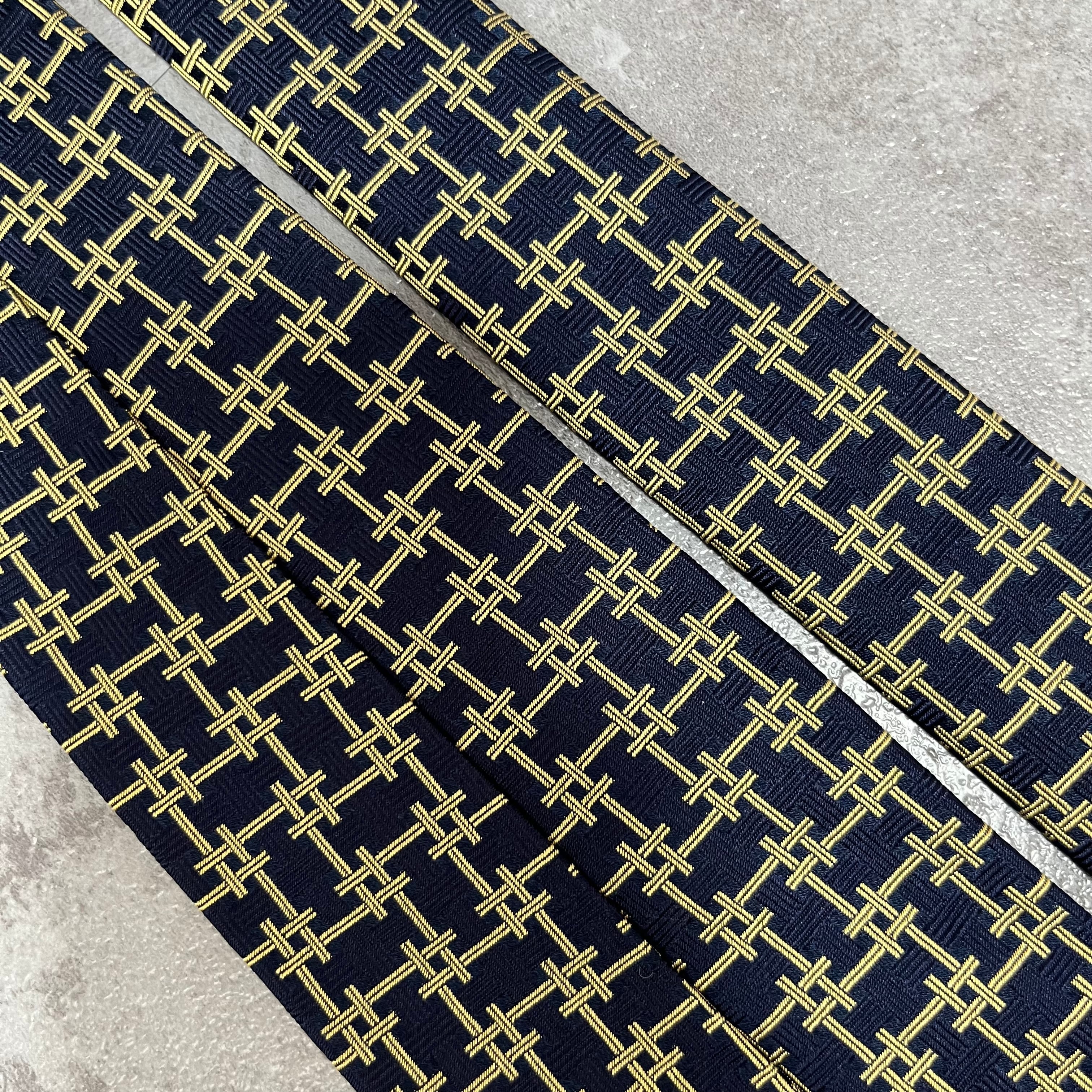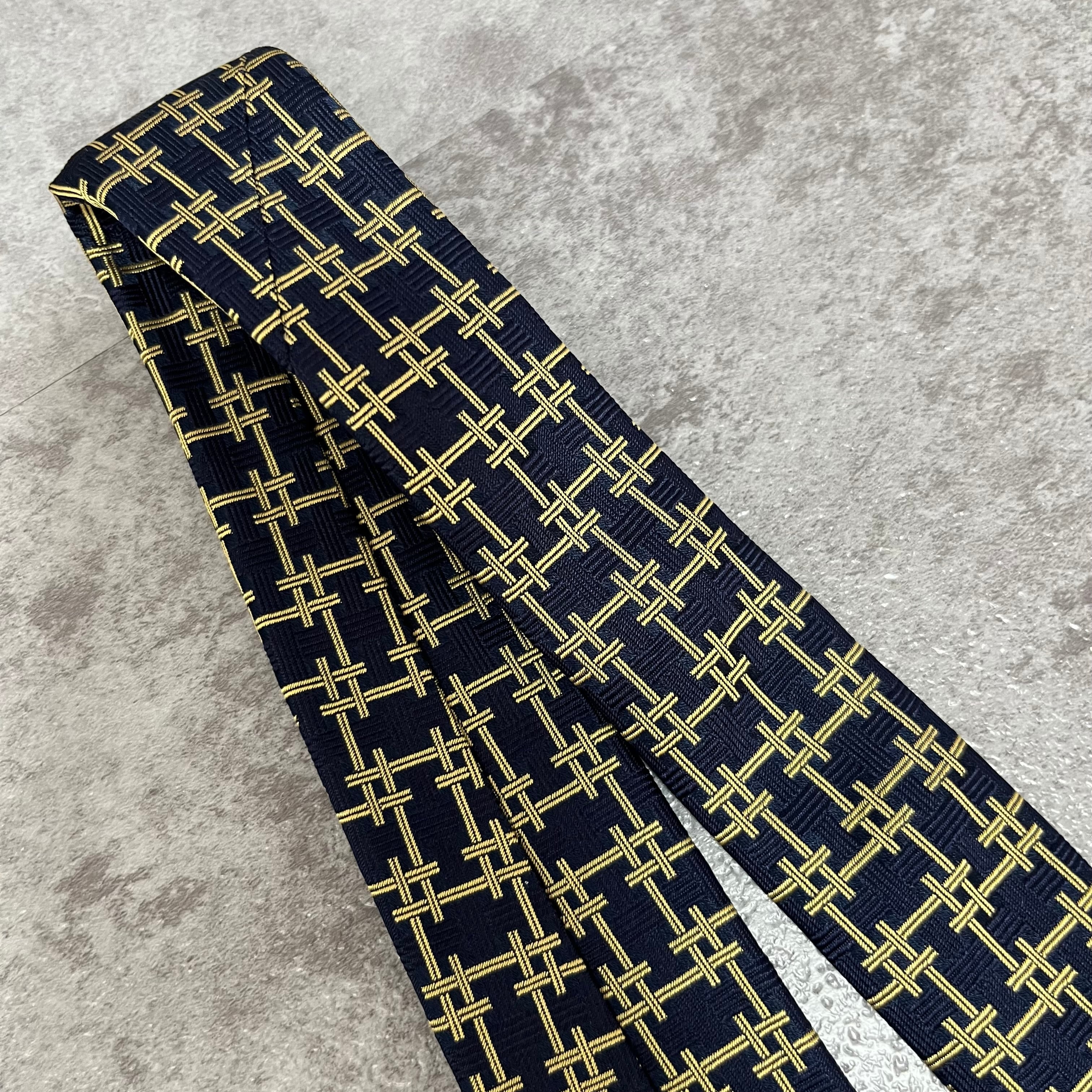 【dunhill】チェック柄ネクタイ ネイビー イエロー バイカラー ビジネス