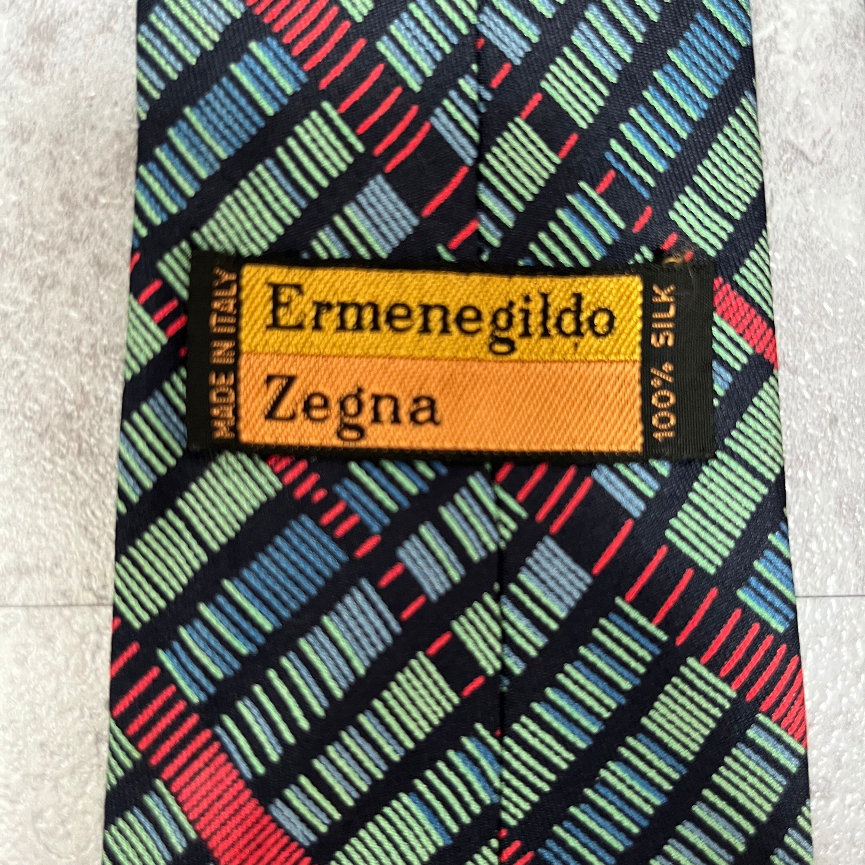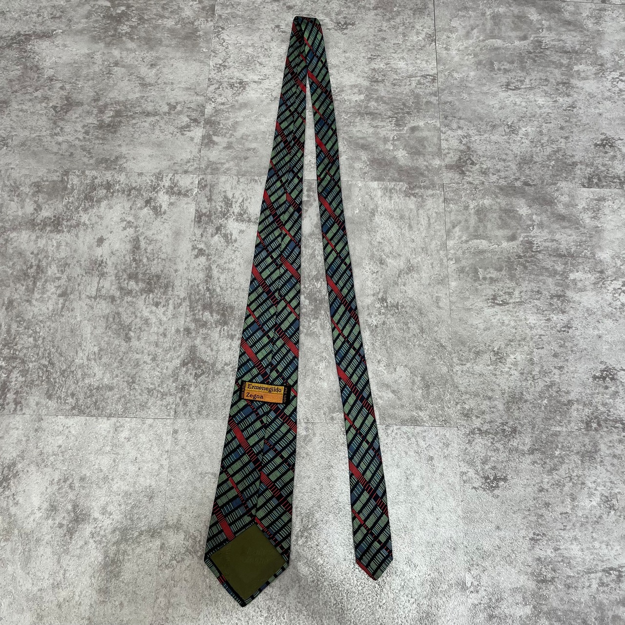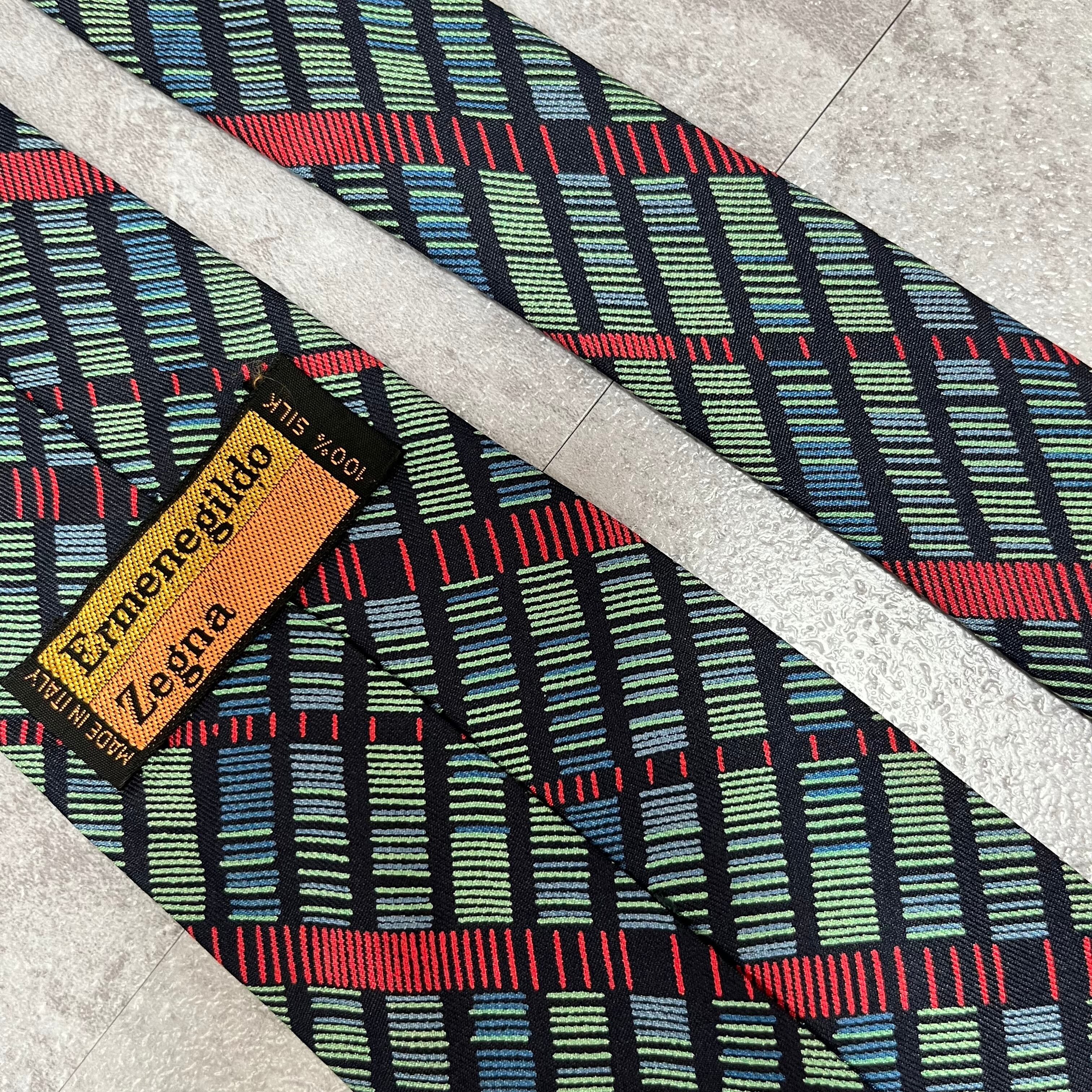 【Ermenegildo Zegna】特殊レジメンタルストライプネクタイ マルチカラー グリーン ネイビー レッド