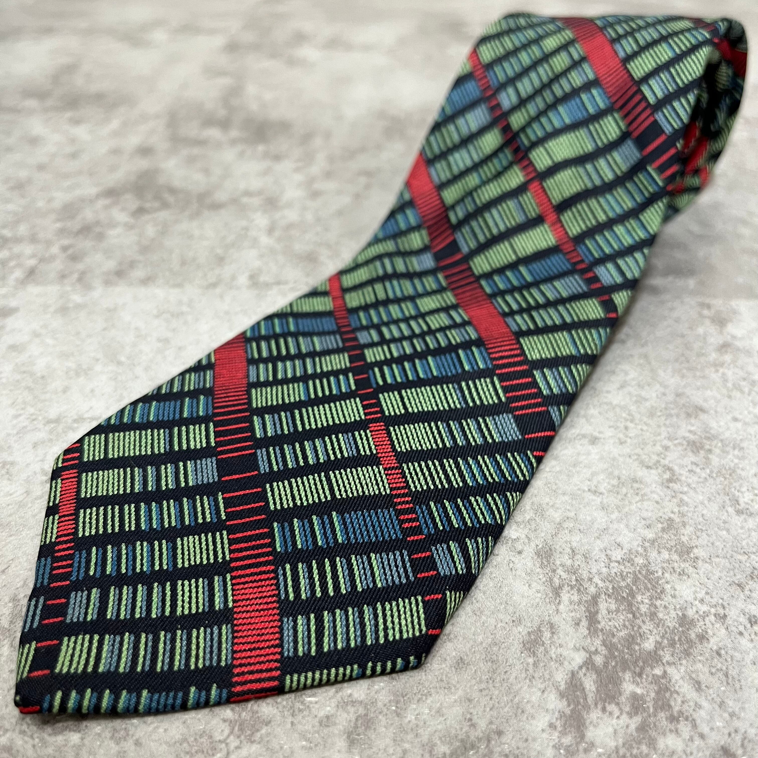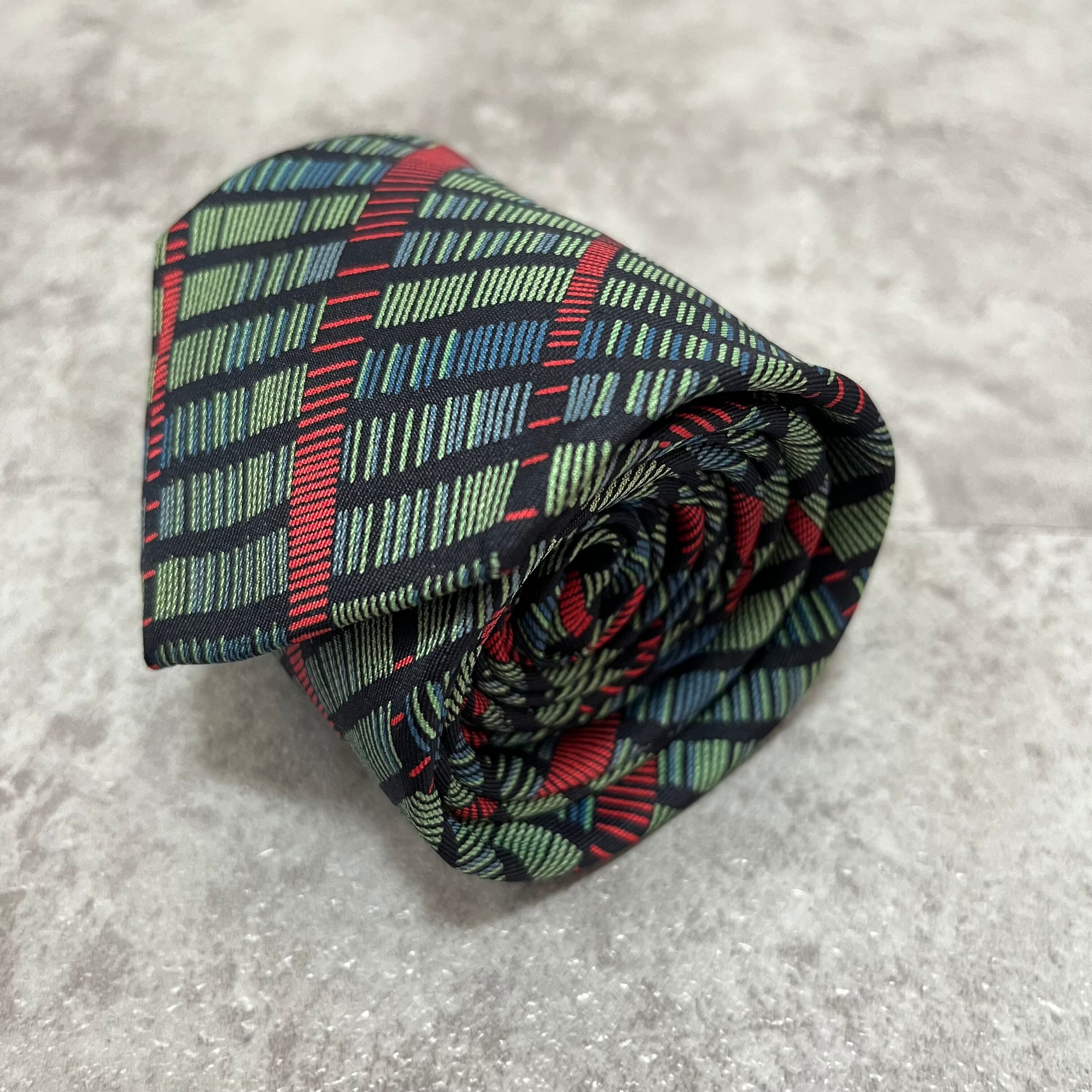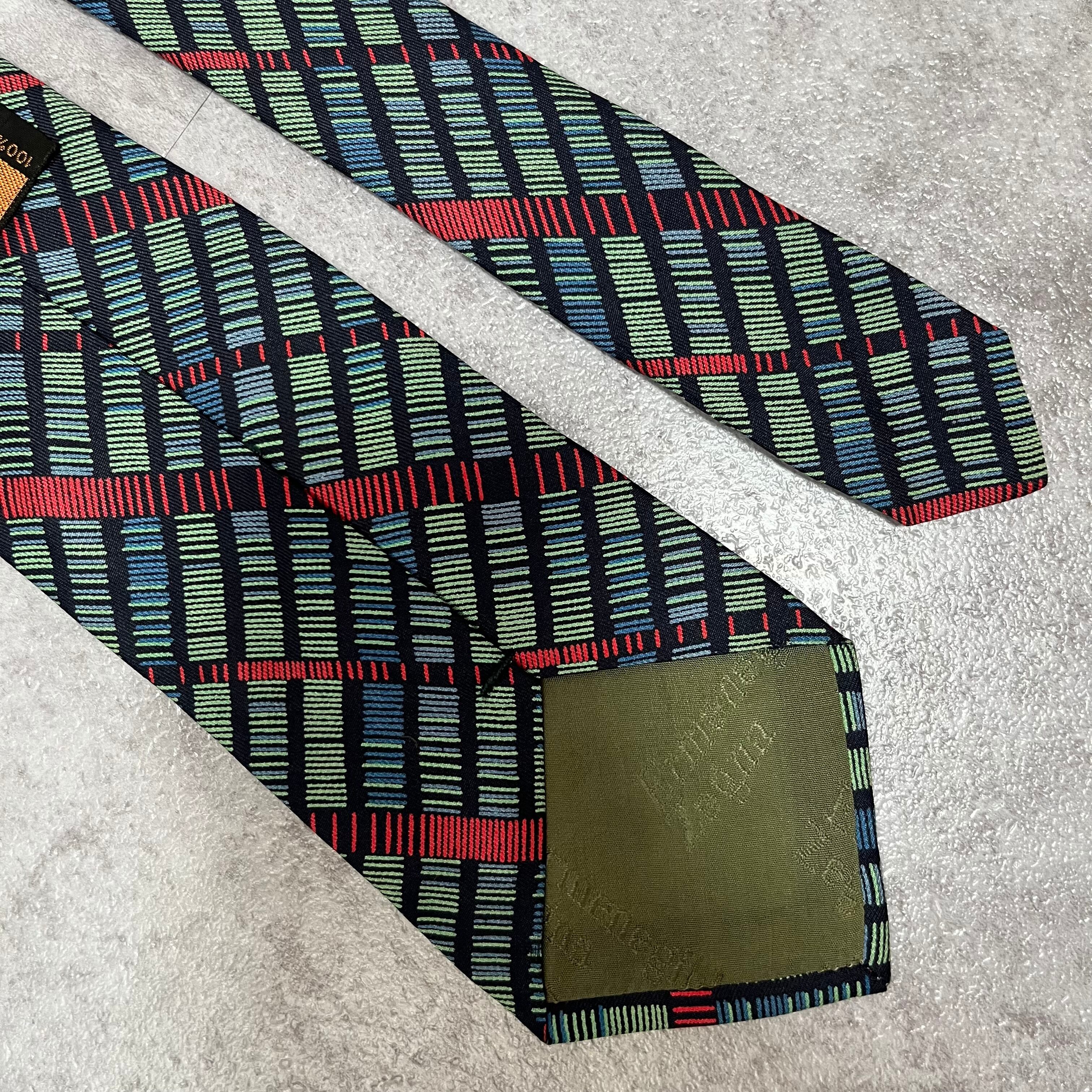 【Ermenegildo Zegna】特殊レジメンタルストライプネクタイ マルチカラー グリーン ネイビー レッド