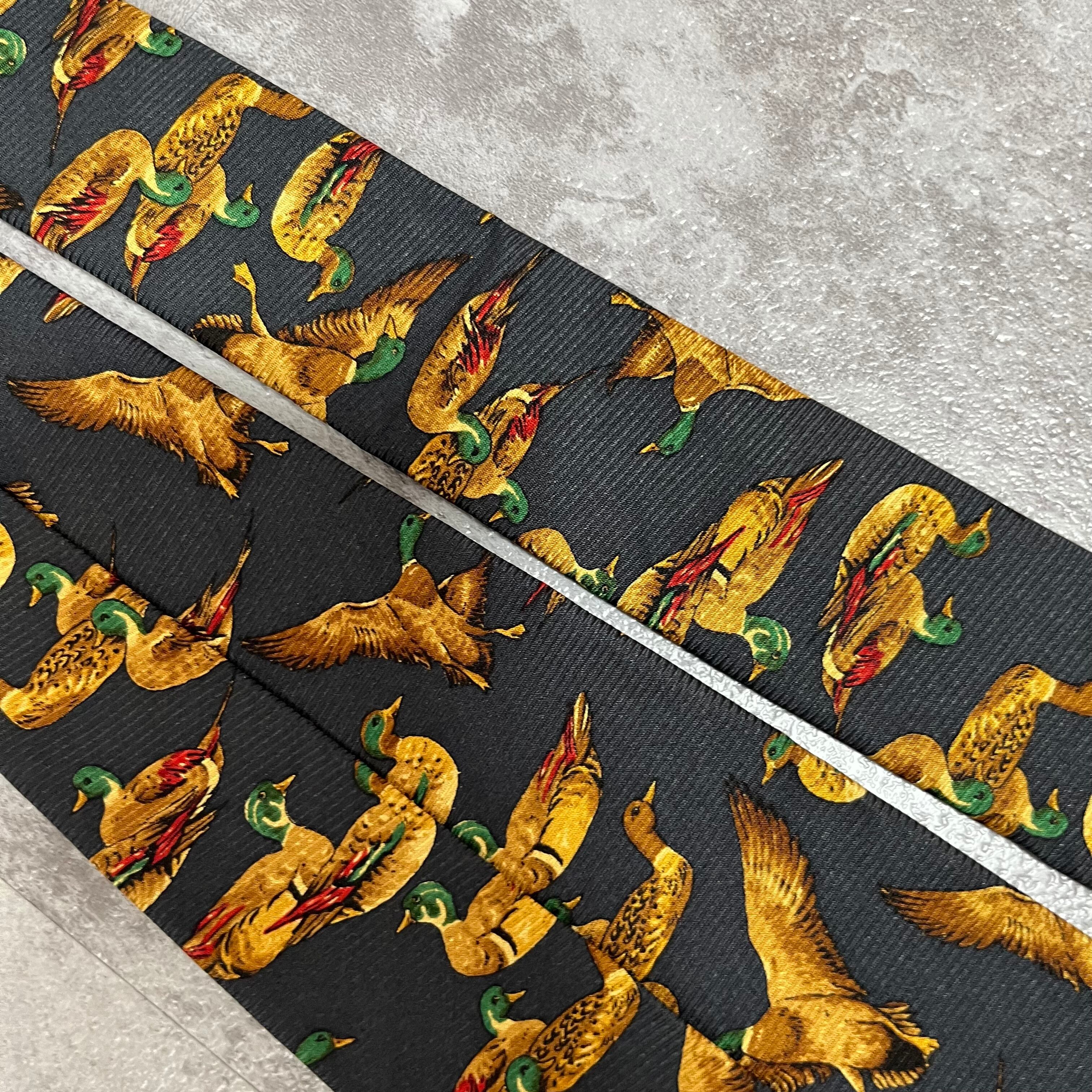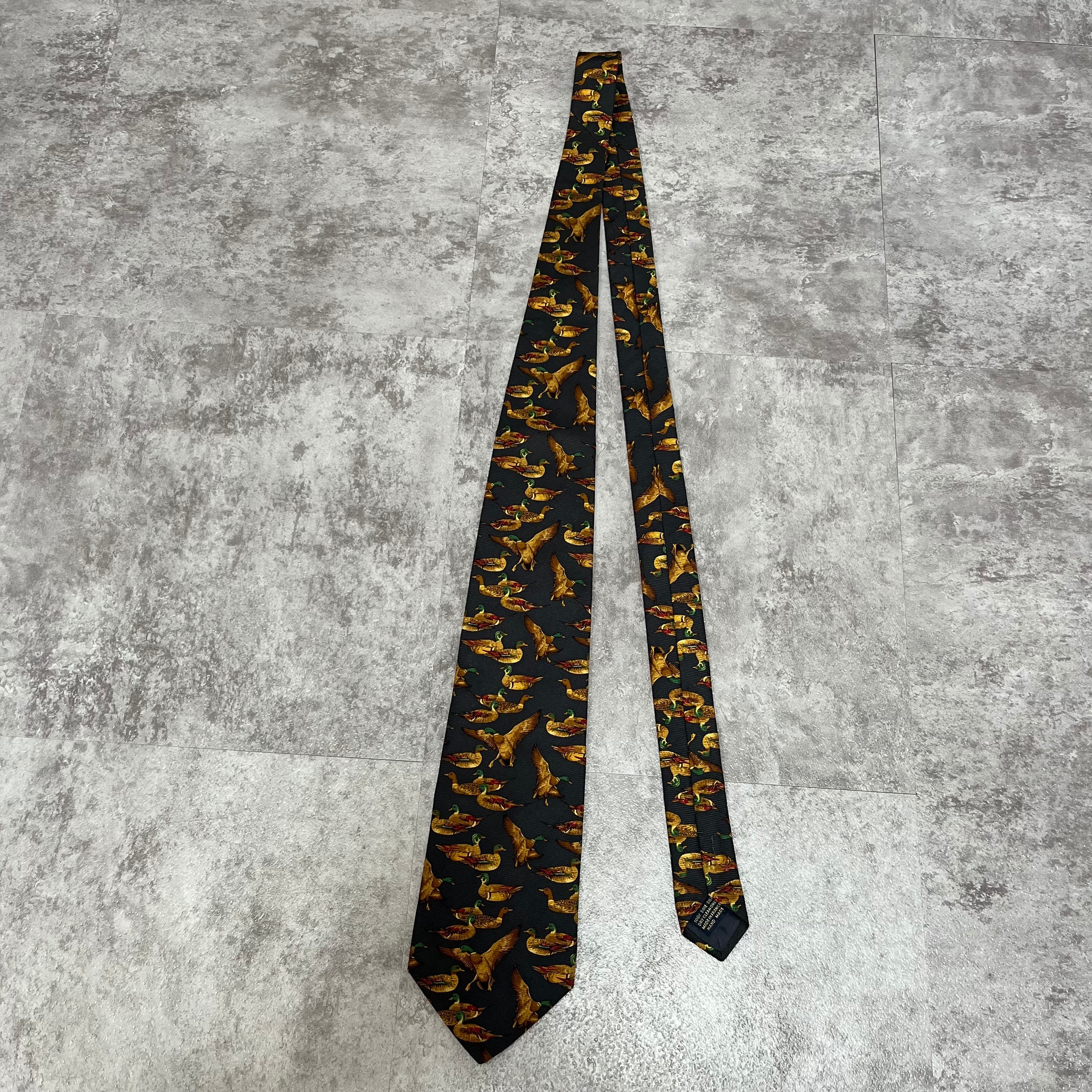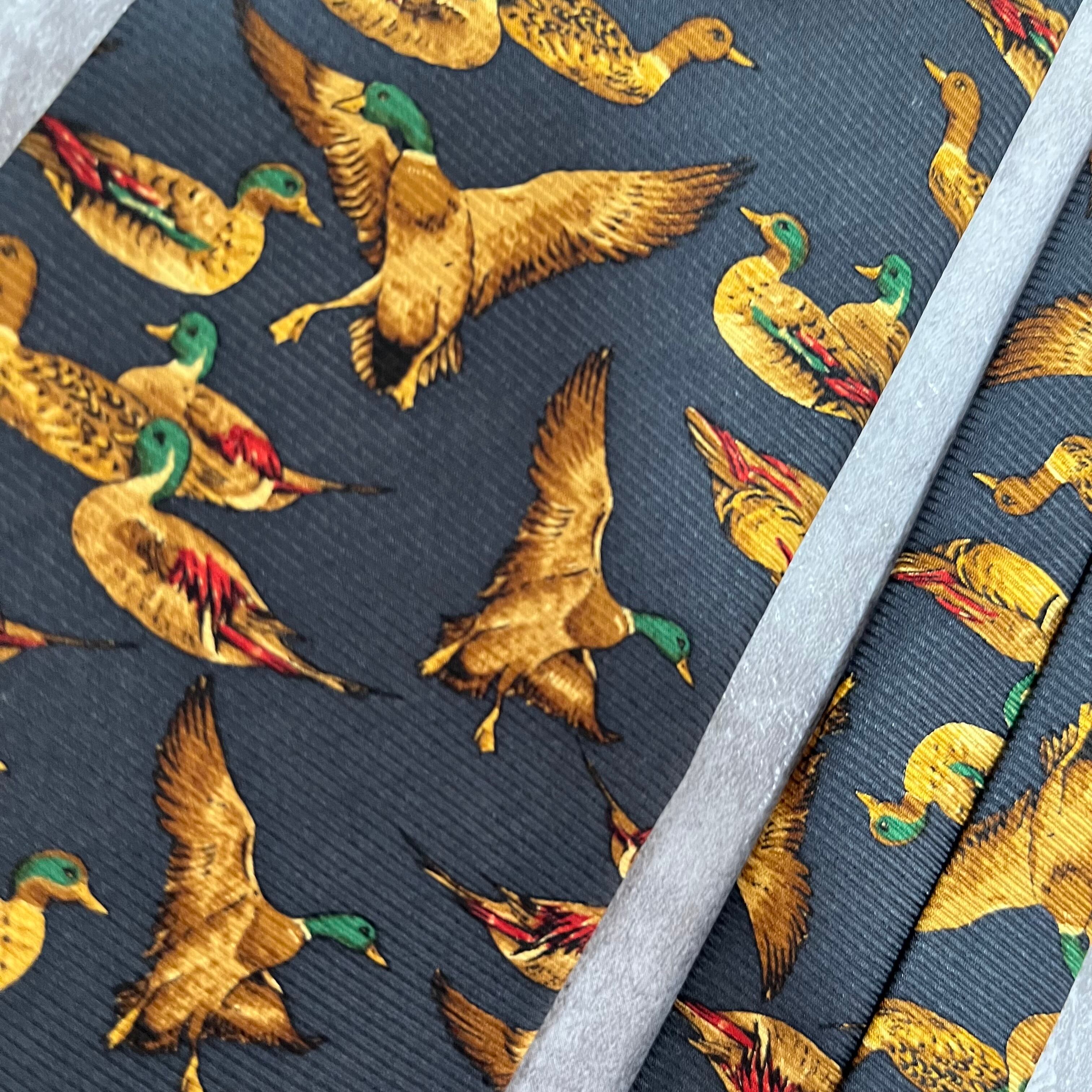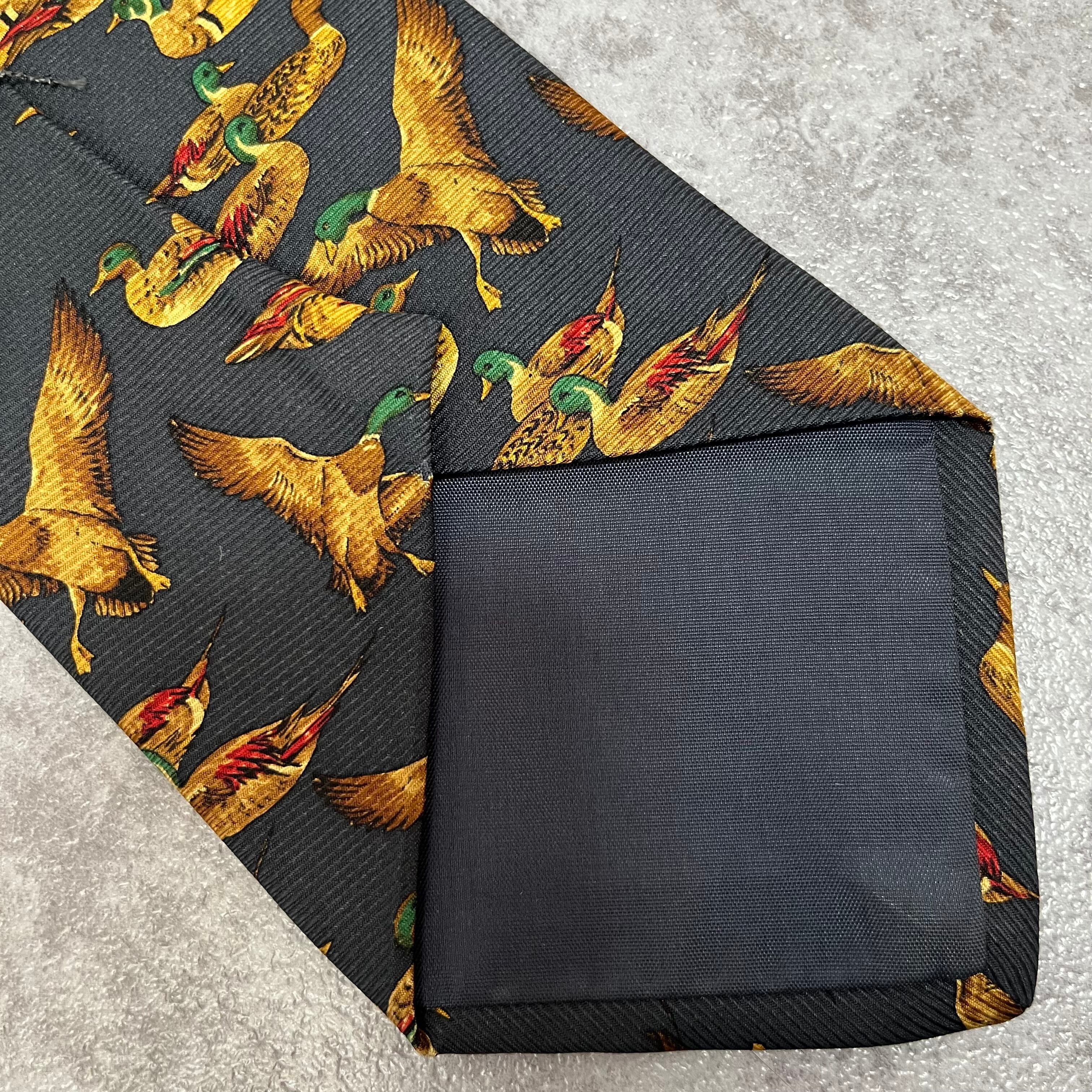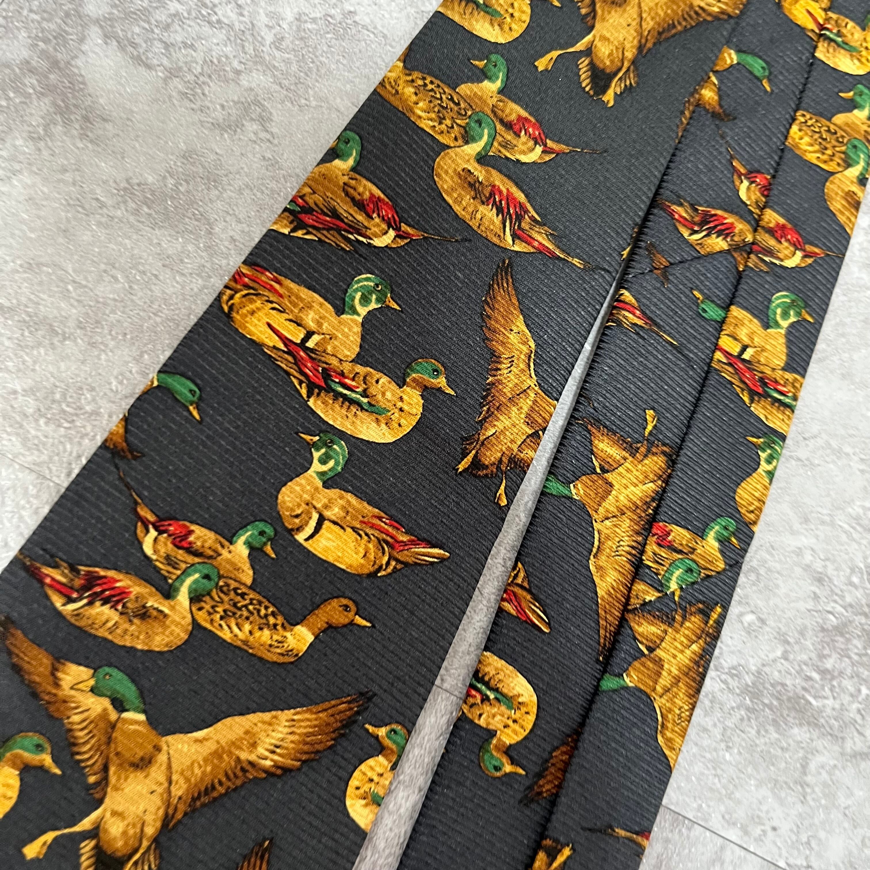 【アニマル柄】カモ柄ネクタイ 鳥 ネイビー 鴨 オス
