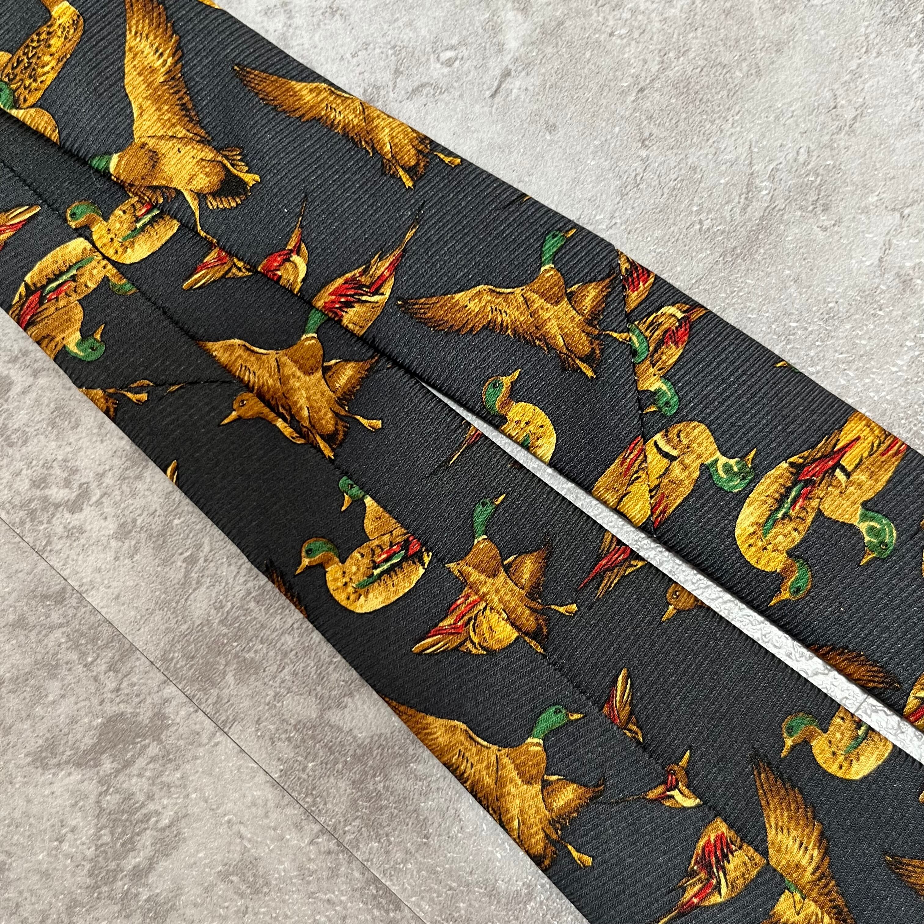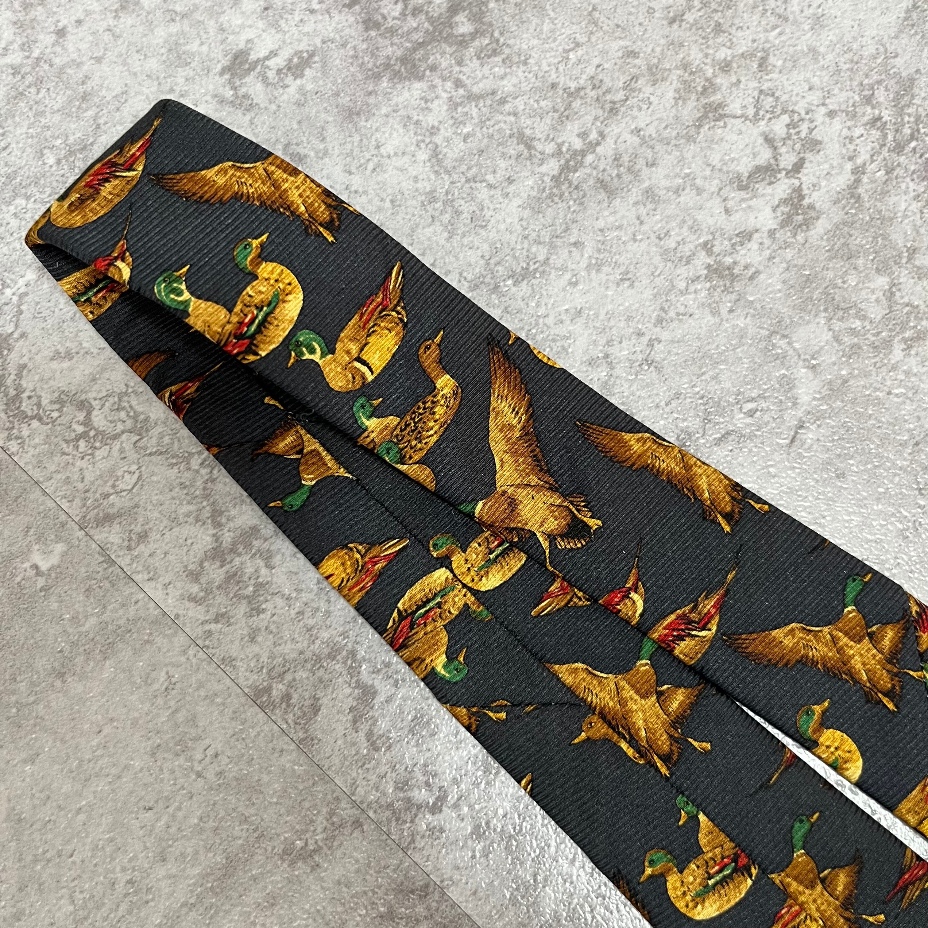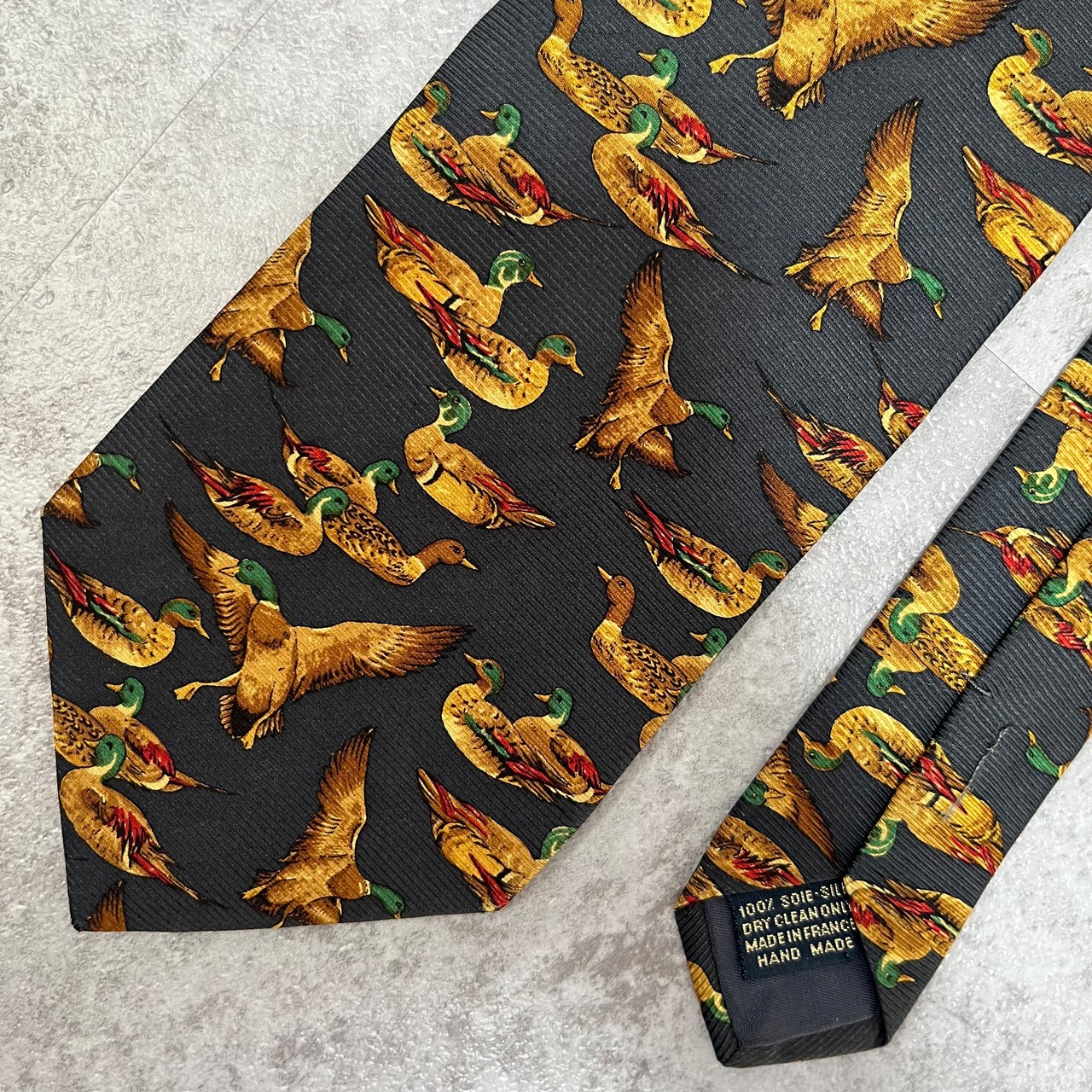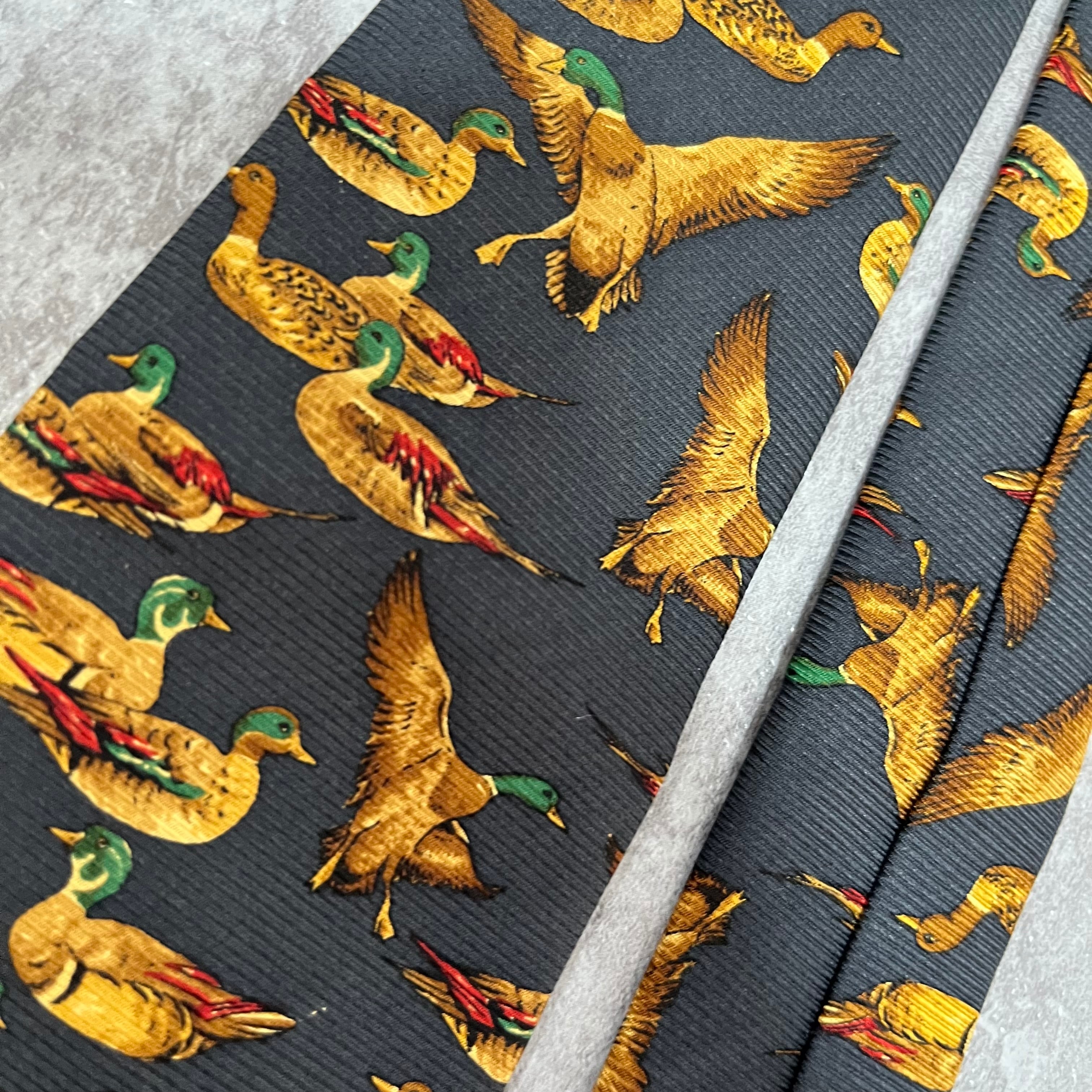 【アニマル柄】カモ柄ネクタイ 鳥 ネイビー 鴨 オス