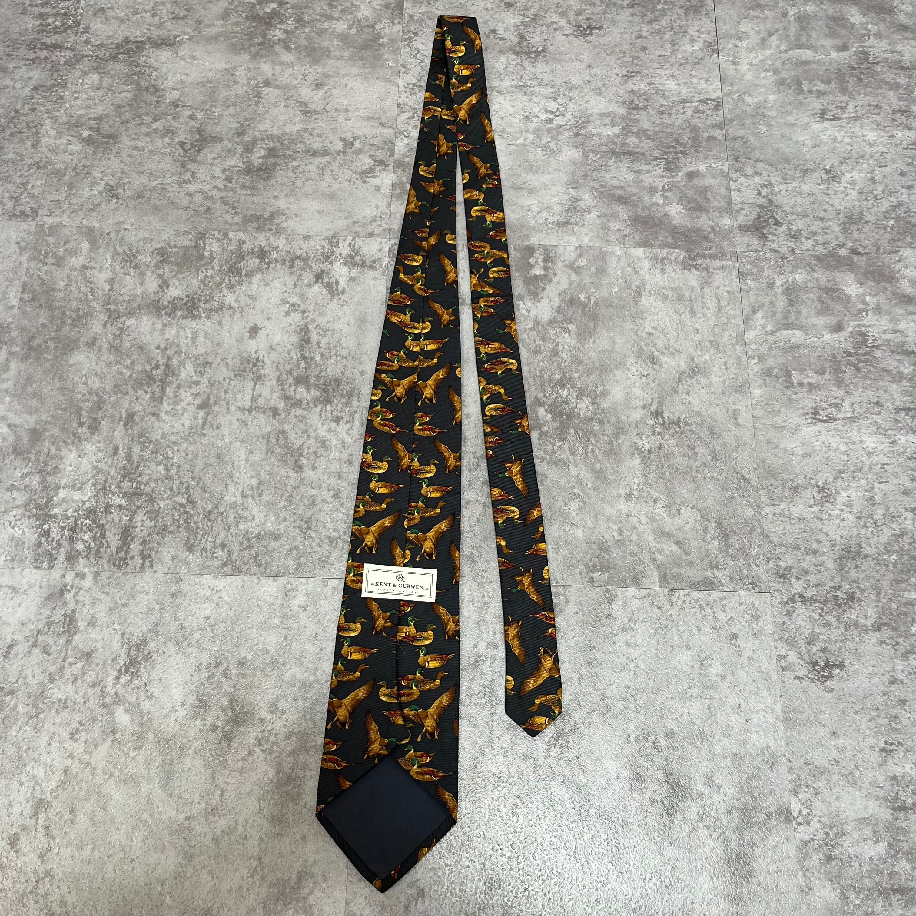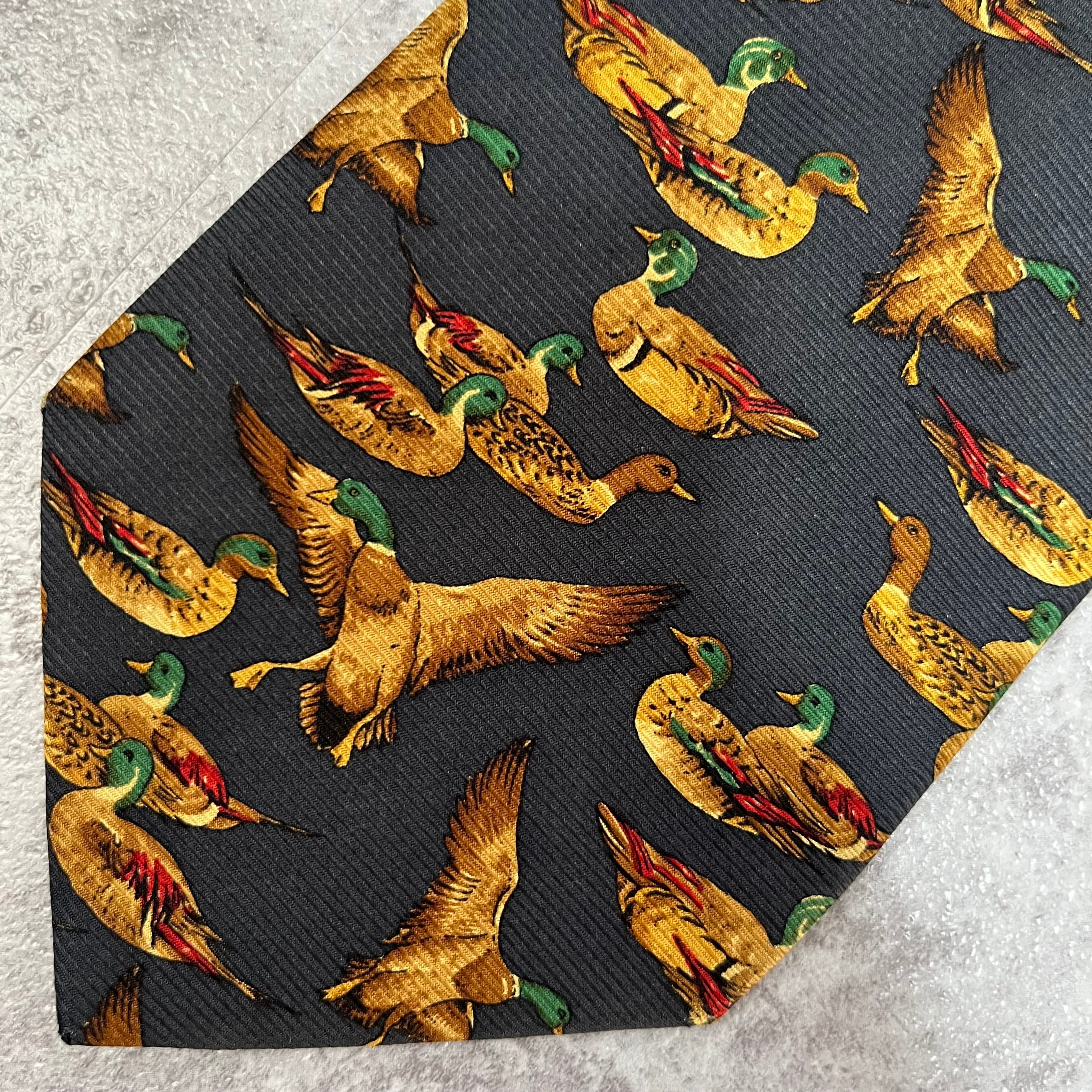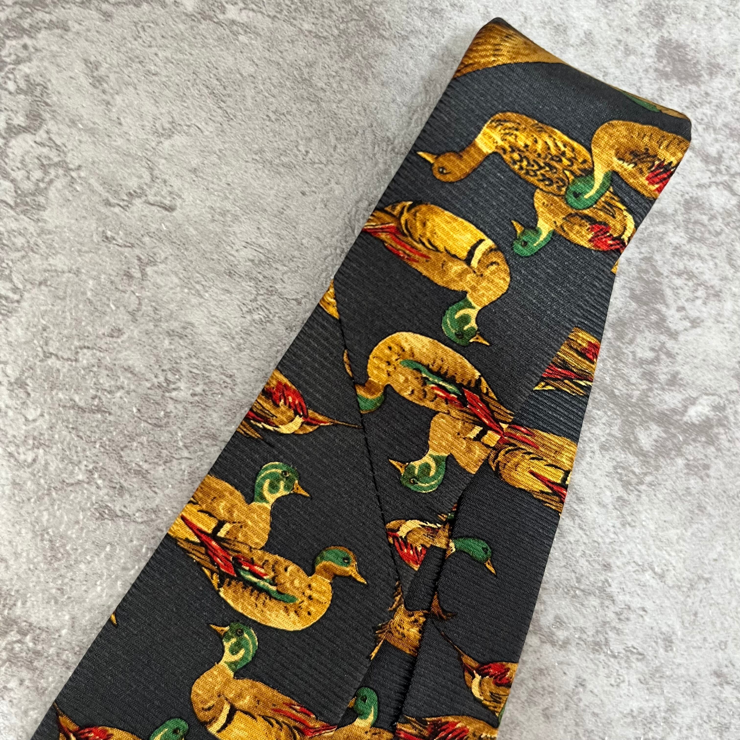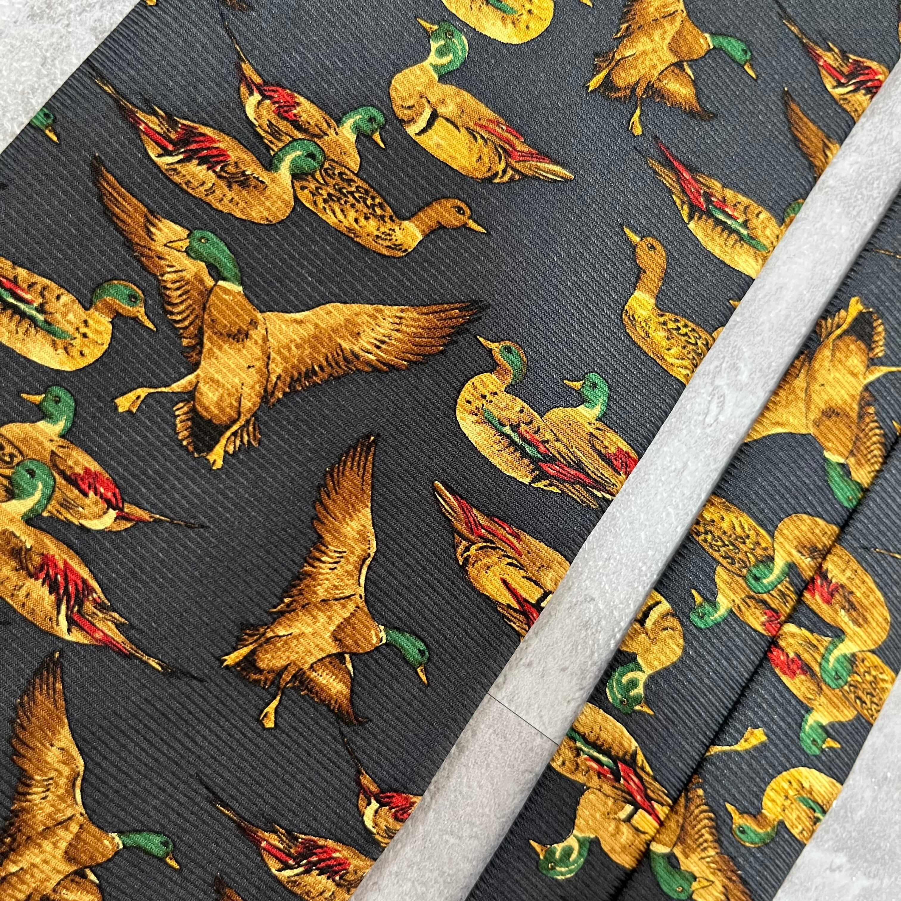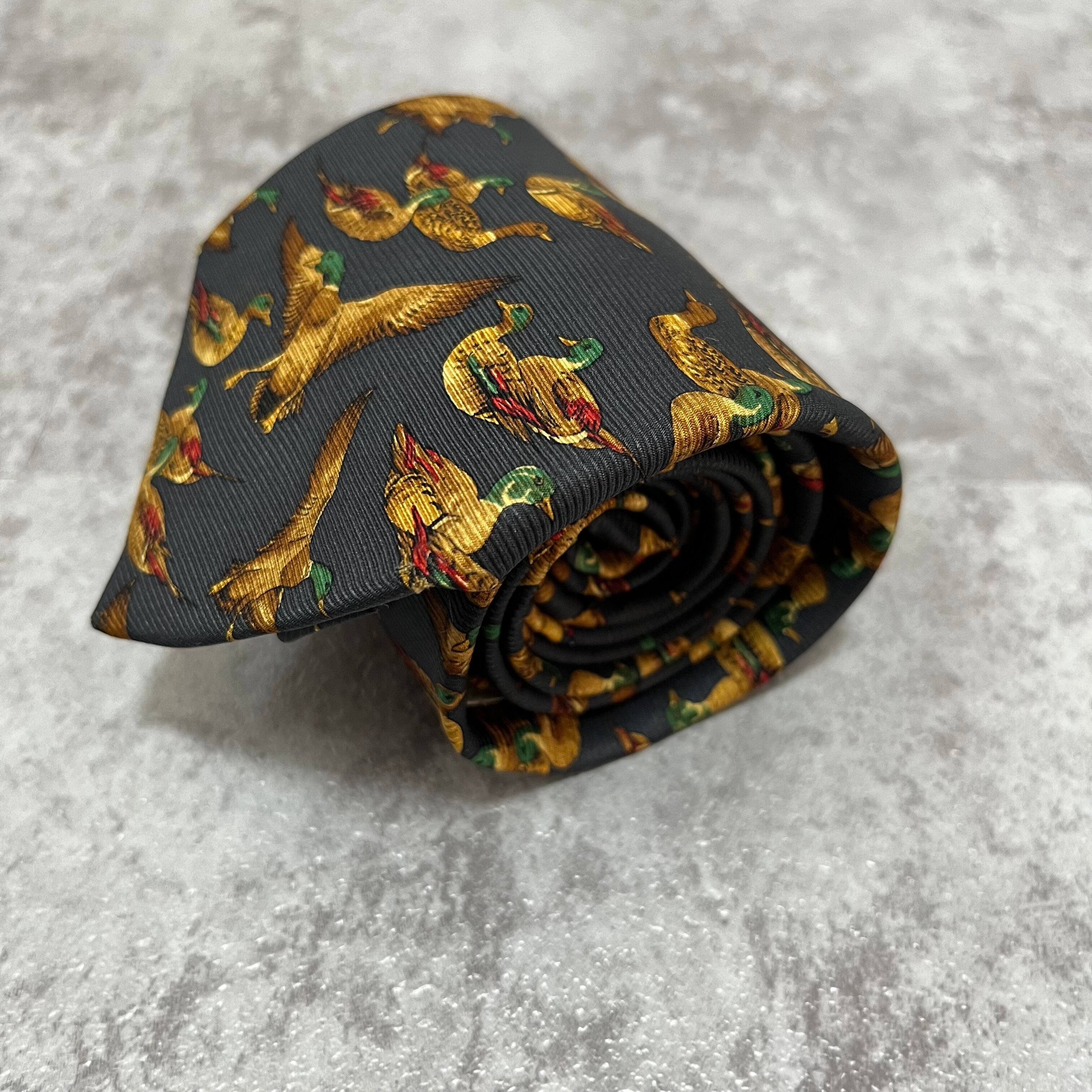 【アニマル柄】カモ柄ネクタイ 鳥 ネイビー 鴨 オス