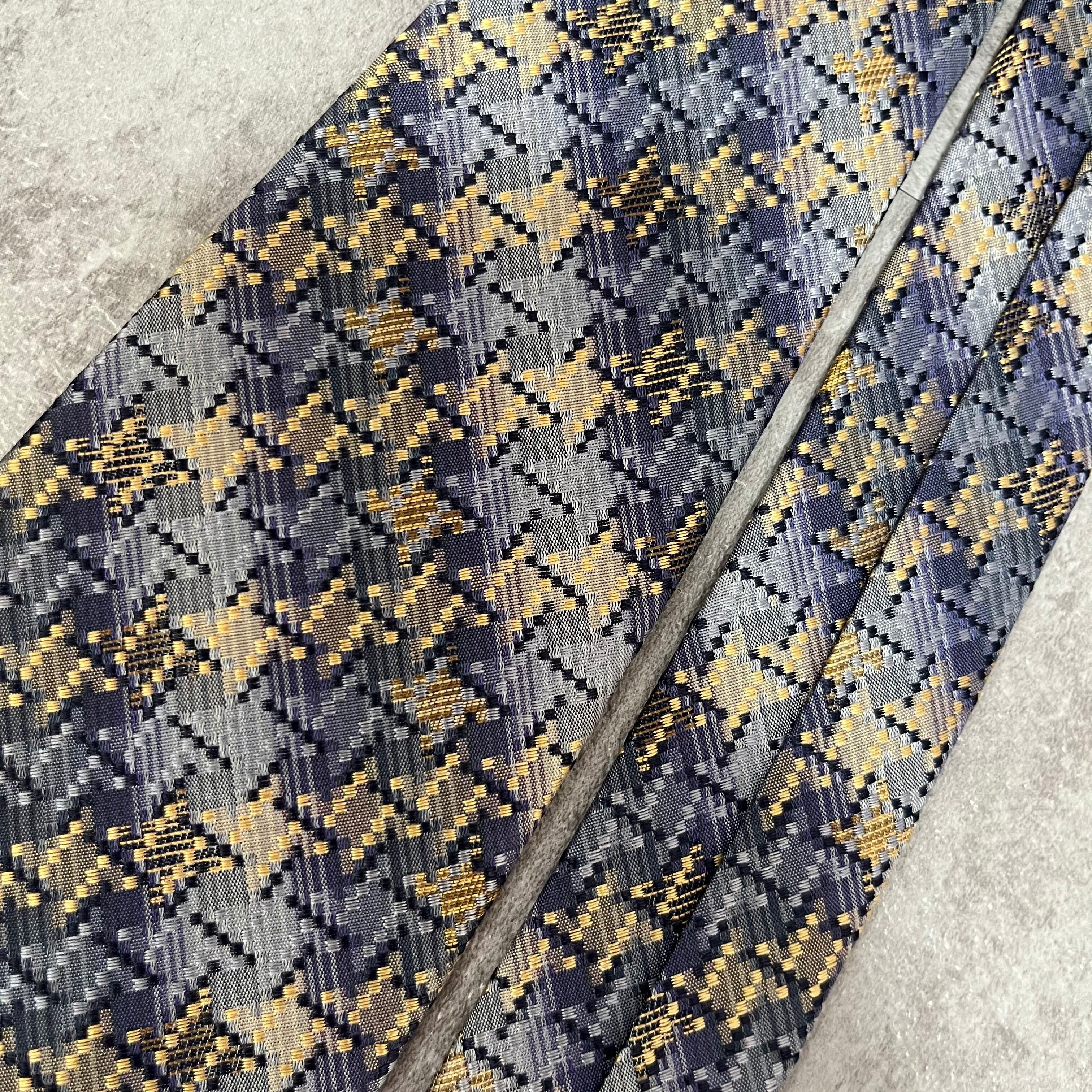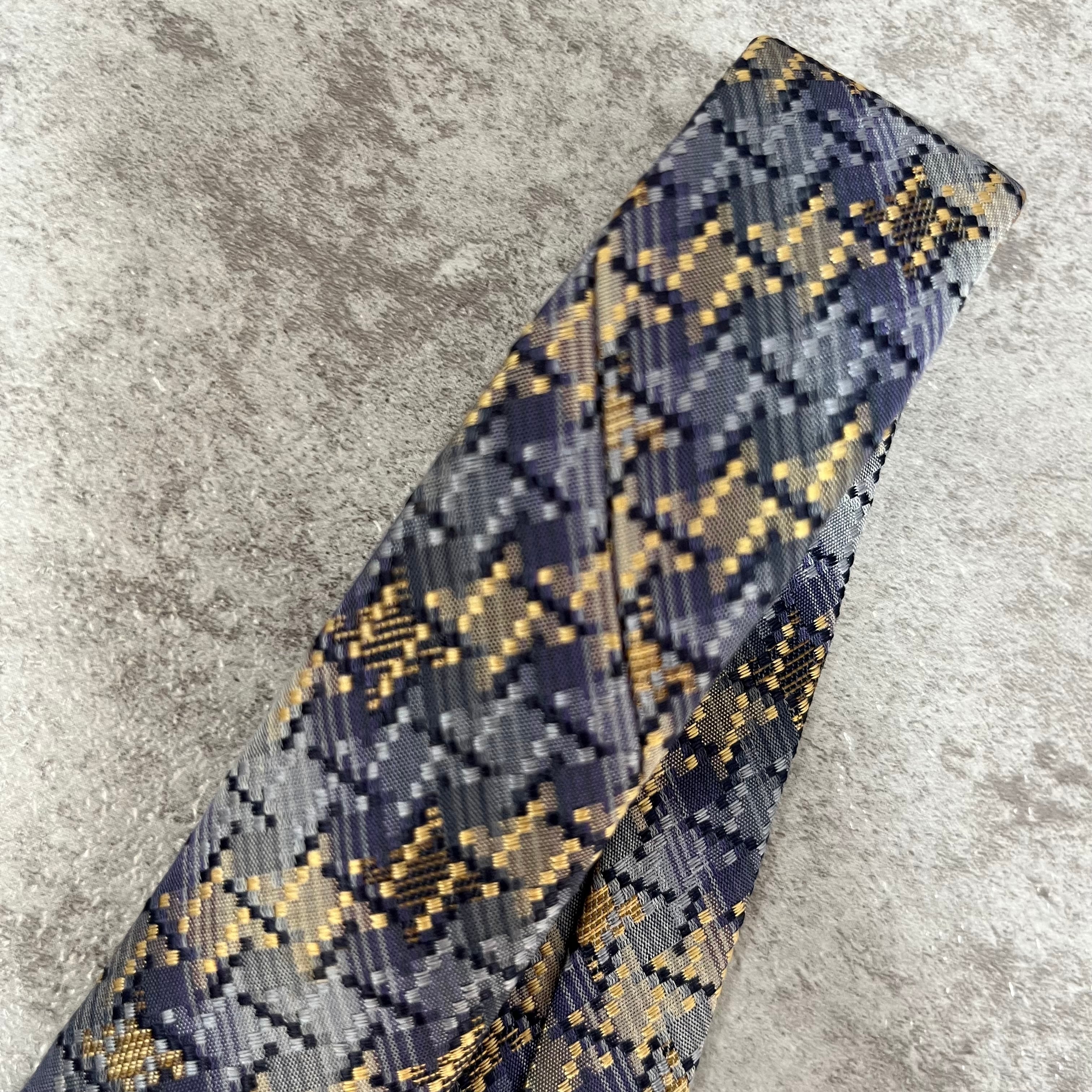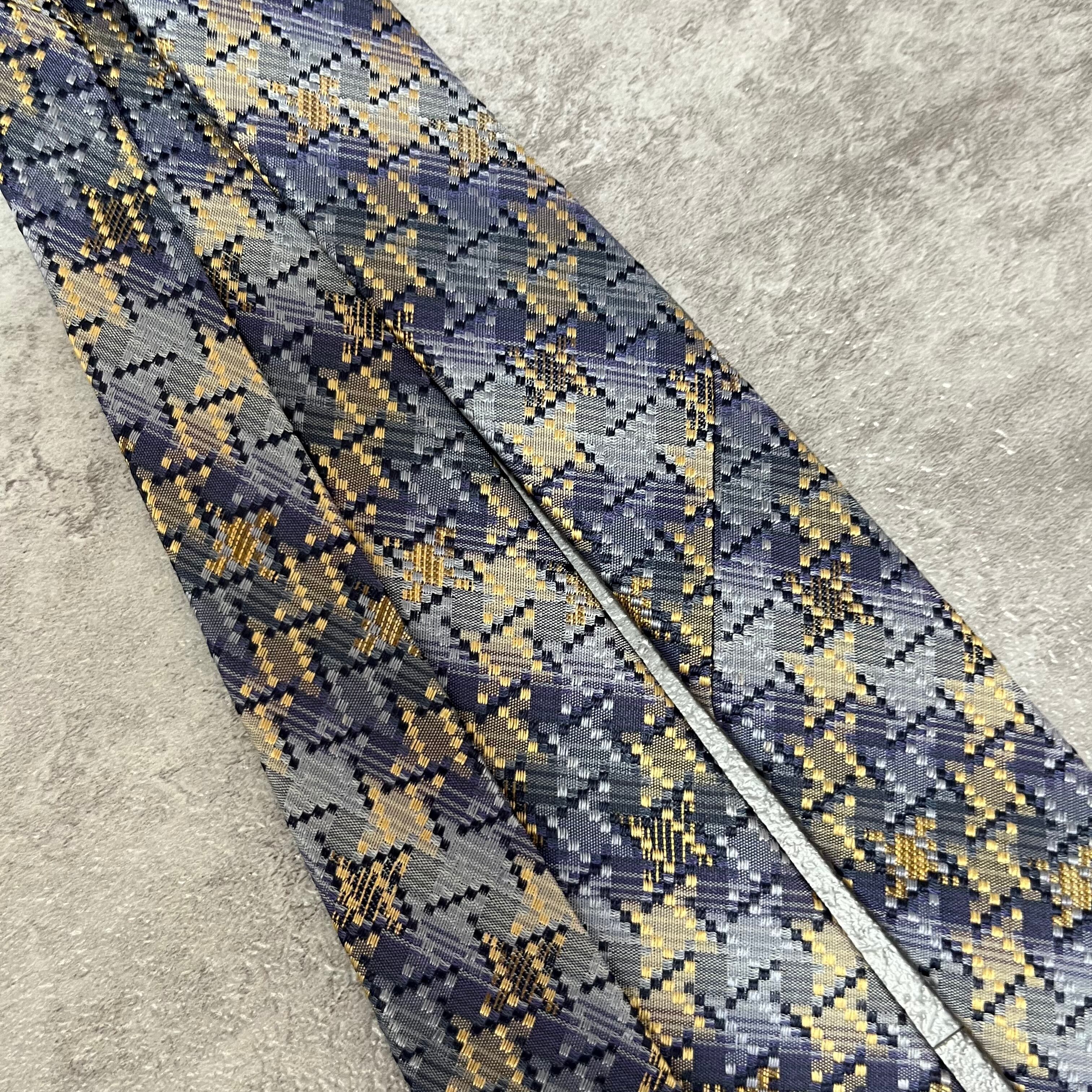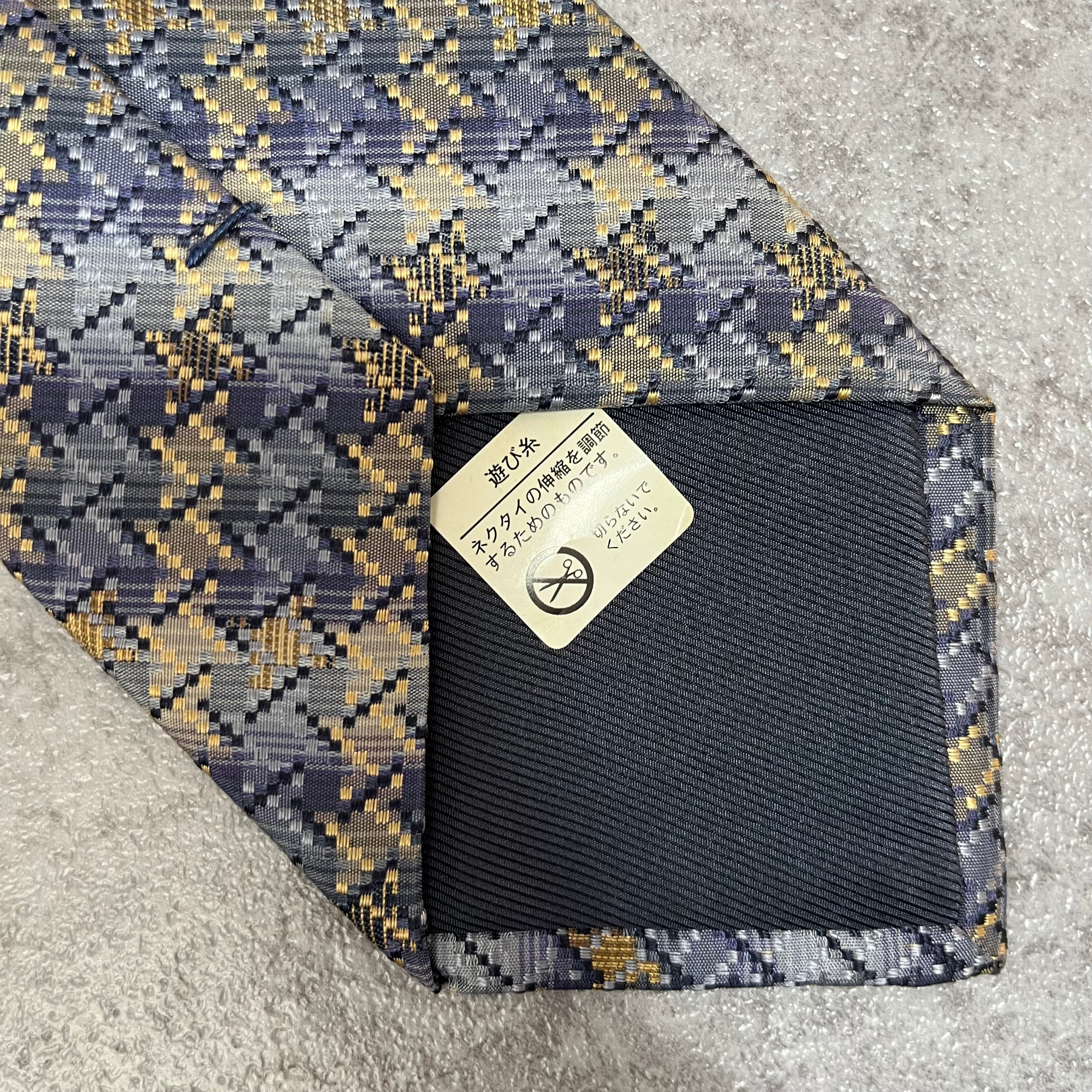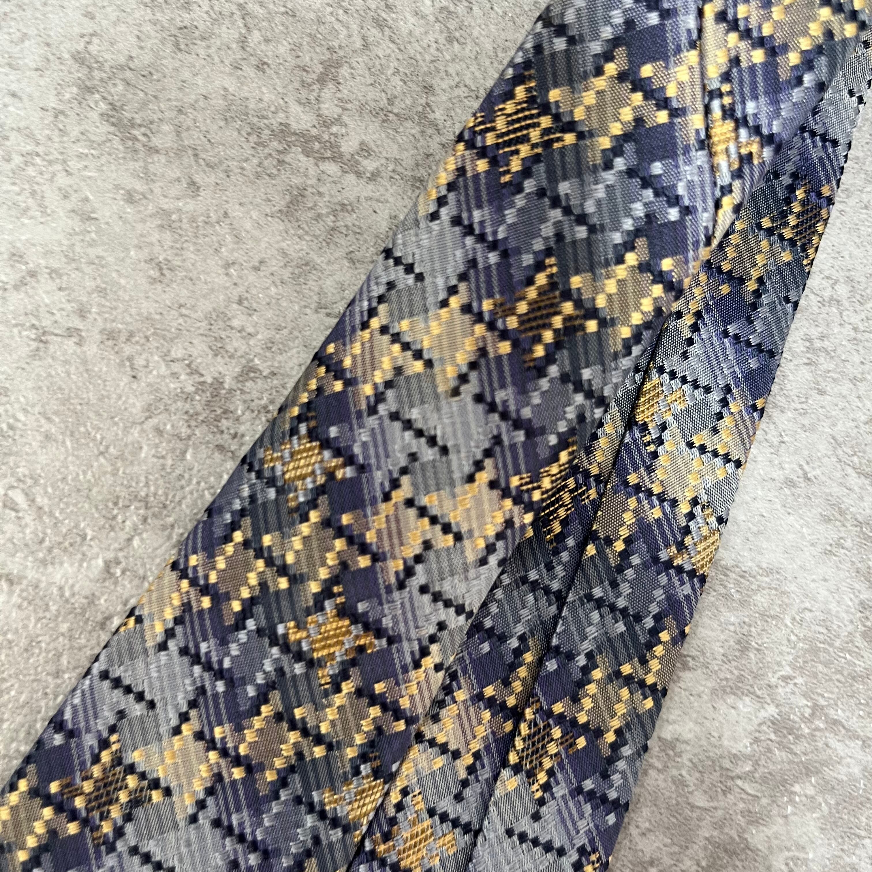 【ISSEY MIYAKE】チェック柄ネクタイ バイカラー 光沢 ブルー 特殊ストライプ 肉厚